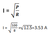 Вы можете заняться простейшим преобразованием формулы для мощности, используя школьные знания P = I² * R; или Мощность = квадрат тока * сопротивление.