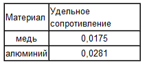 p - удельное сопротивление (Ом•мм2/м)