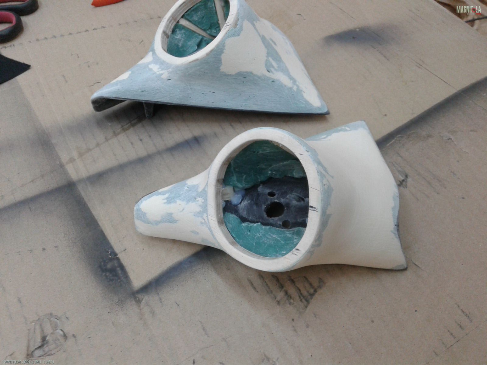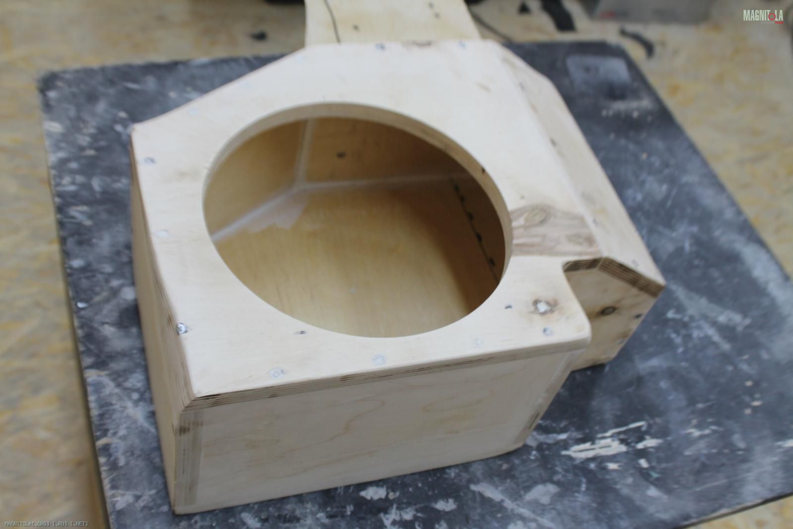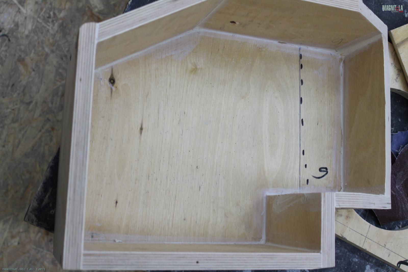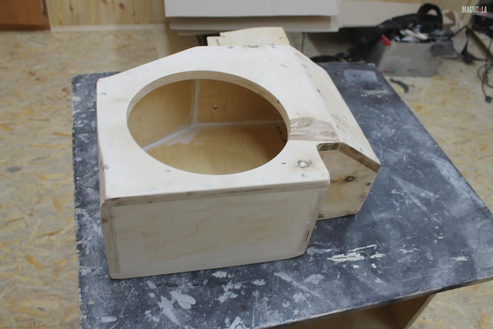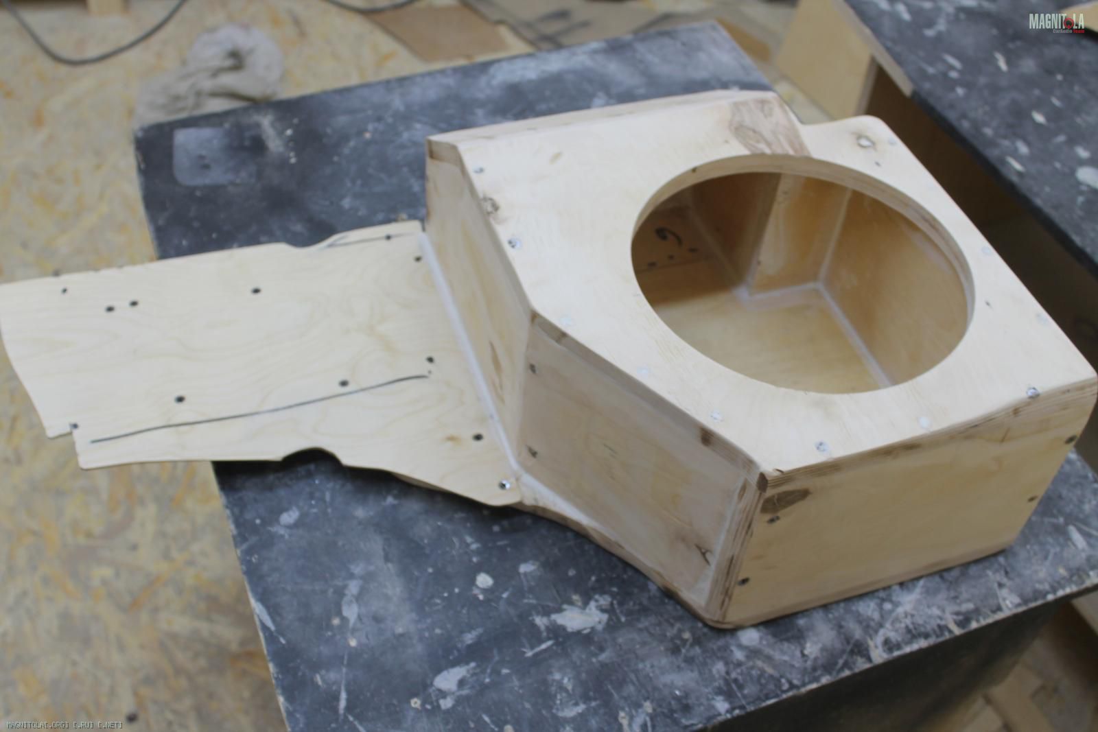 Начали изготавливать фанерный стэл-фальшпанель под усилитель и процессор(необходимо было использовать только правую нишу крыла)