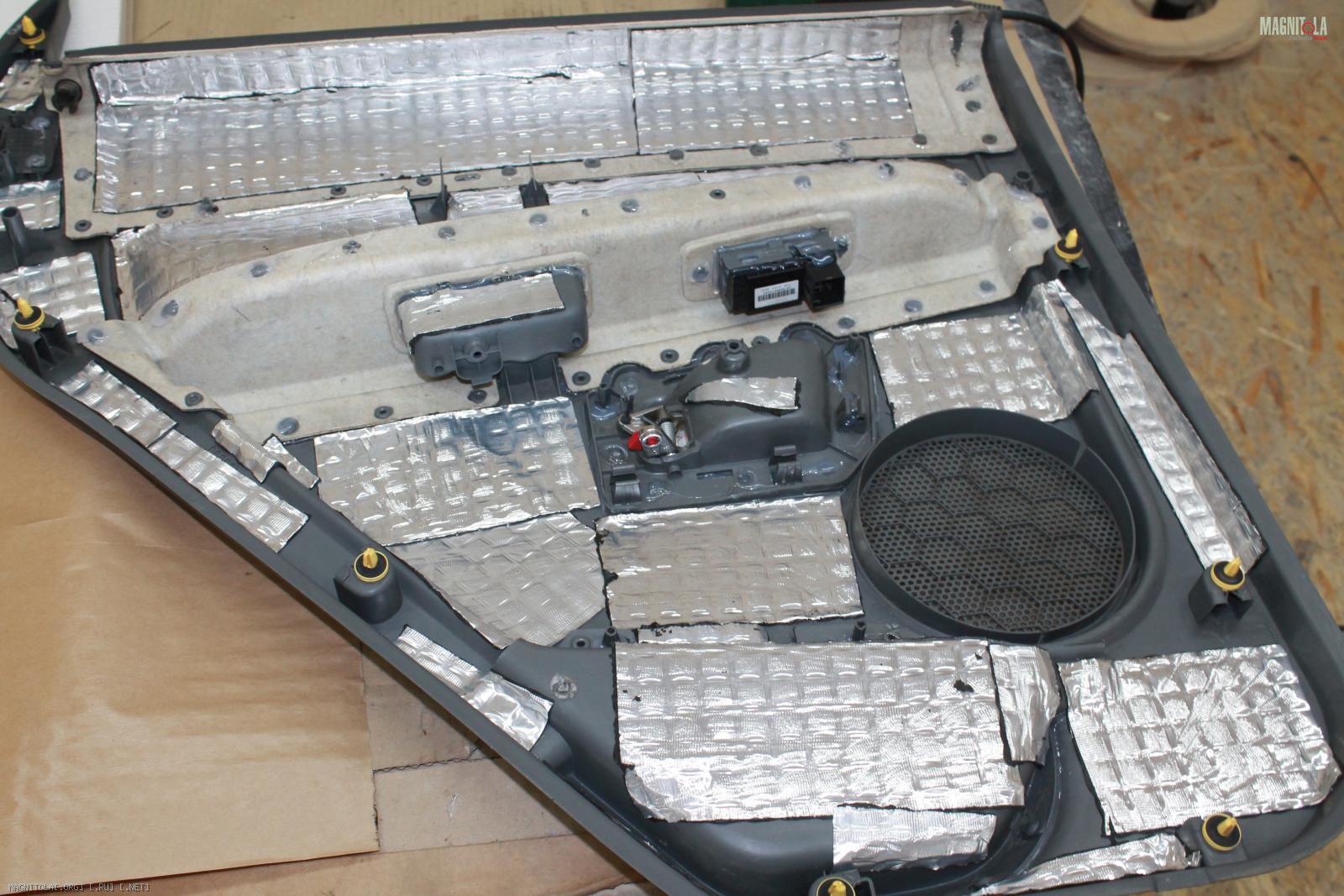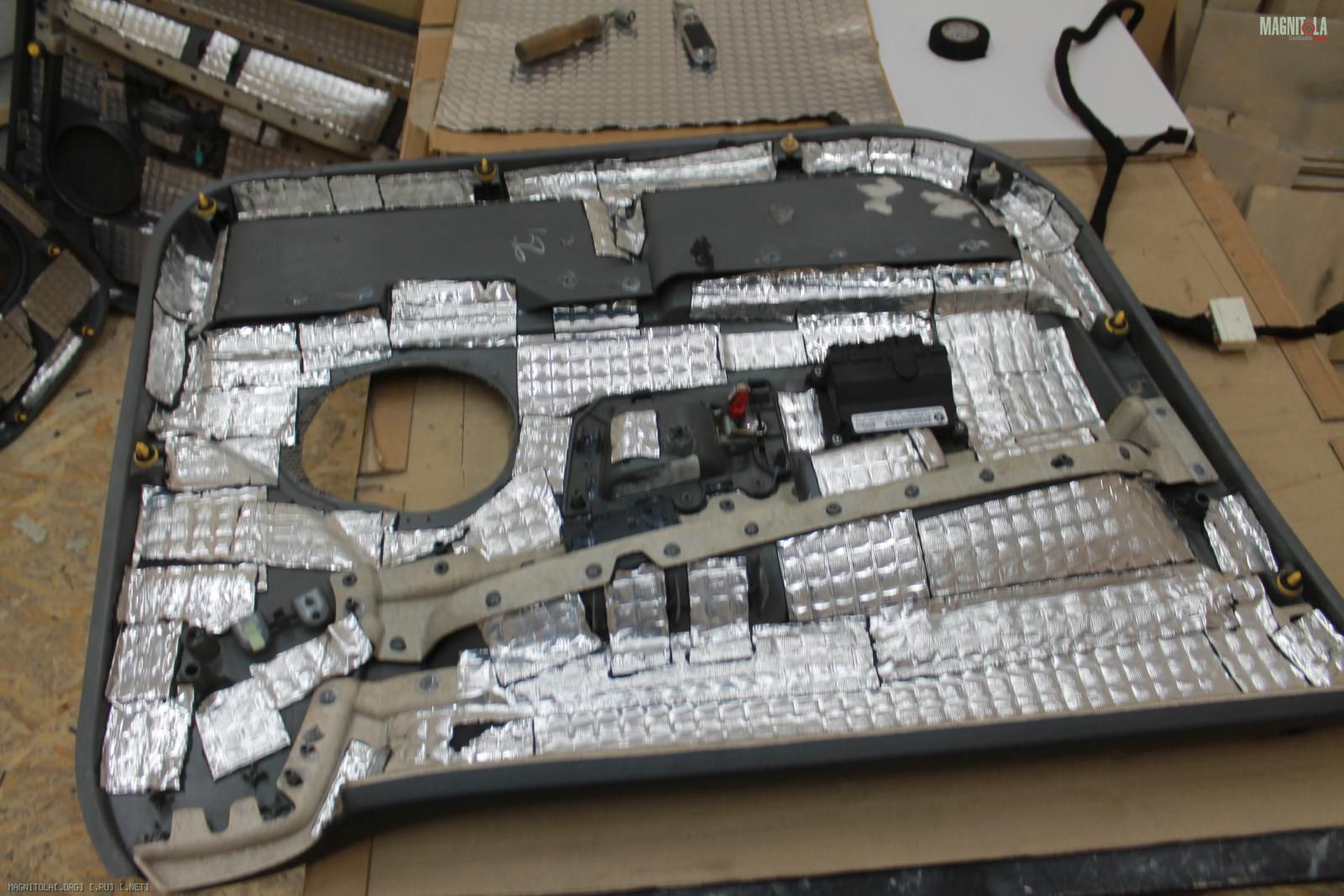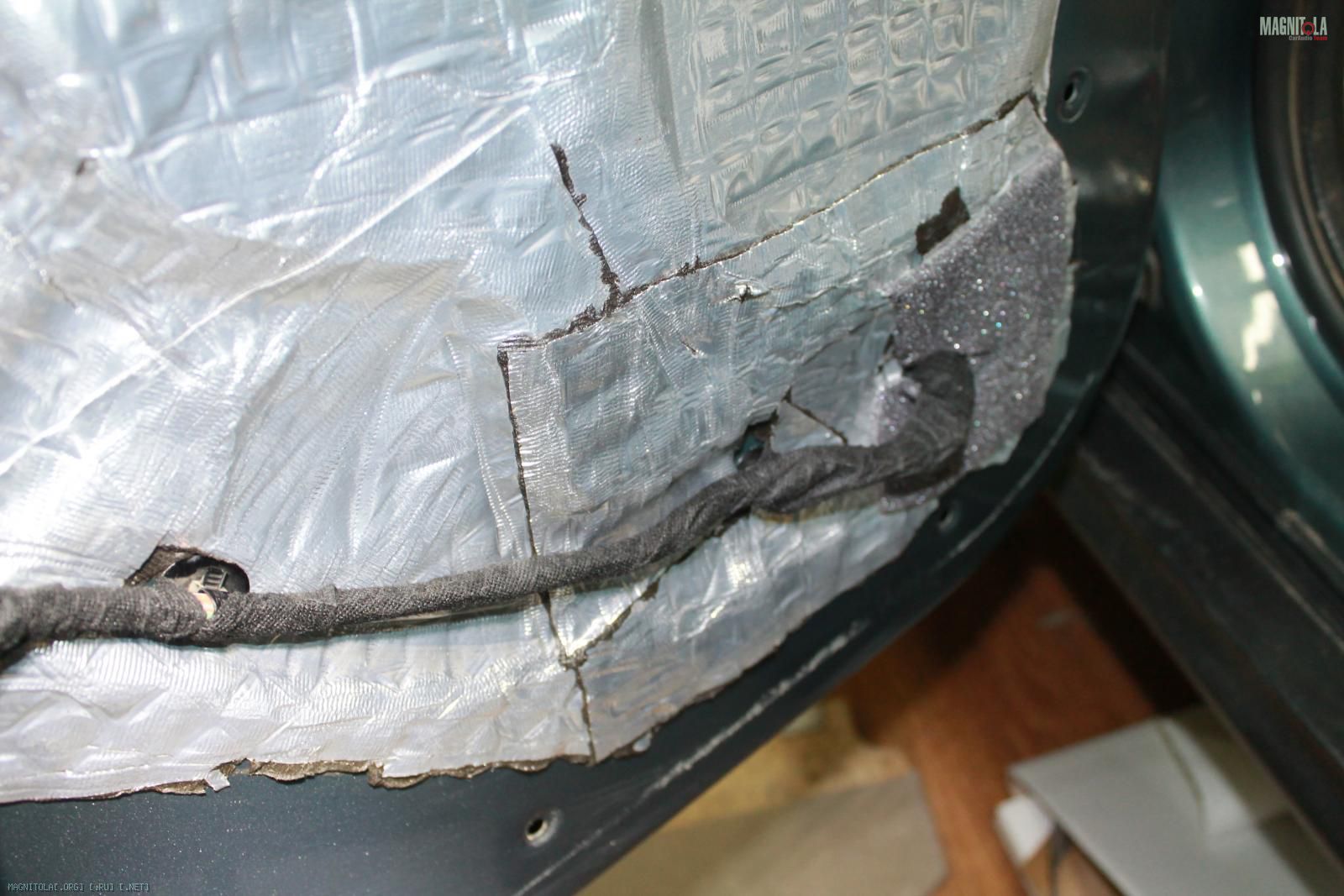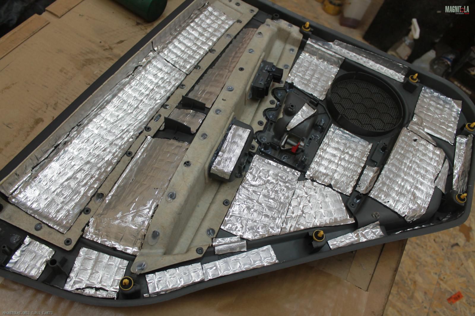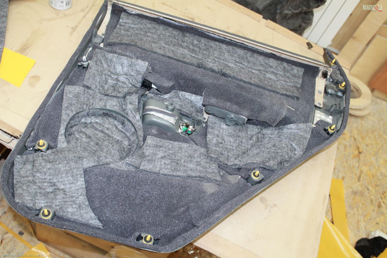 Виброизоляция дверей, греем, прикатываем, проклейка металической перегородки с тыловой стороны