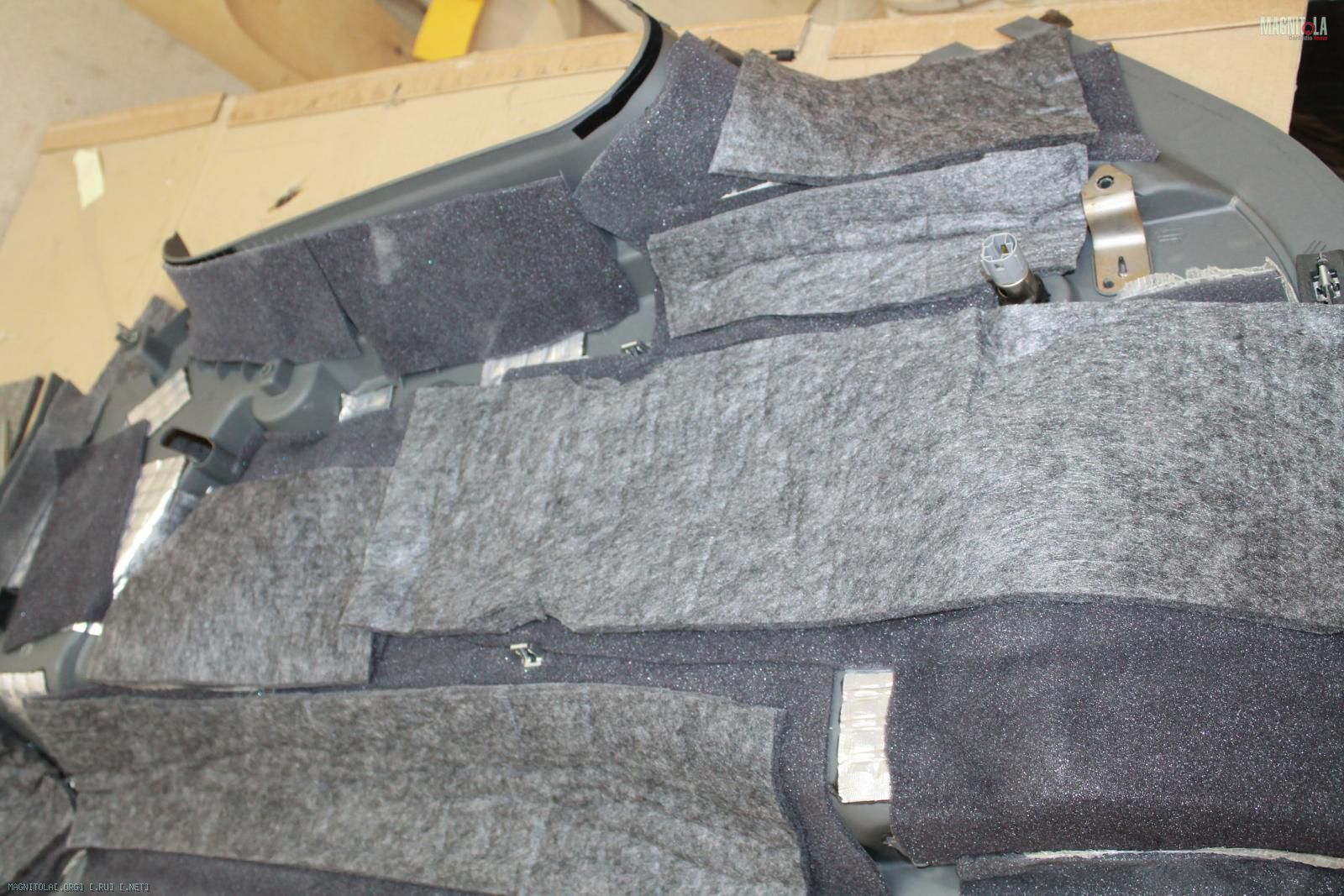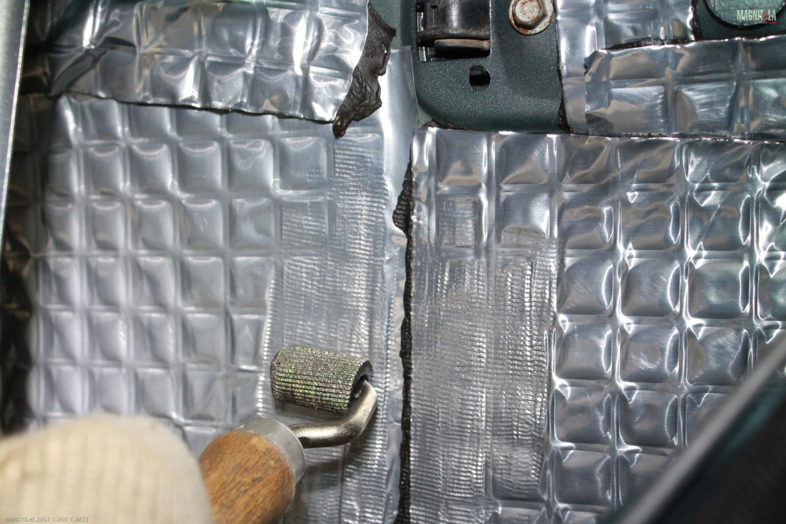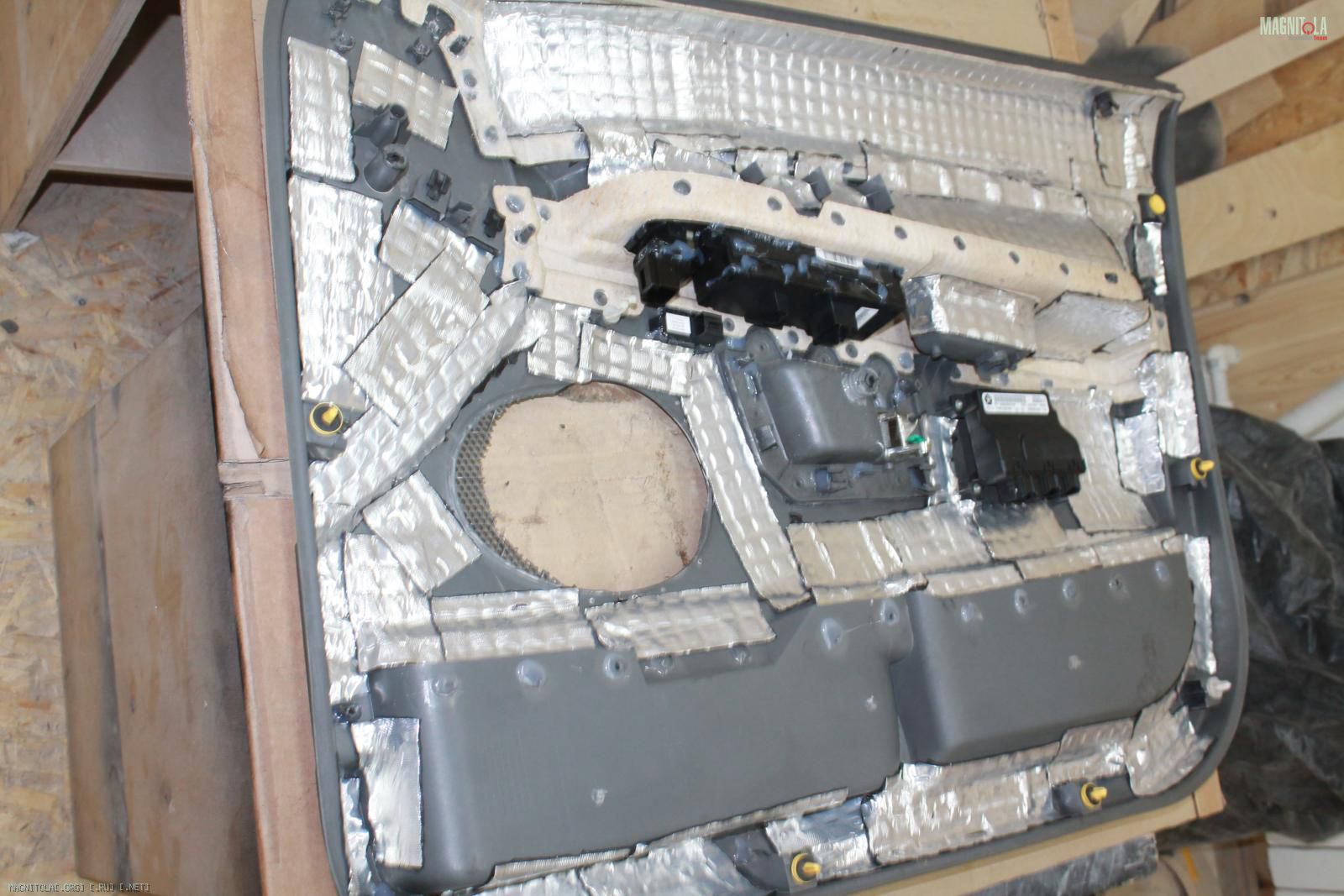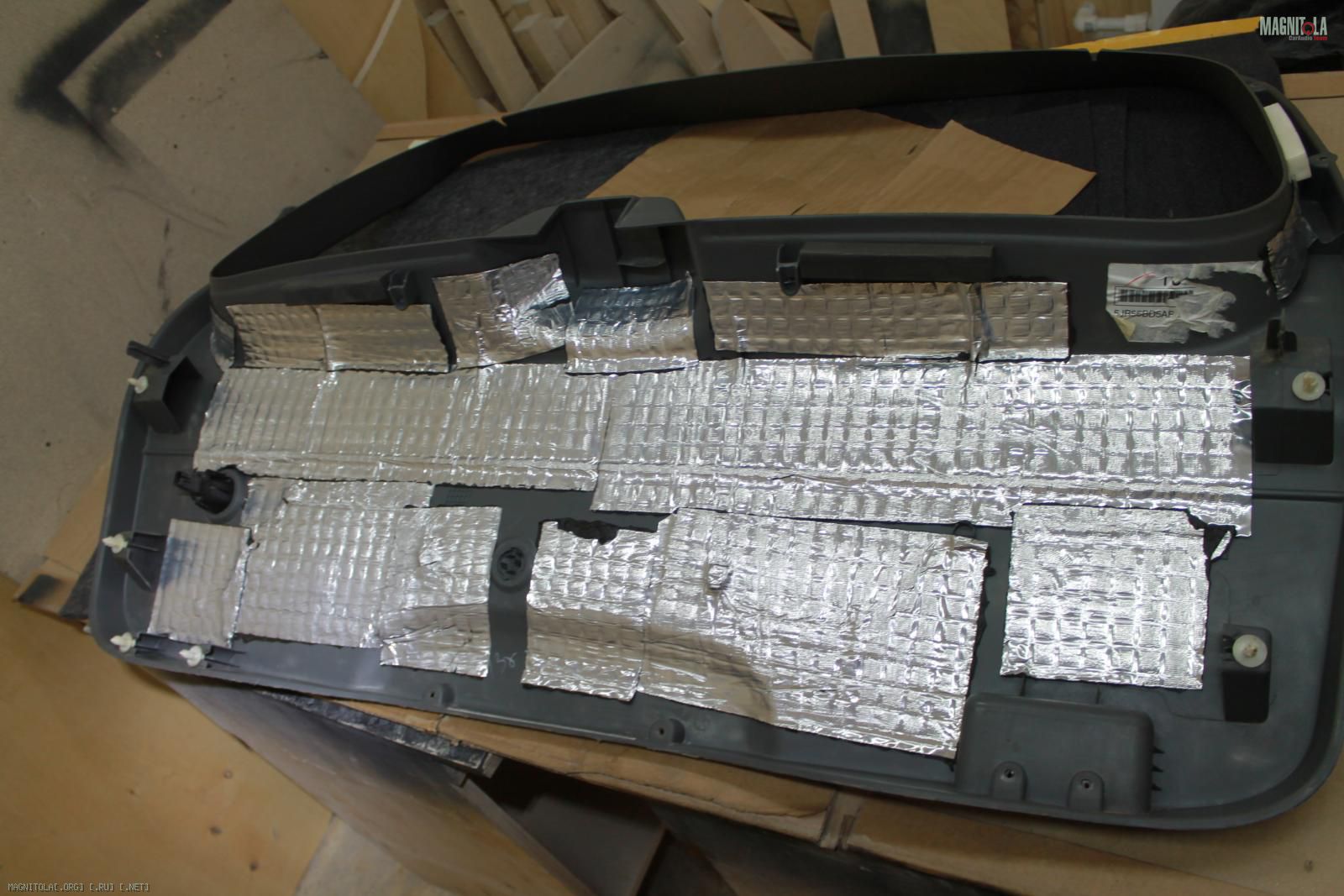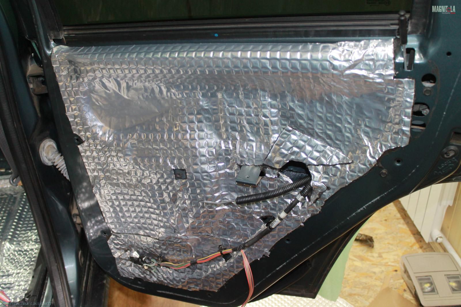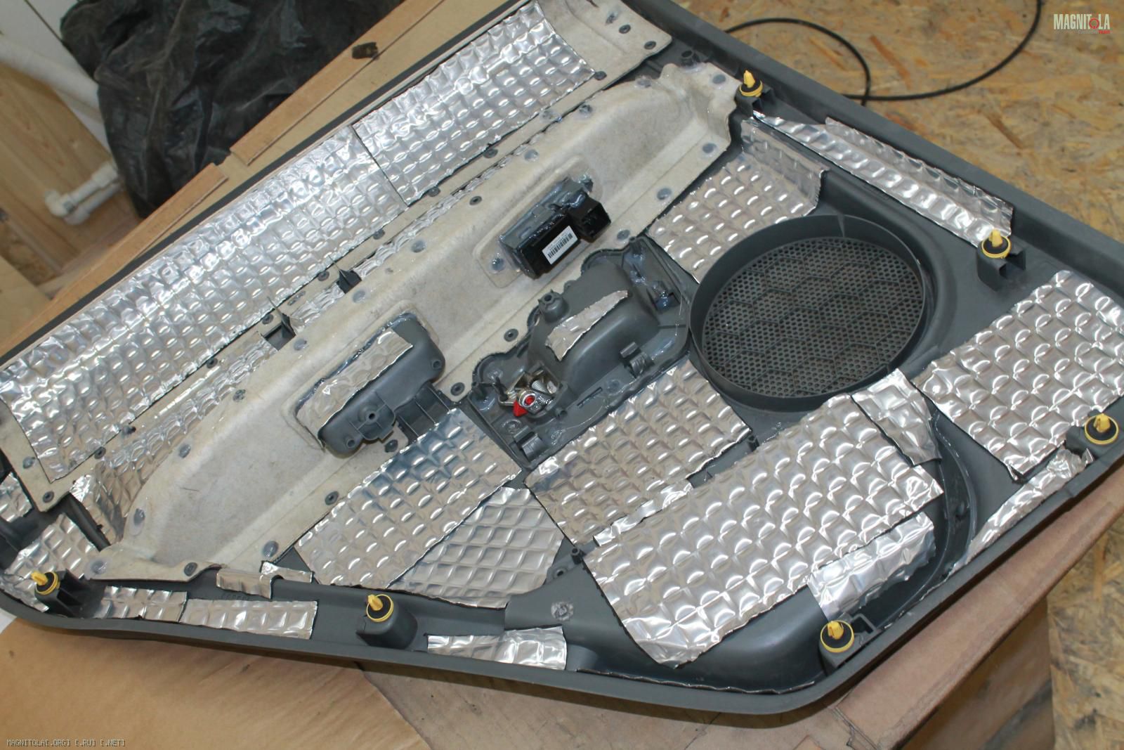 Виброизоляция дверей, греем, прикатываем, проклейка металической перегородки с тыловой стороны