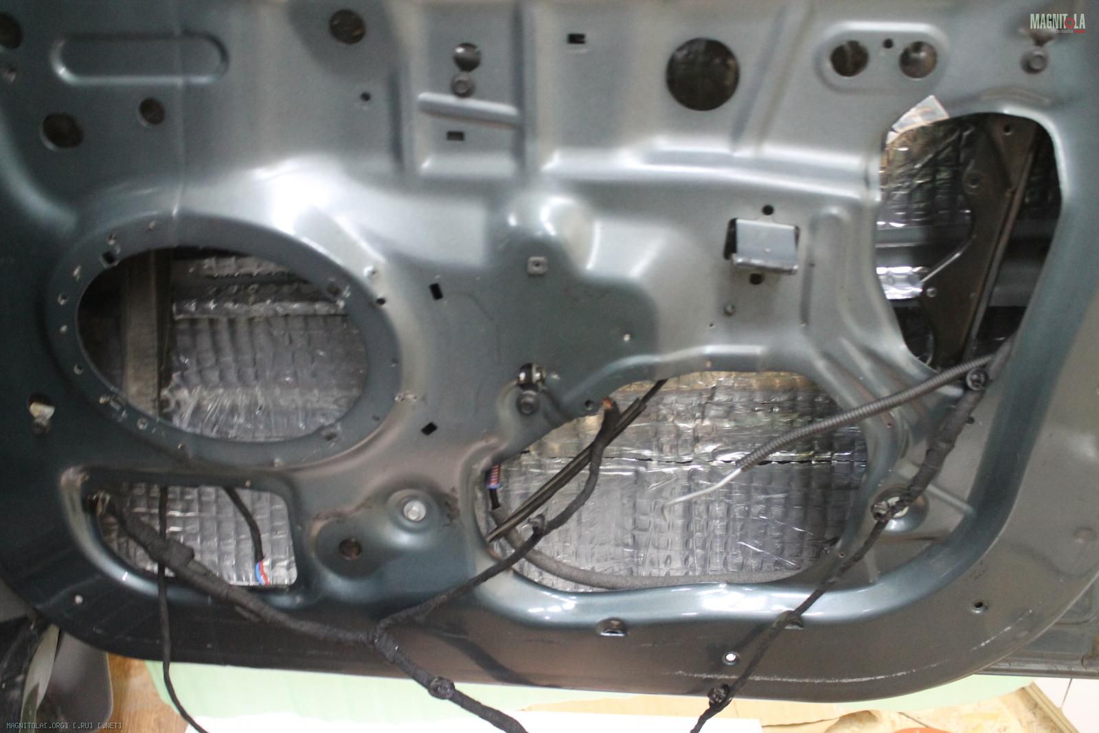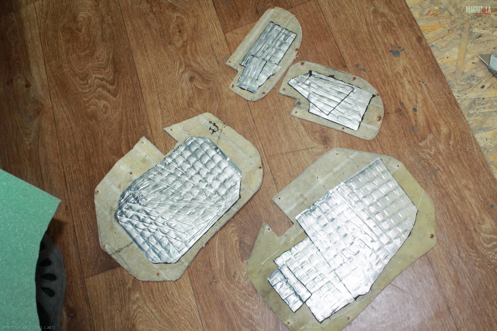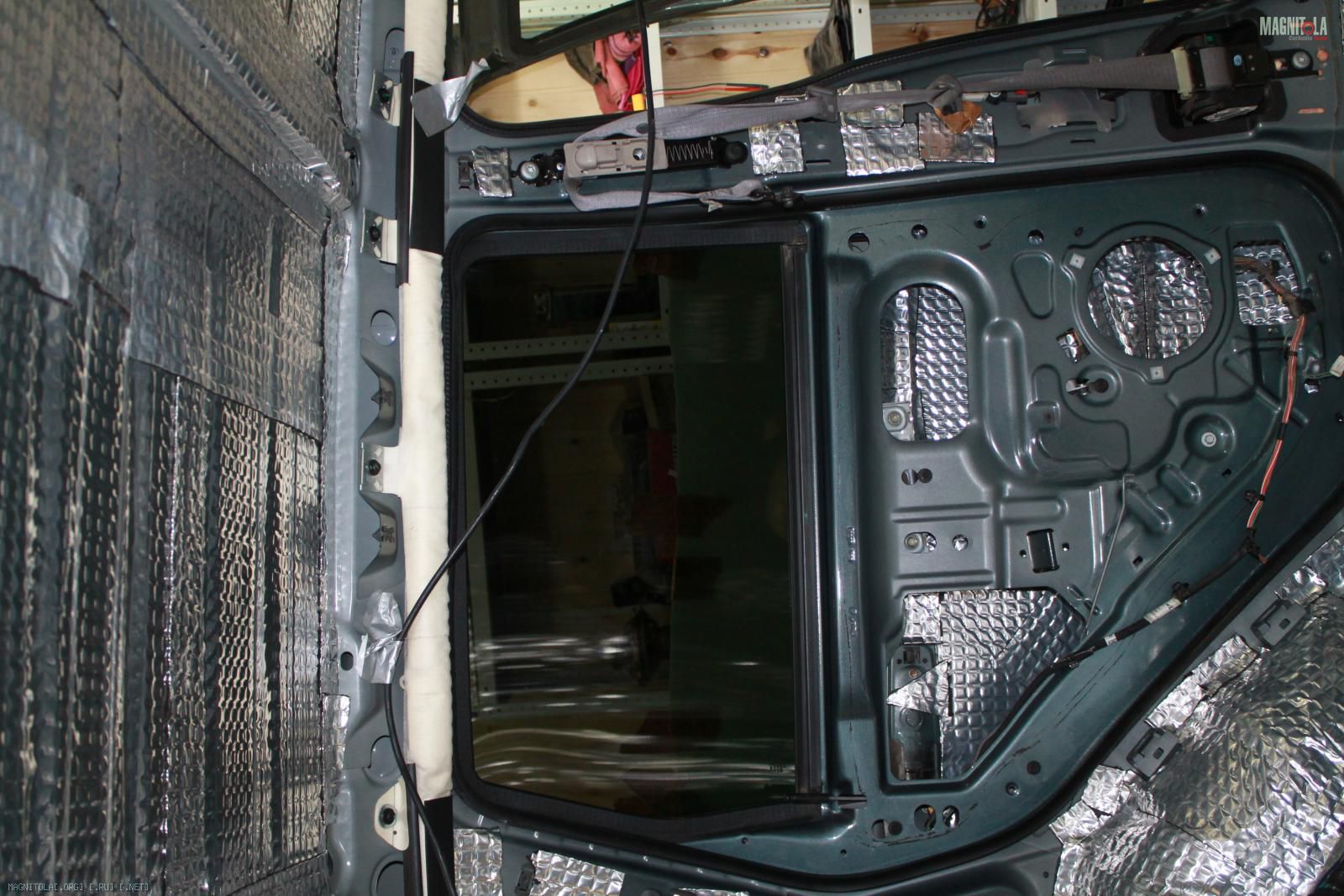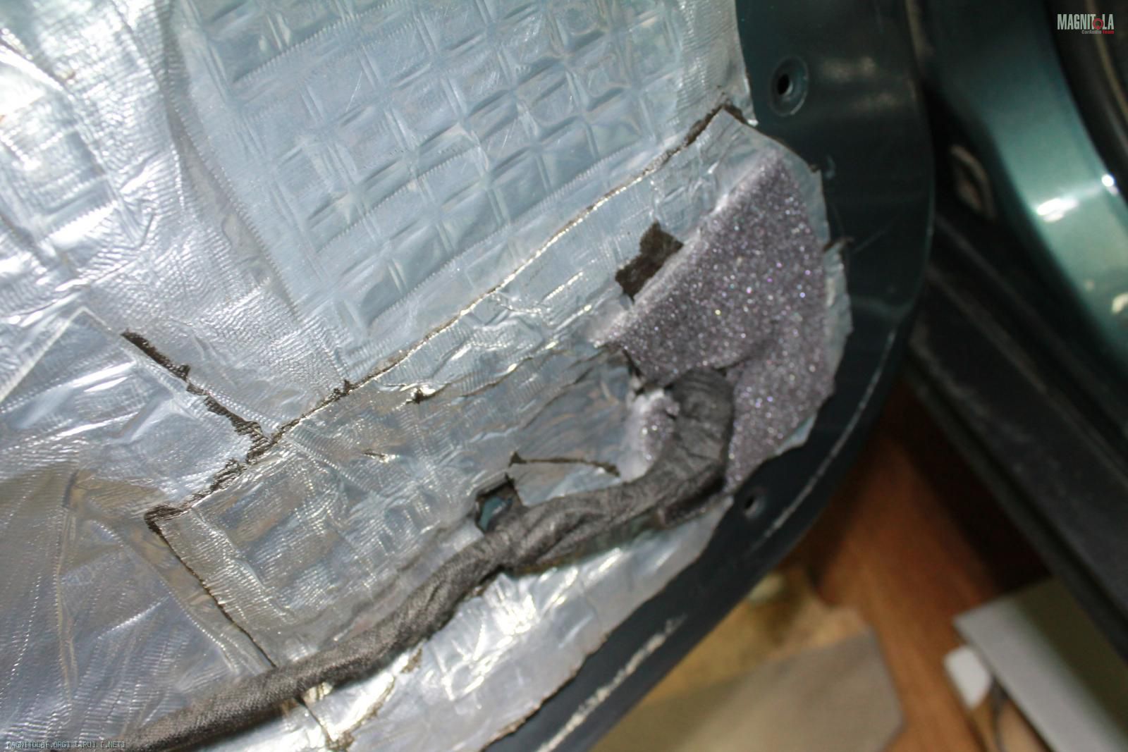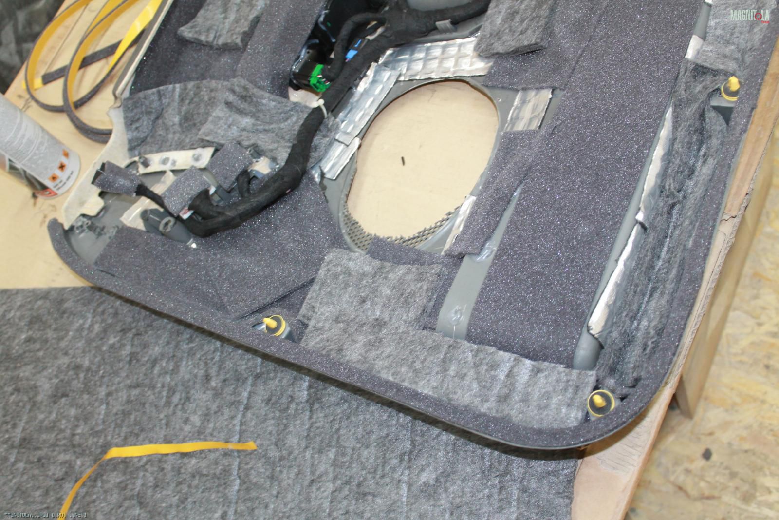 Виброизоляция дверей, греем, прикатываем, проклейка металической перегородки с тыловой стороны