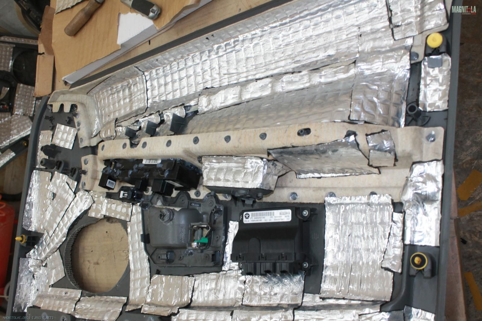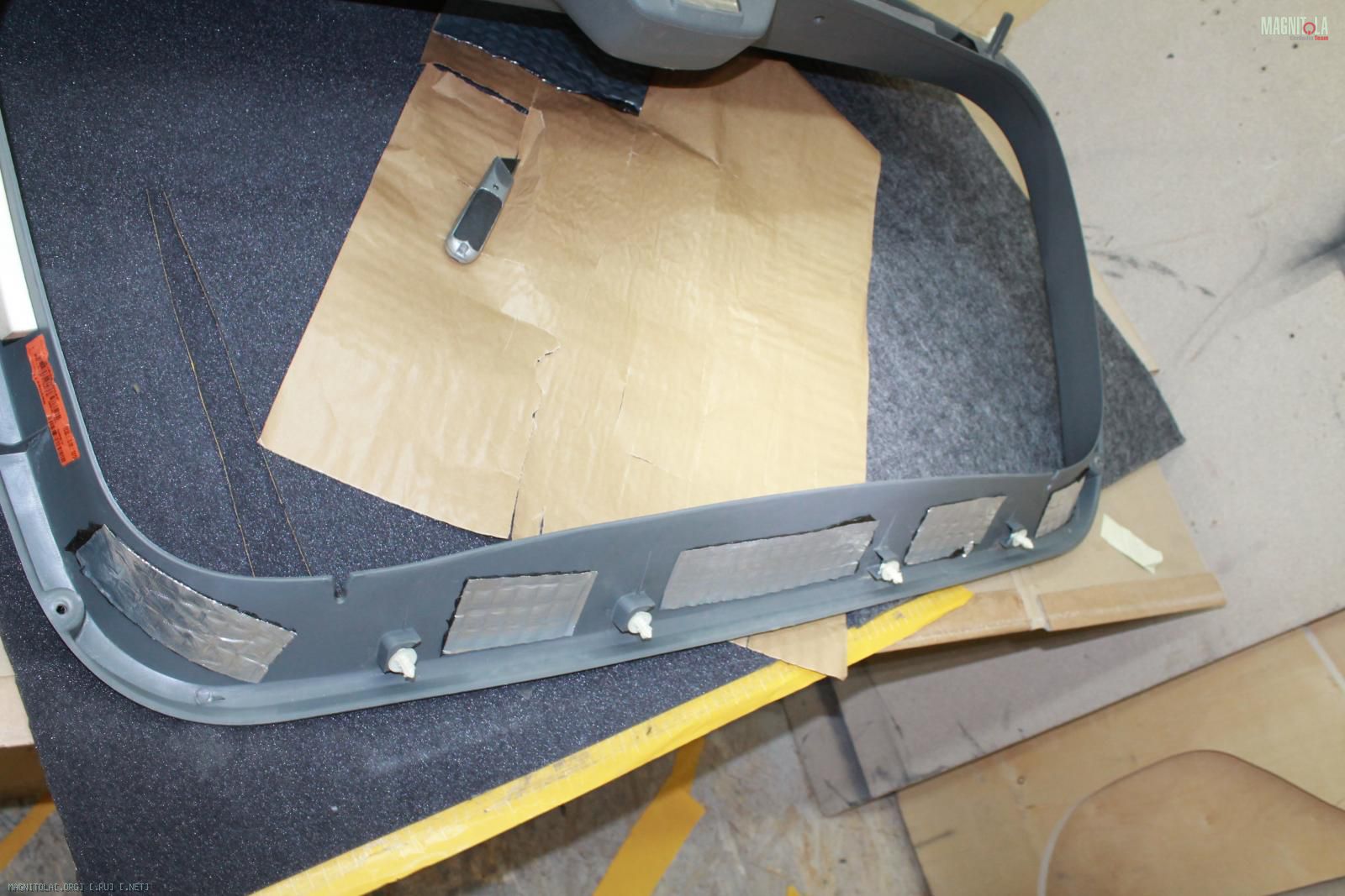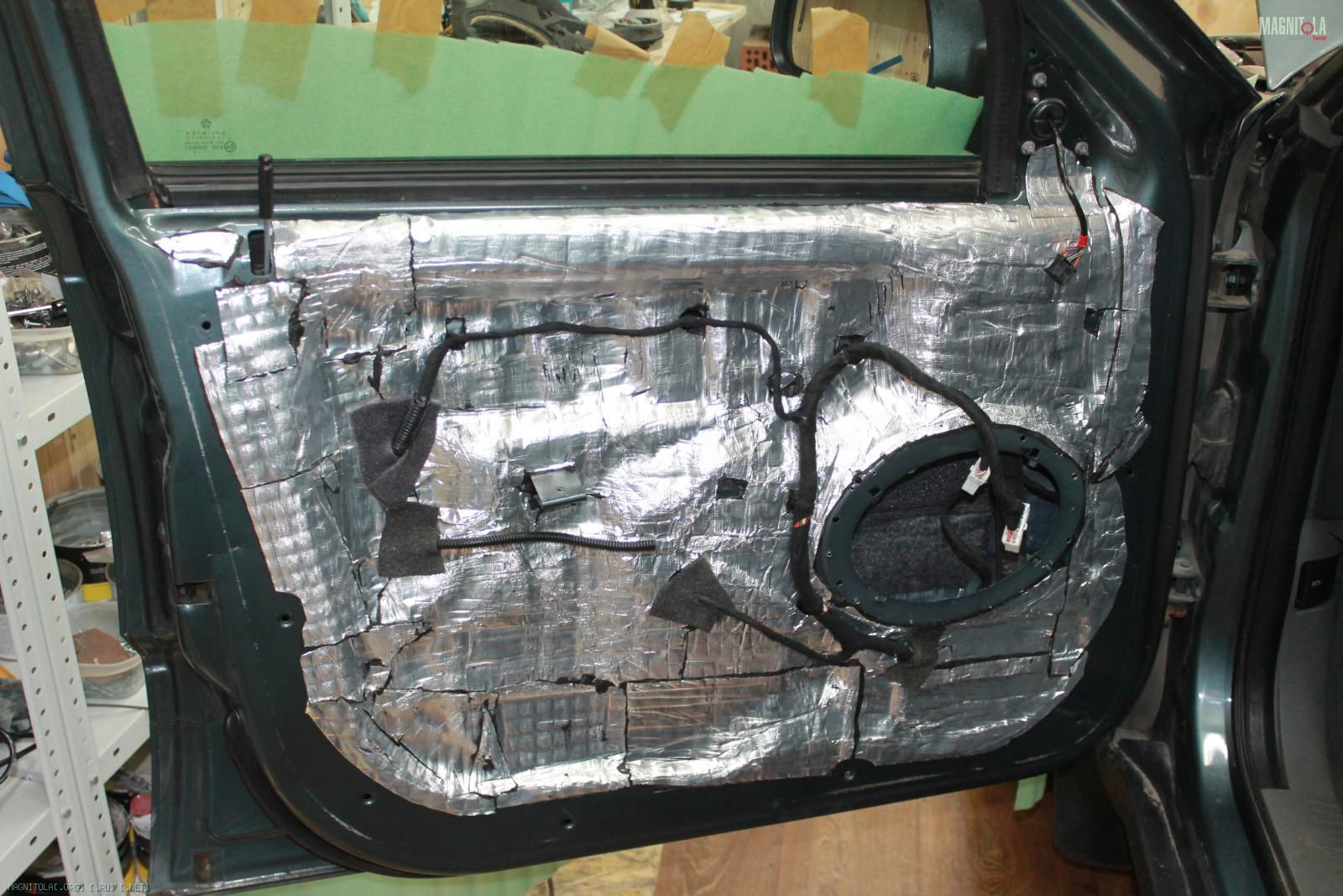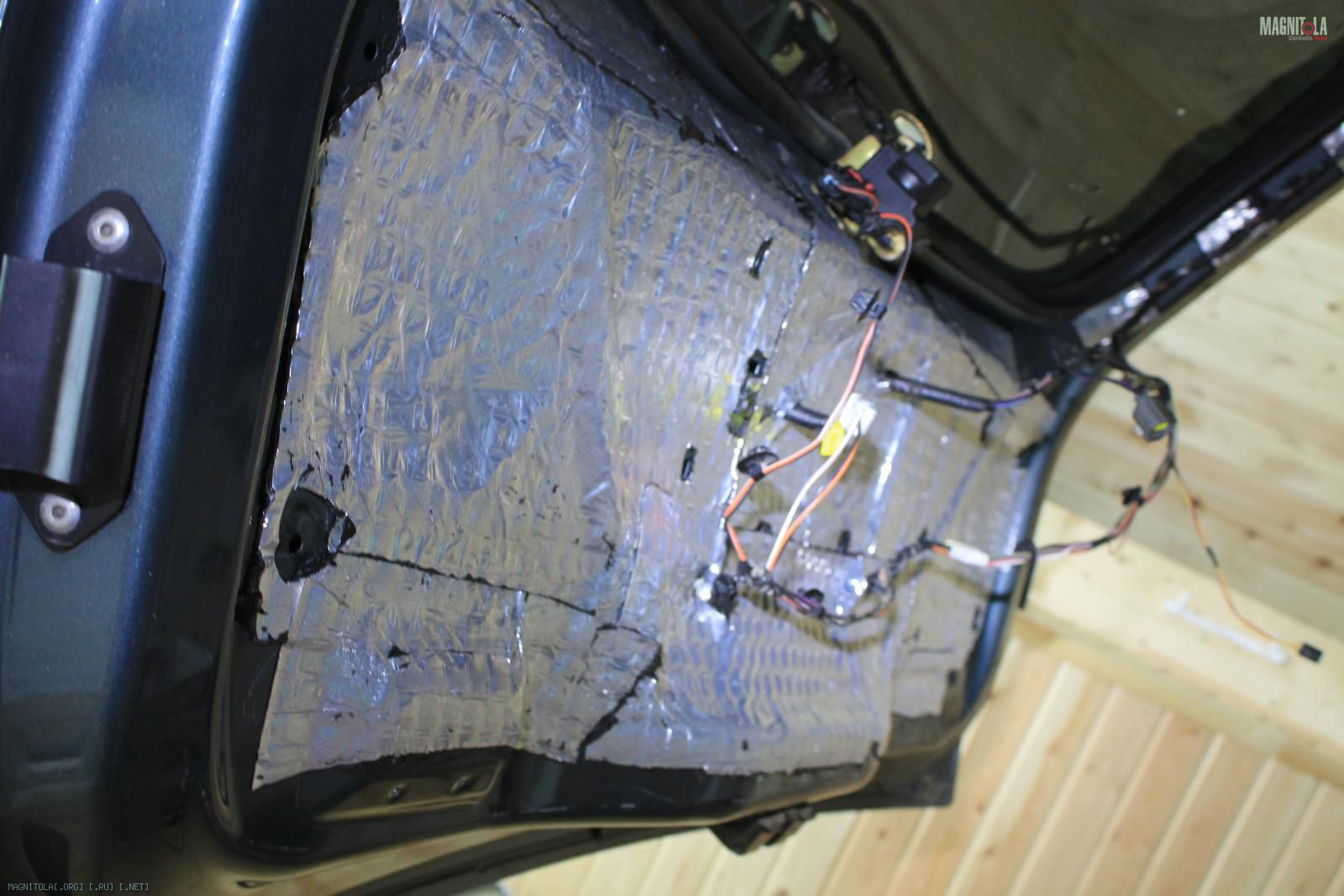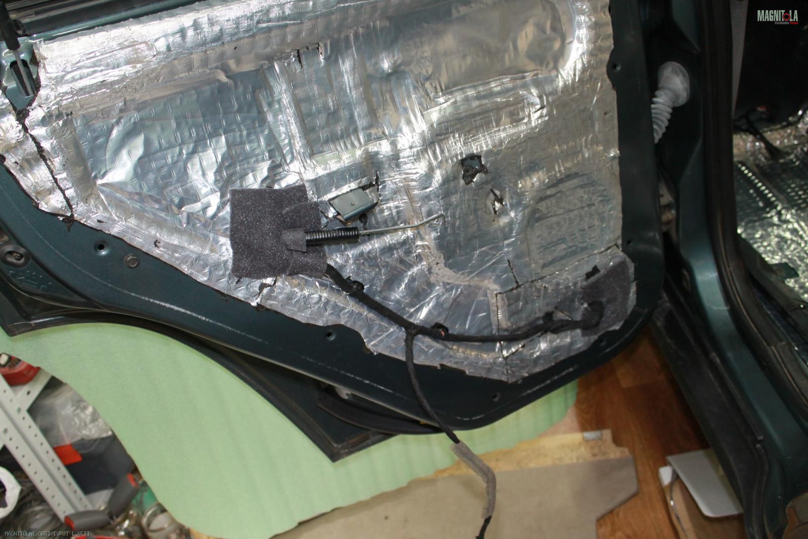 Виброизоляция дверей, греем, прикатываем, проклейка металической перегородки с тыловой стороны