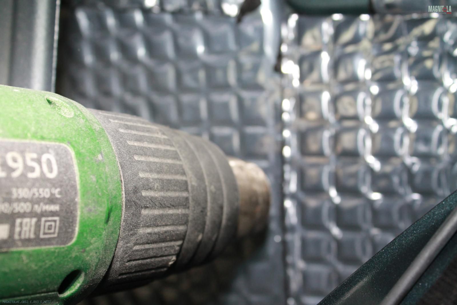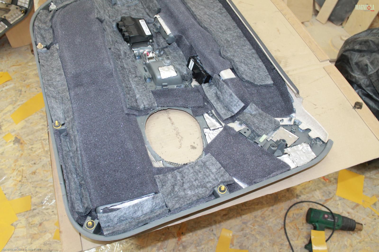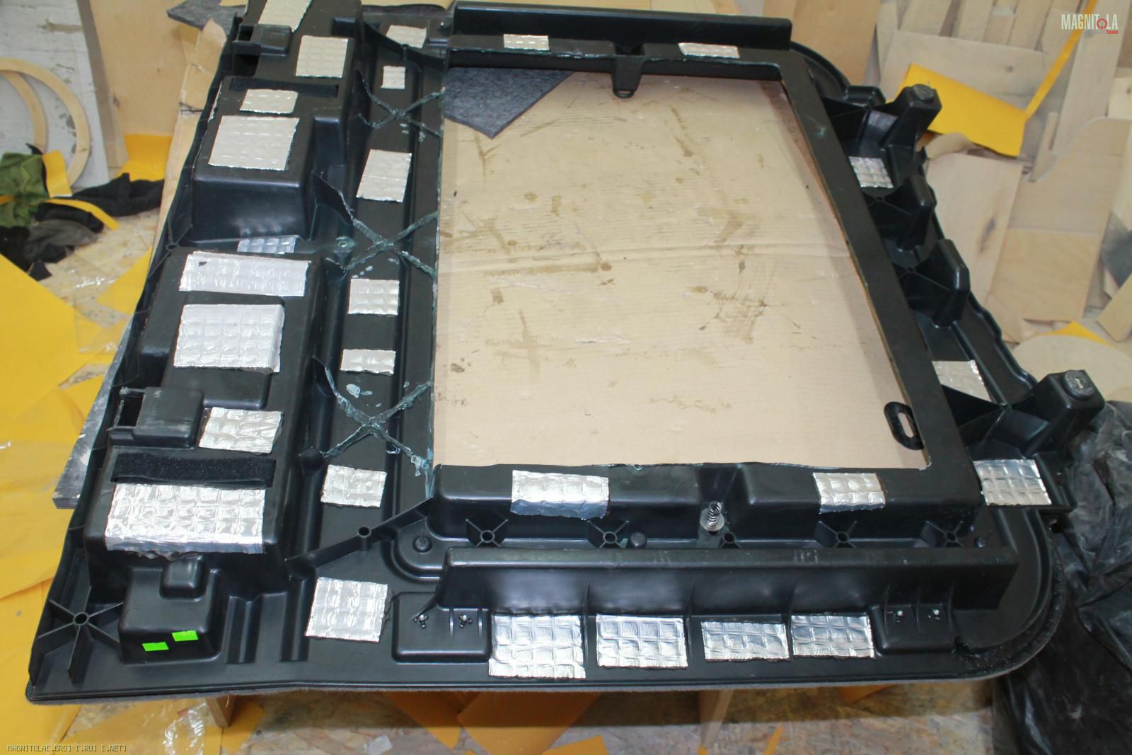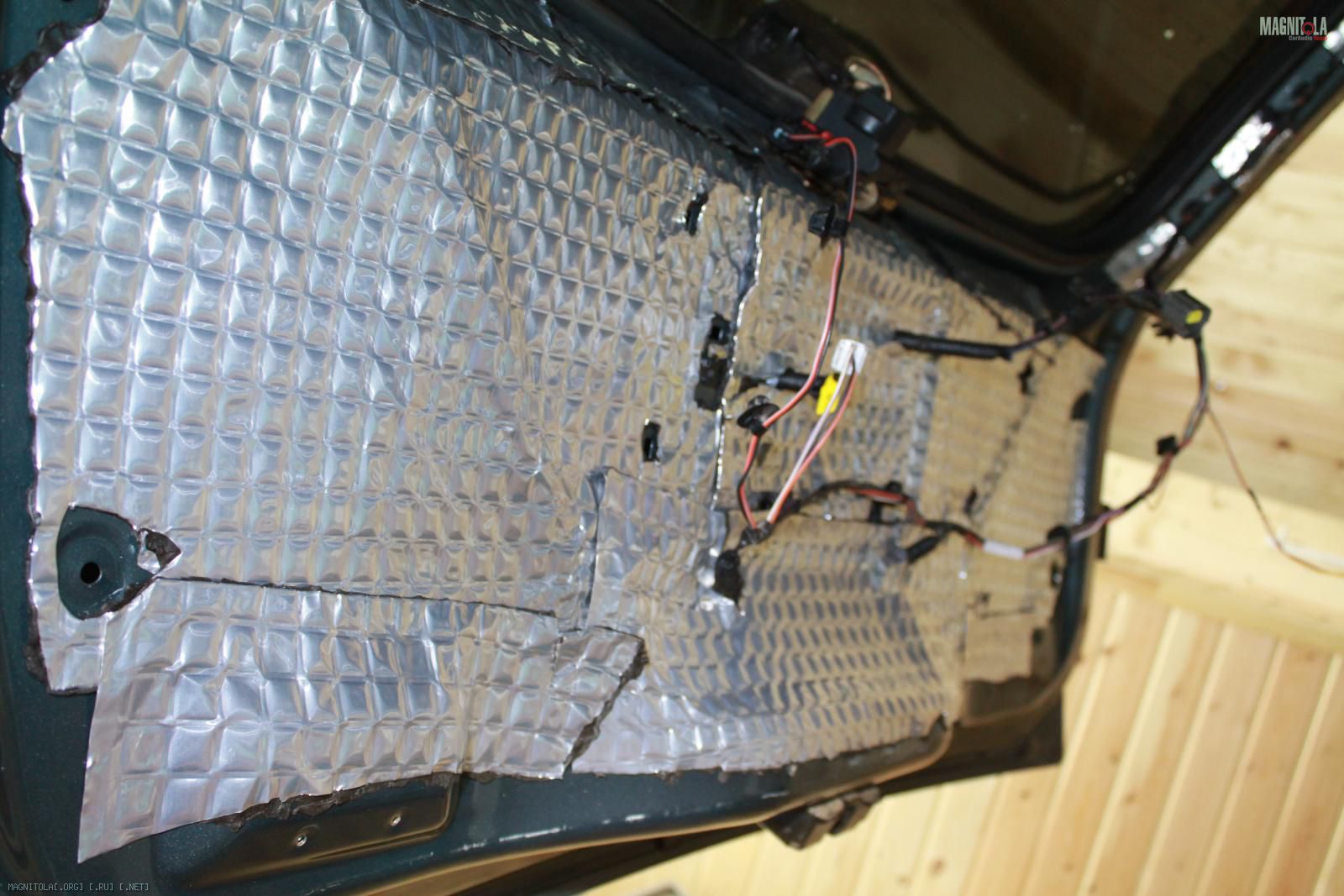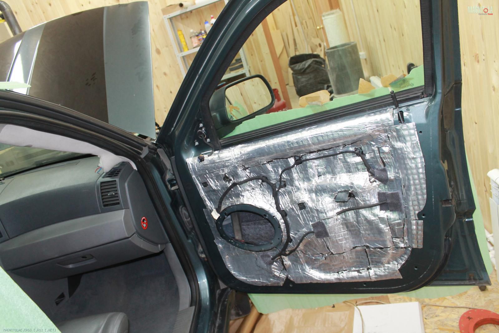 Виброизоляция дверей, греем, прикатываем, проклейка металической перегородки с тыловой стороны