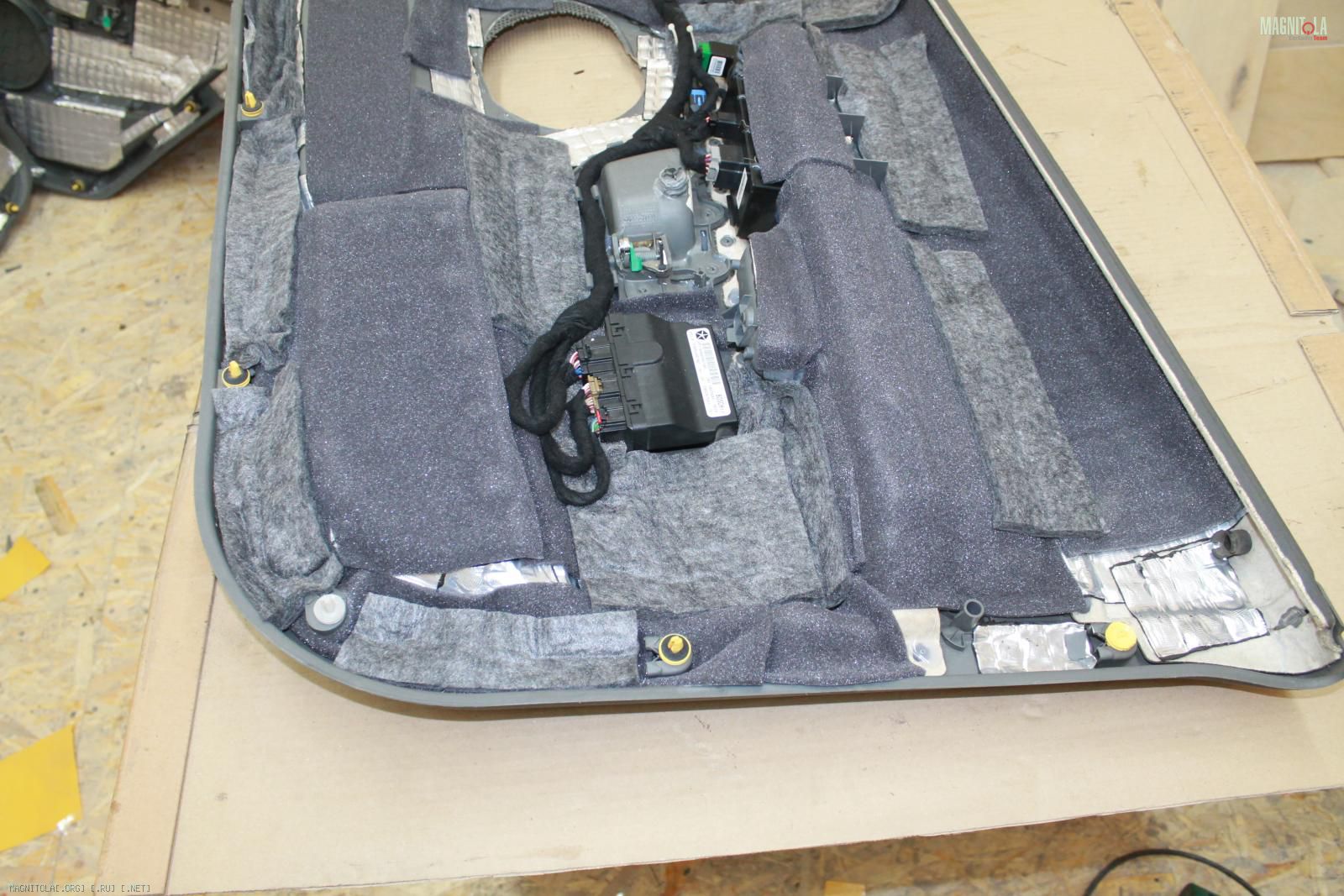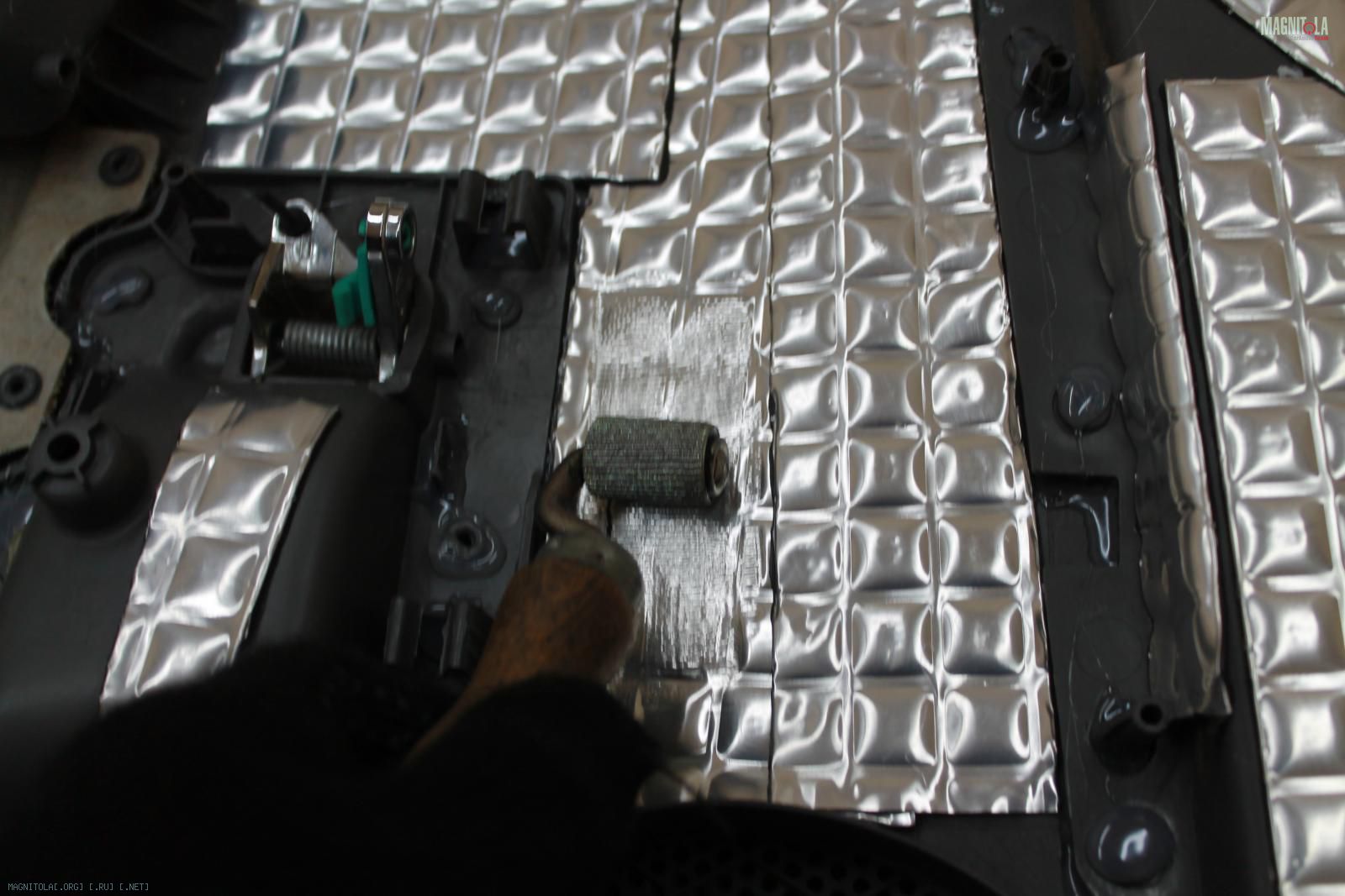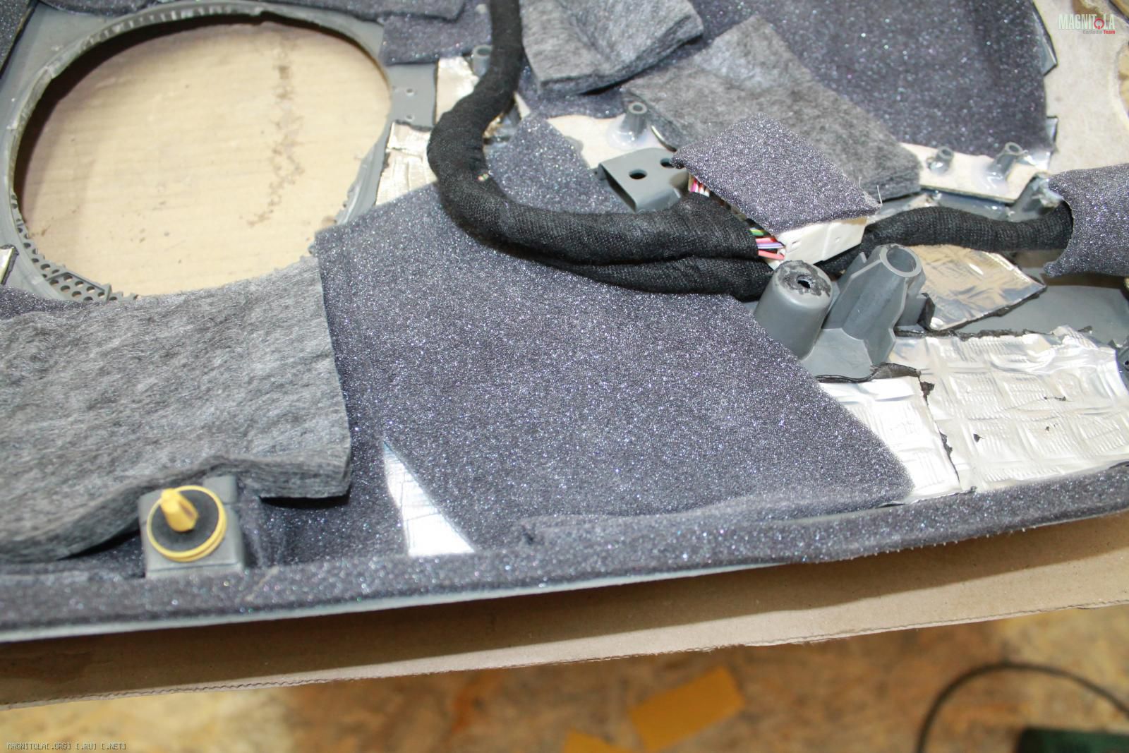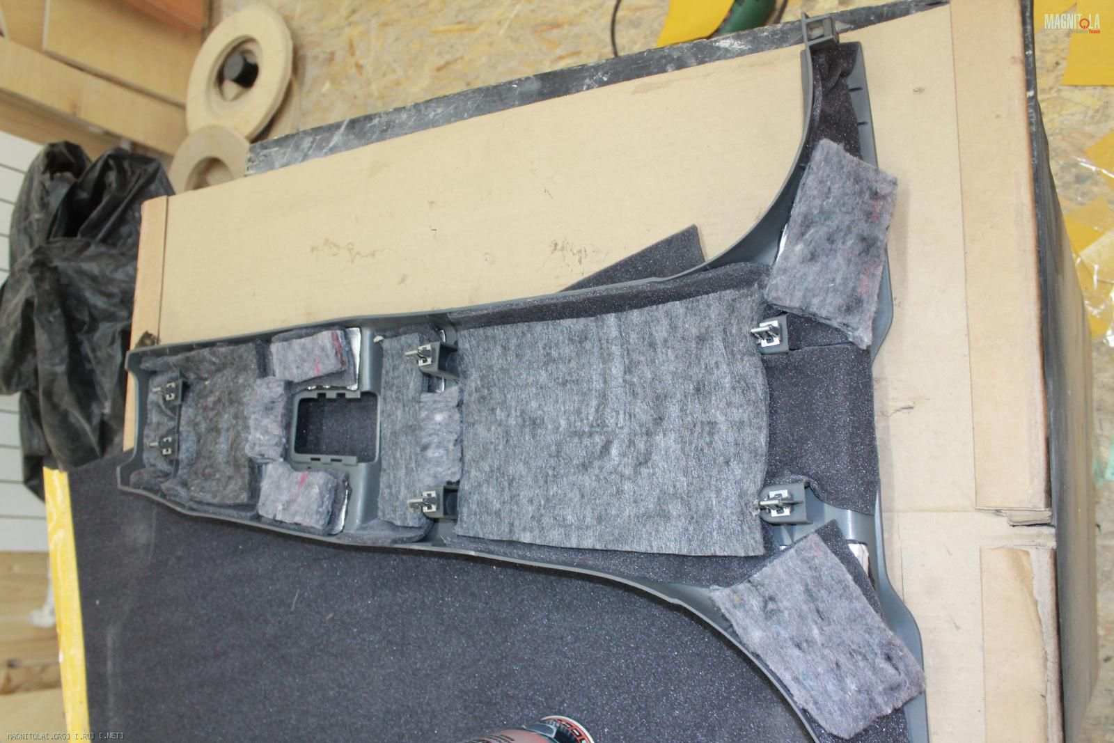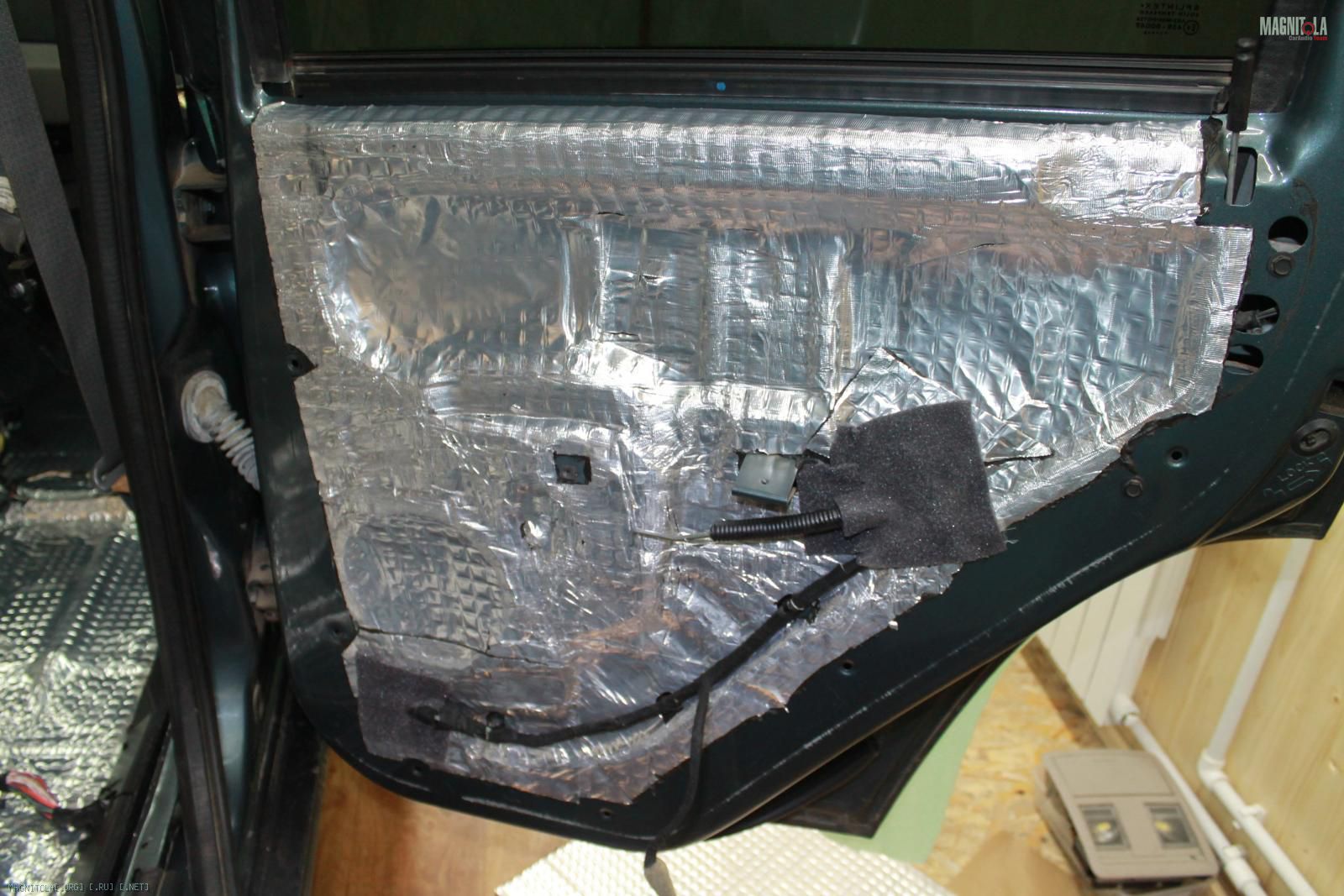 Виброизоляция дверей, греем, прикатываем, проклейка металической перегородки с тыловой стороны