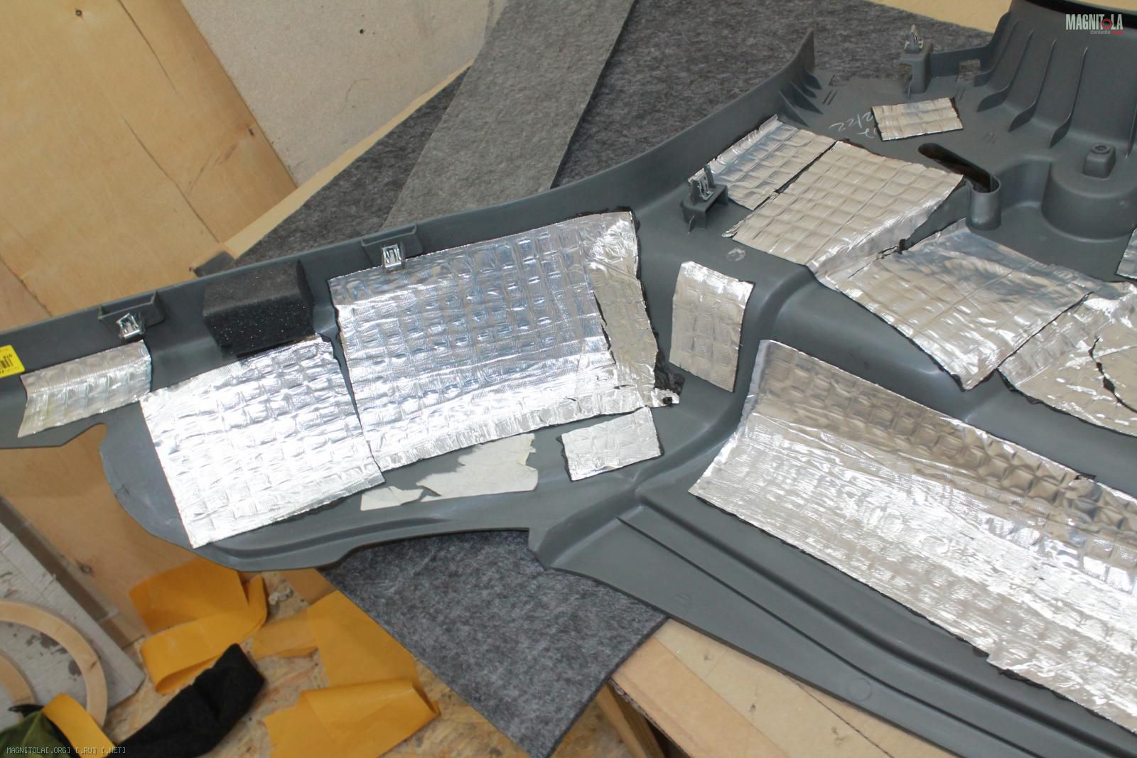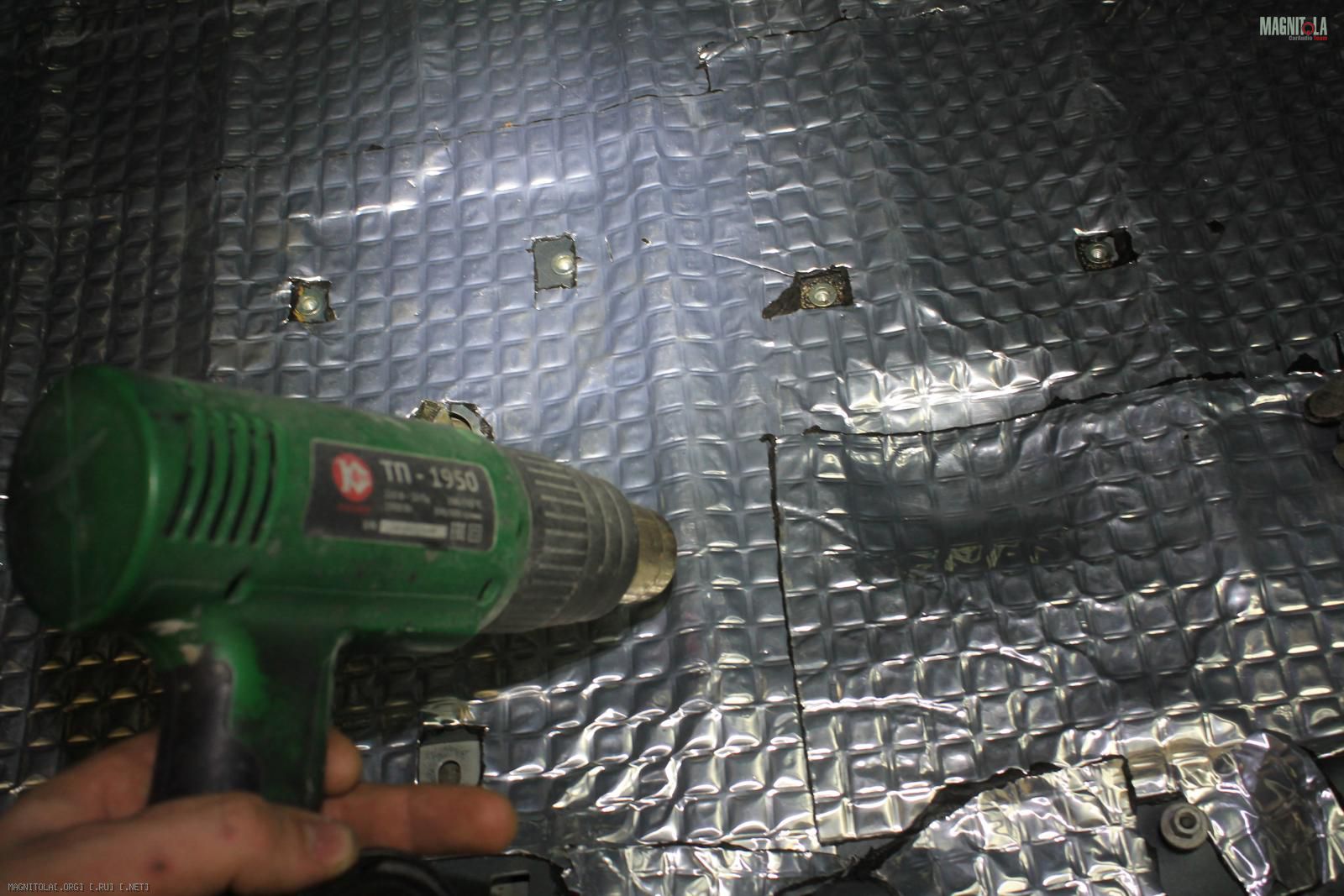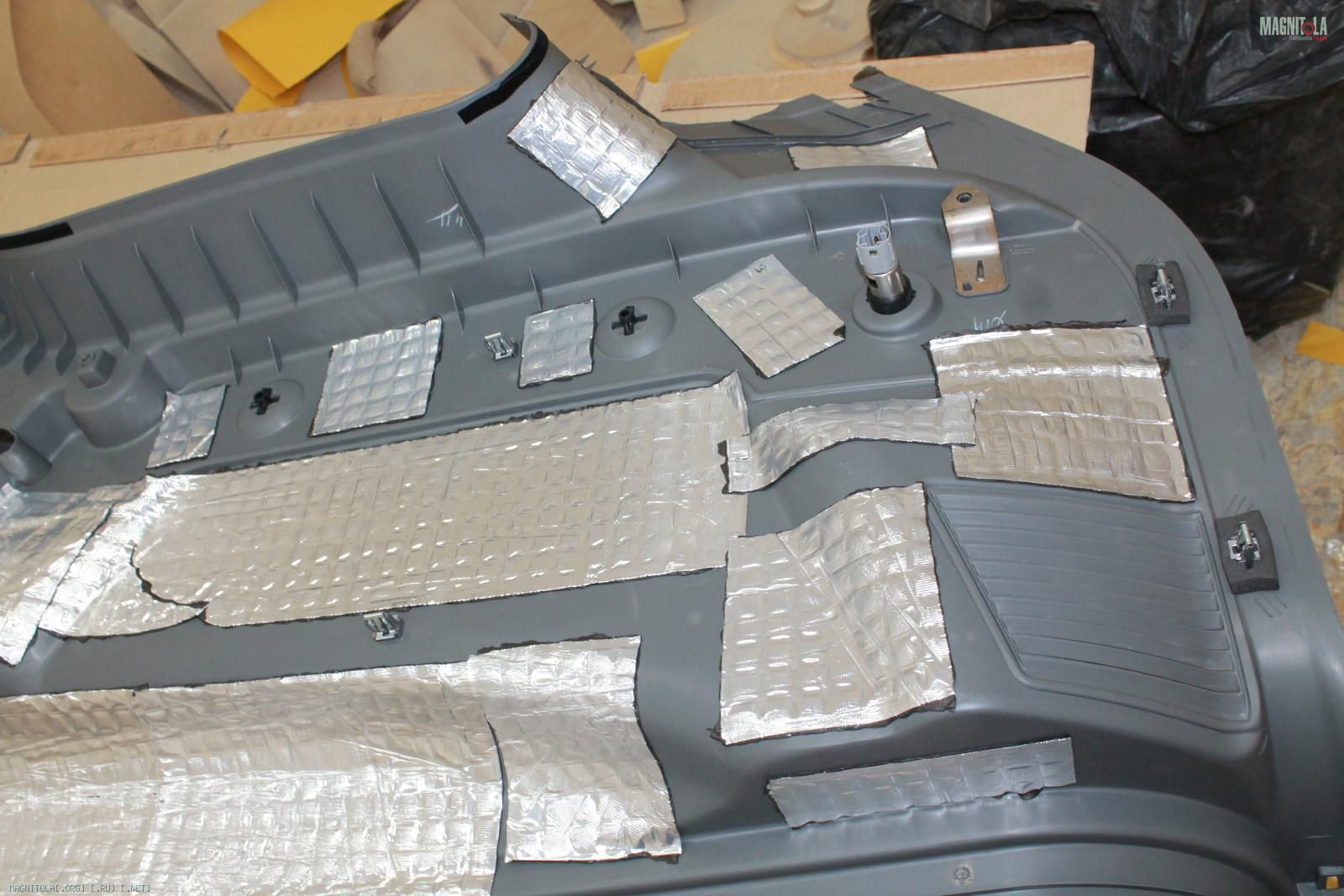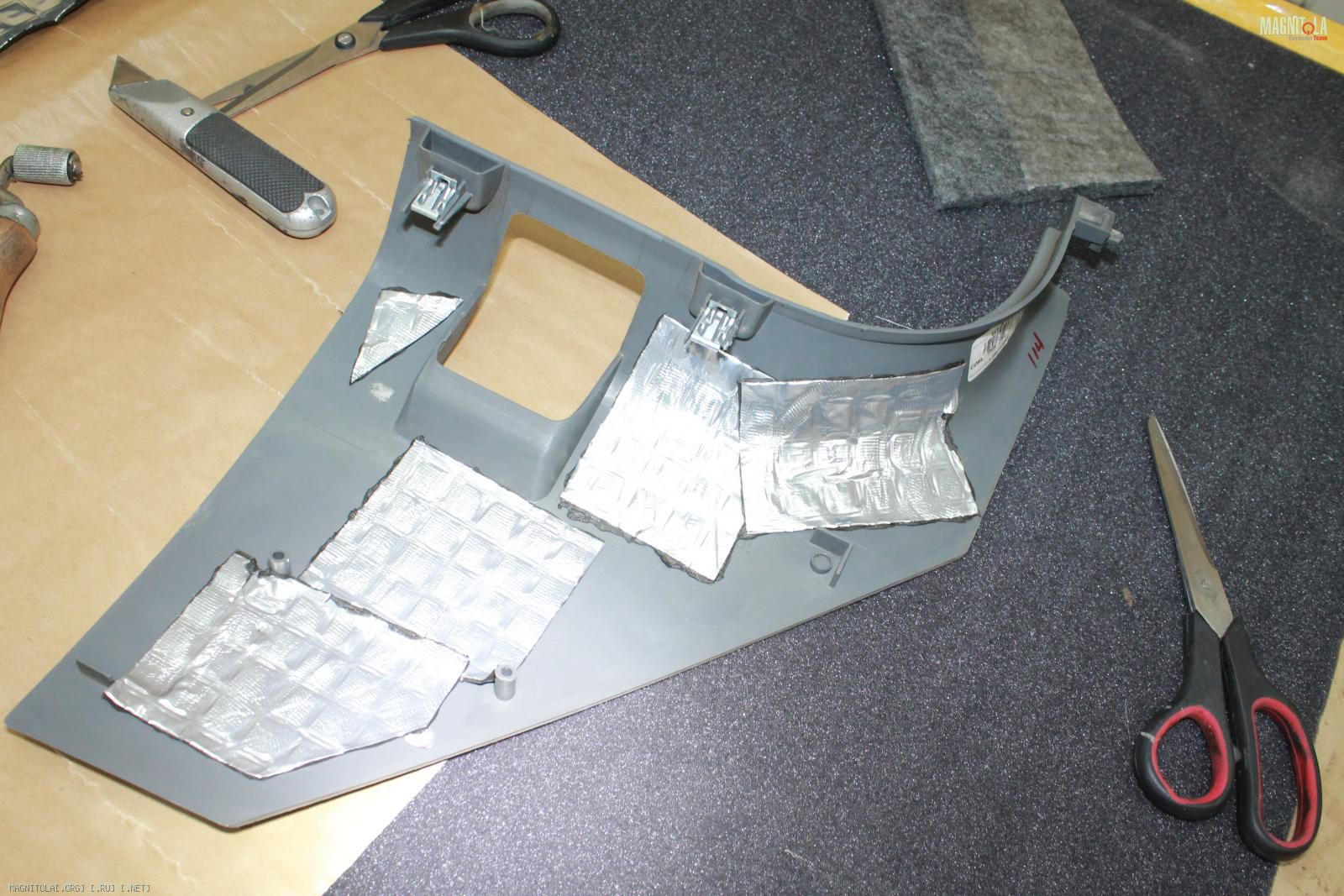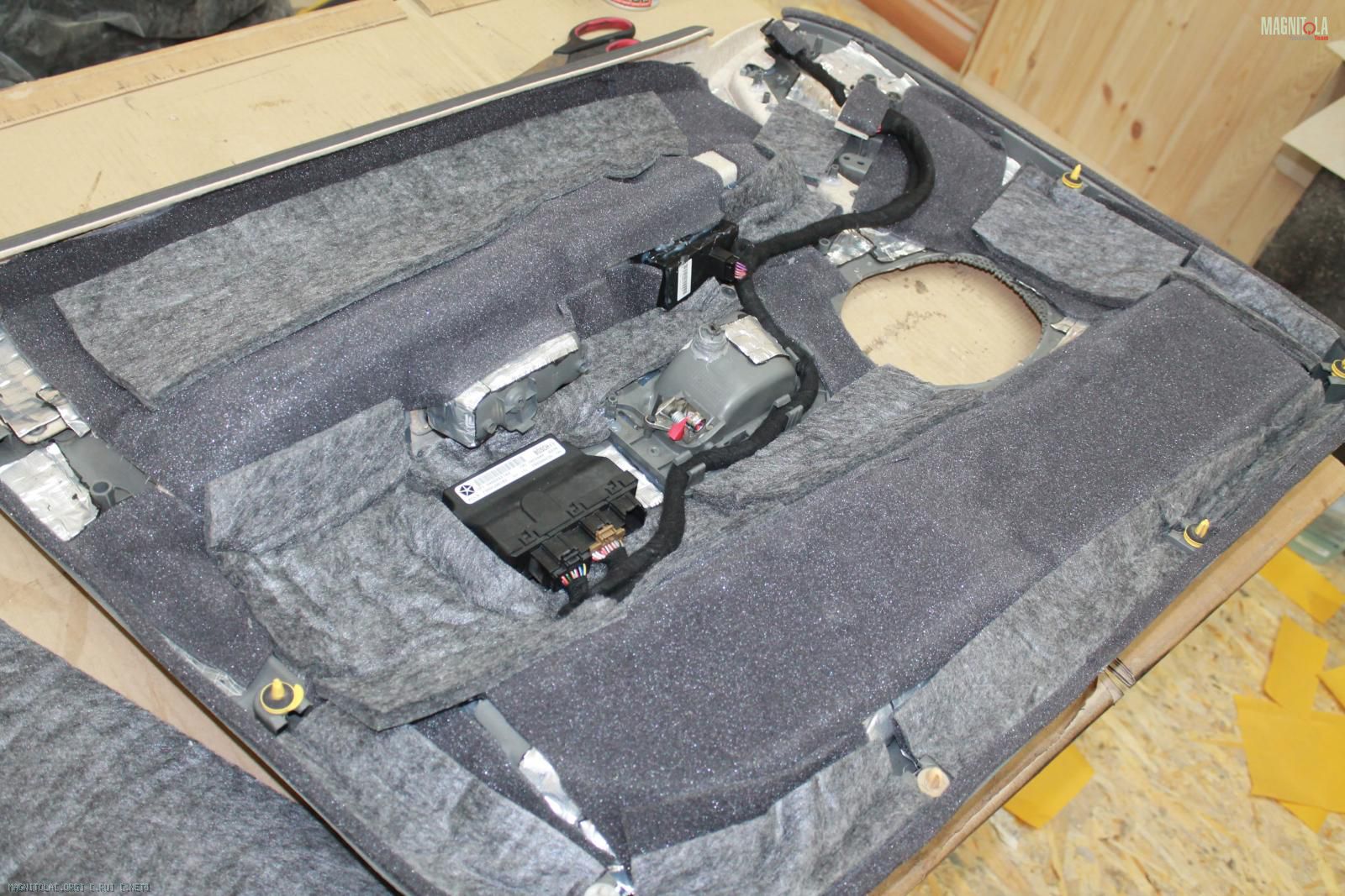 Виброизоляция дверей, греем, прикатываем, проклейка металической перегородки с тыловой стороны