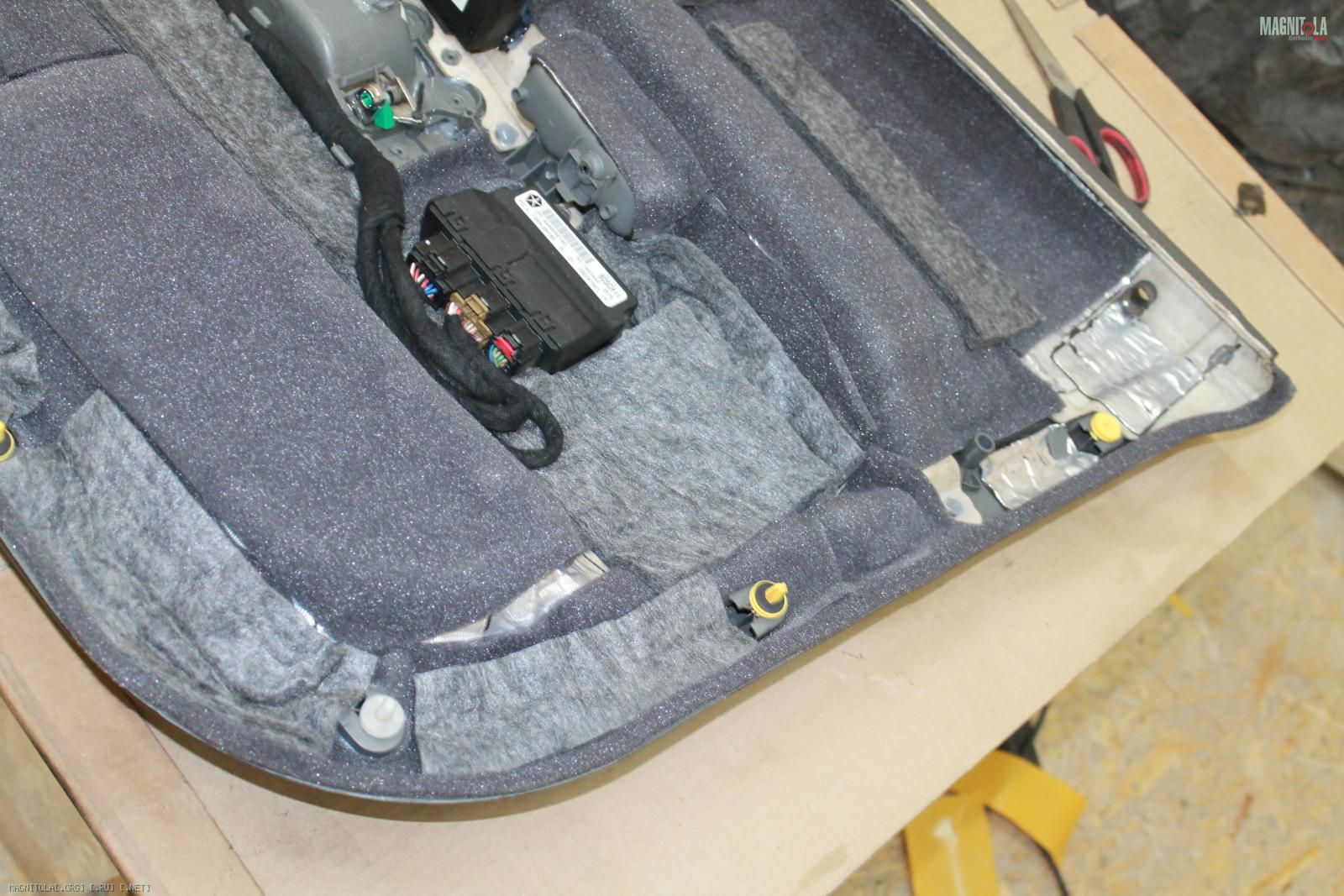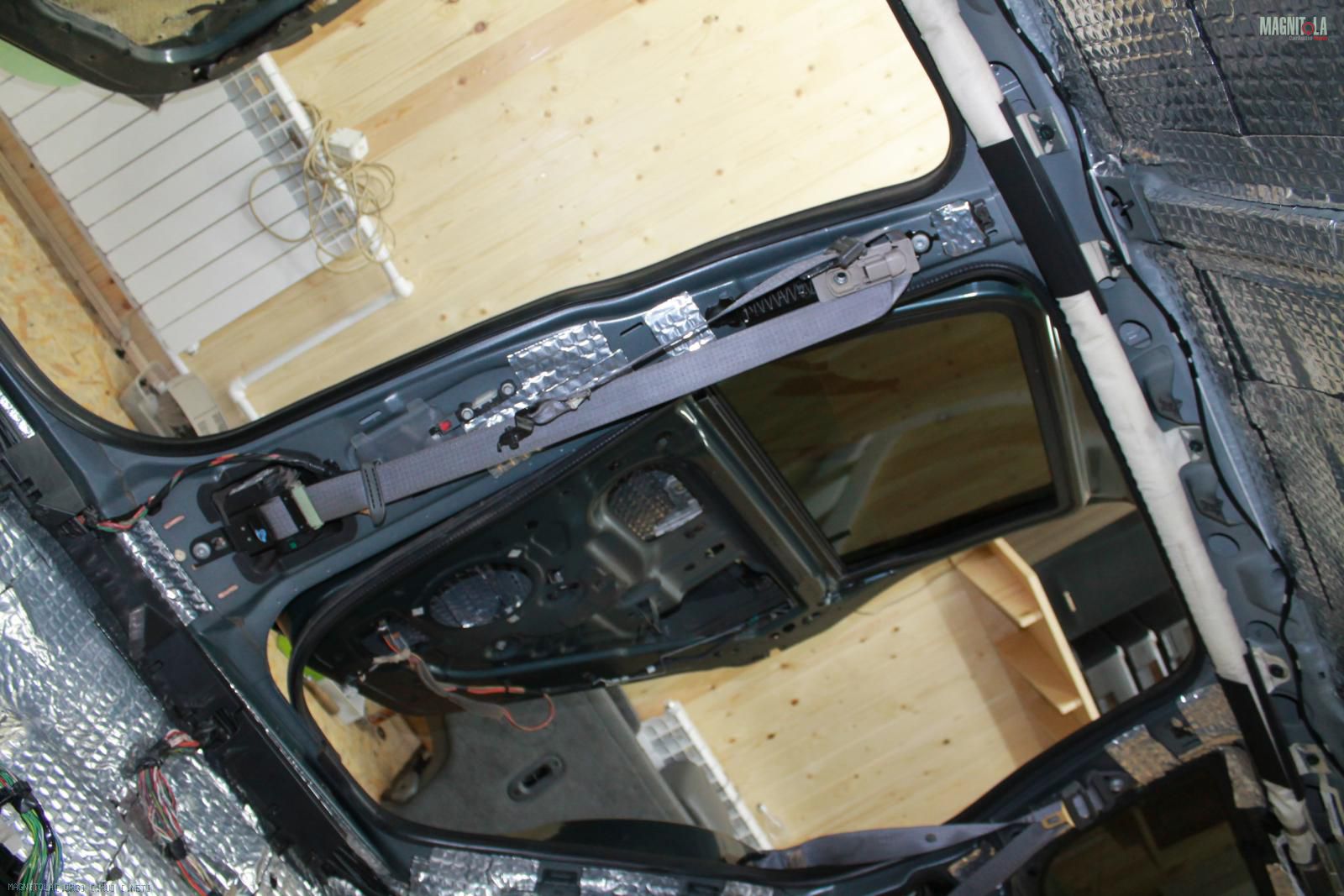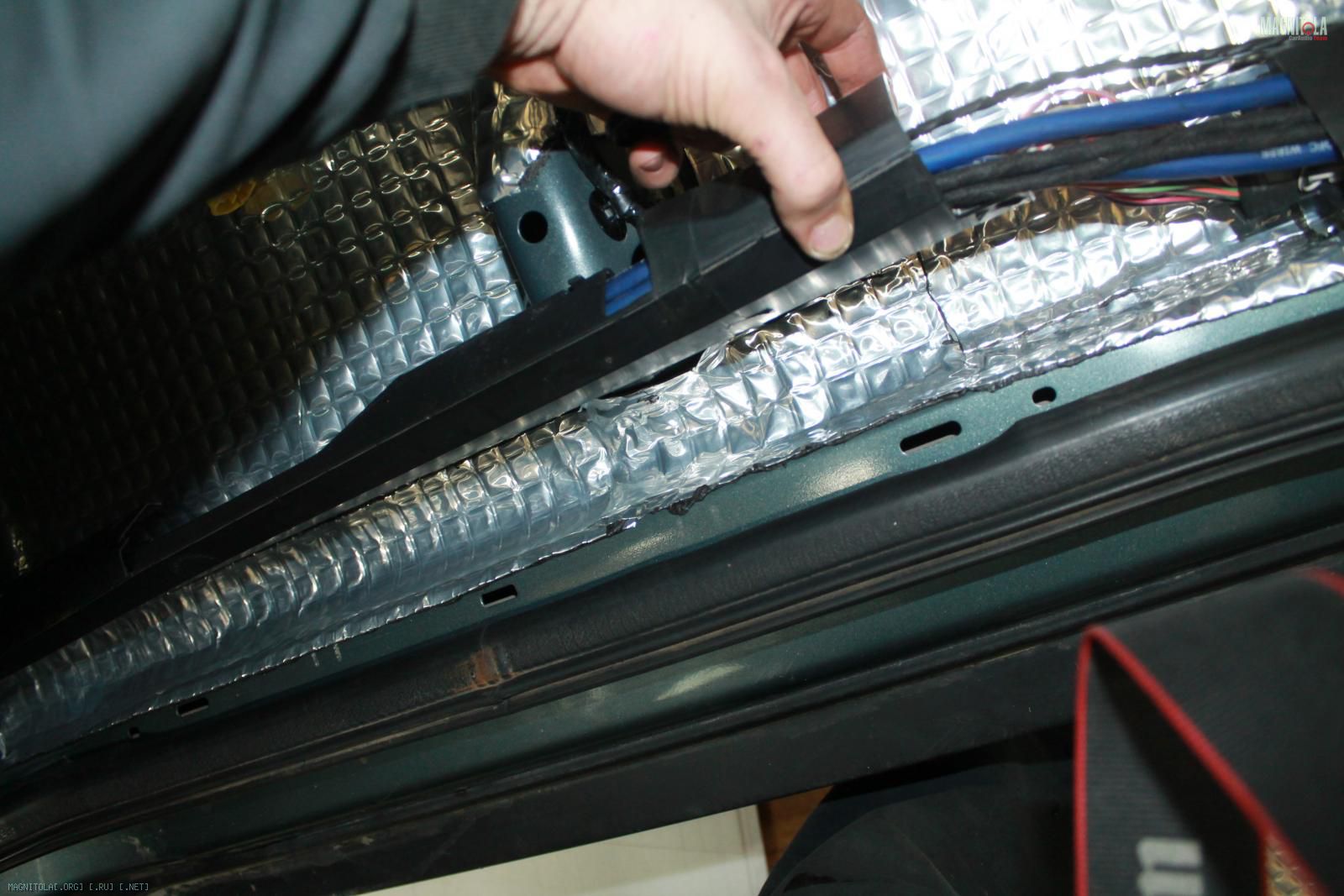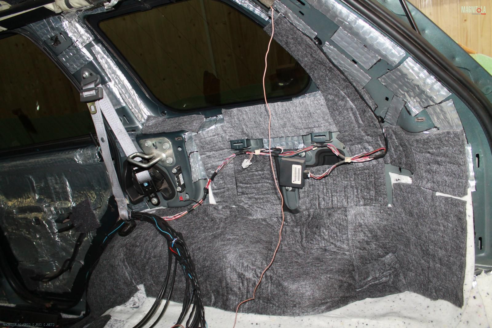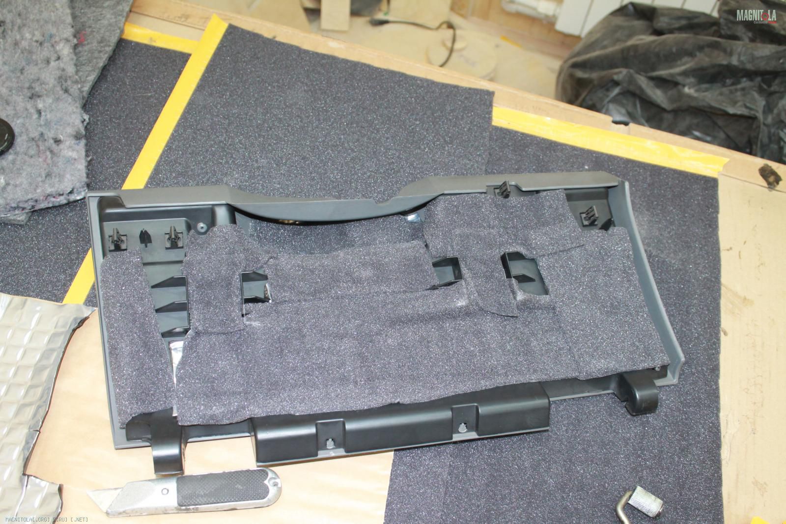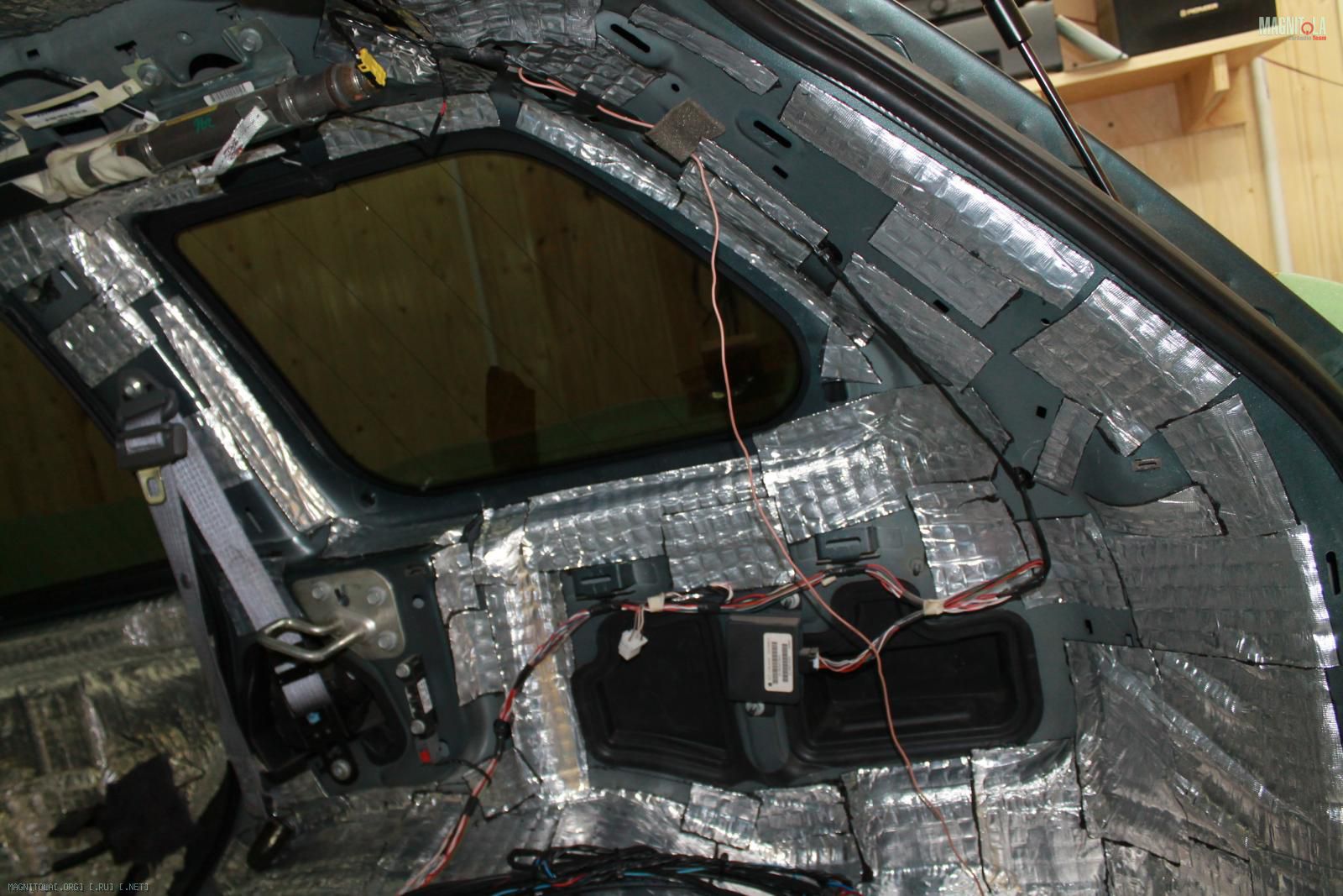 Виброизоляция дверей, греем, прикатываем, проклейка металической перегородки с тыловой стороны