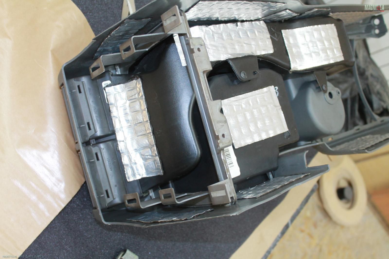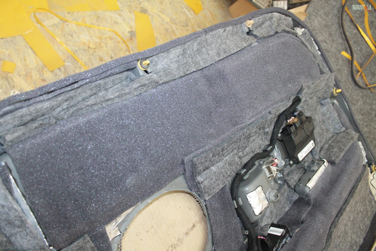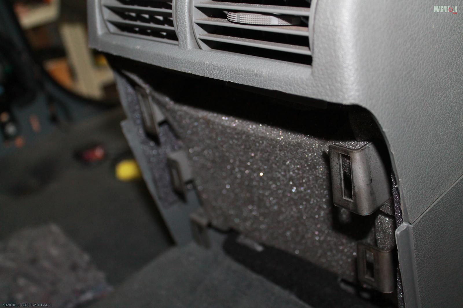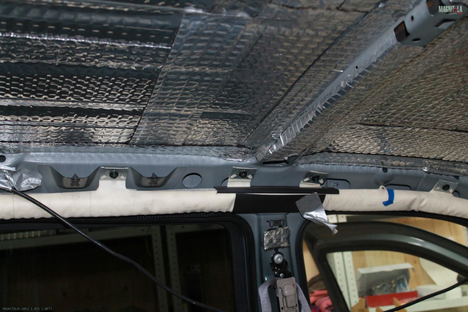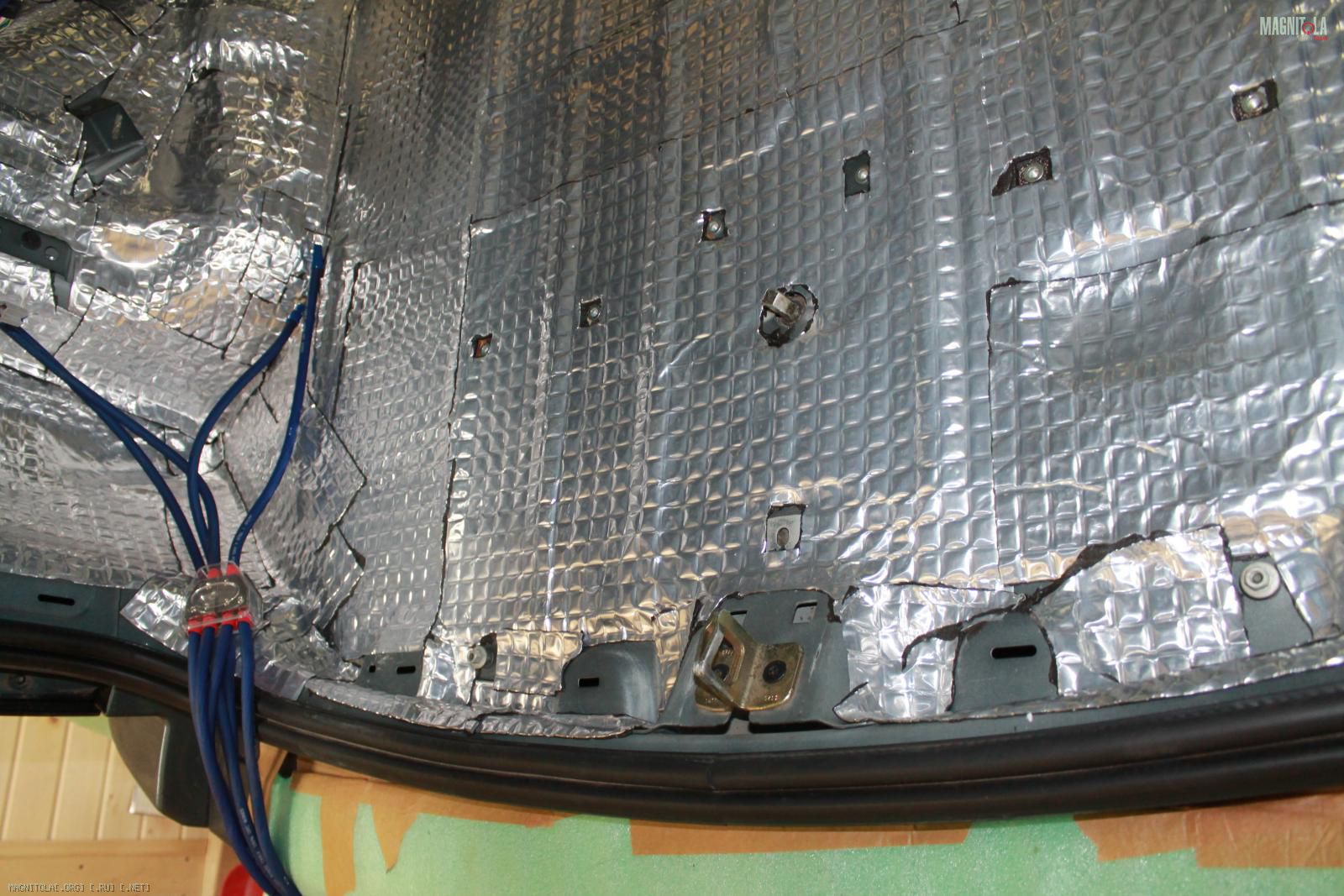 Виброизоляция дверей, греем, прикатываем, проклейка металической перегородки с тыловой стороны