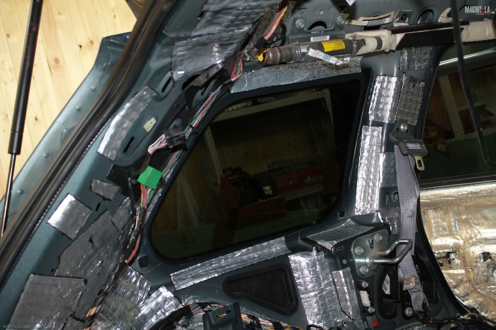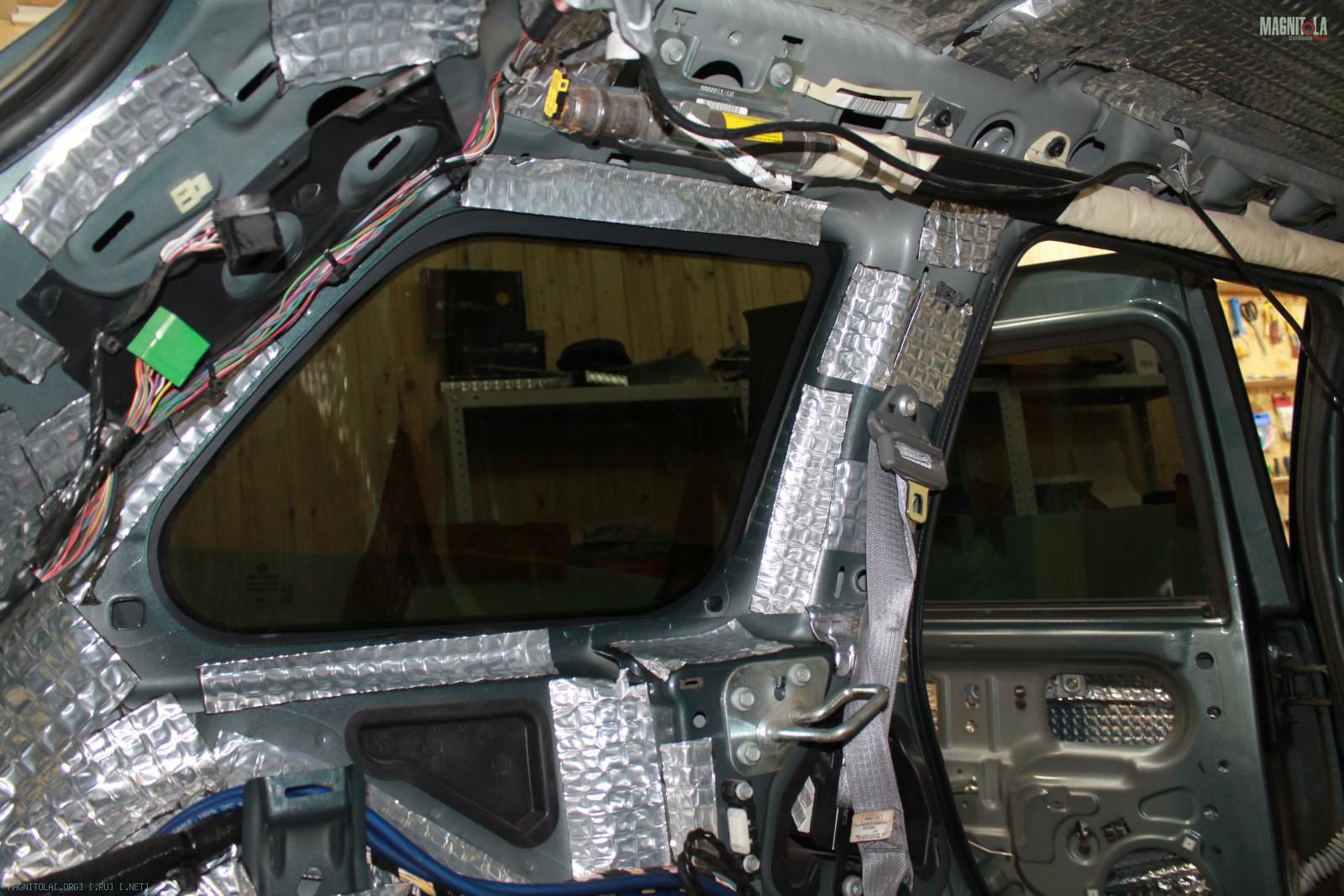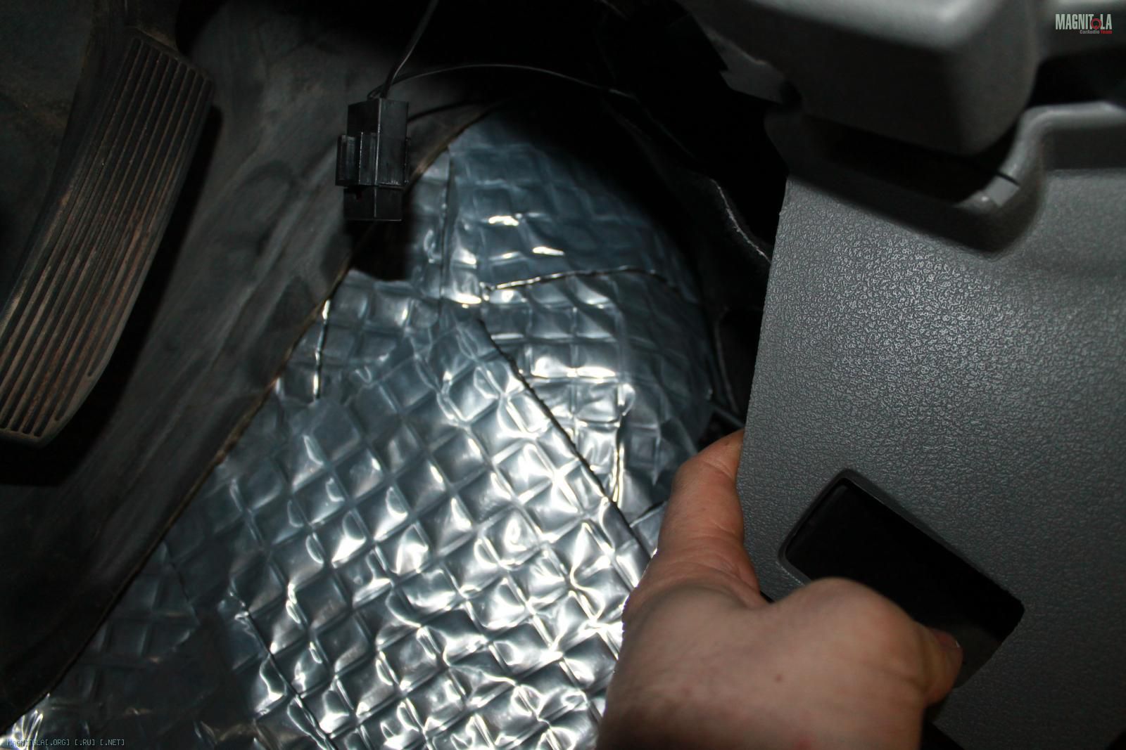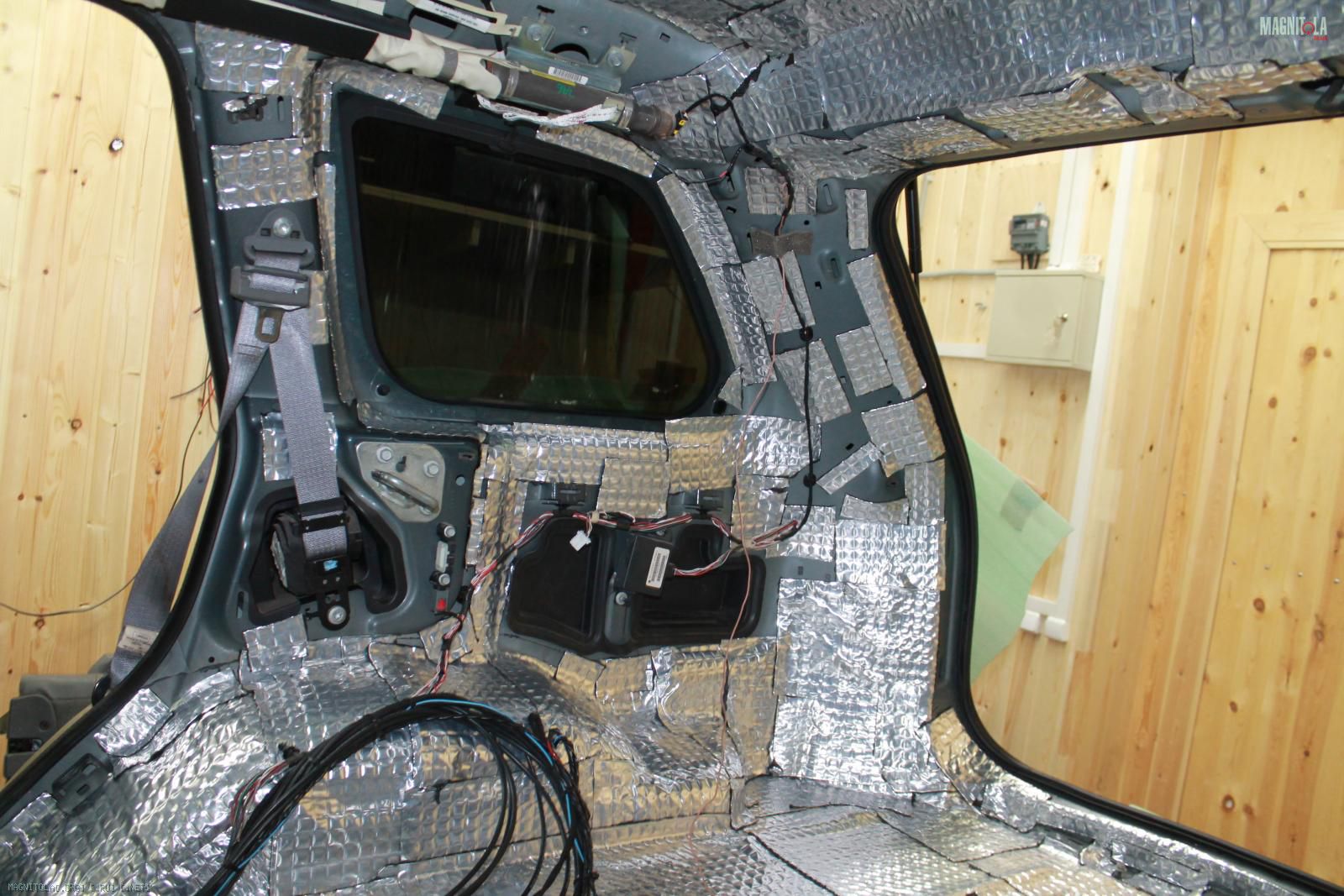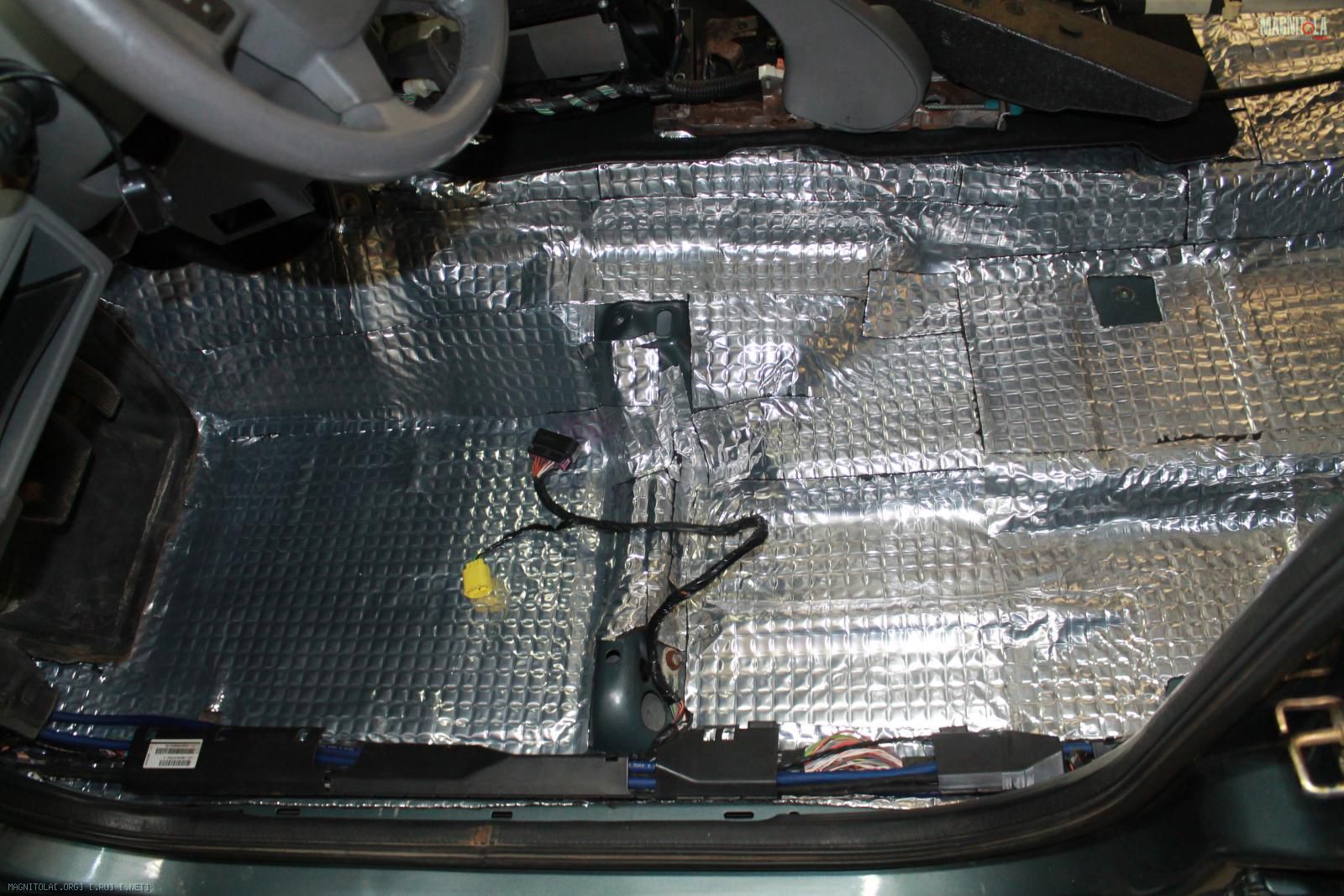 Виброизоляция дверей, греем, прикатываем, проклейка металической перегородки с тыловой стороны