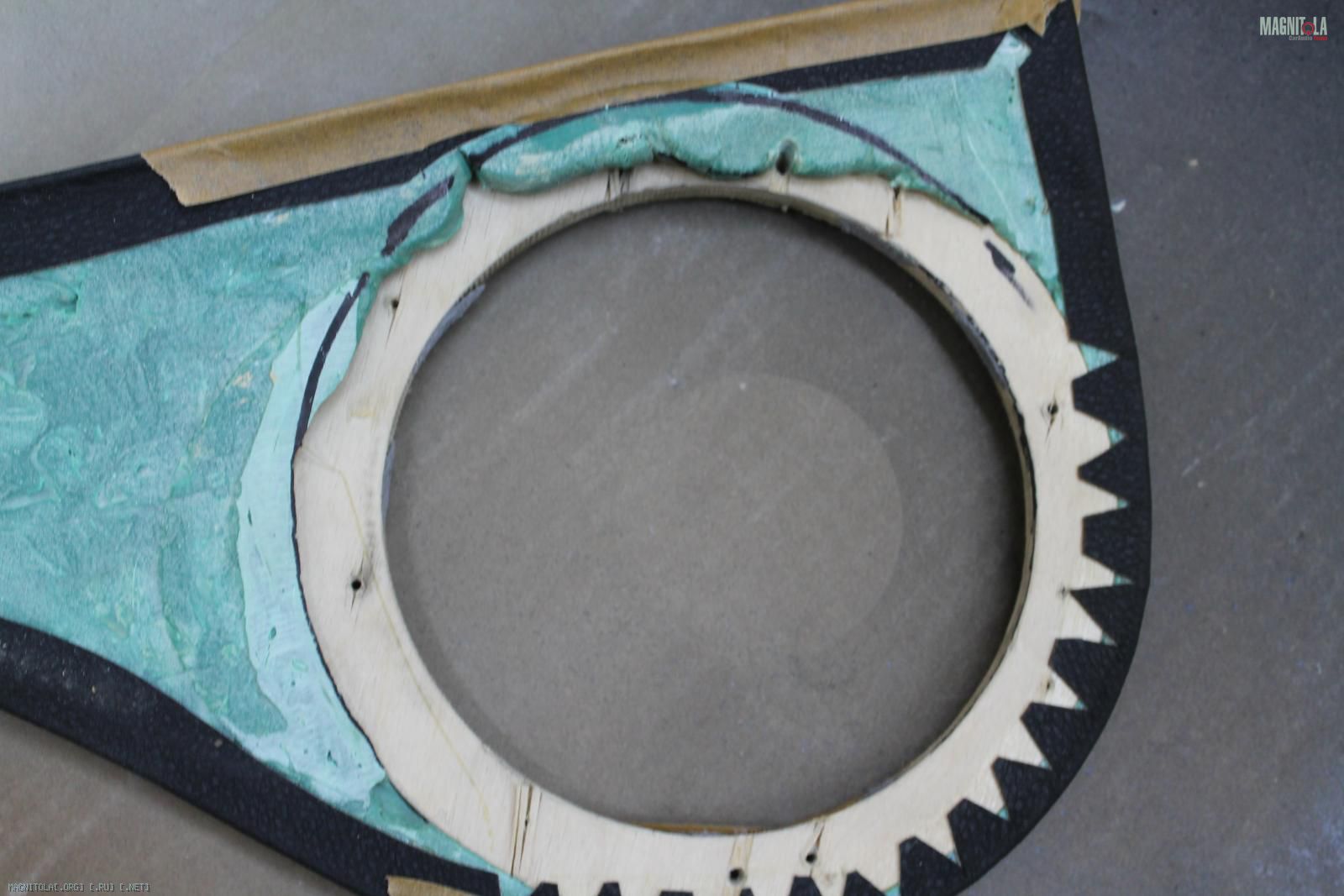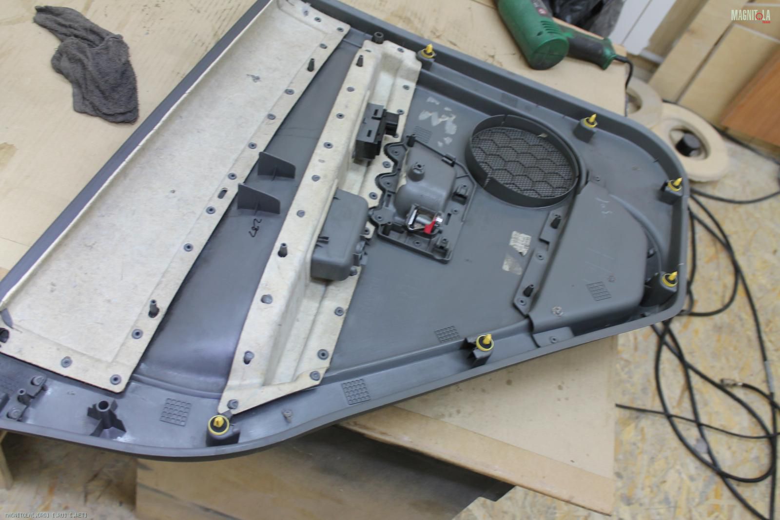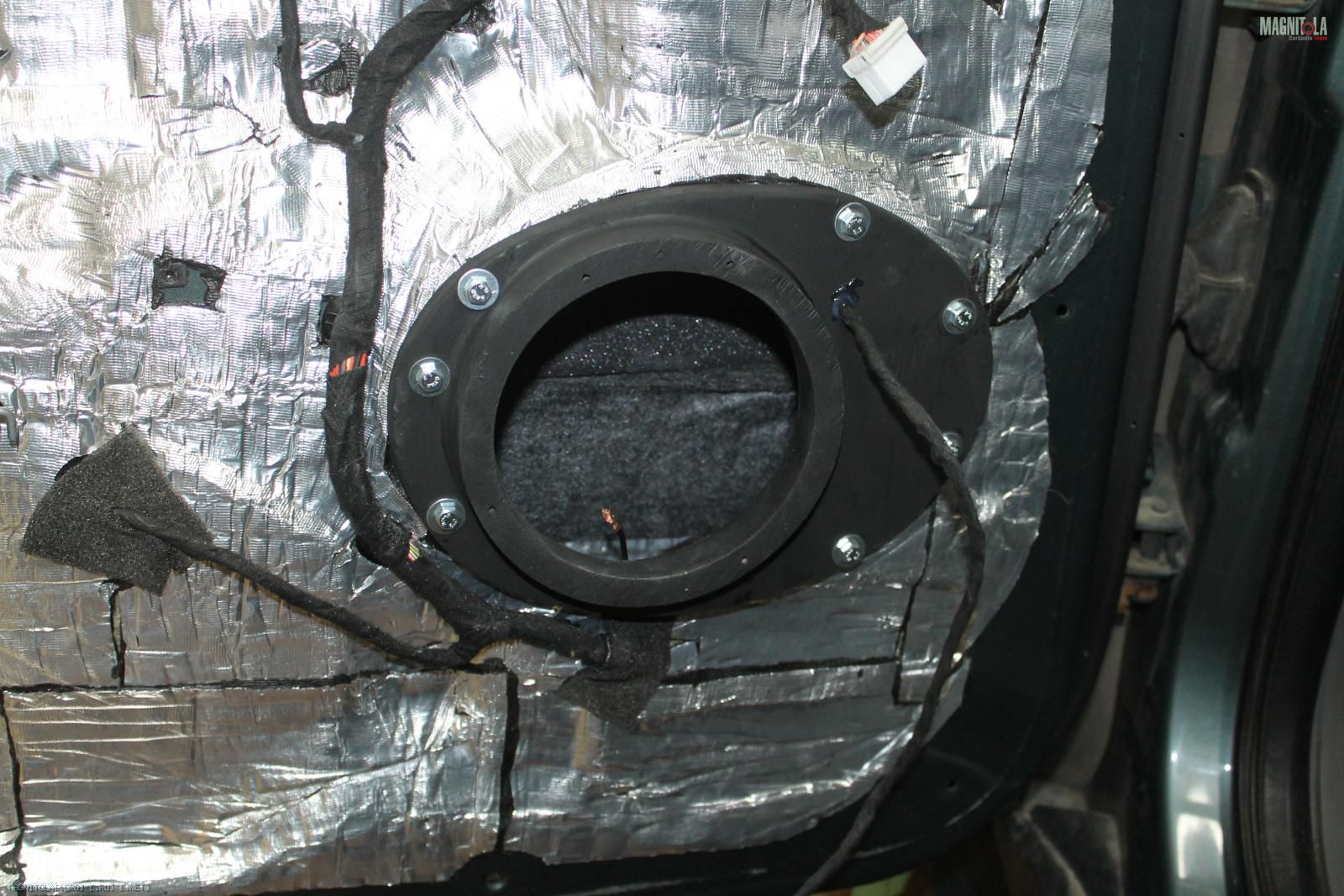 Изготовили правильные проставочные кольца, убрали тоннель, чтобы динамик играл сразу в дверь