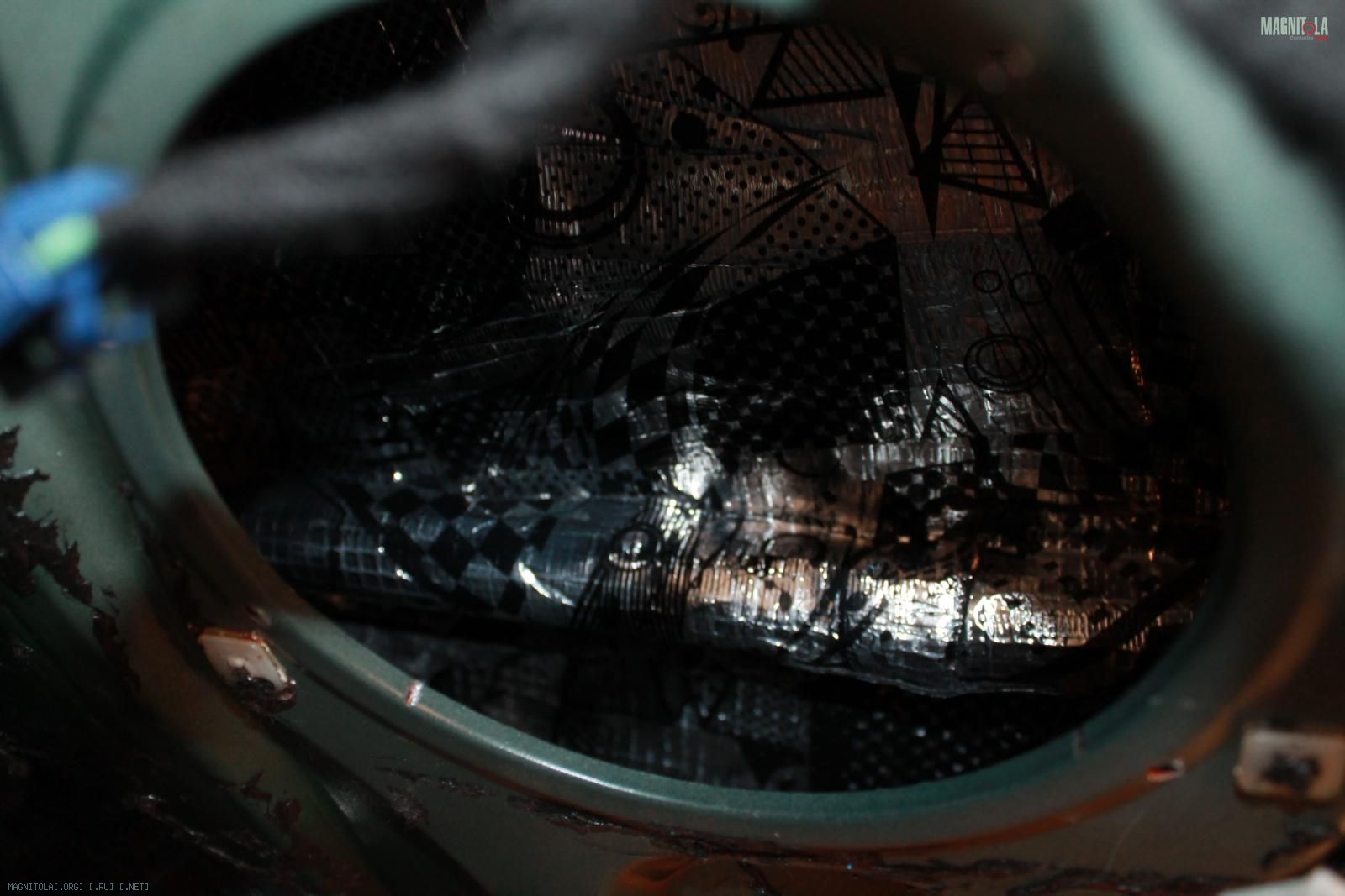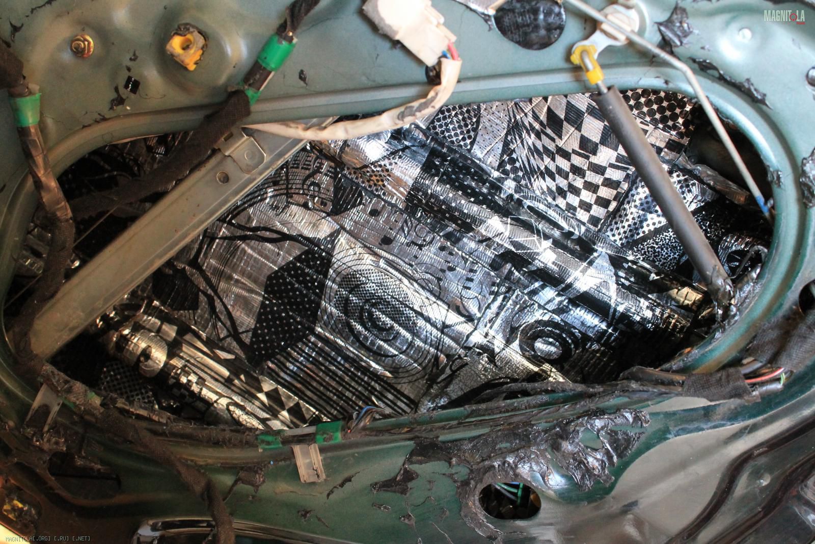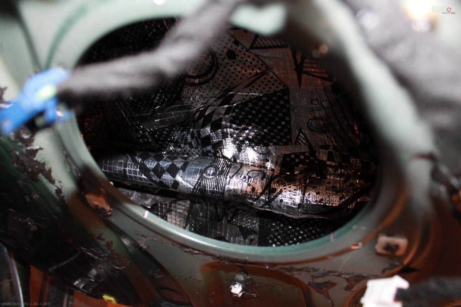 Да все более менее правильно, просто битопластом(шумкой) заклеены сетки, через которым динамикам и так не сладко играть. Получалось, что 70-80% звука, а то и более, бубнило под обшивкой)