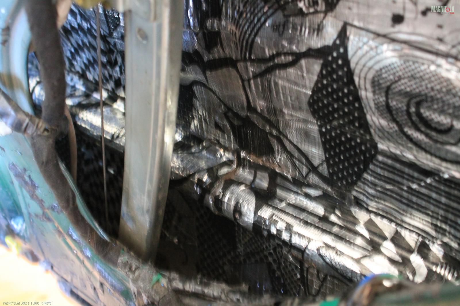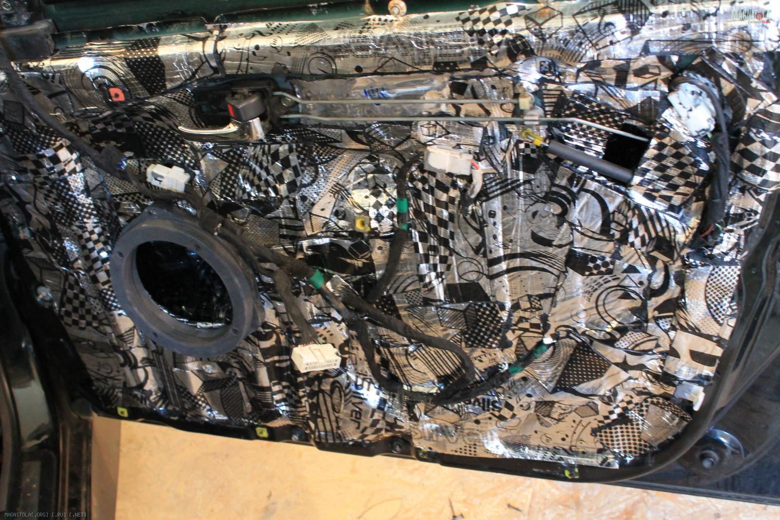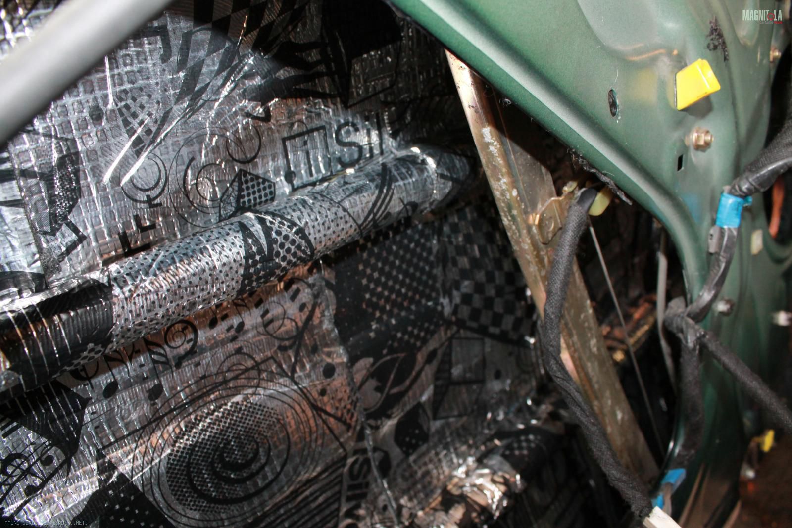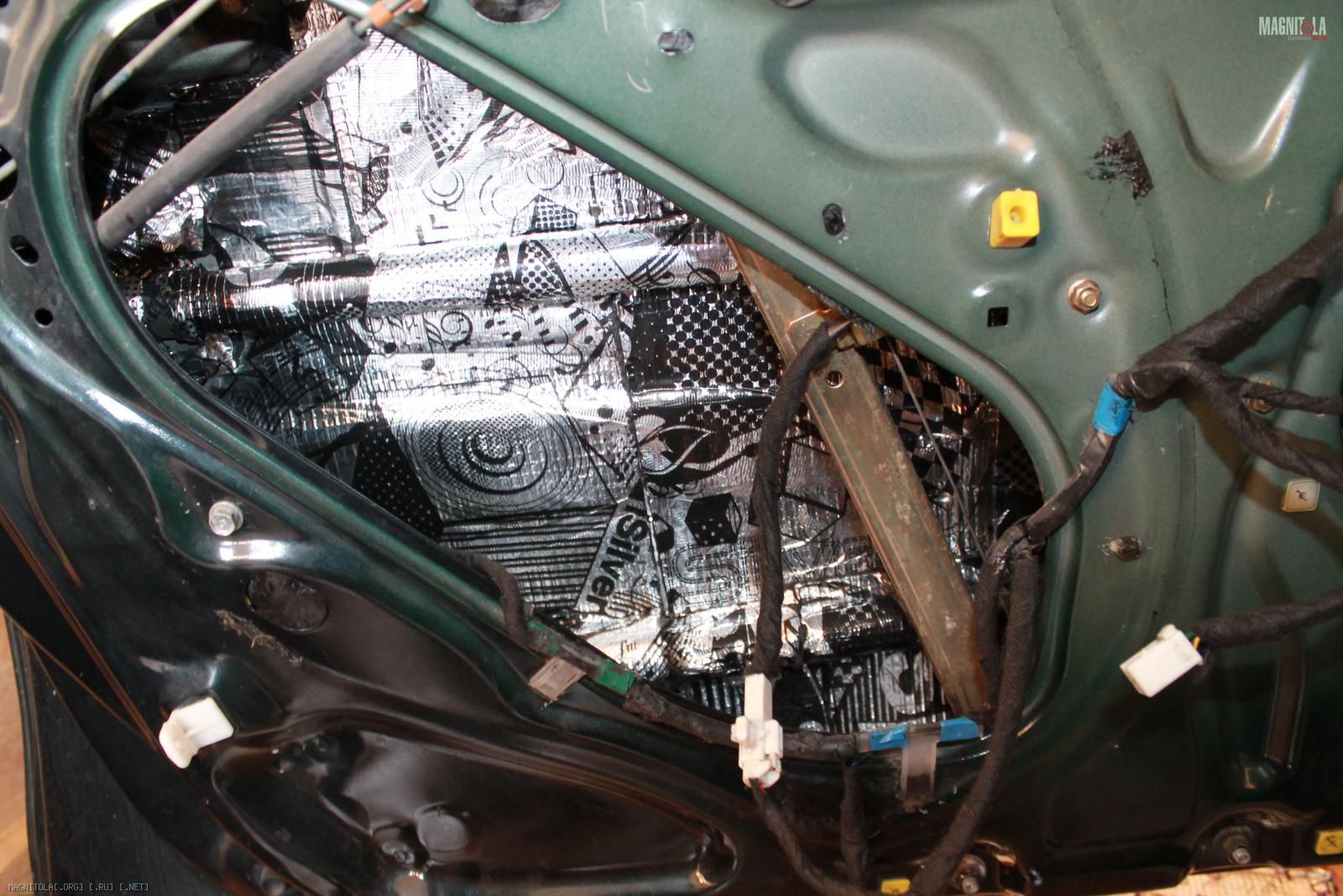 Да все более менее правильно, просто битопластом(шумкой) заклеены сетки, через которым динамикам и так не сладко играть. Получалось, что 70-80% звука, а то и более, бубнило под обшивкой)