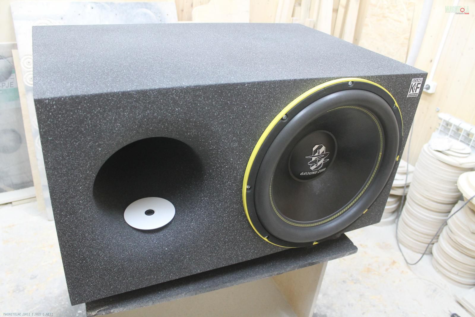 Корпус под Ground Zero GZRW 46SPL, 18", ФИ, стенки 19мм, ребро жесткости, акустическое демпфирование, закладные гайки м6, винты под шестигранник, порт 250мм, с раскрывом до 350мм, терминал Дакс, саморезы под торкс, грунт, покраска.