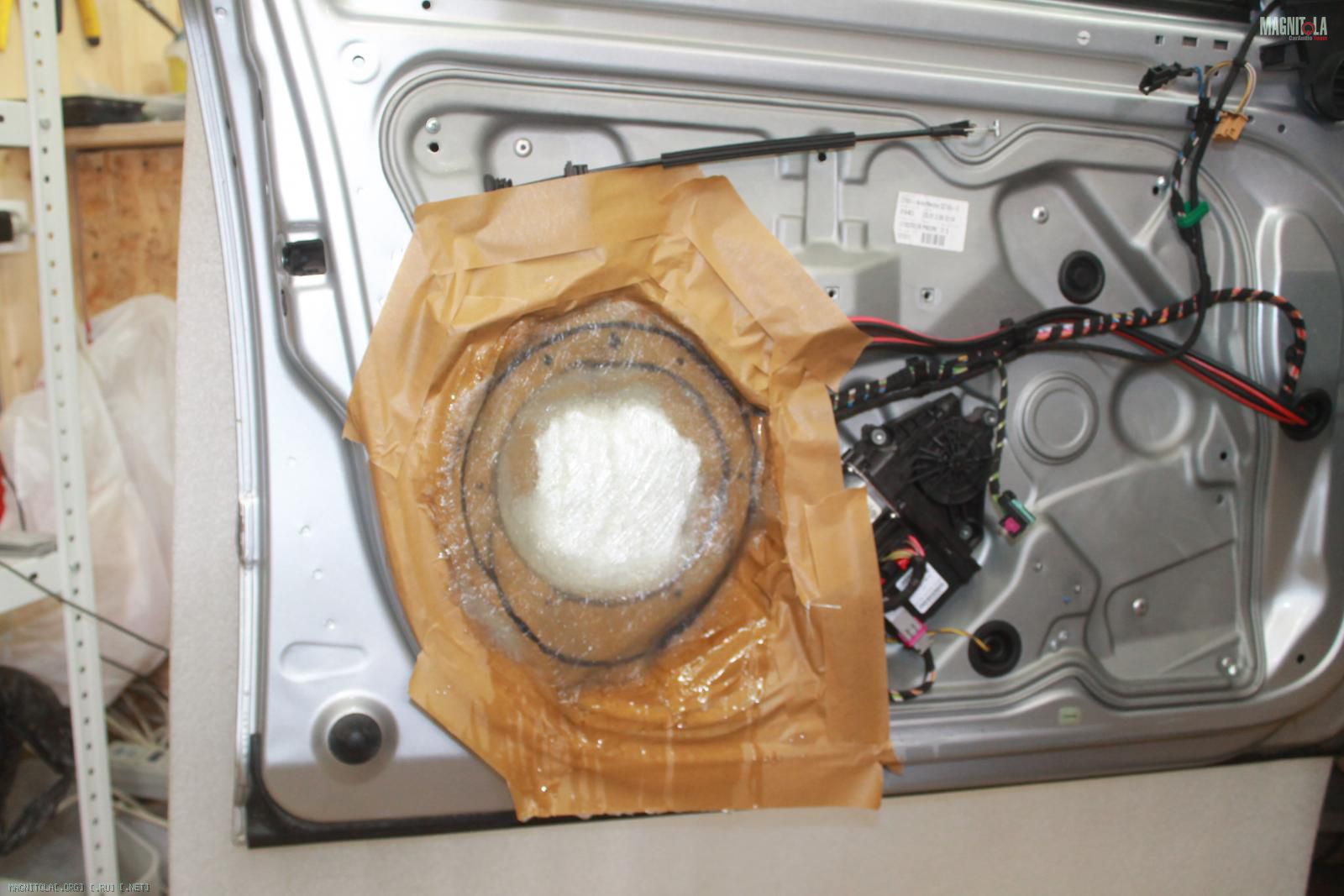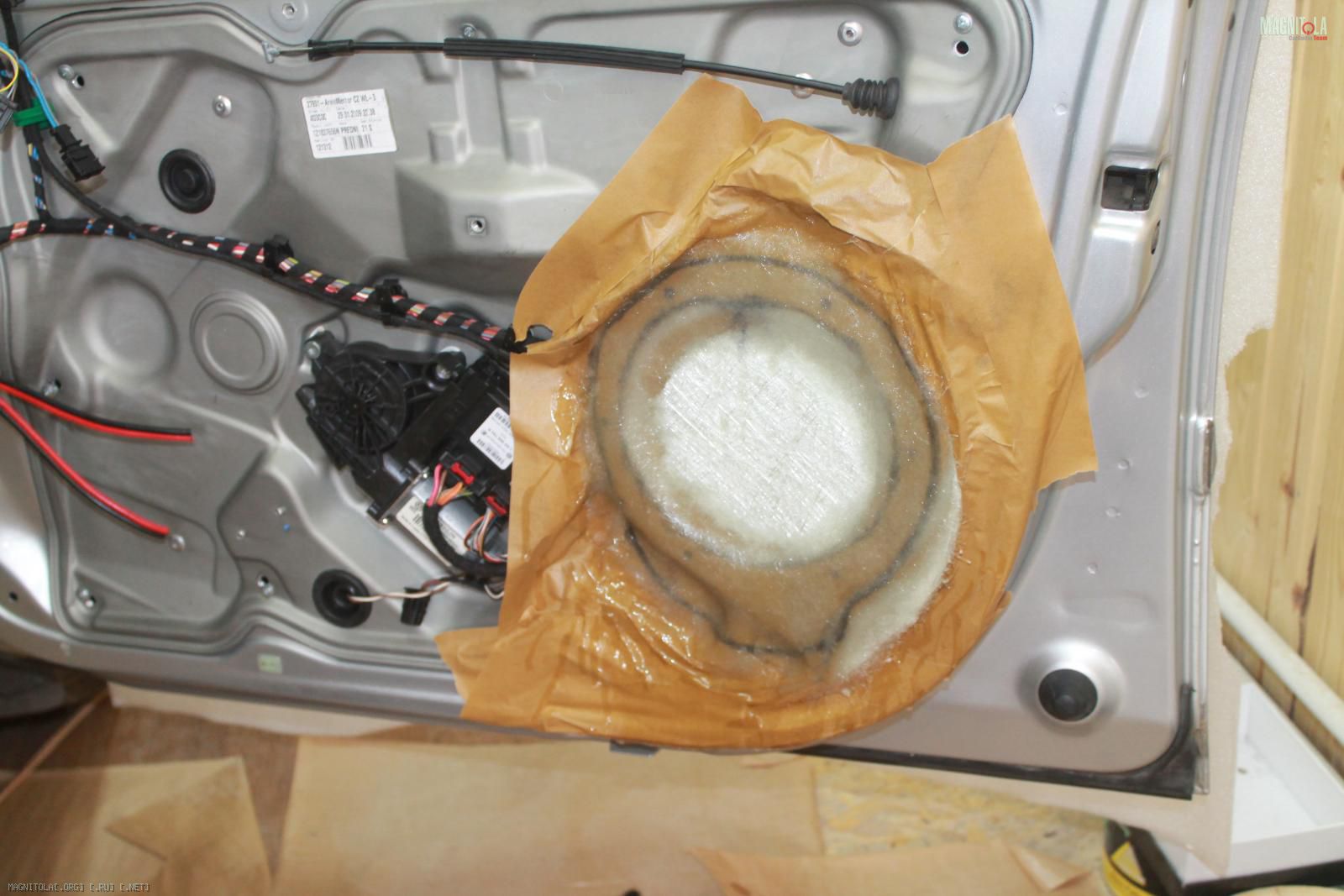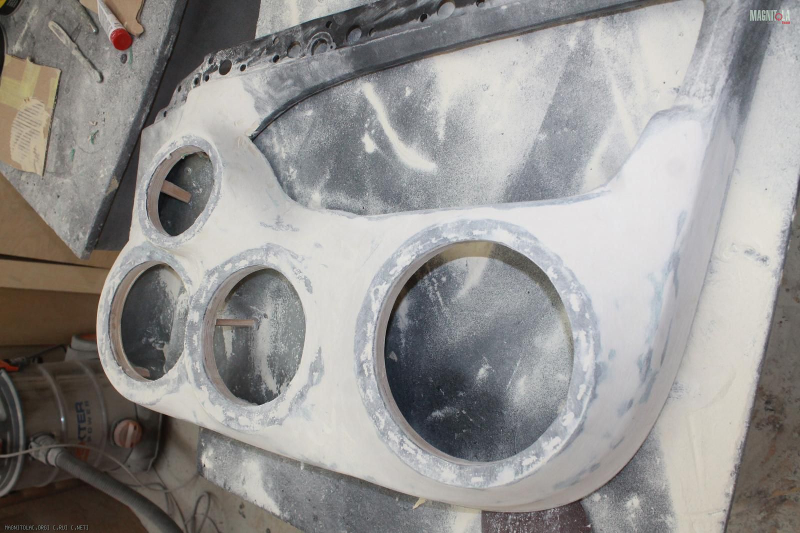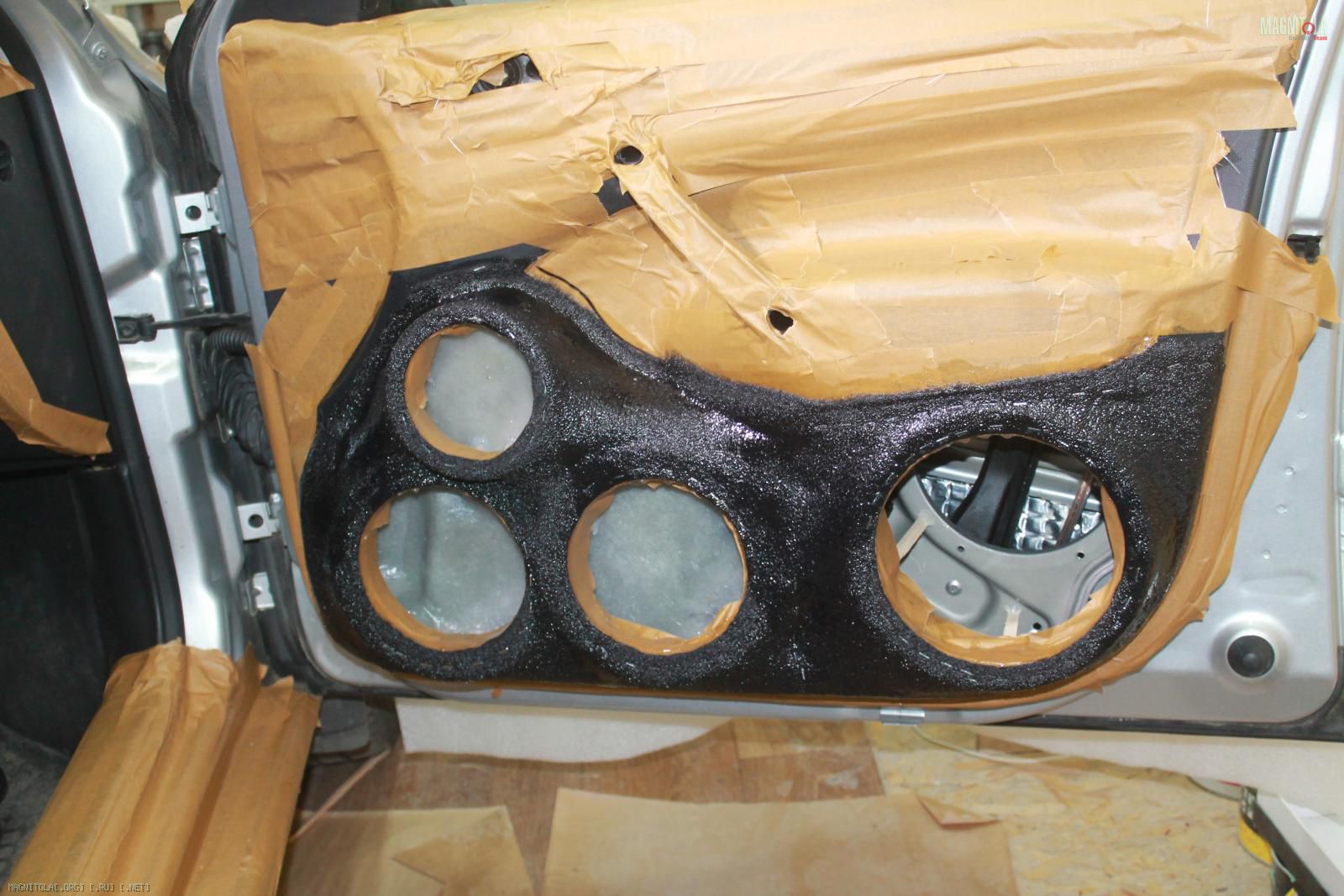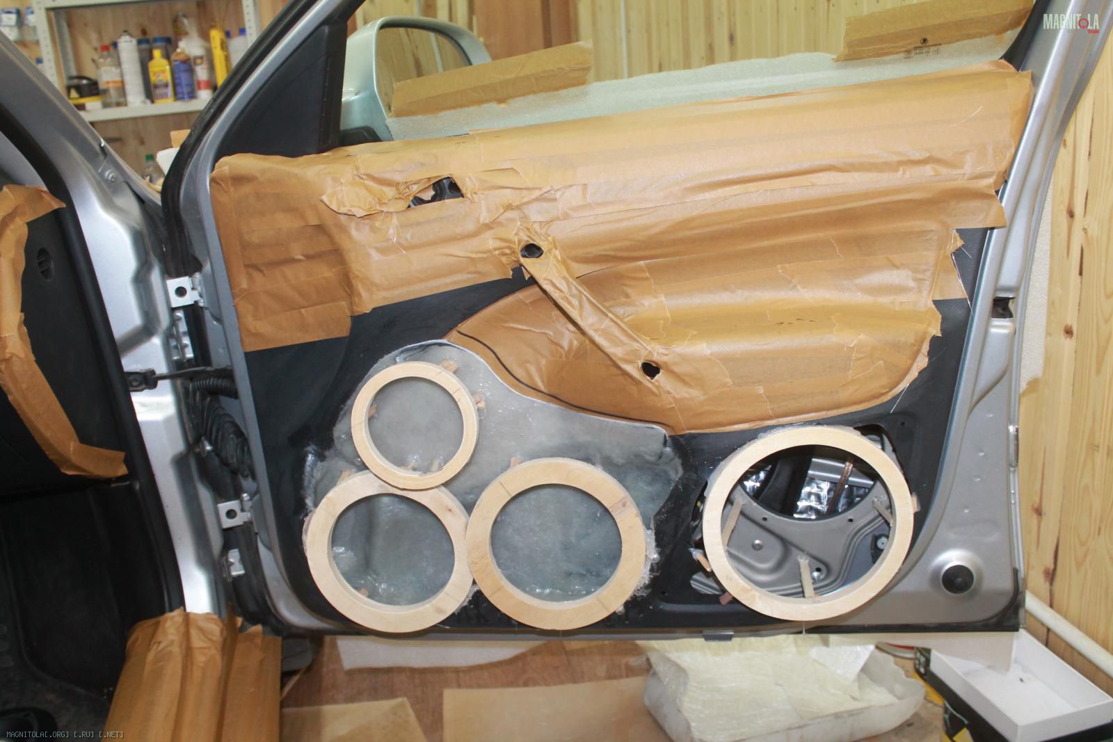 Для того, чтобы мидбас играл в двери, немного надо будет повозится, опорное кольцо не встает, т.к. упирается в магнит, пришлось лепить основу-слепок из стекловолокна.