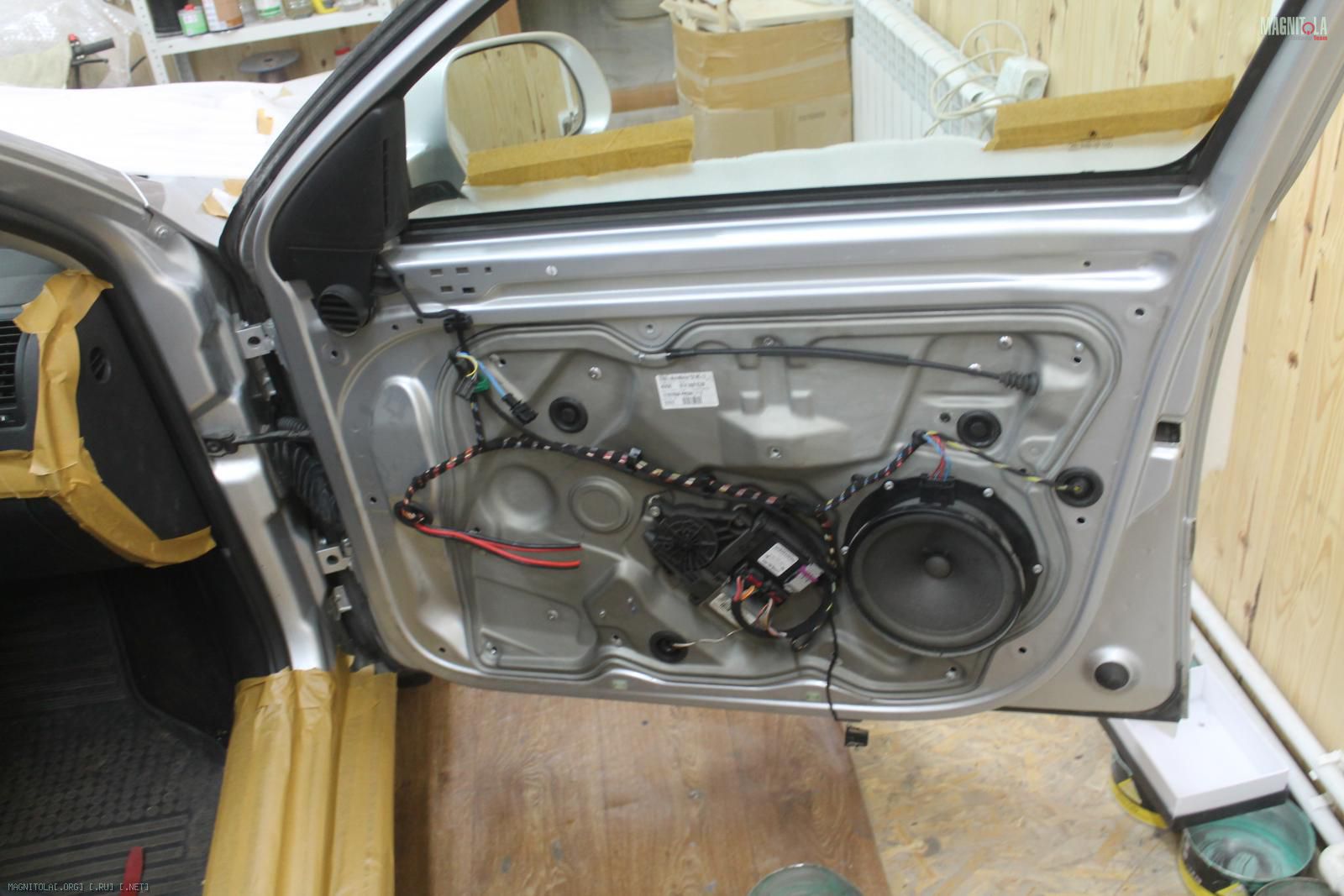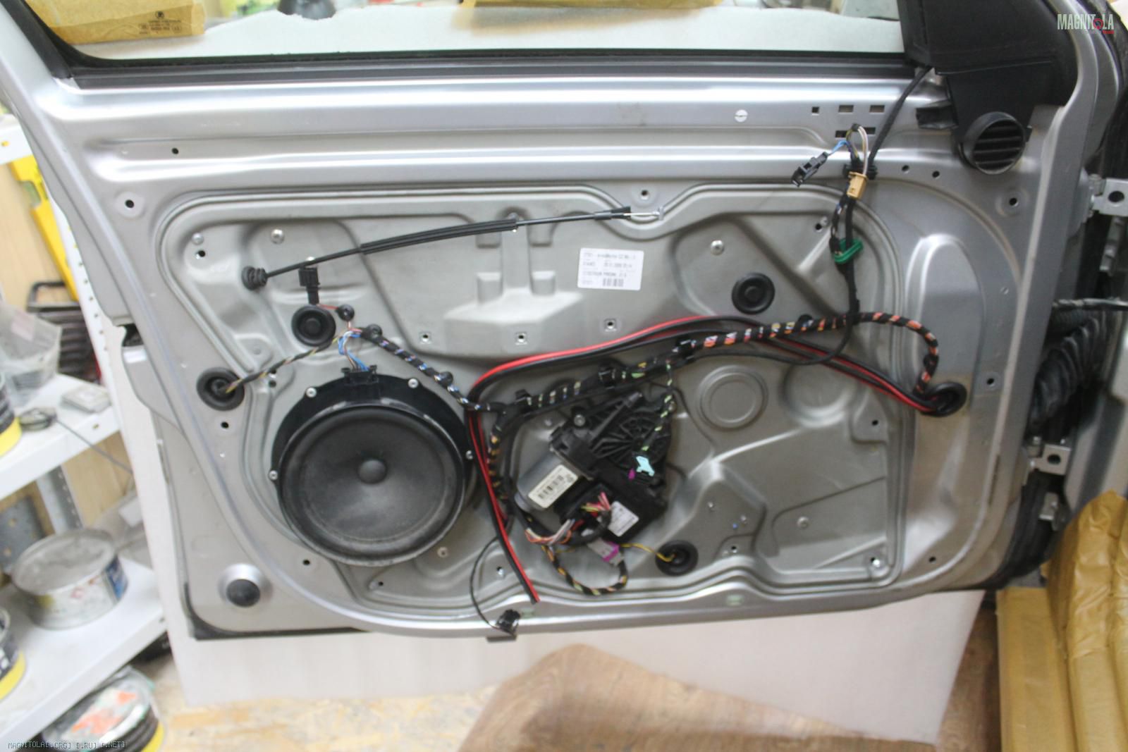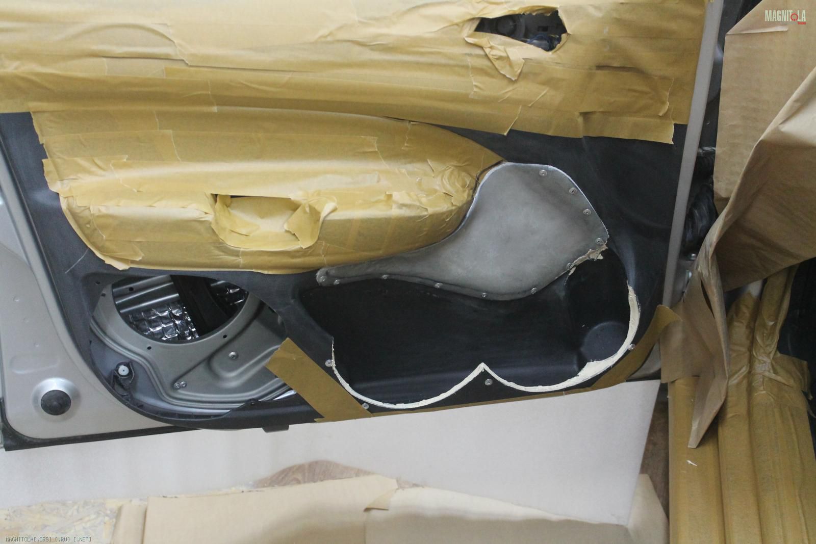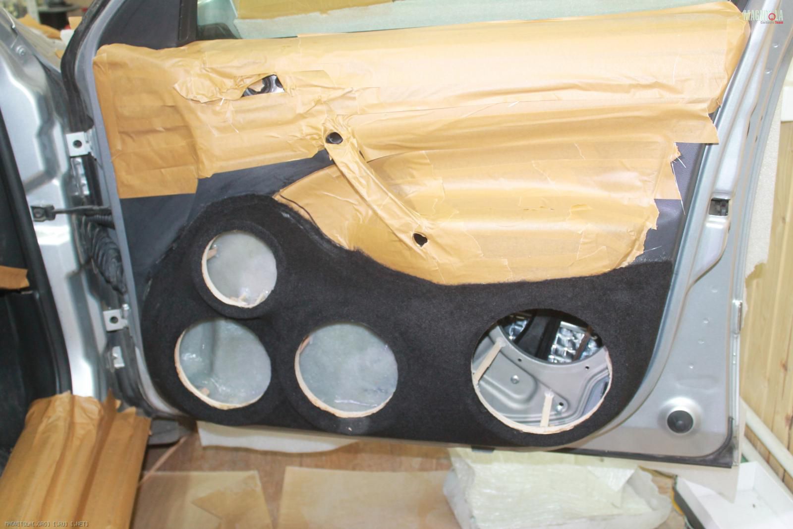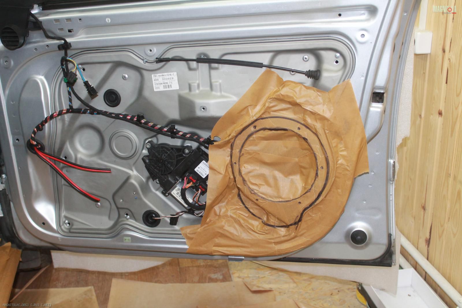 Для того, чтобы мидбас играл в двери, немного надо будет повозится, опорное кольцо не встает, т.к. упирается в магнит, пришлось лепить основу-слепок из стекловолокна.