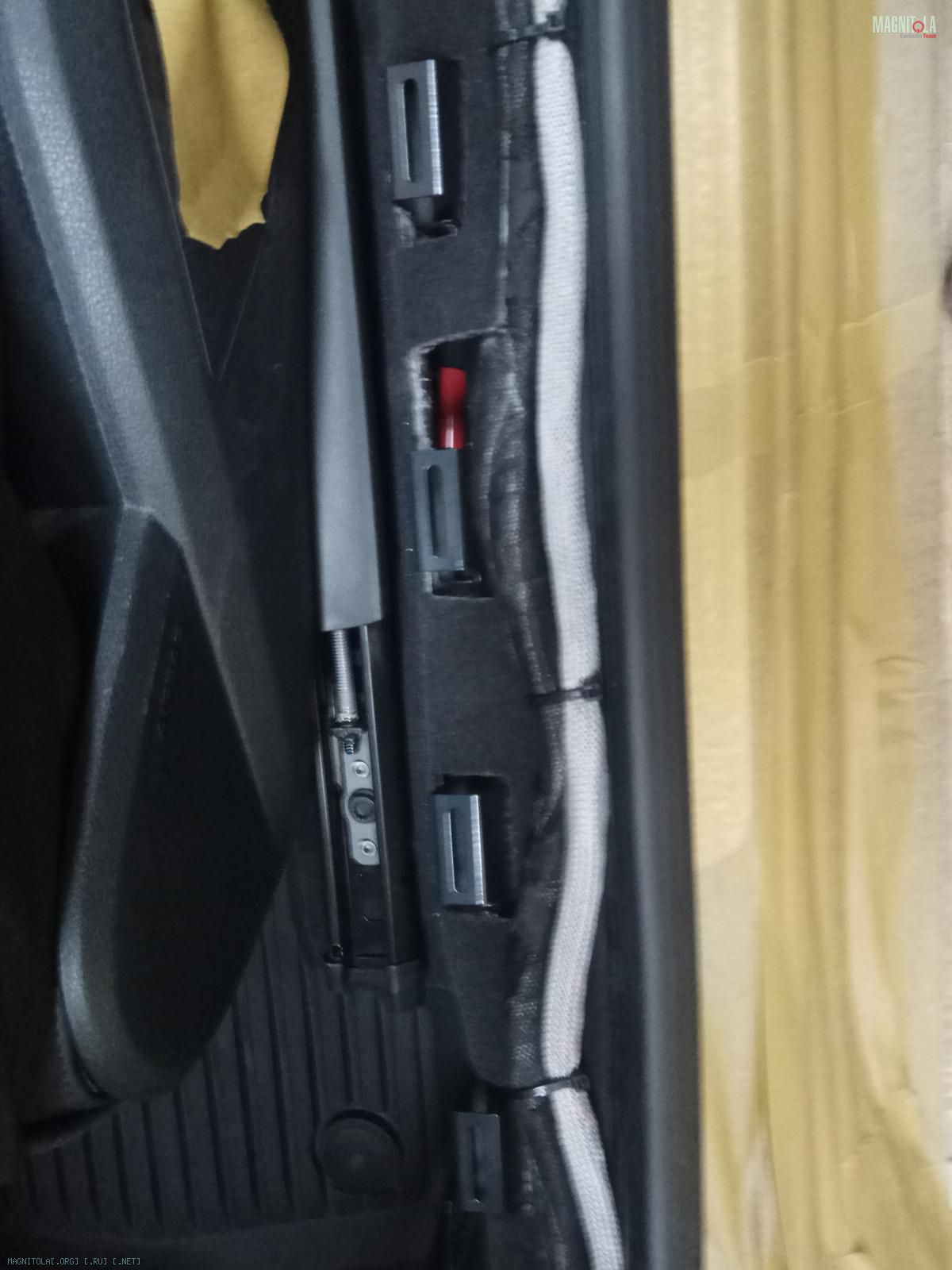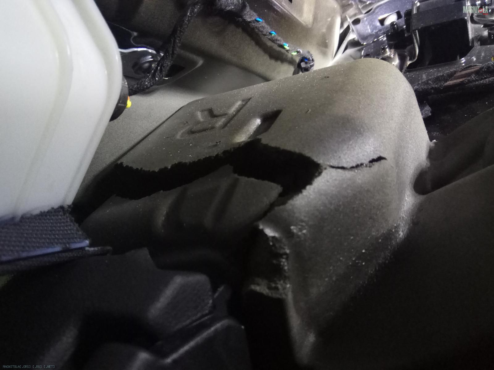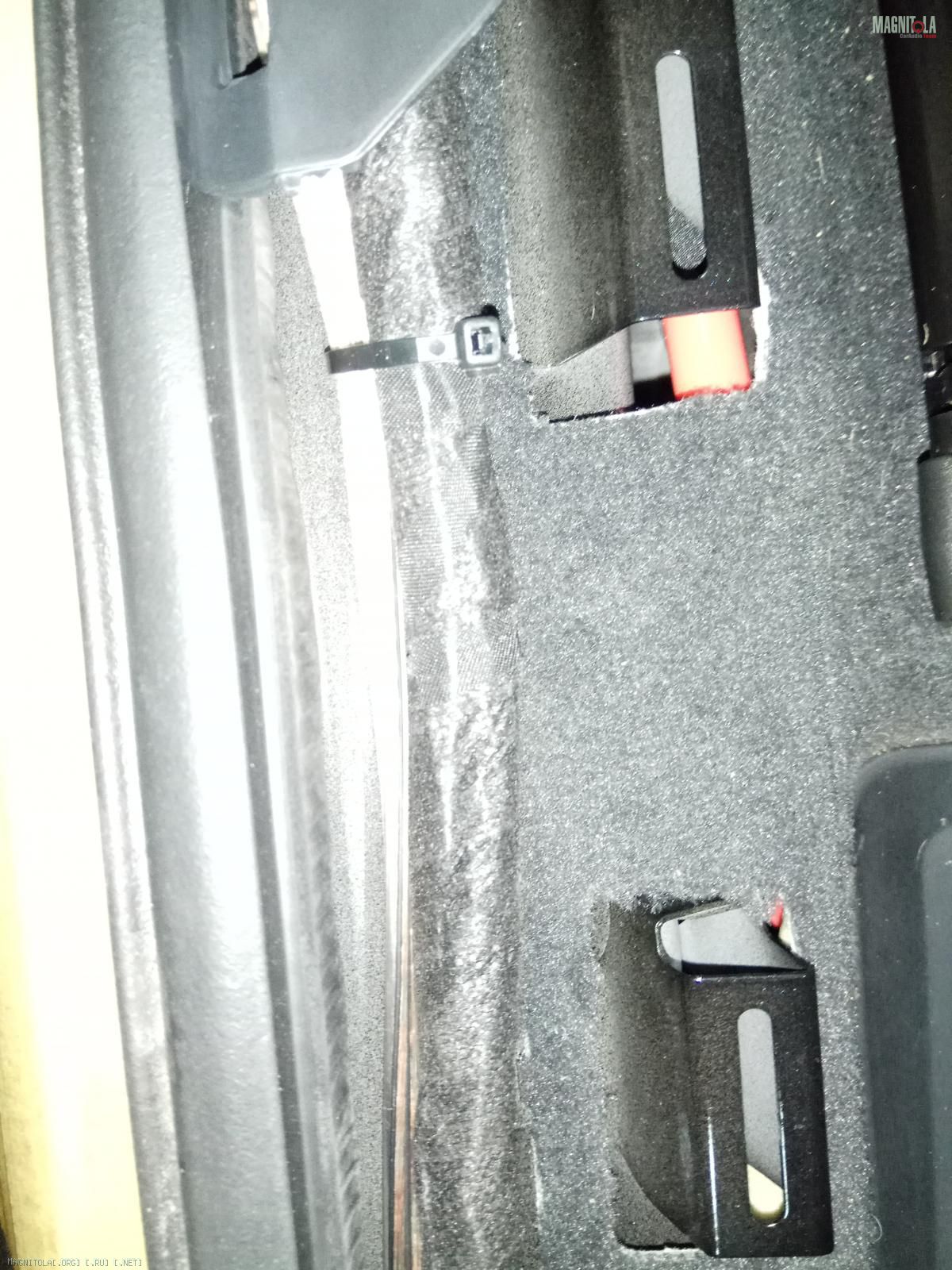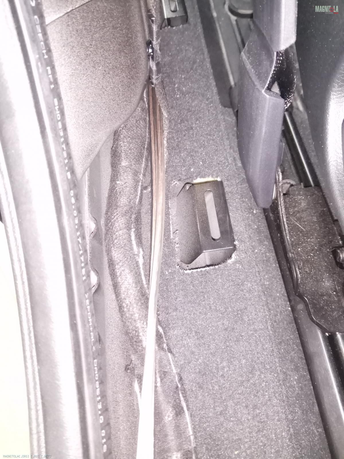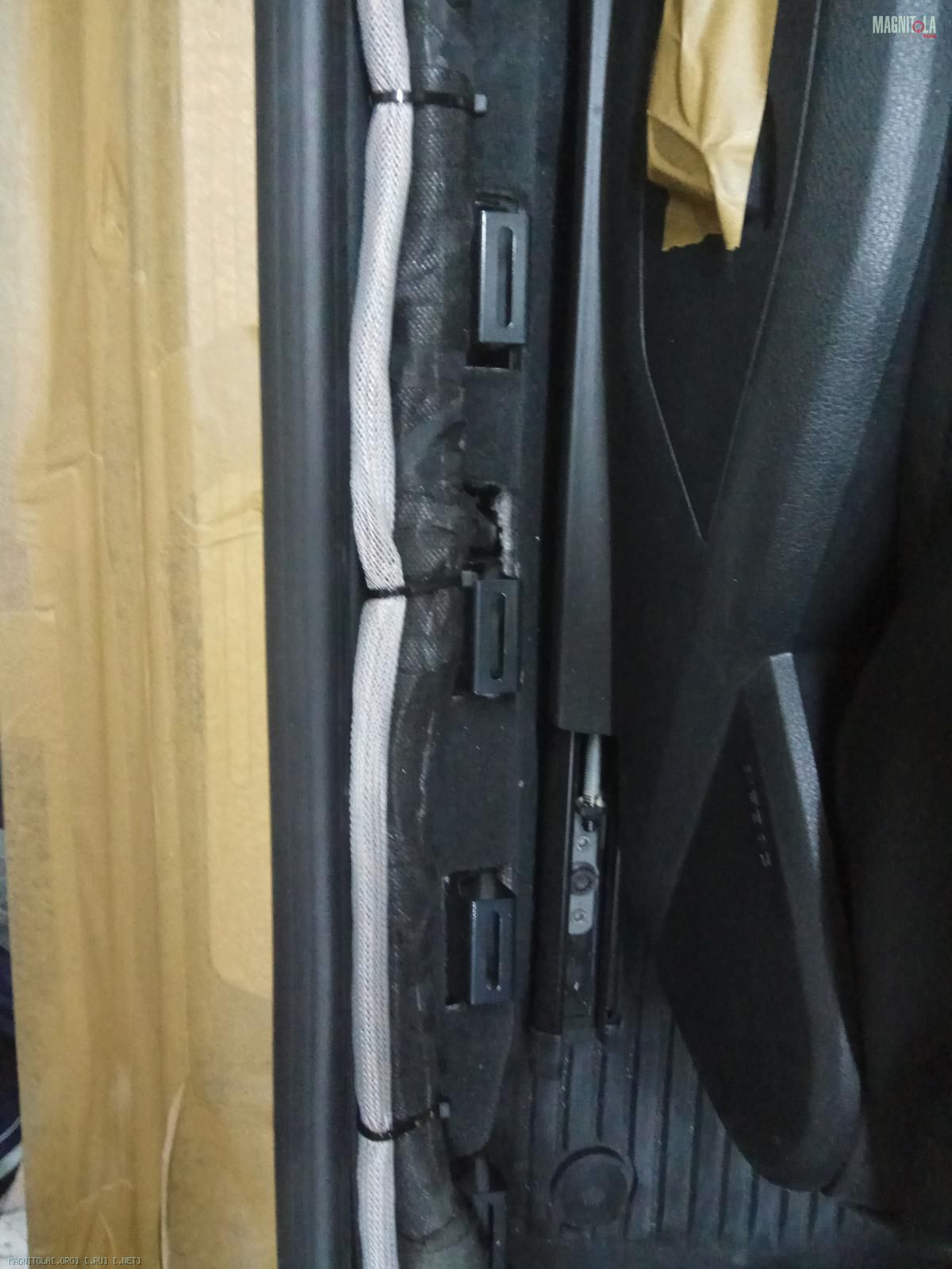 … так протягивали провода, порвали элемент шумоизоляции катушки ремня безопасности…