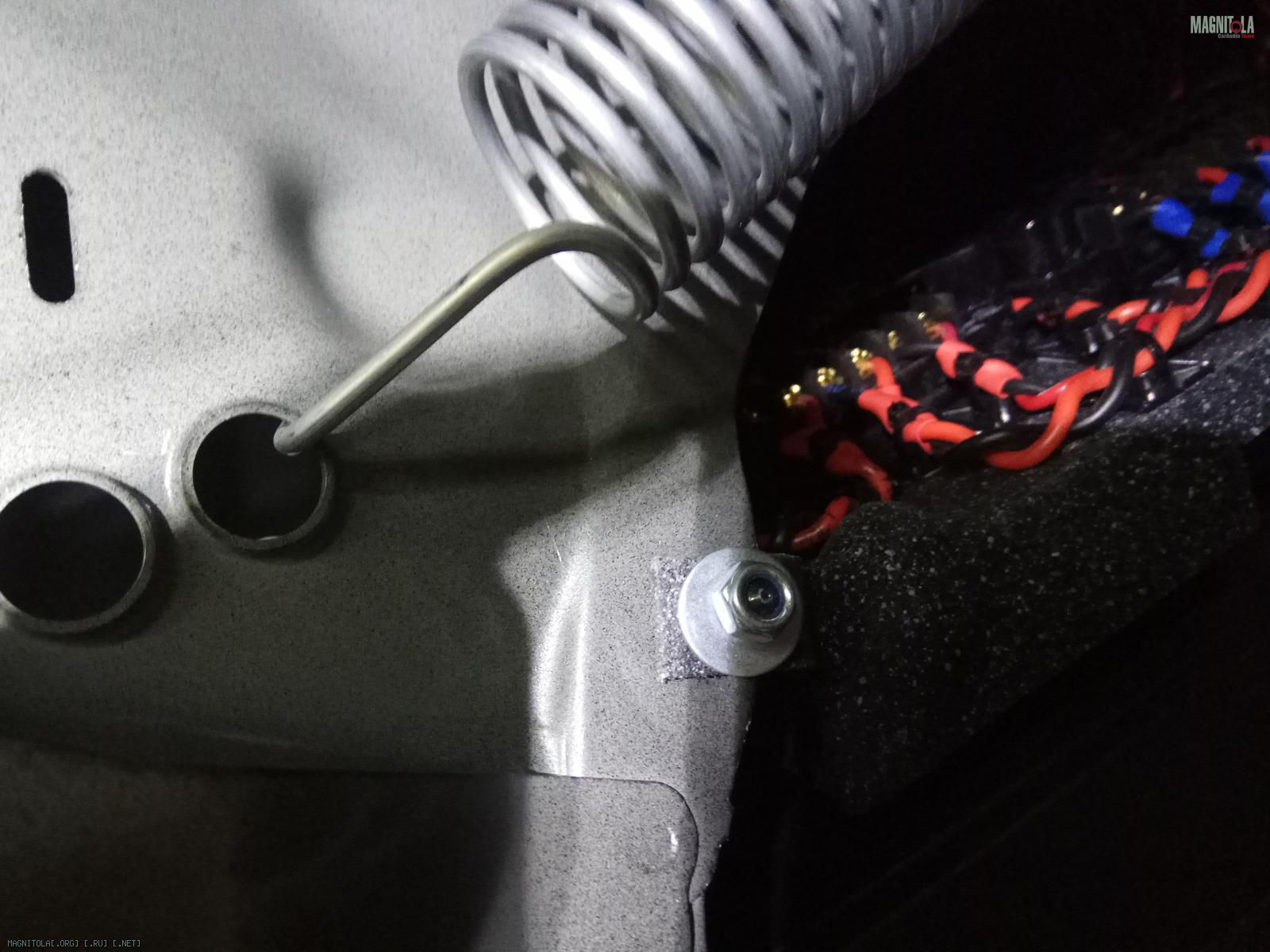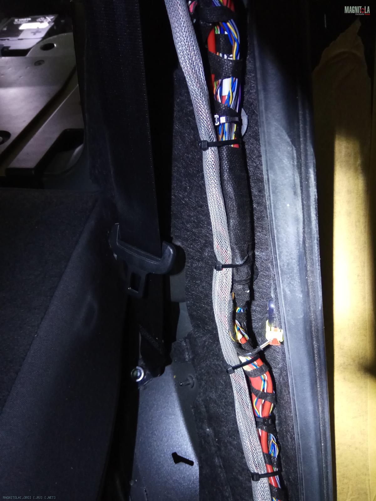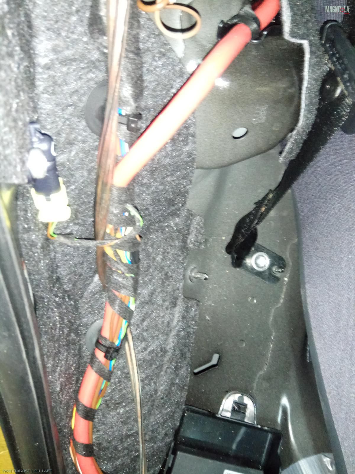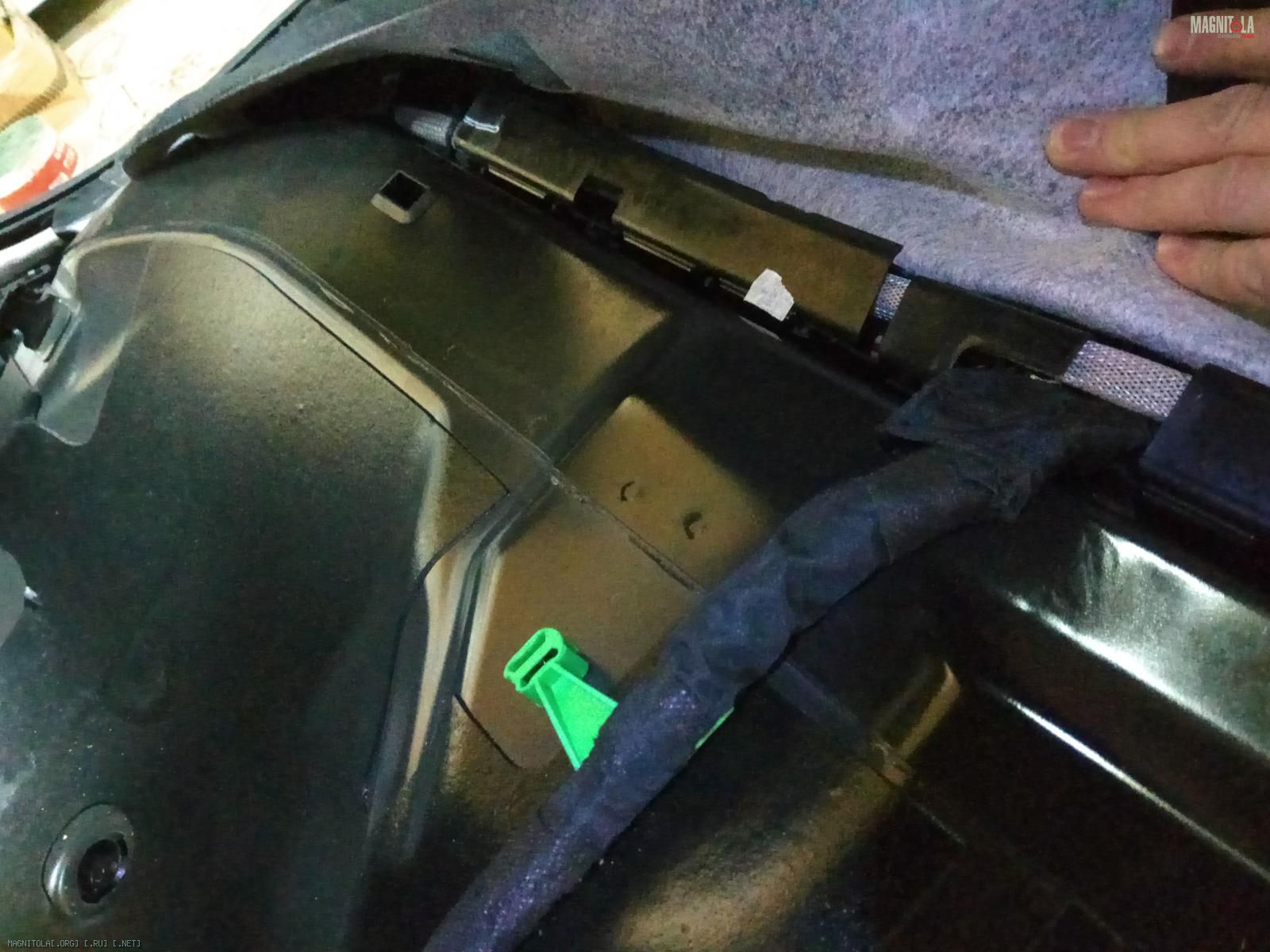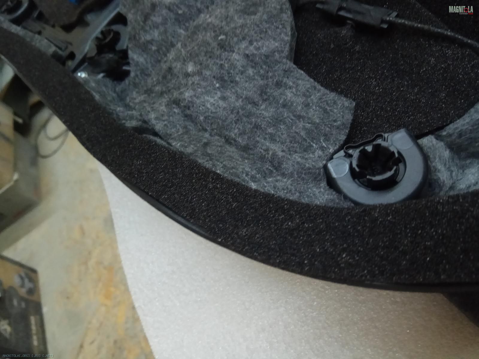 … так протягивали провода, порвали элемент шумоизоляции катушки ремня безопасности…