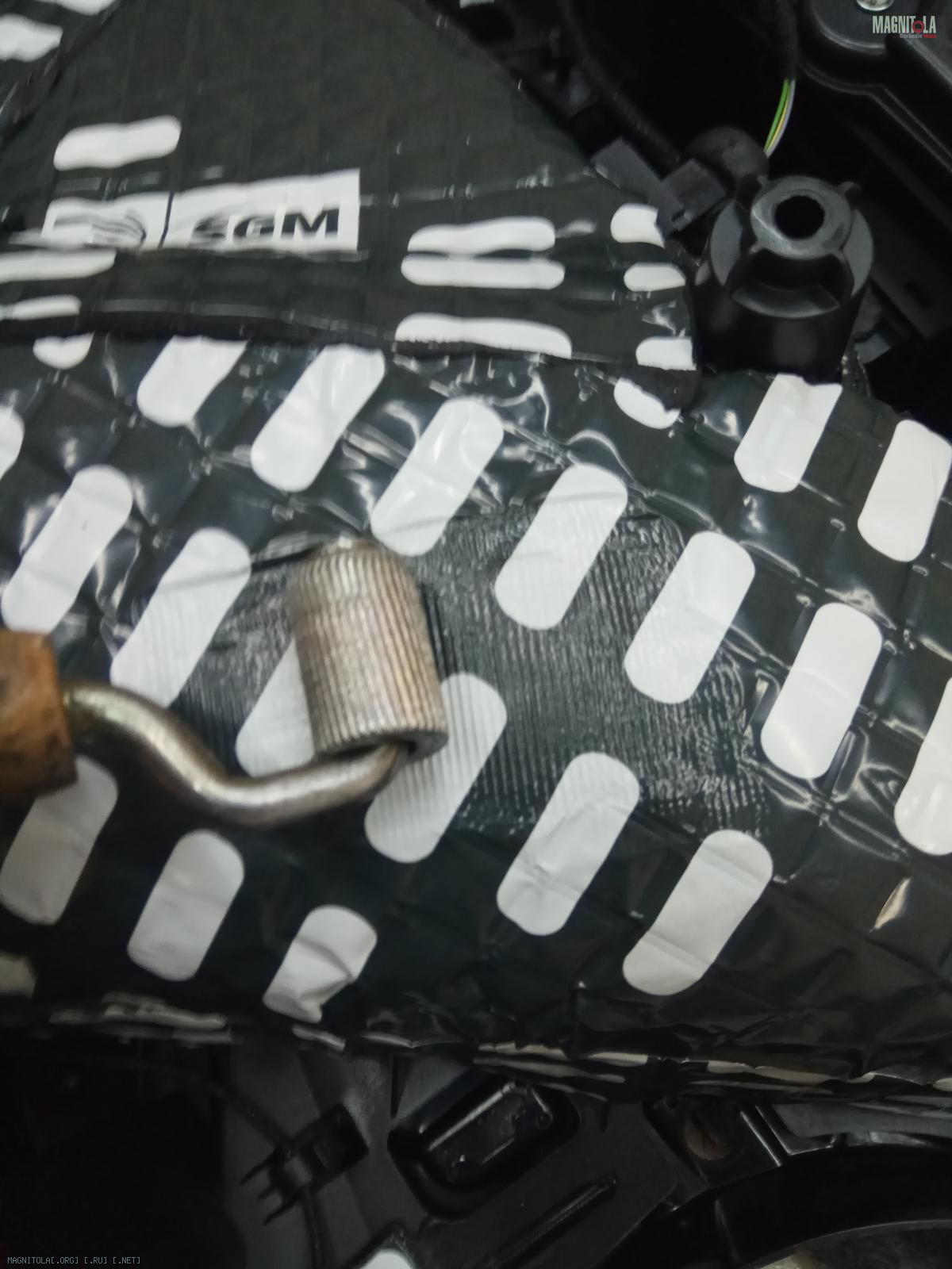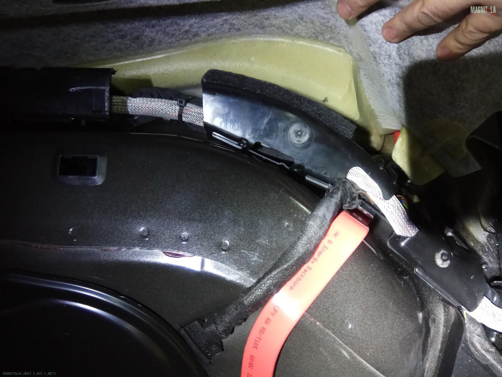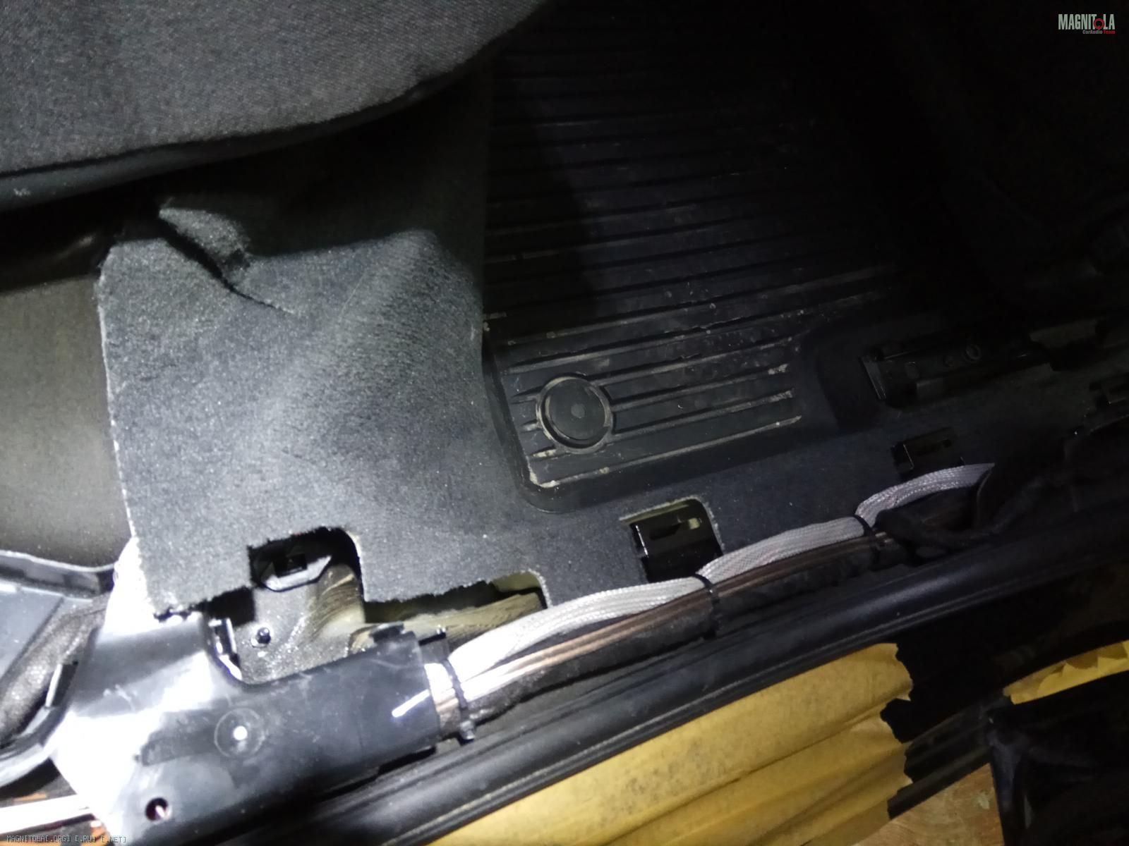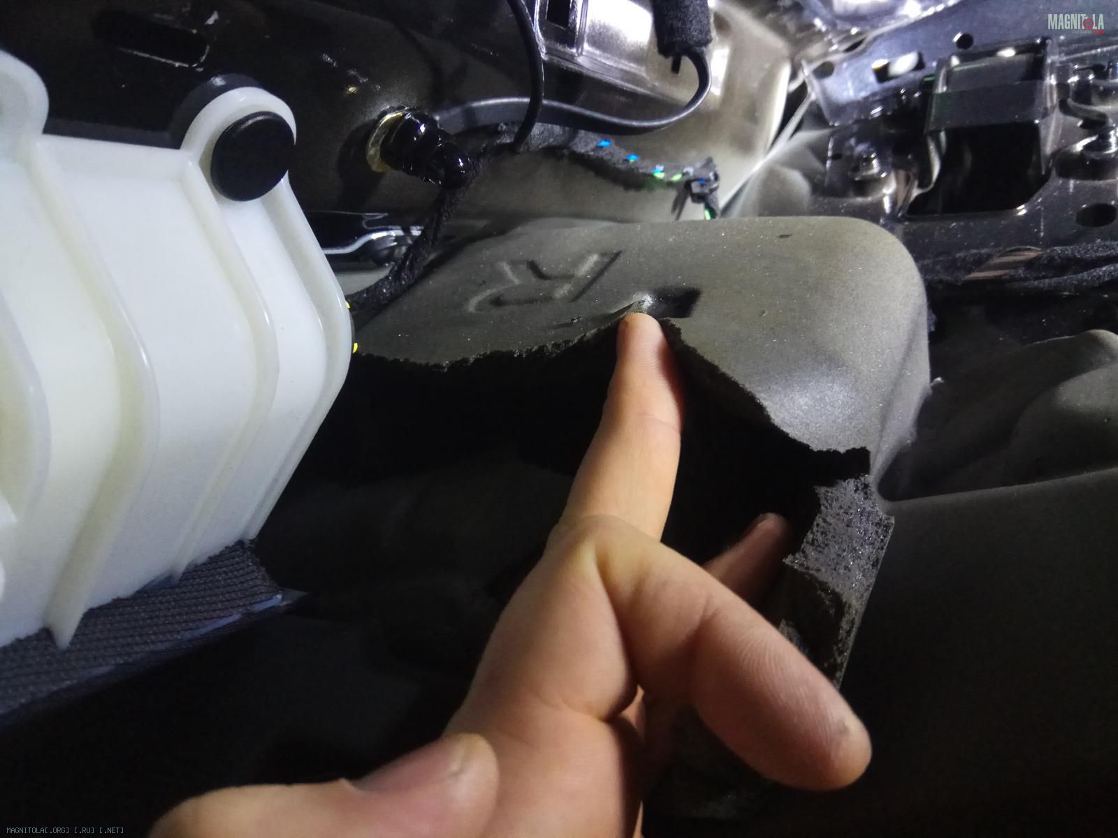 … так протягивали провода, порвали элемент шумоизоляции катушки ремня безопасности…