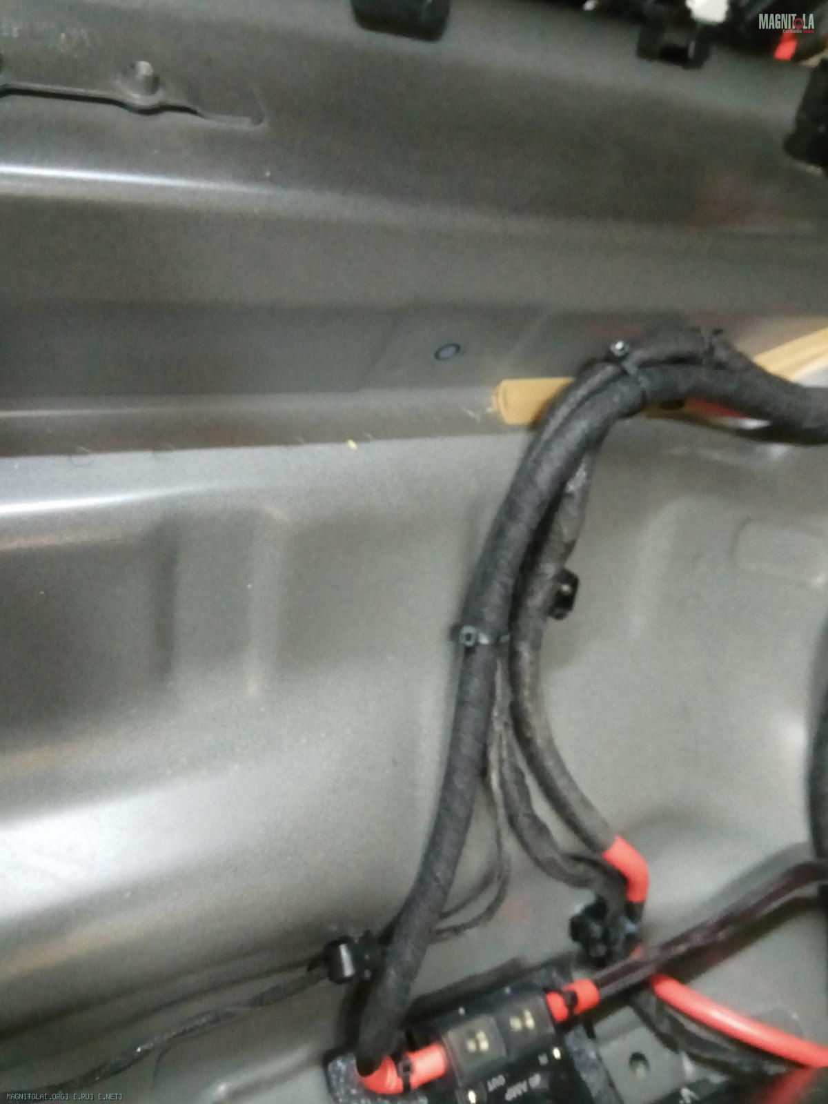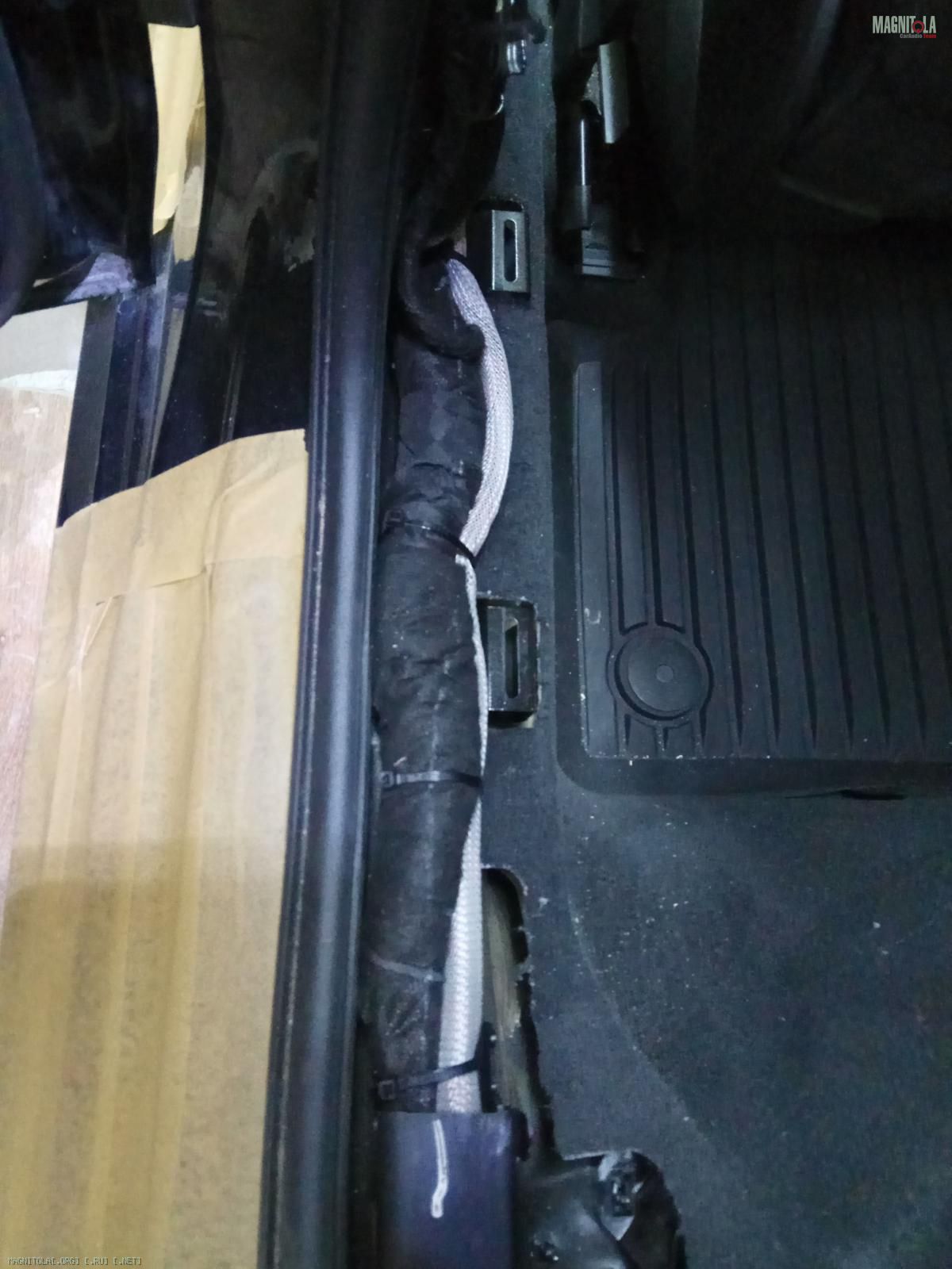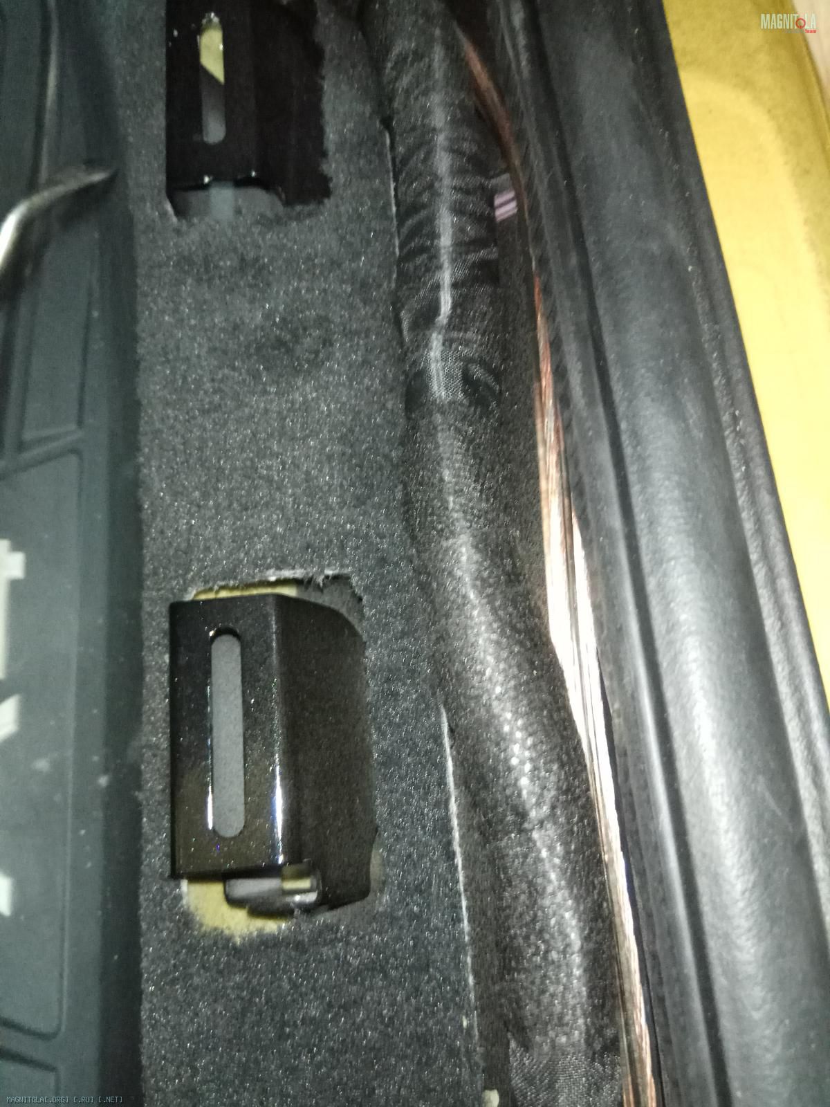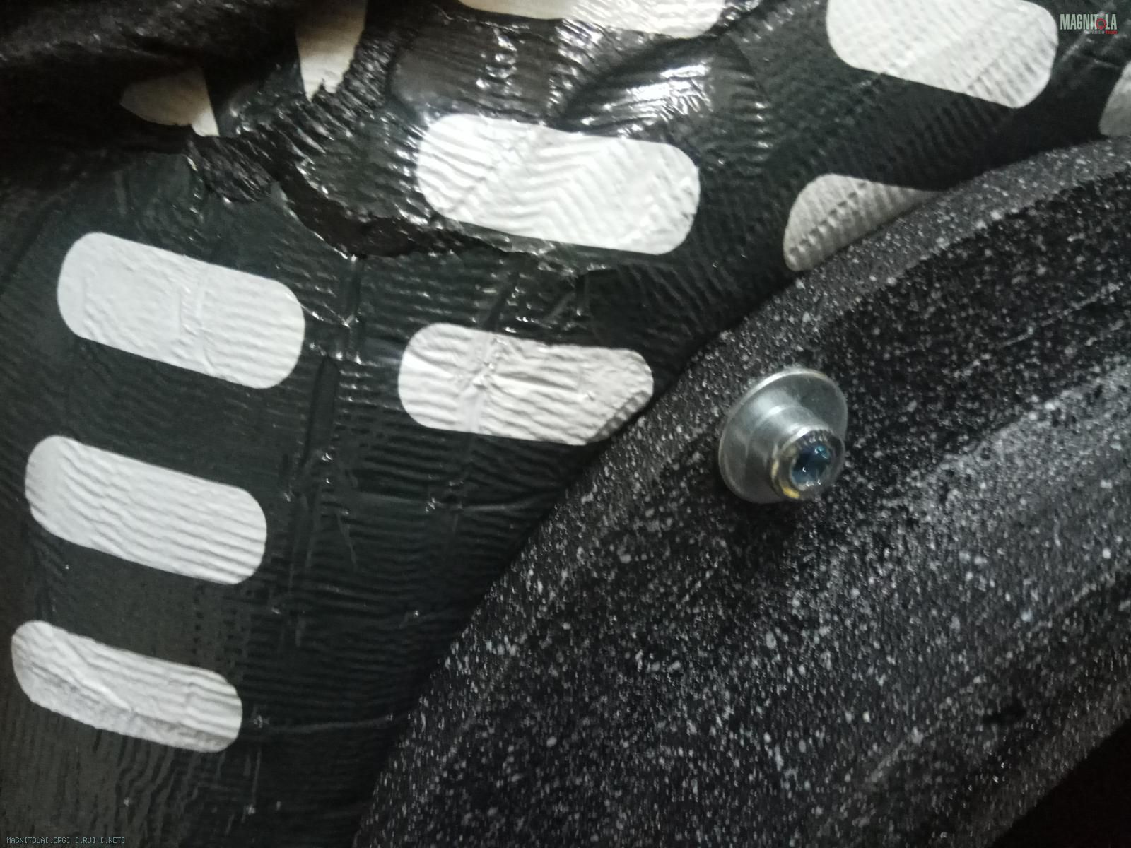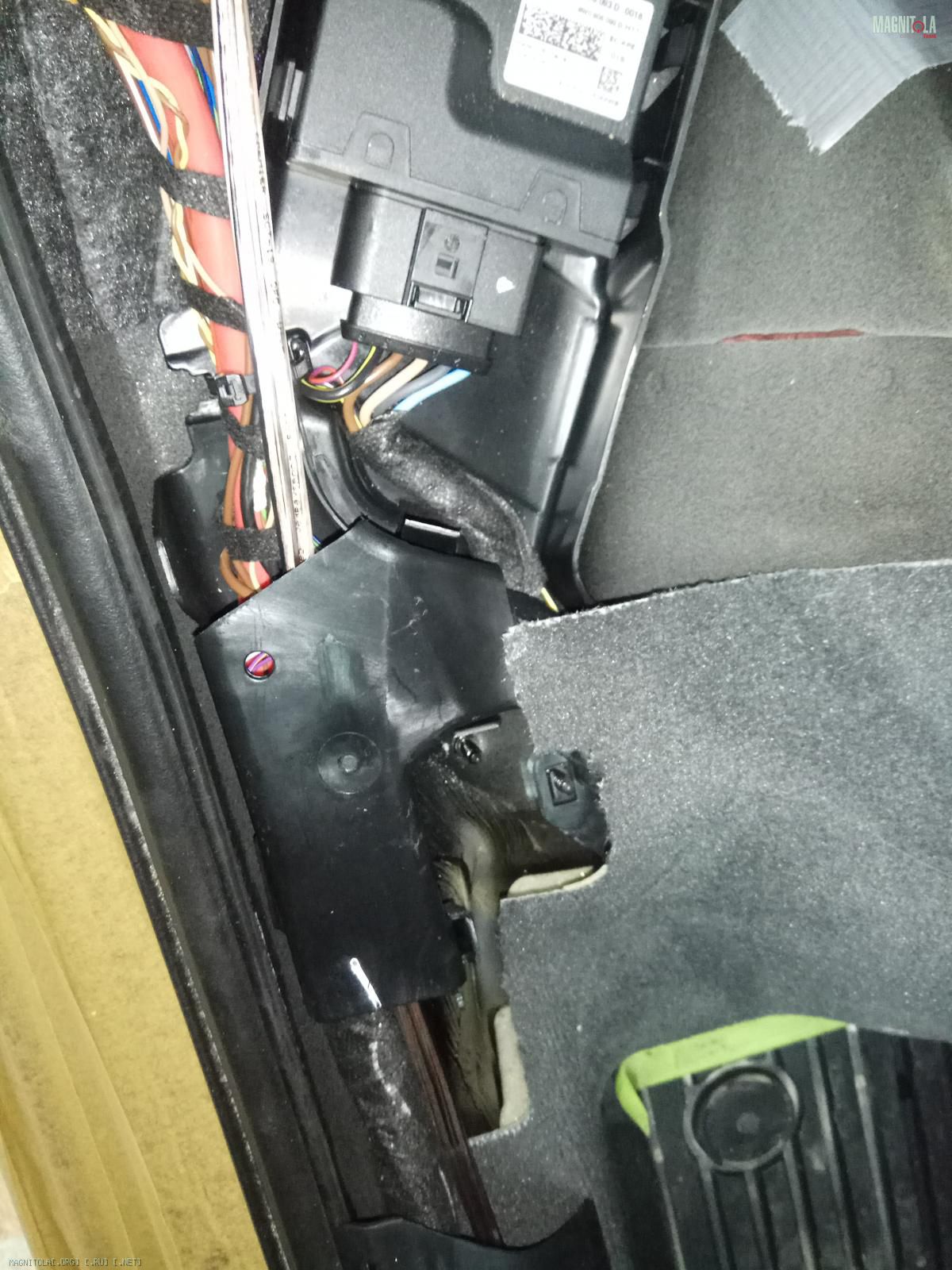 … так протягивали провода, порвали элемент шумоизоляции катушки ремня безопасности…