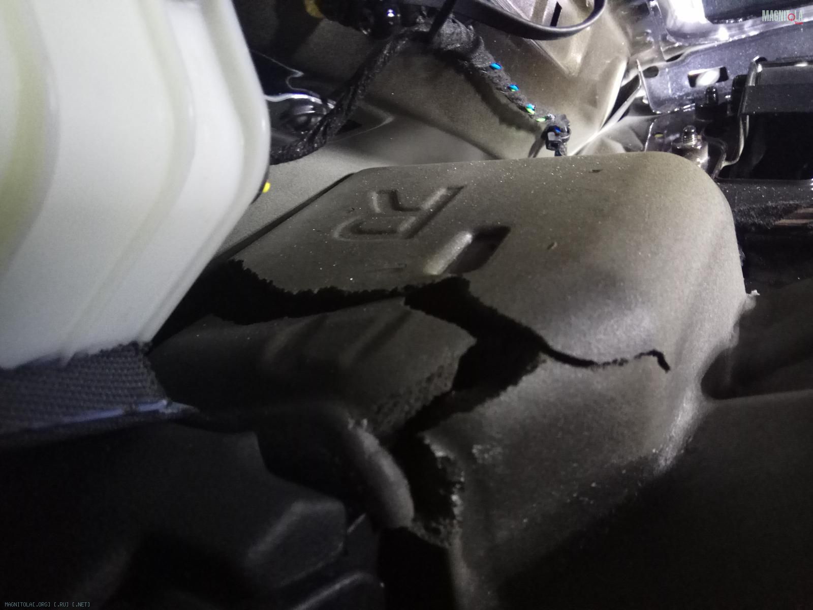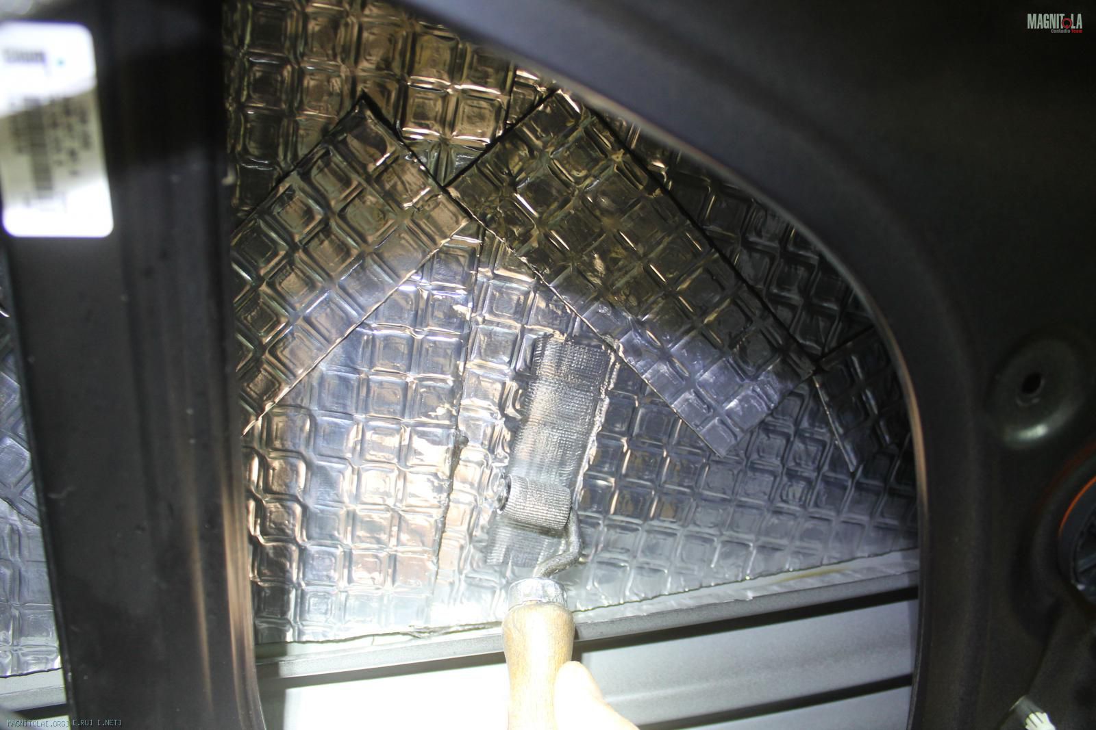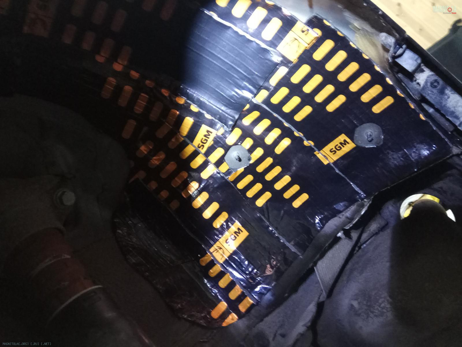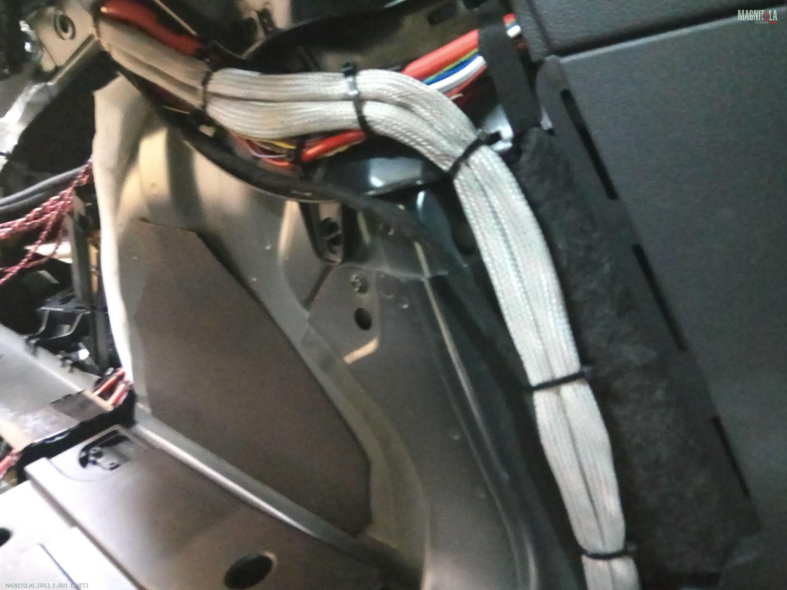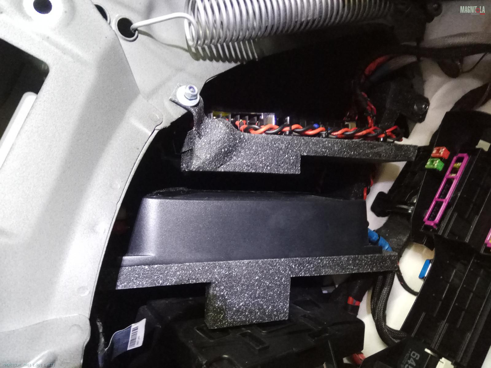 … так протягивали провода, порвали элемент шумоизоляции катушки ремня безопасности…