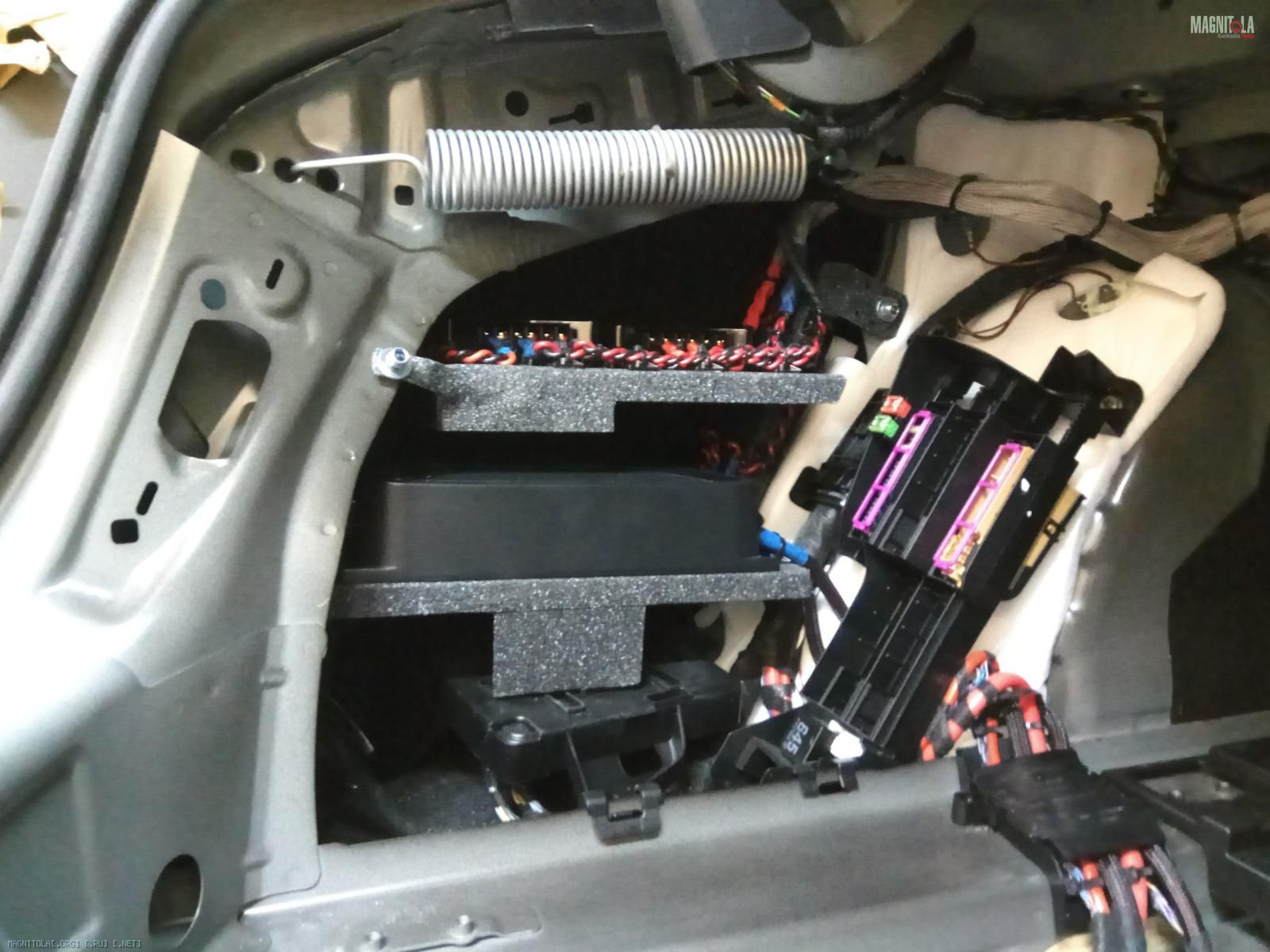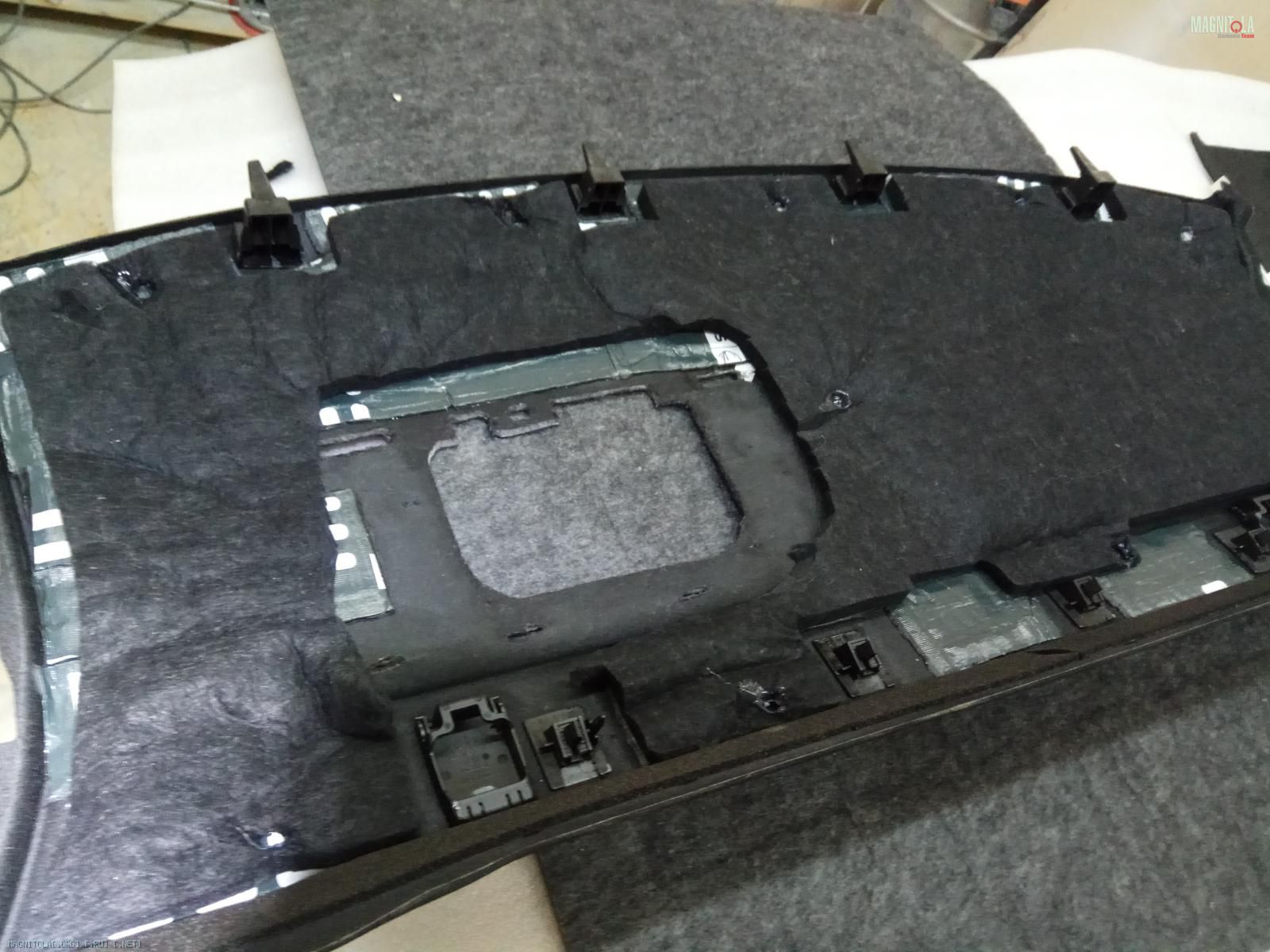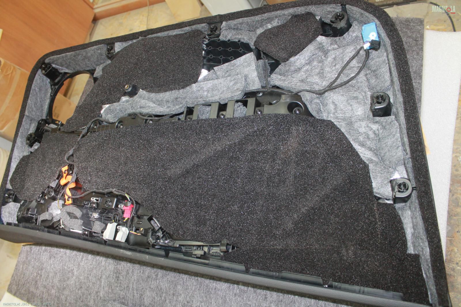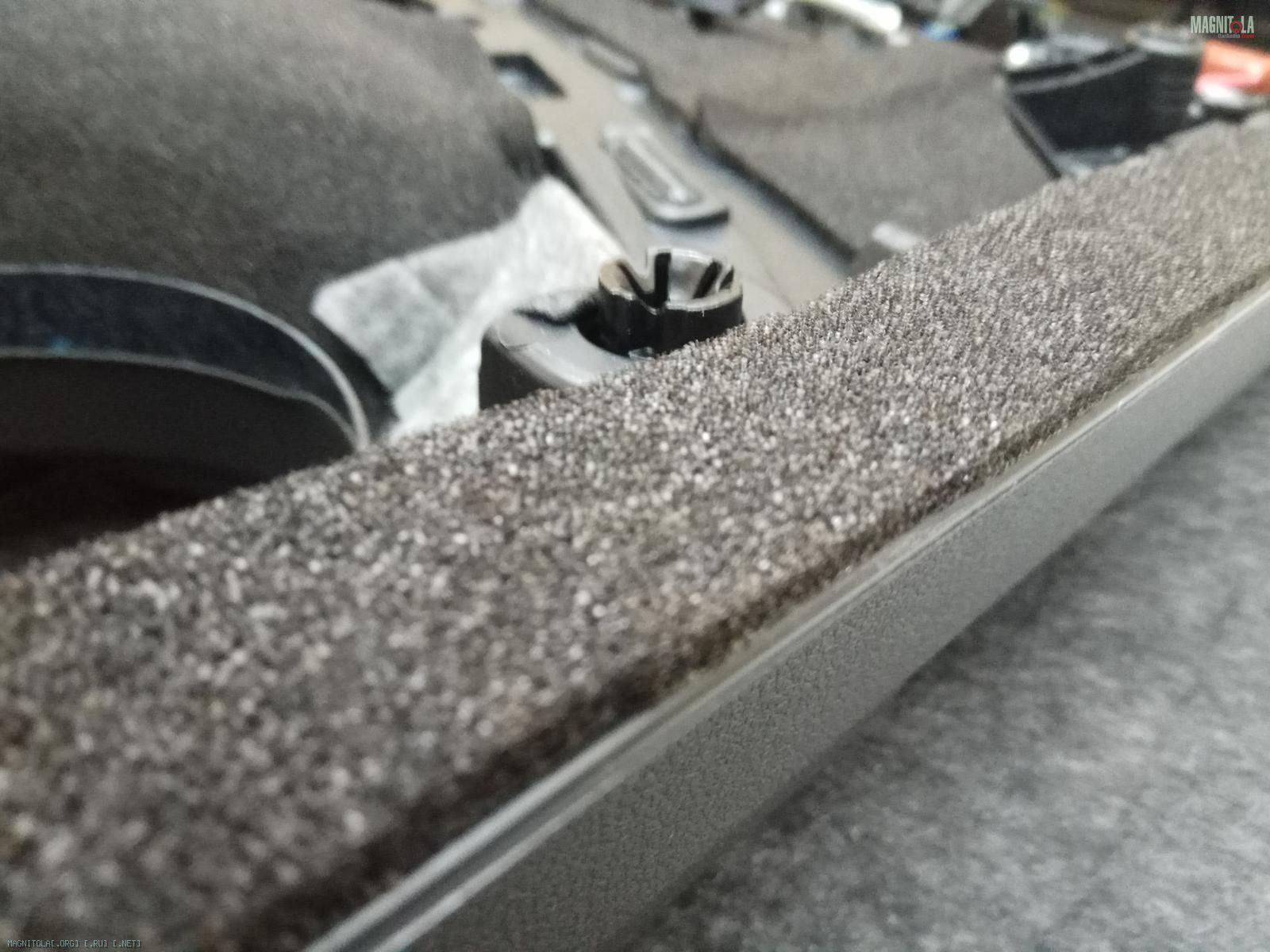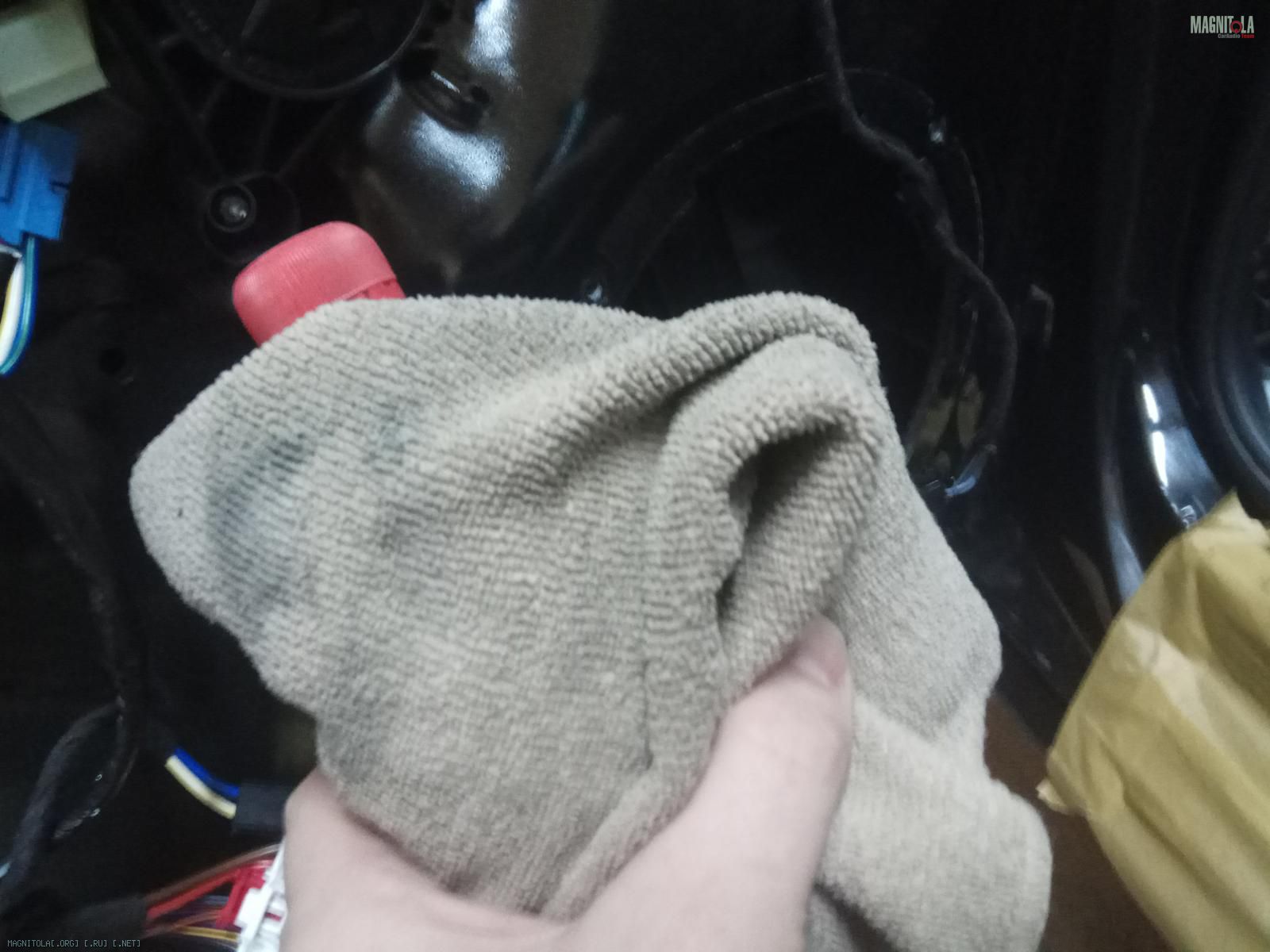 … так протягивали провода, порвали элемент шумоизоляции катушки ремня безопасности…