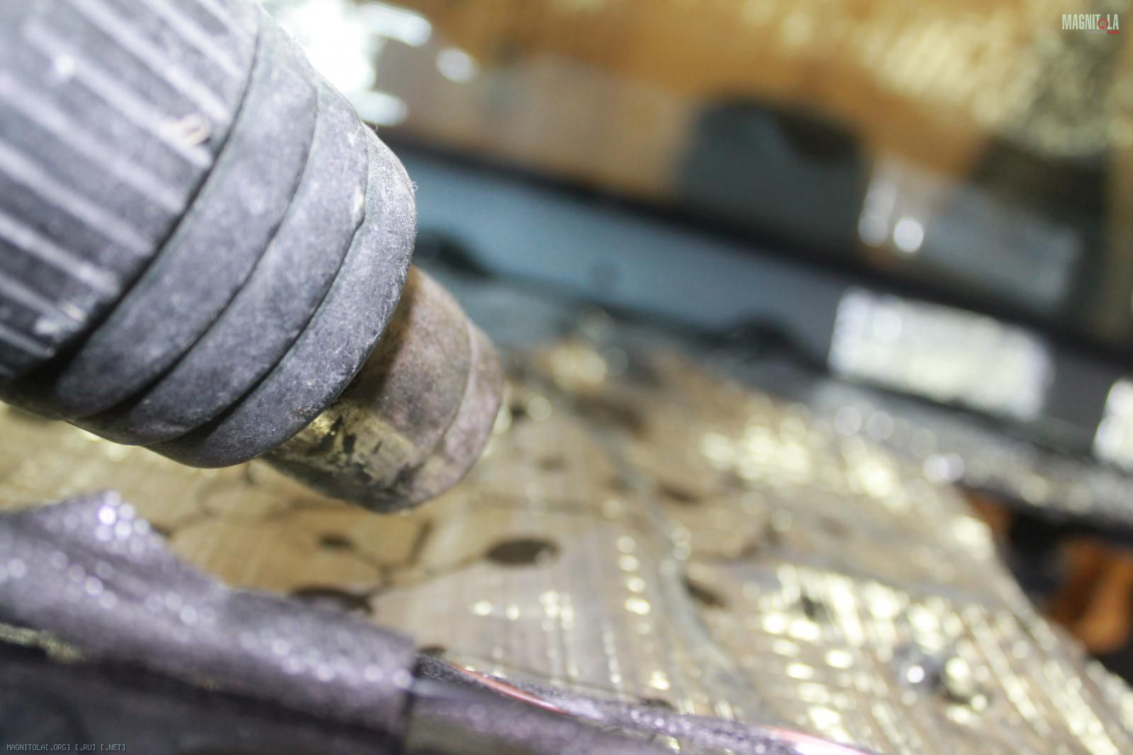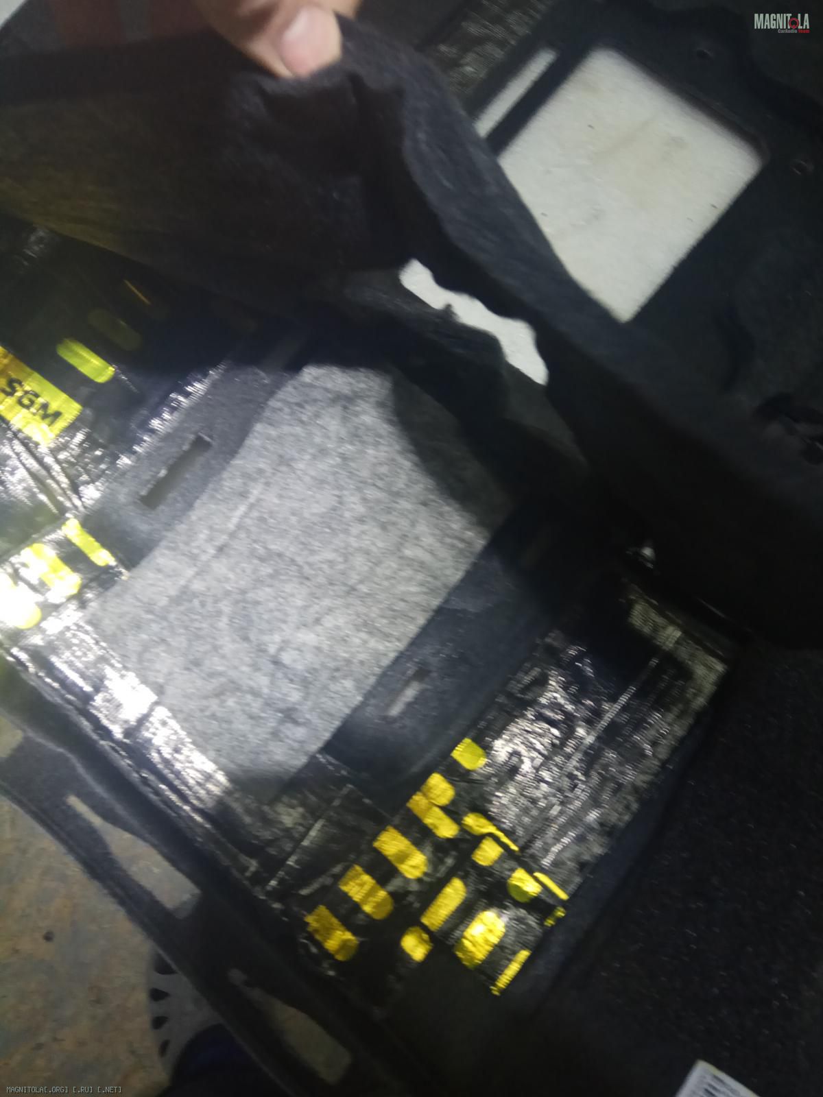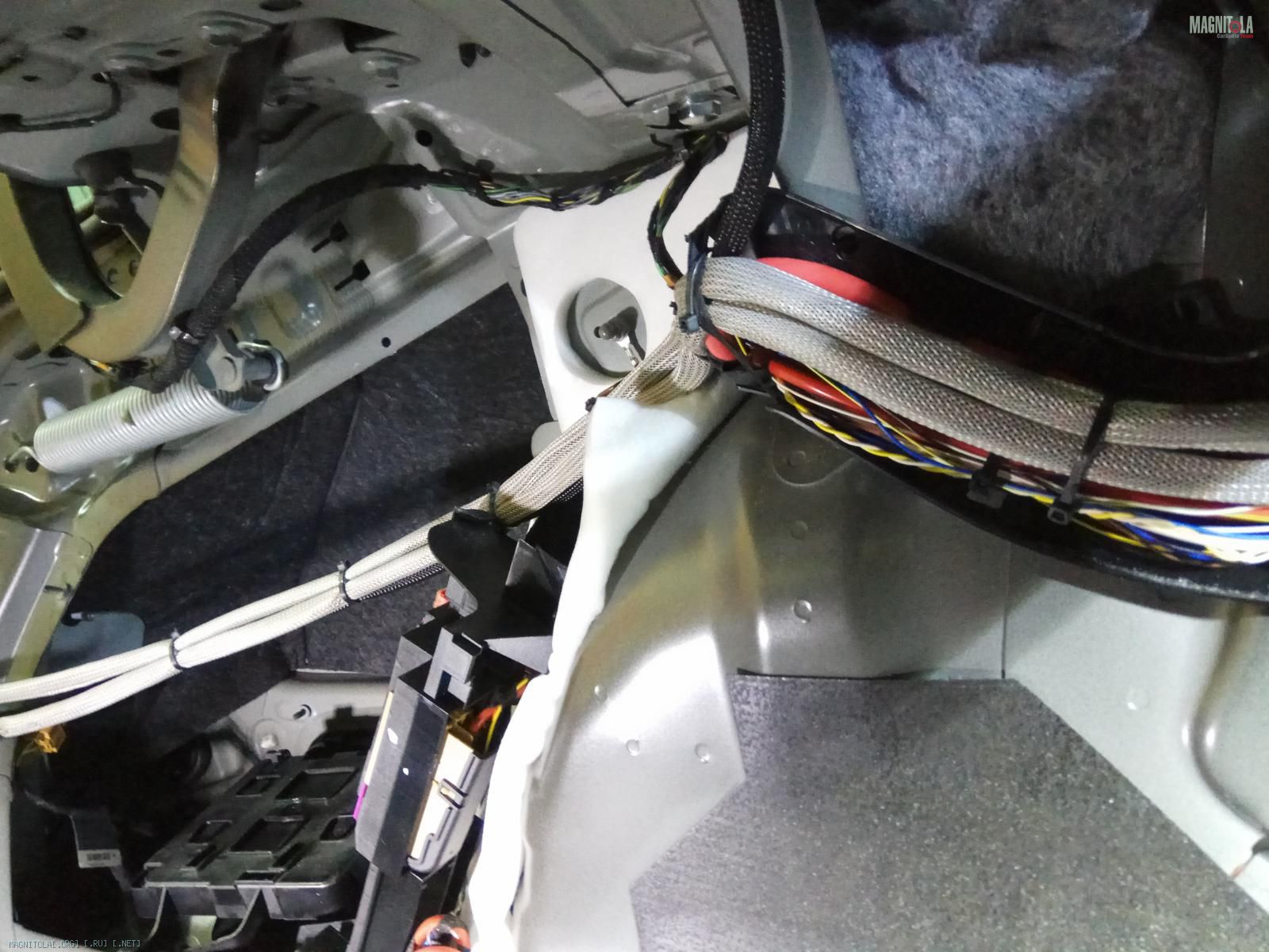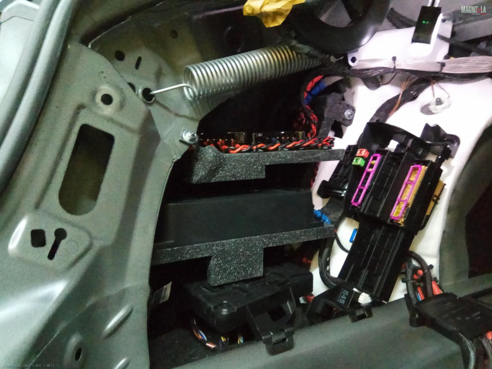 … так протягивали провода, порвали элемент шумоизоляции катушки ремня безопасности…