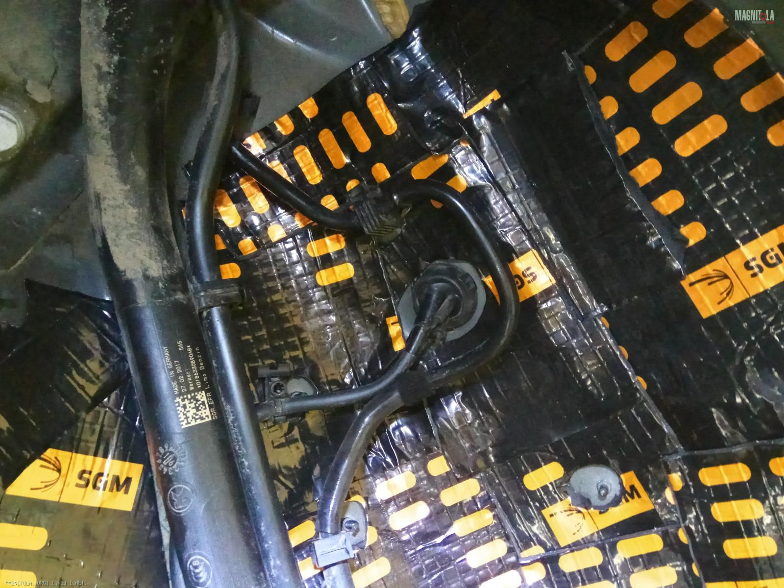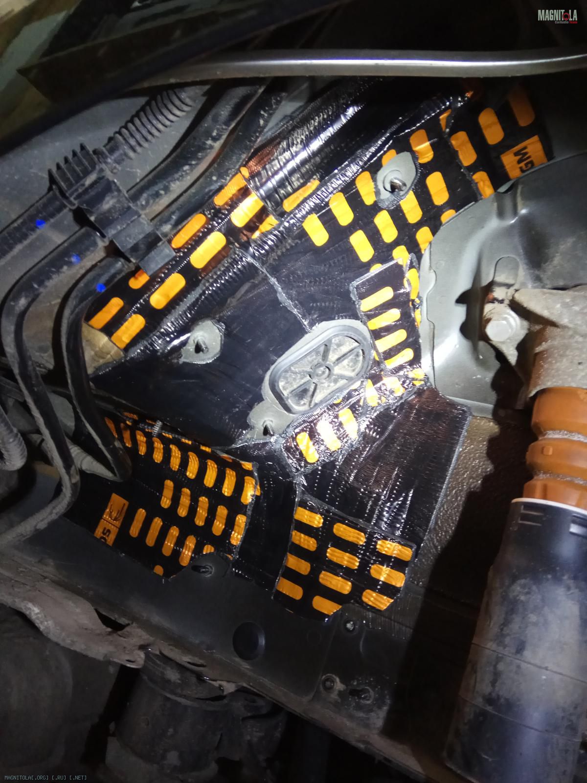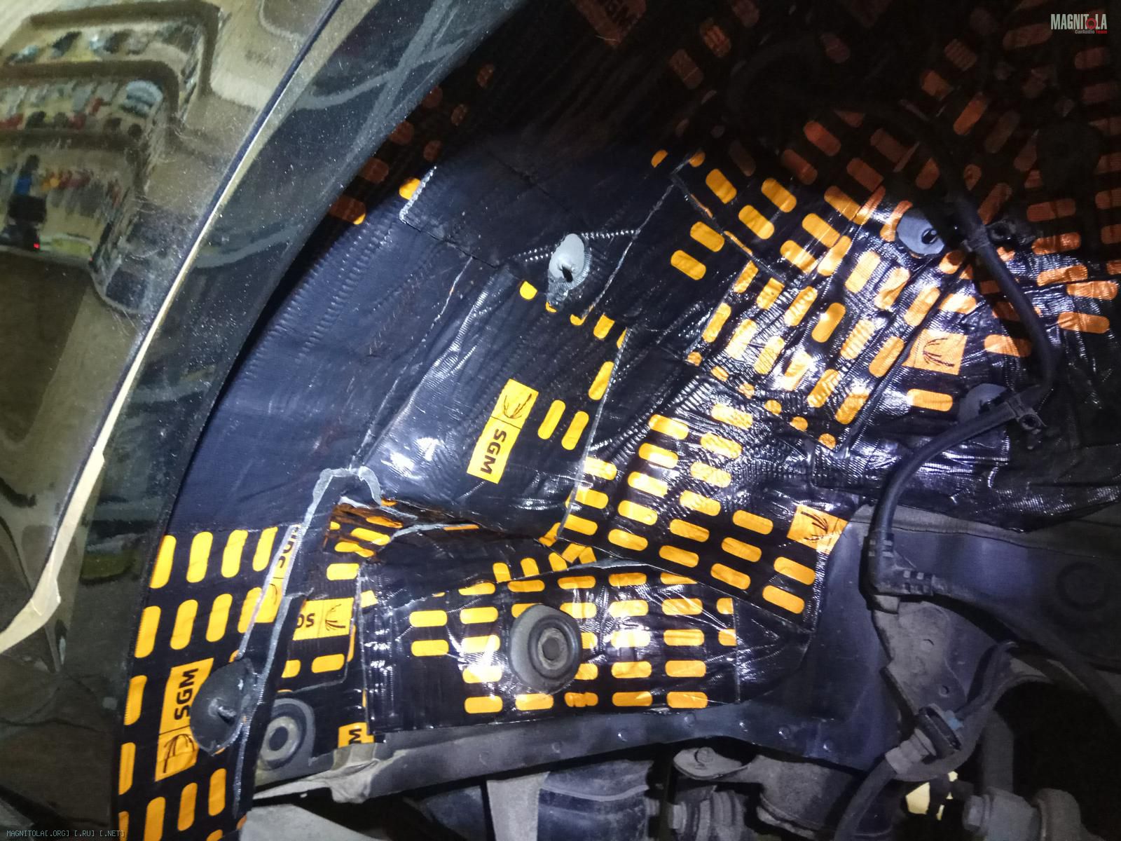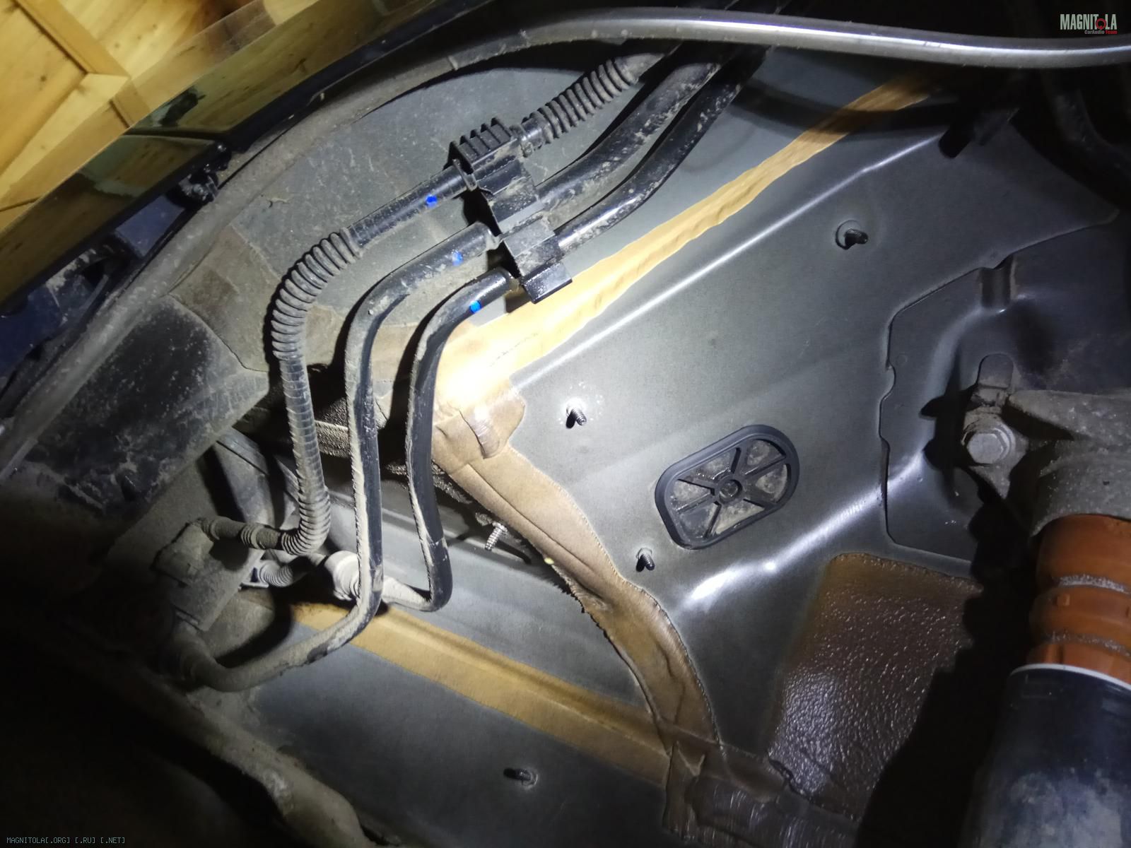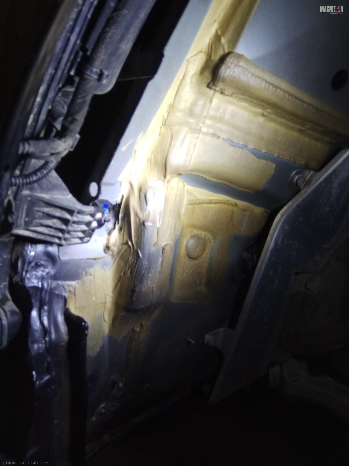 … так протягивали провода, порвали элемент шумоизоляции катушки ремня безопасности…