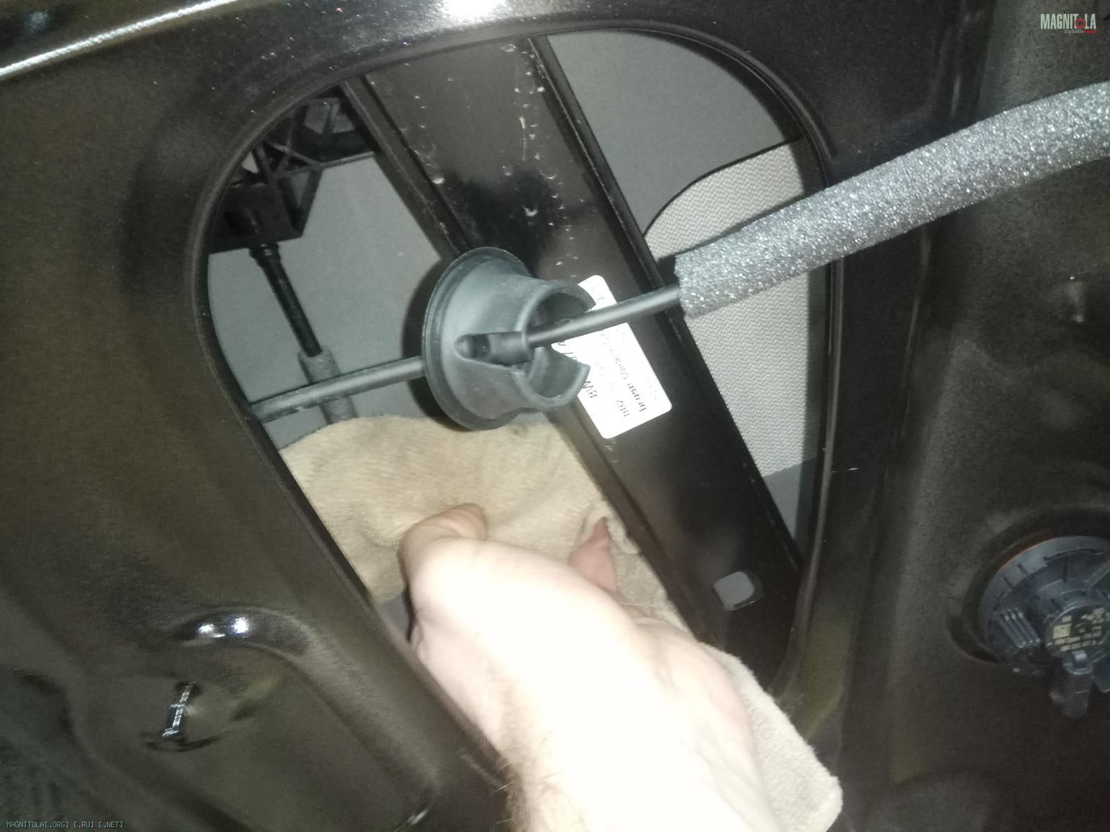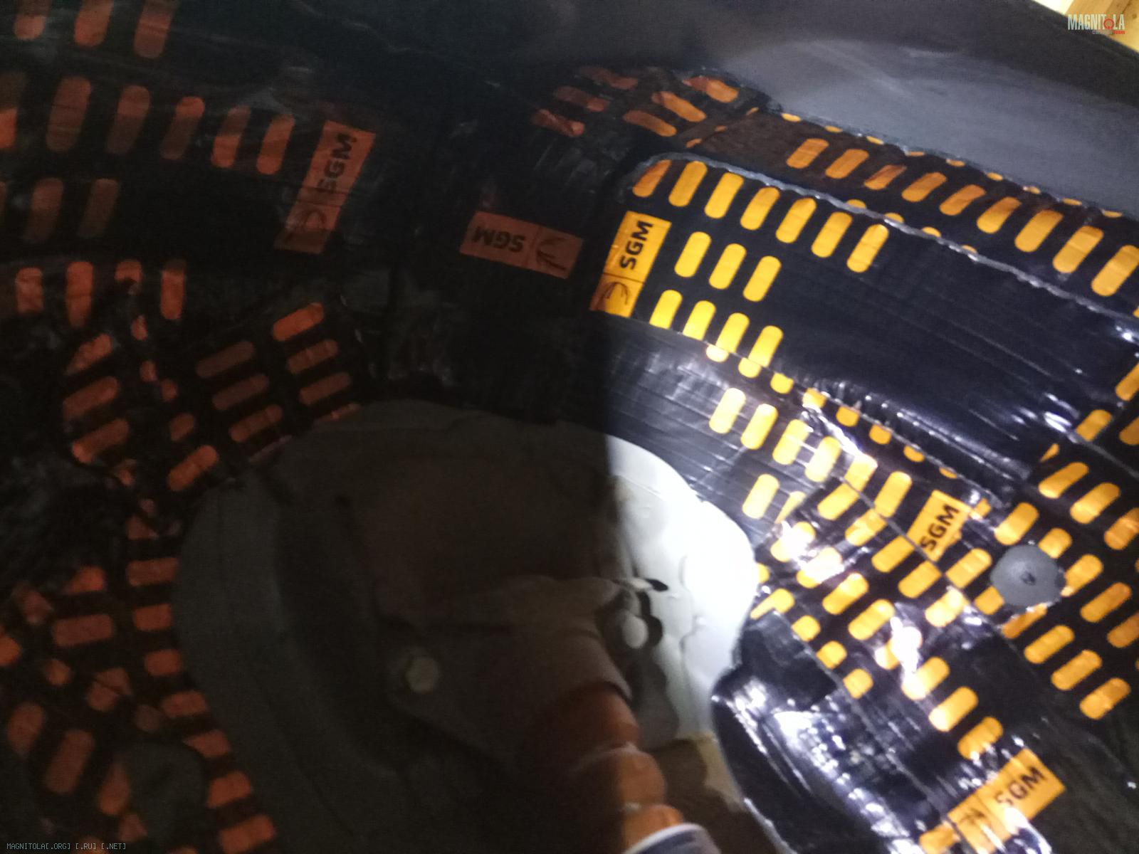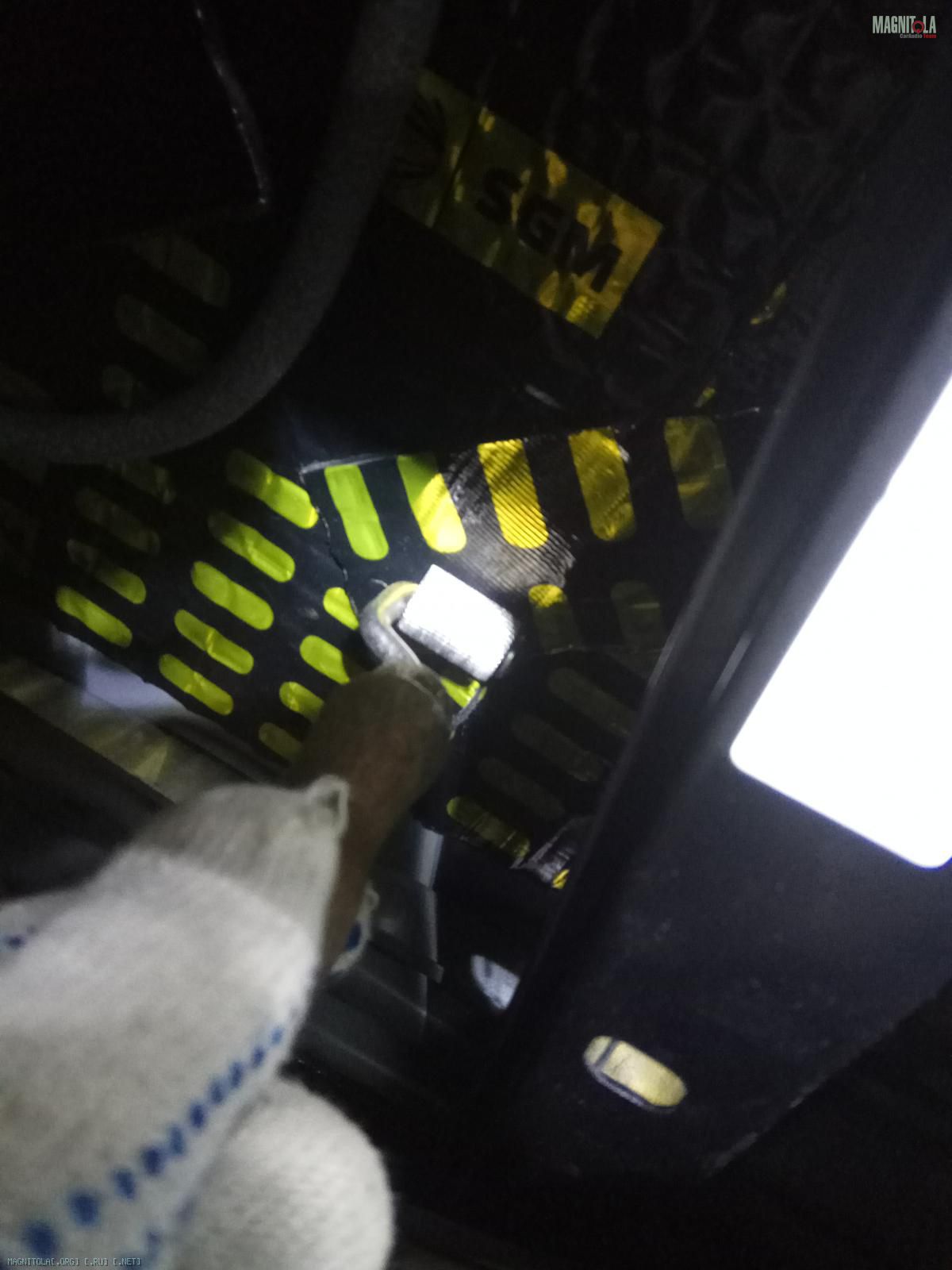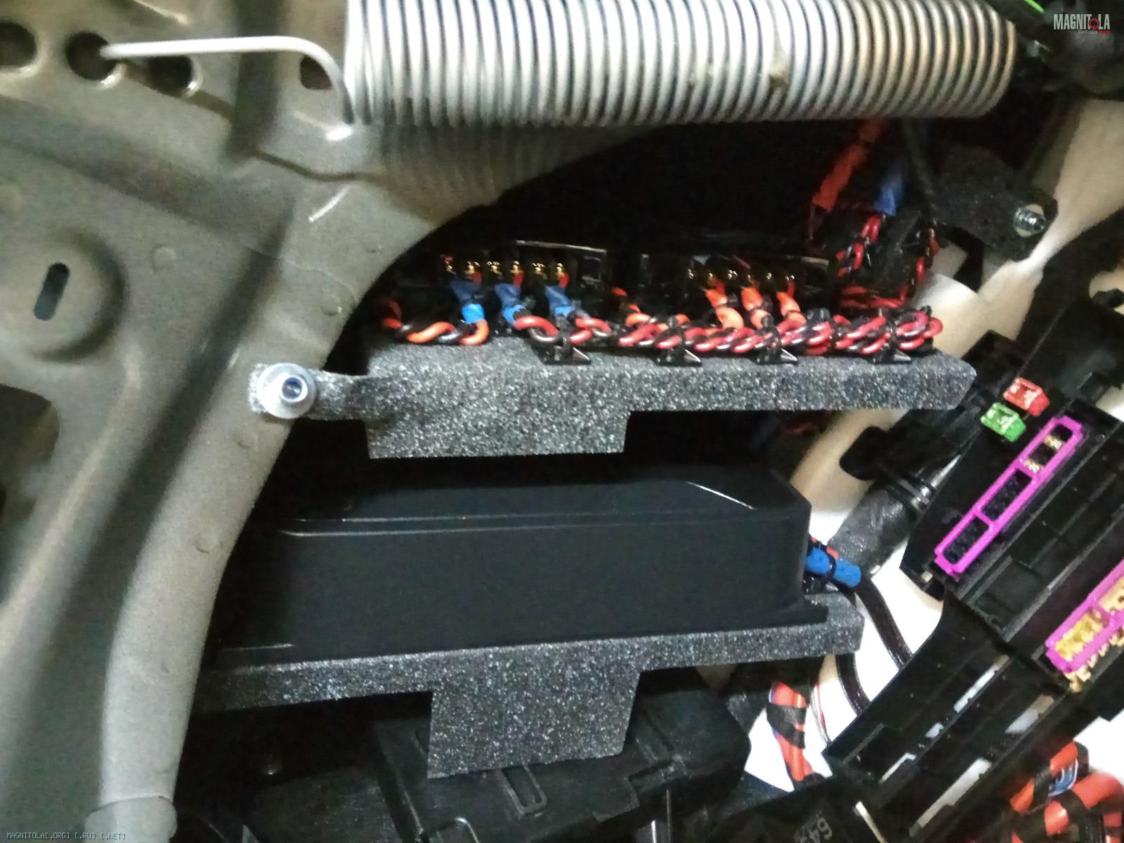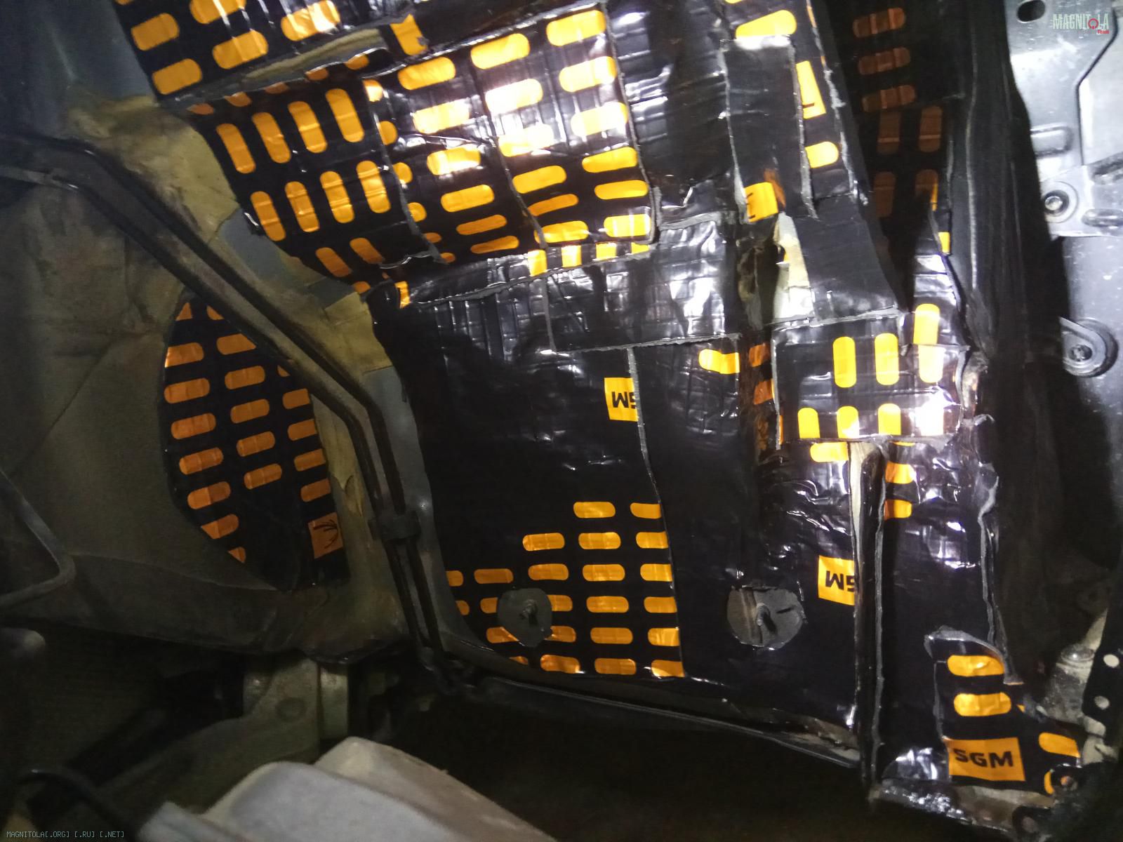 … так протягивали провода, порвали элемент шумоизоляции катушки ремня безопасности…