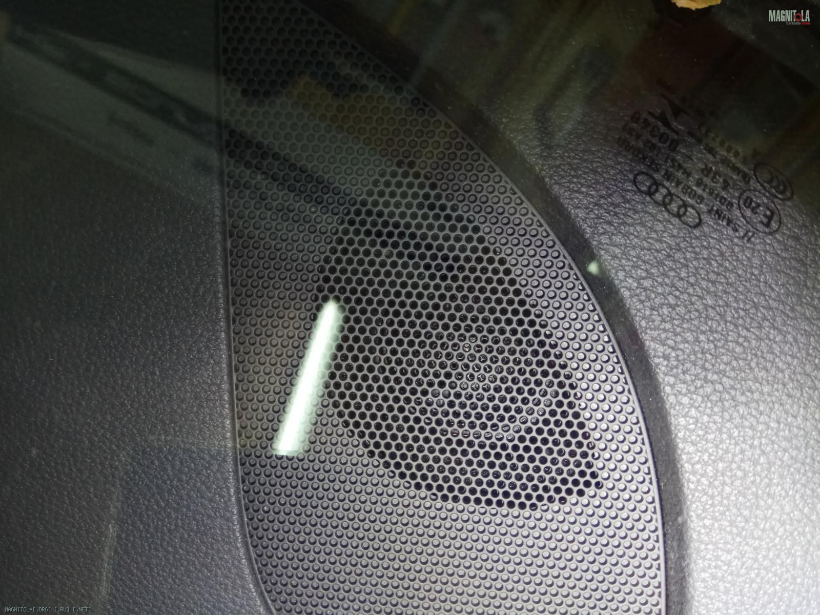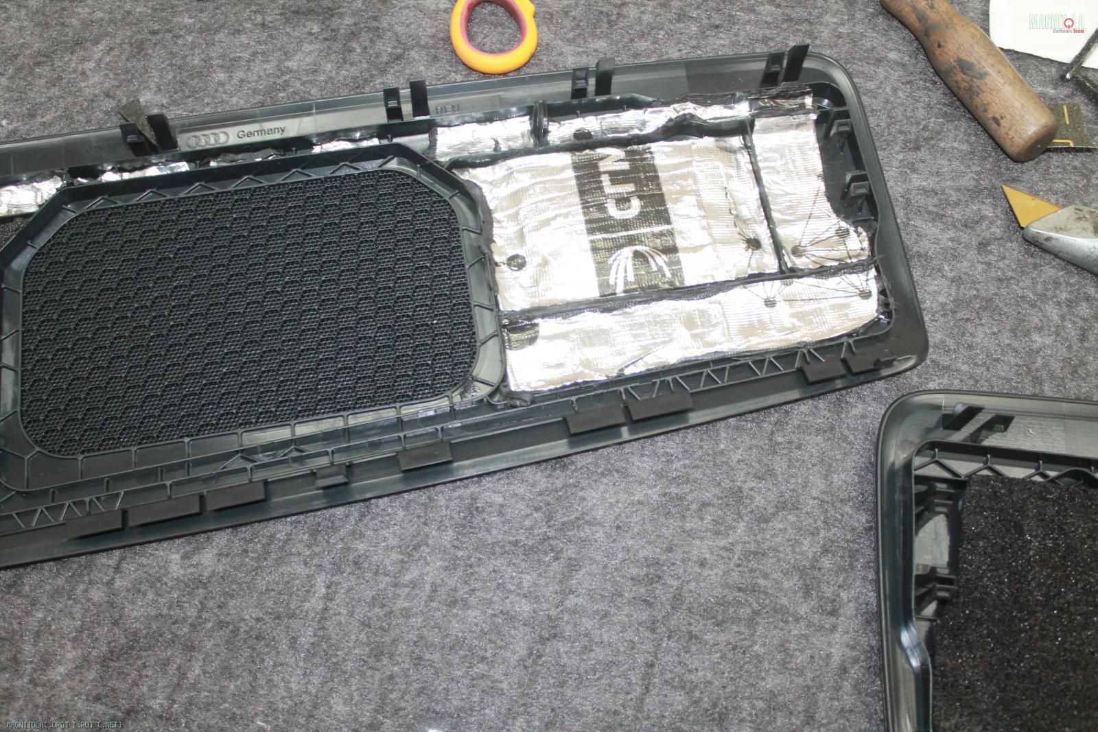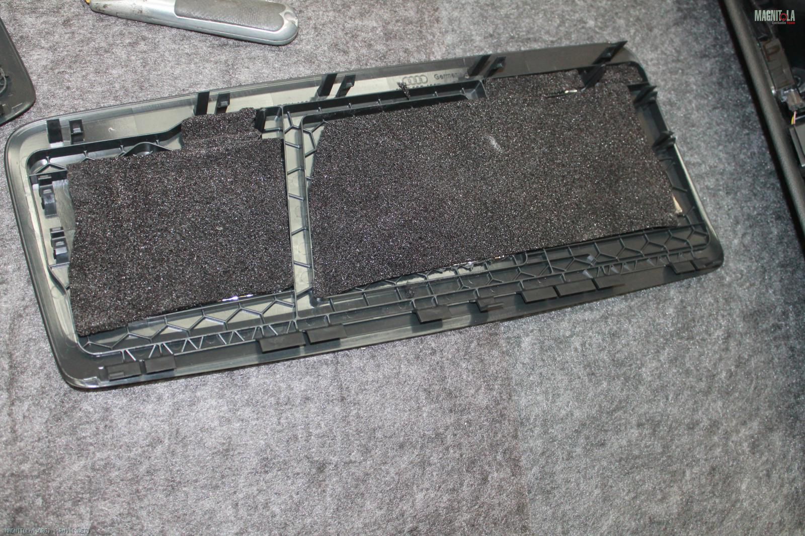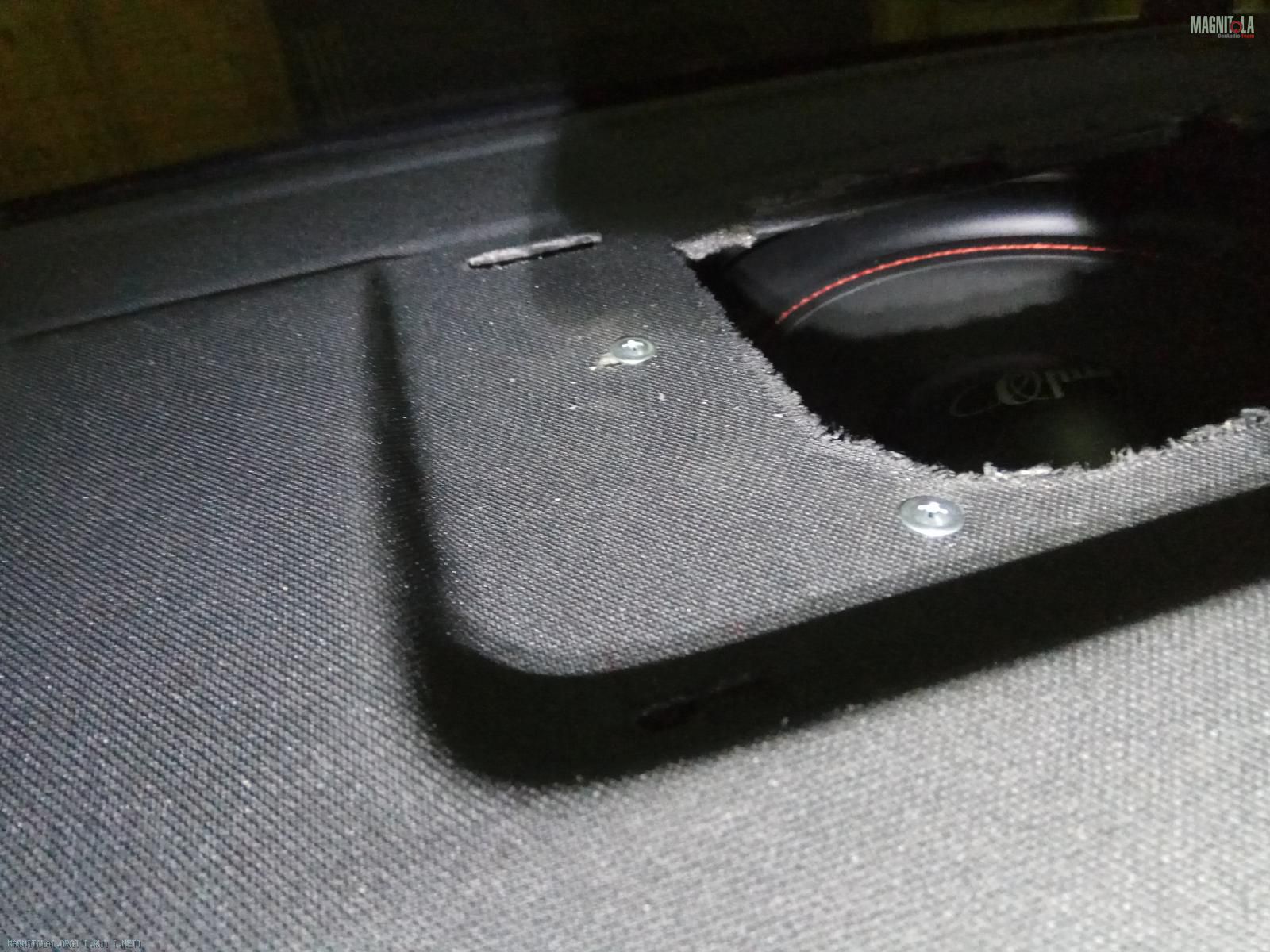 В ауди саунд систем, полка с завода идет с двумя сетками, симметричными, а не с одной, которую косо и криво вам могут врезать…