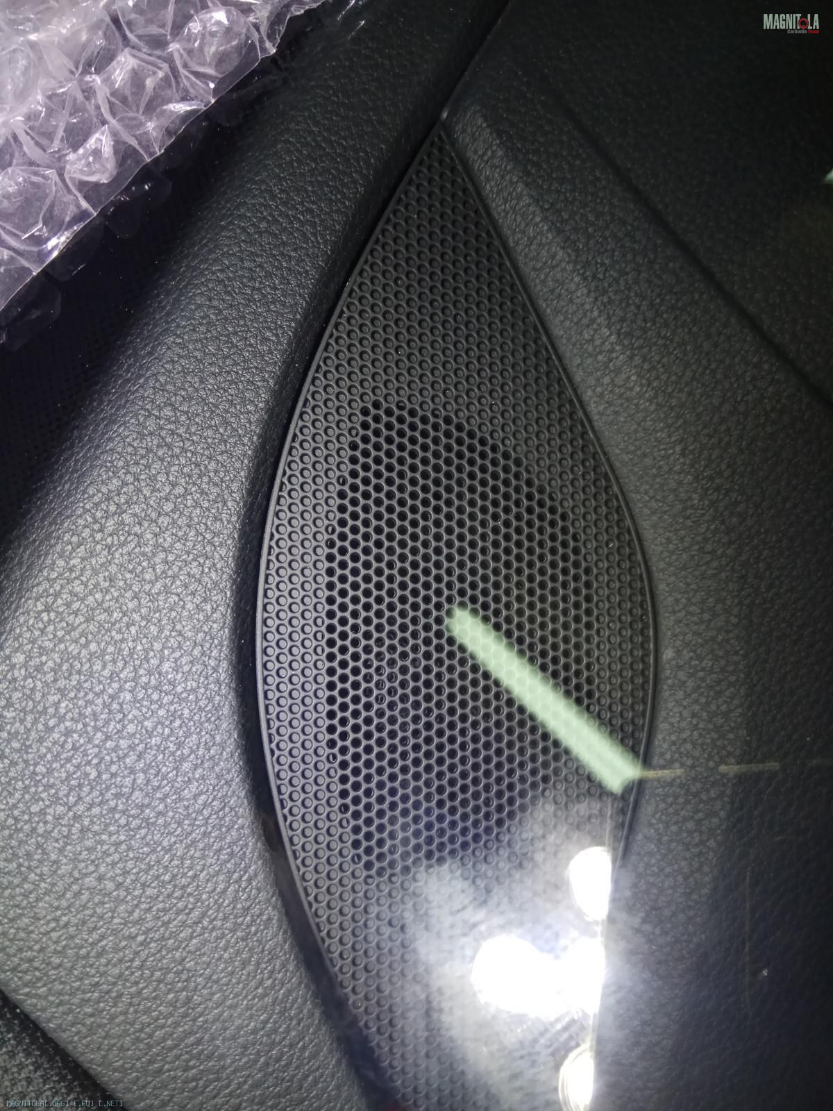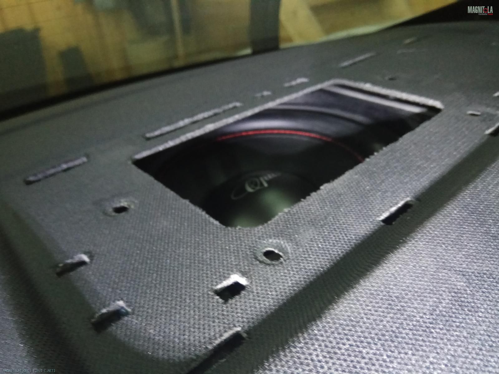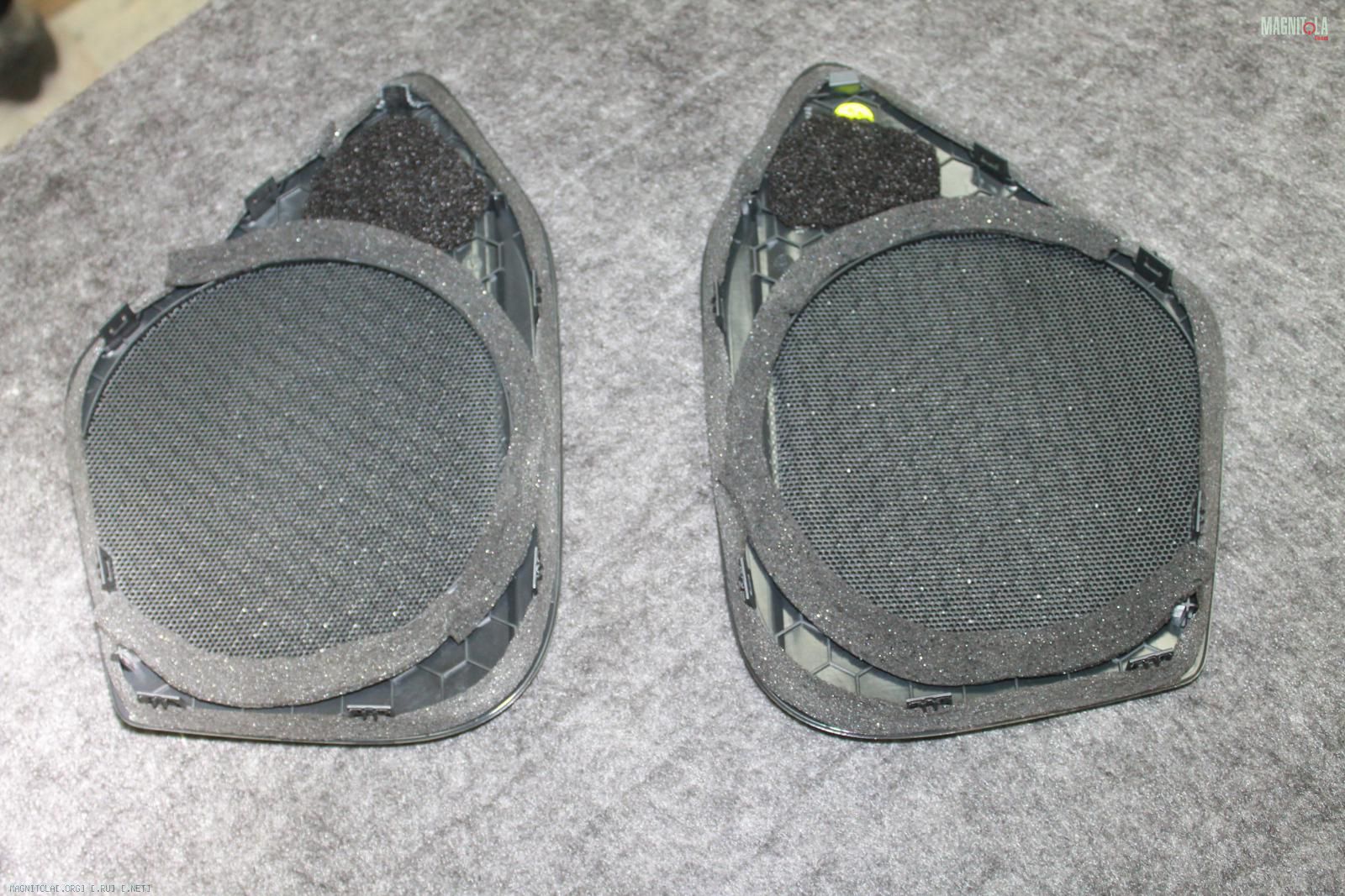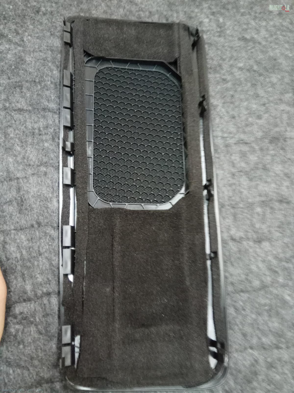 В ауди саунд систем, полка с завода идет с двумя сетками, симметричными, а не с одной, которую косо и криво вам могут врезать…