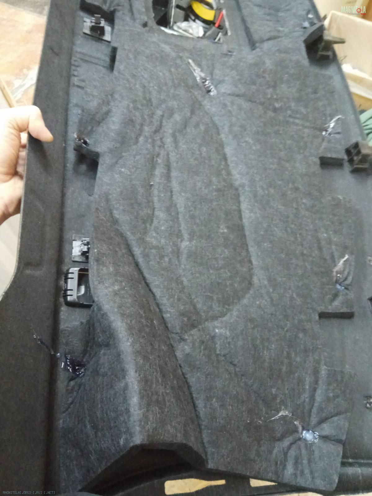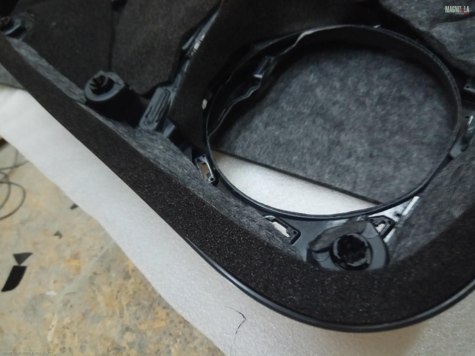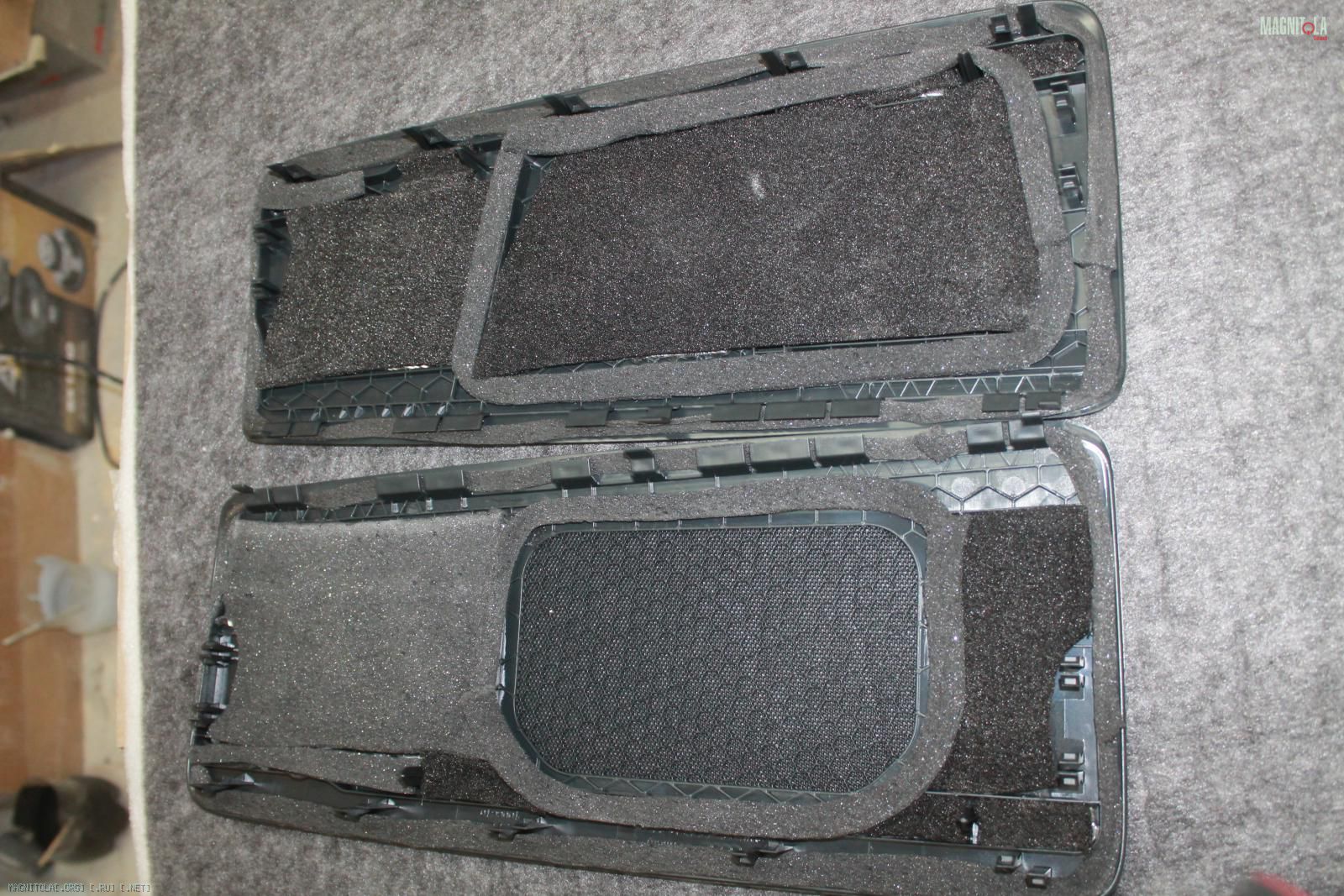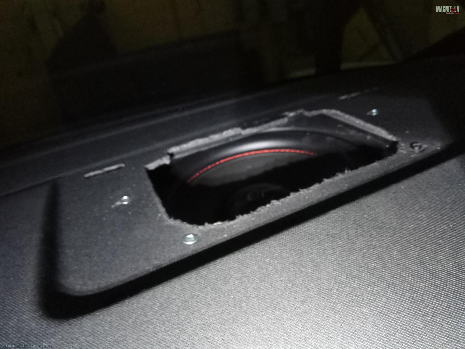 В ауди саунд систем, полка с завода идет с двумя сетками, симметричными, а не с одной, которую косо и криво вам могут врезать…