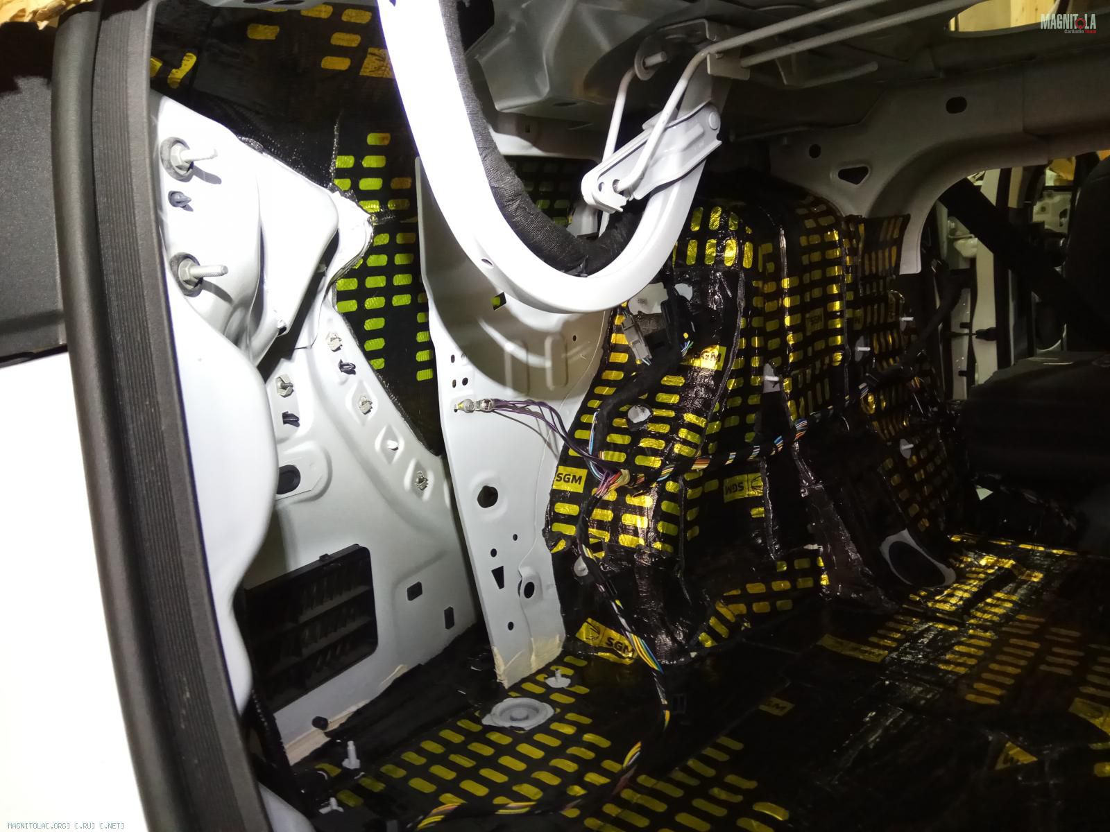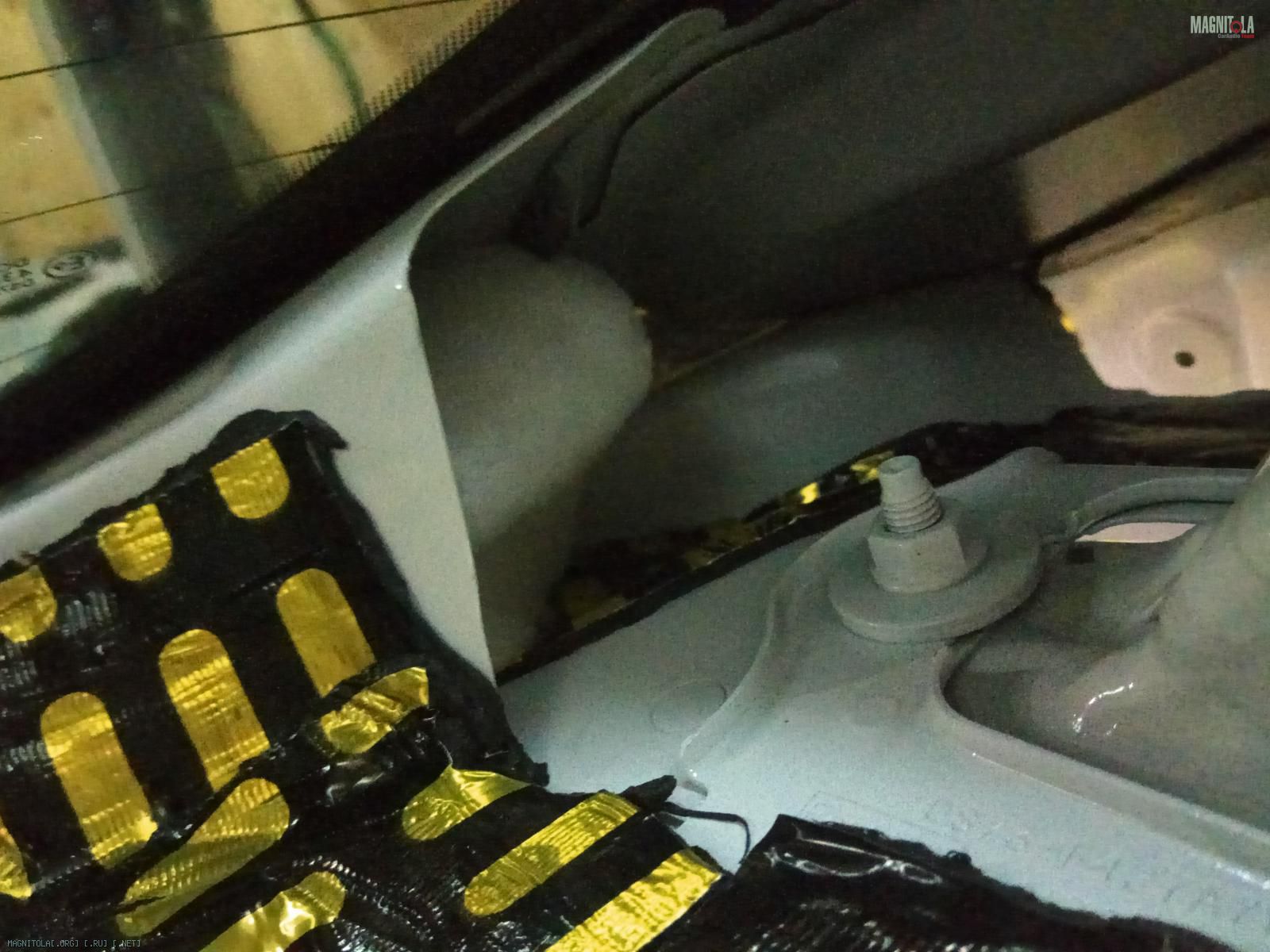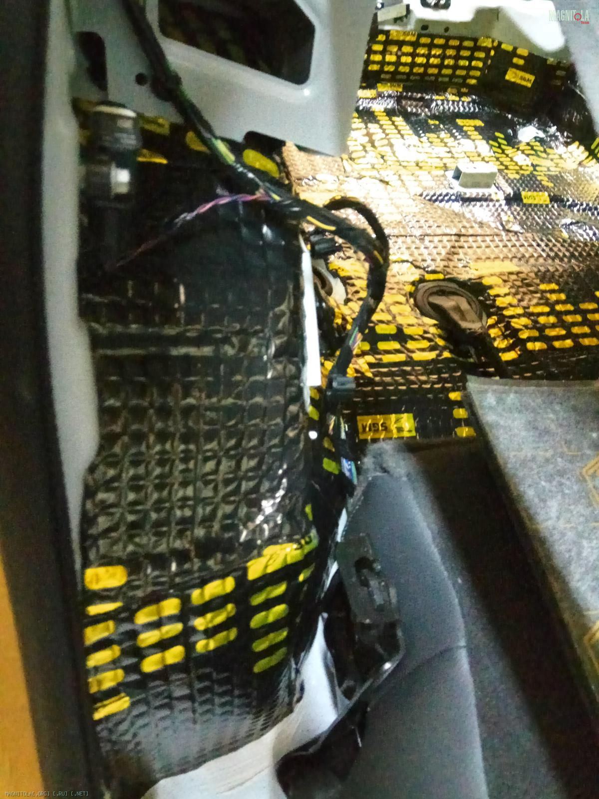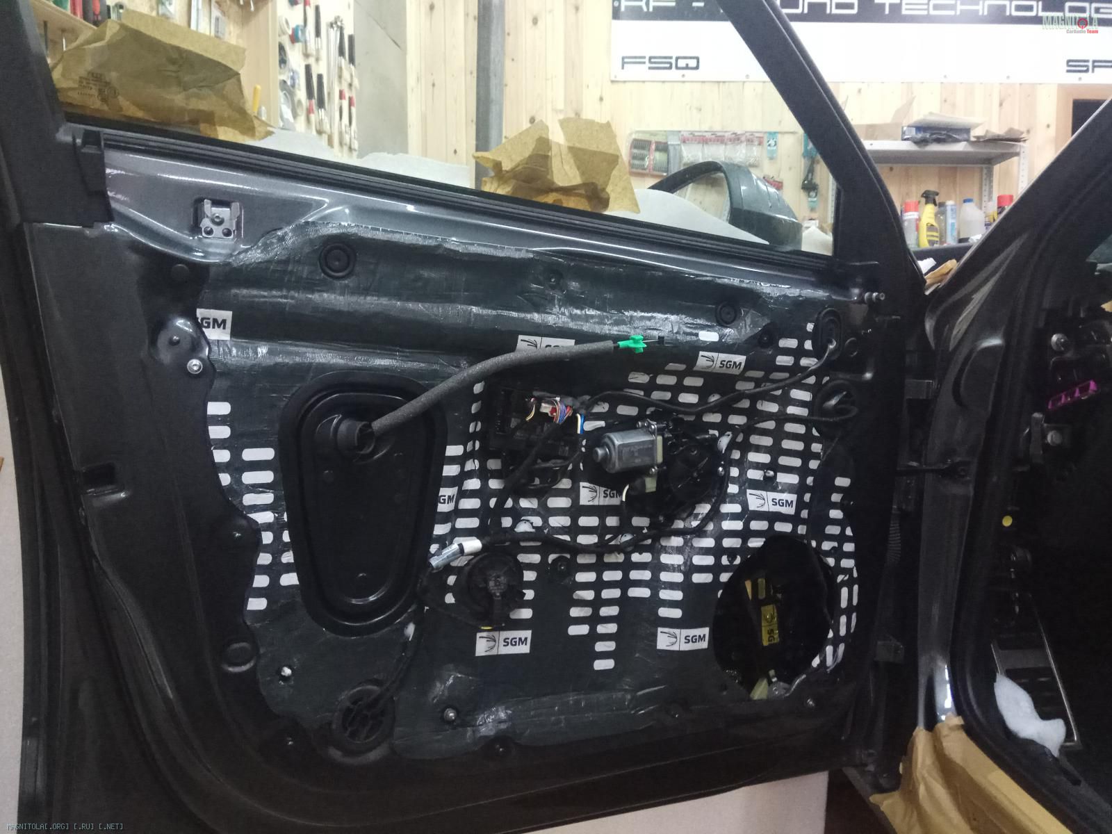 Далее наносим вибру 4мм, войлок, штатный войлок, уплотнительную ленты из битопласта...
