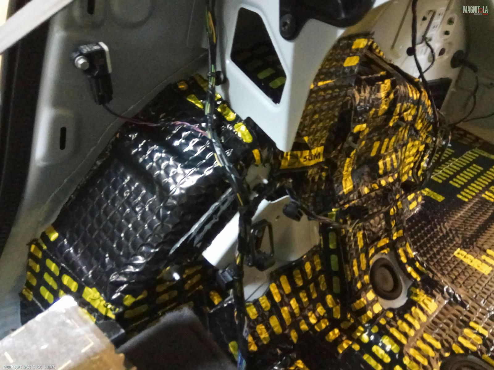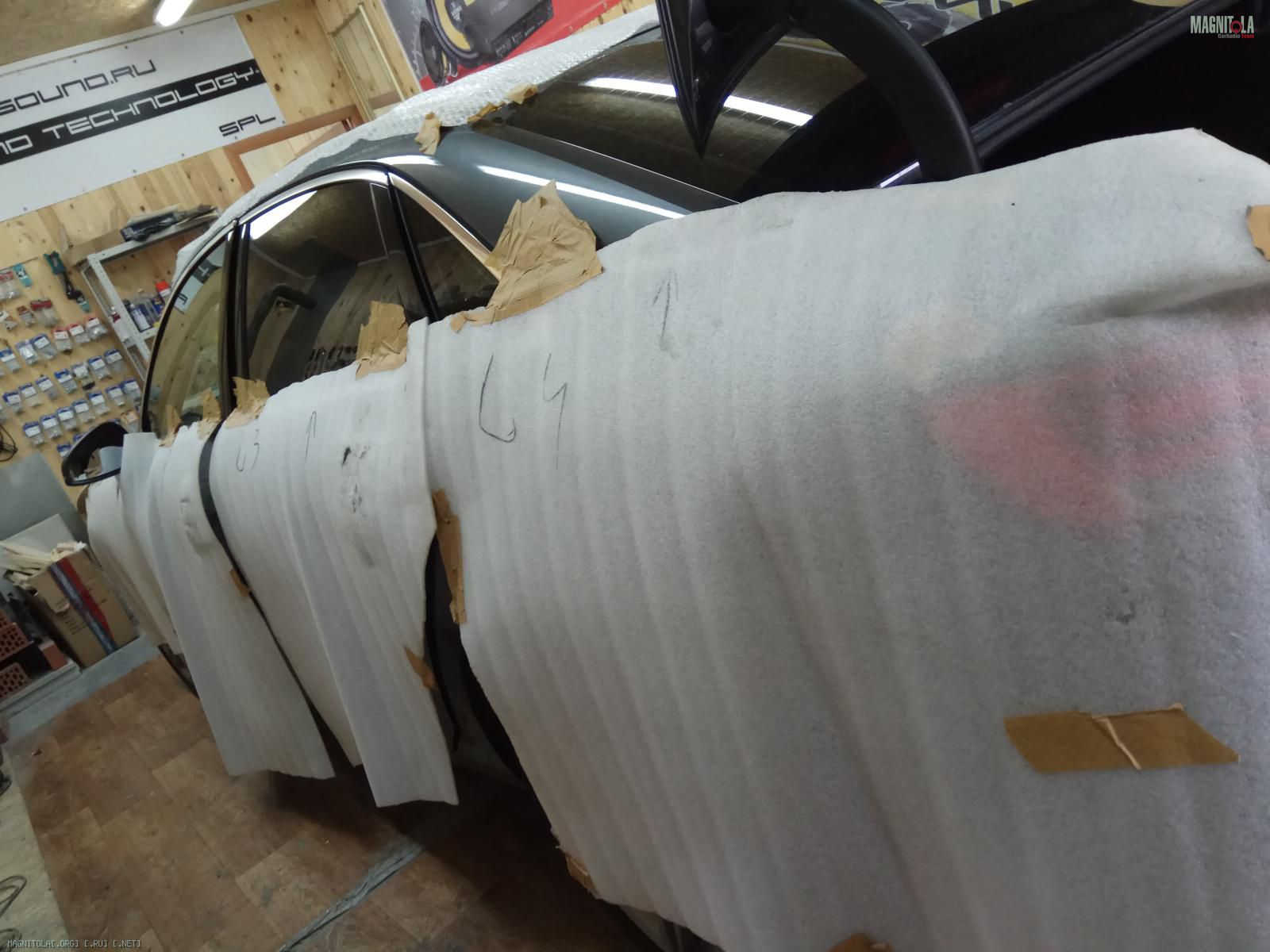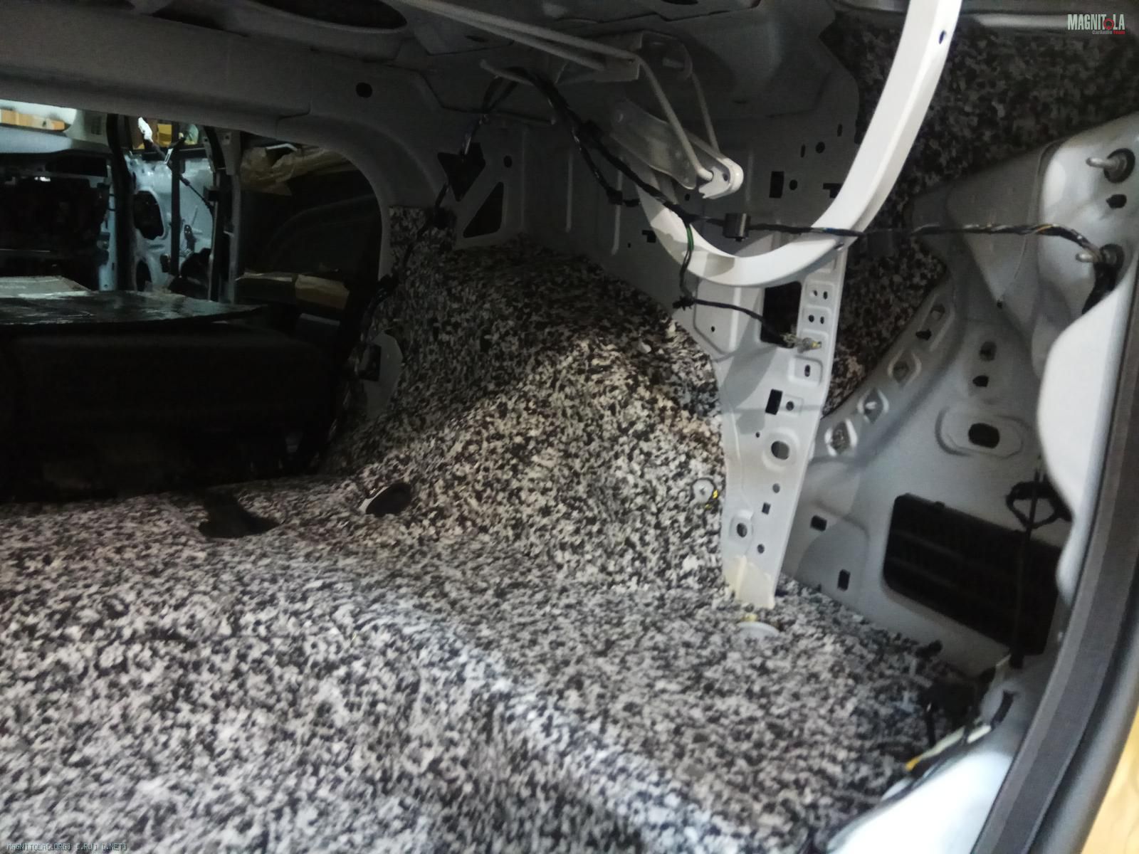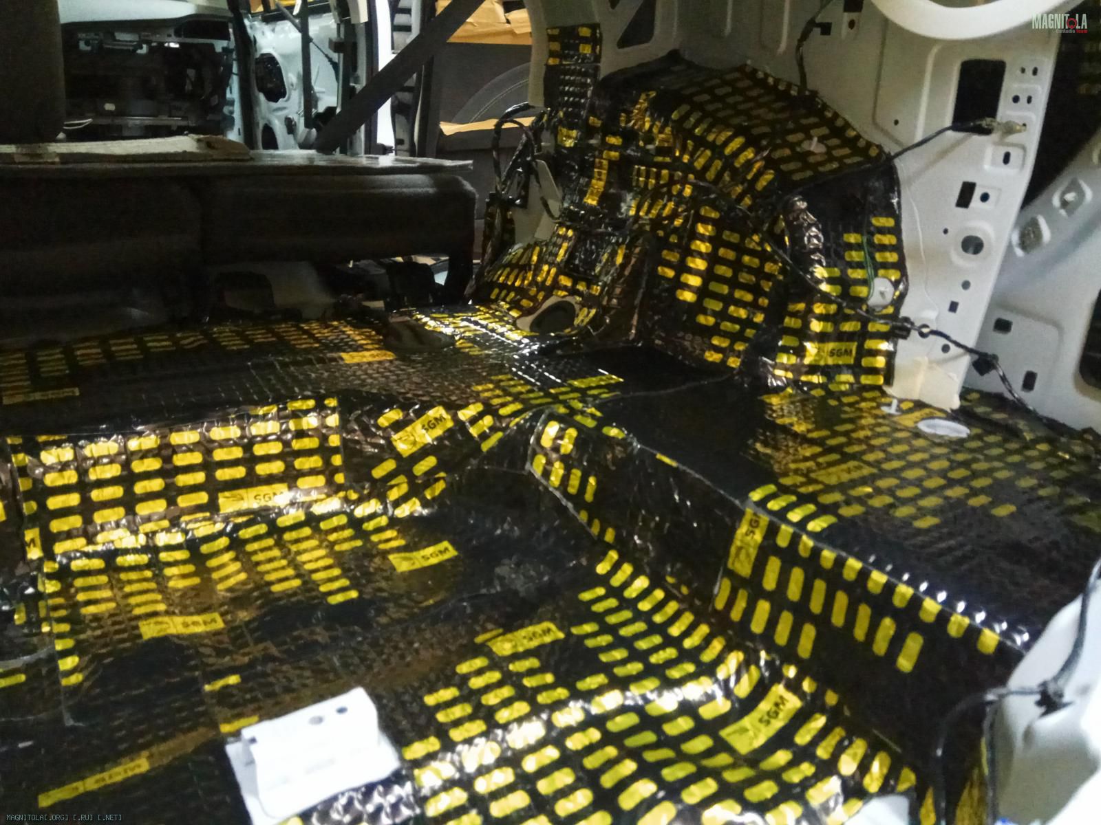 Далее наносим вибру 4мм, войлок, штатный войлок, уплотнительную ленты из битопласта...