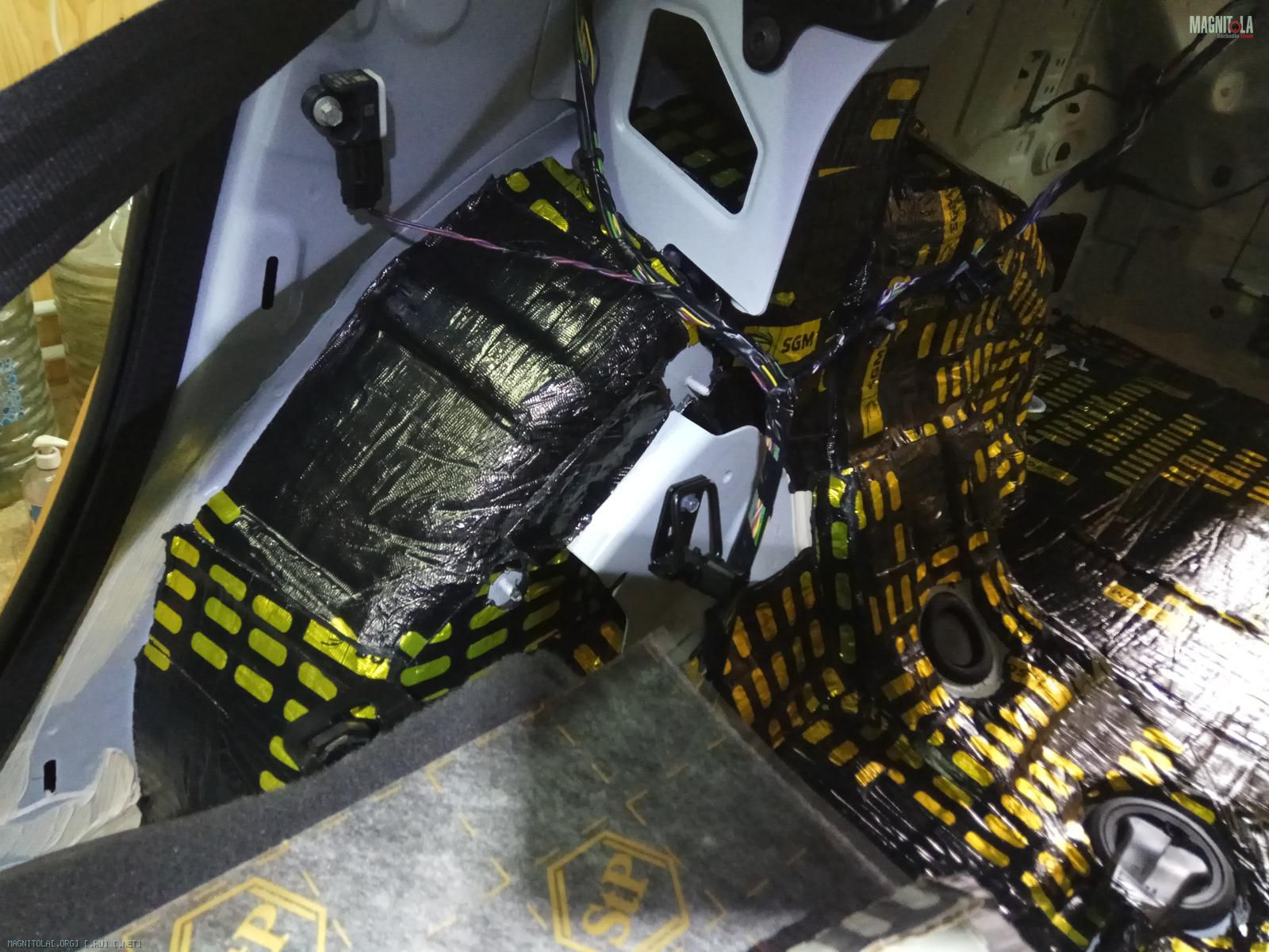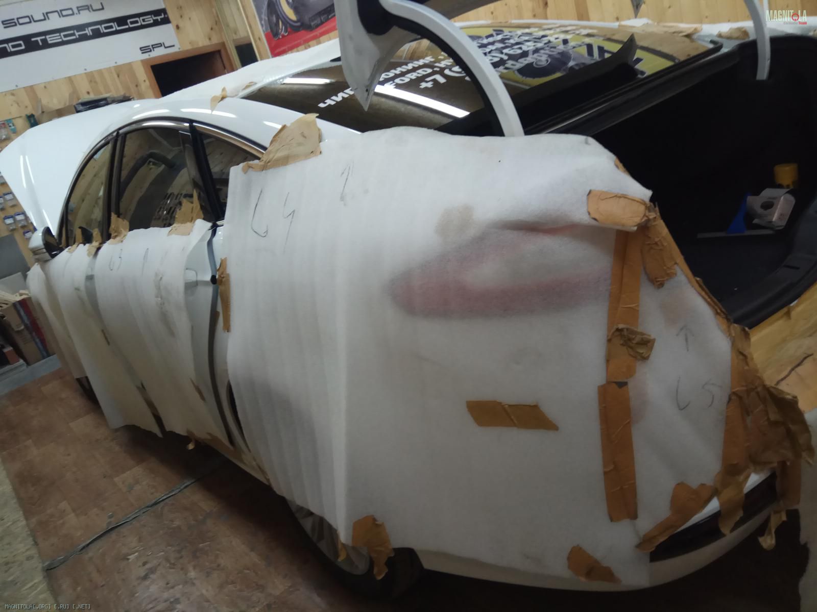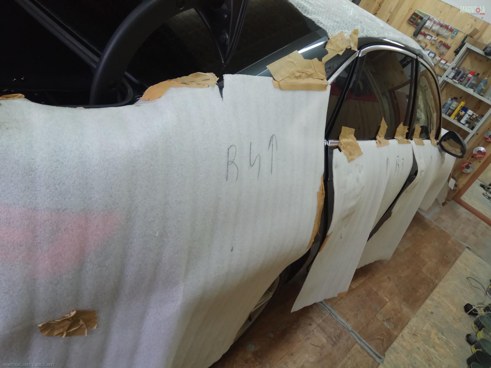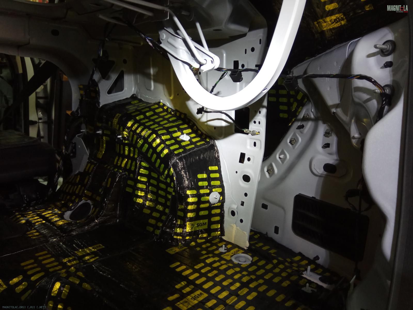 Далее наносим вибру 4мм, войлок, штатный войлок, уплотнительную ленты из битопласта...