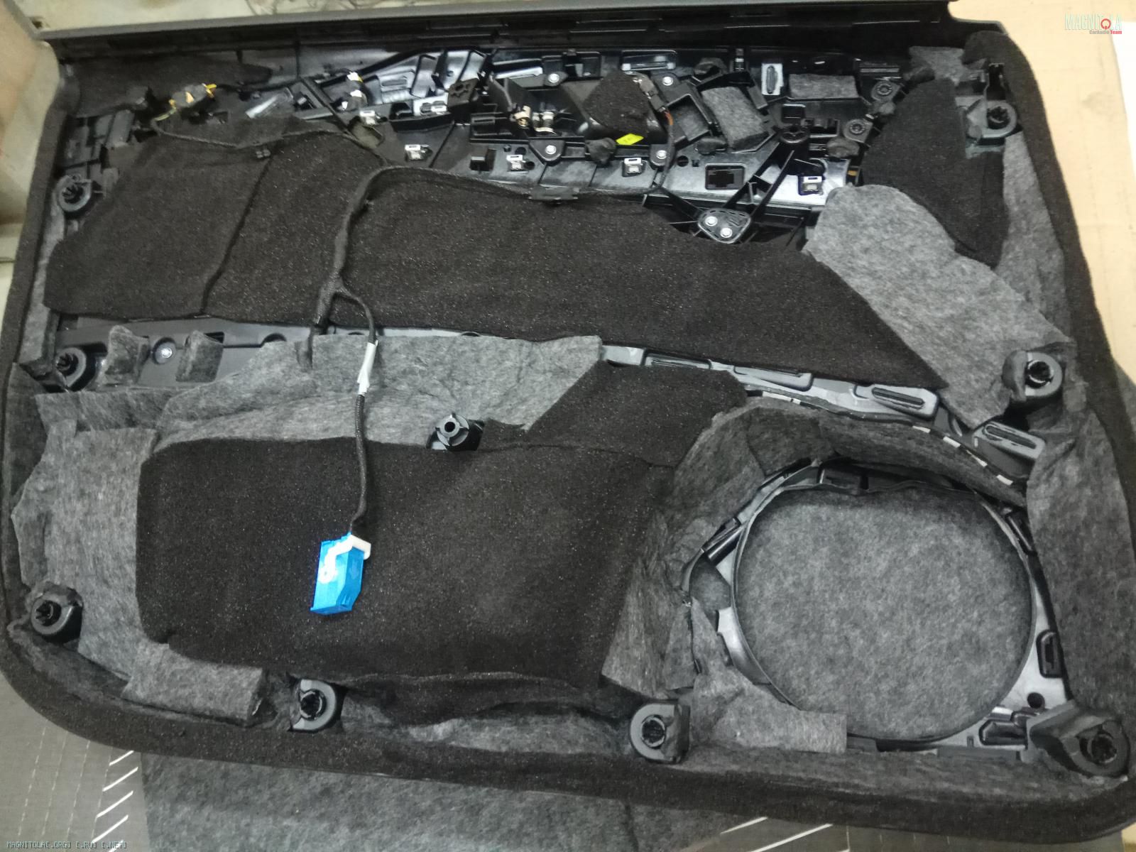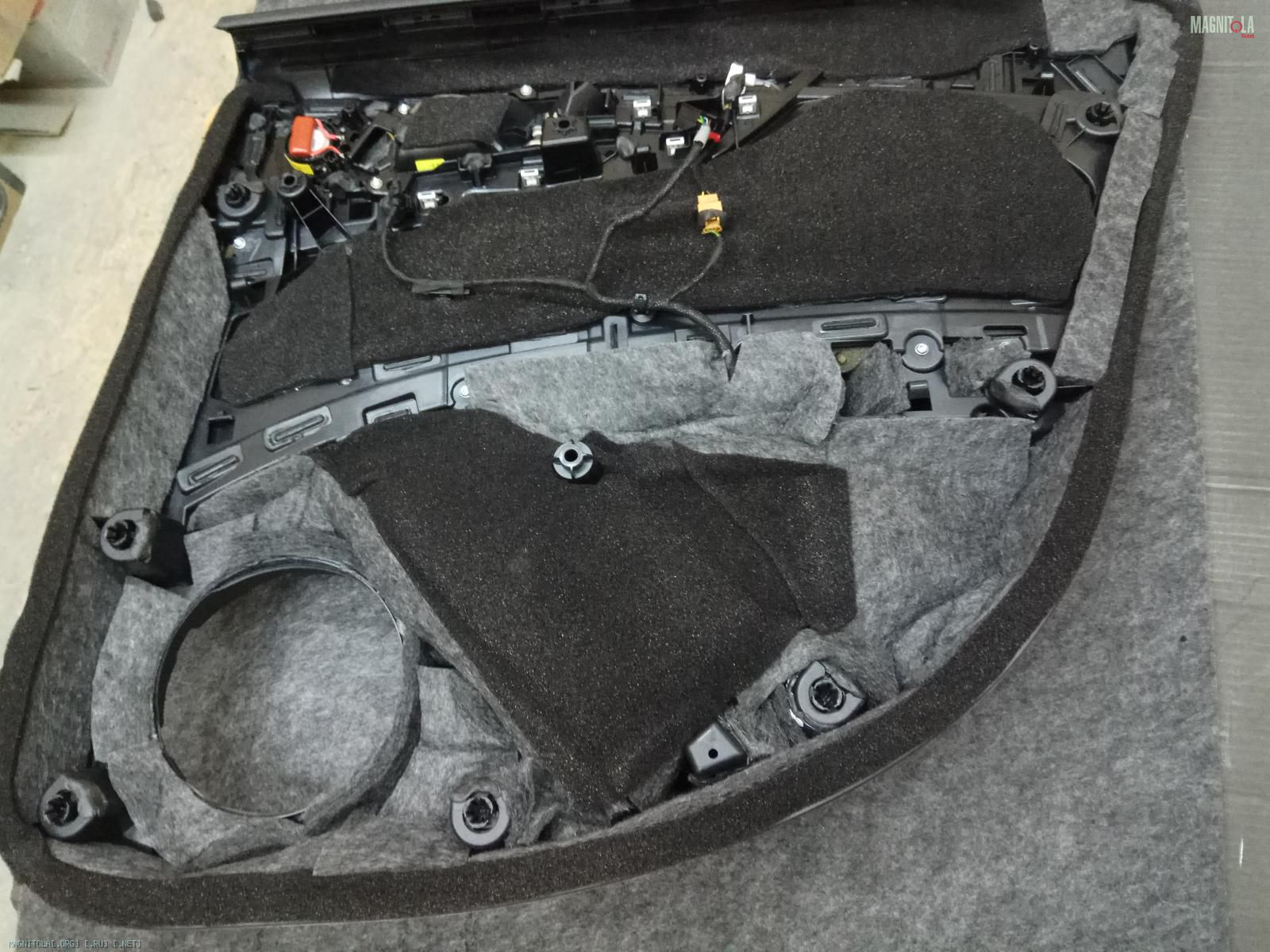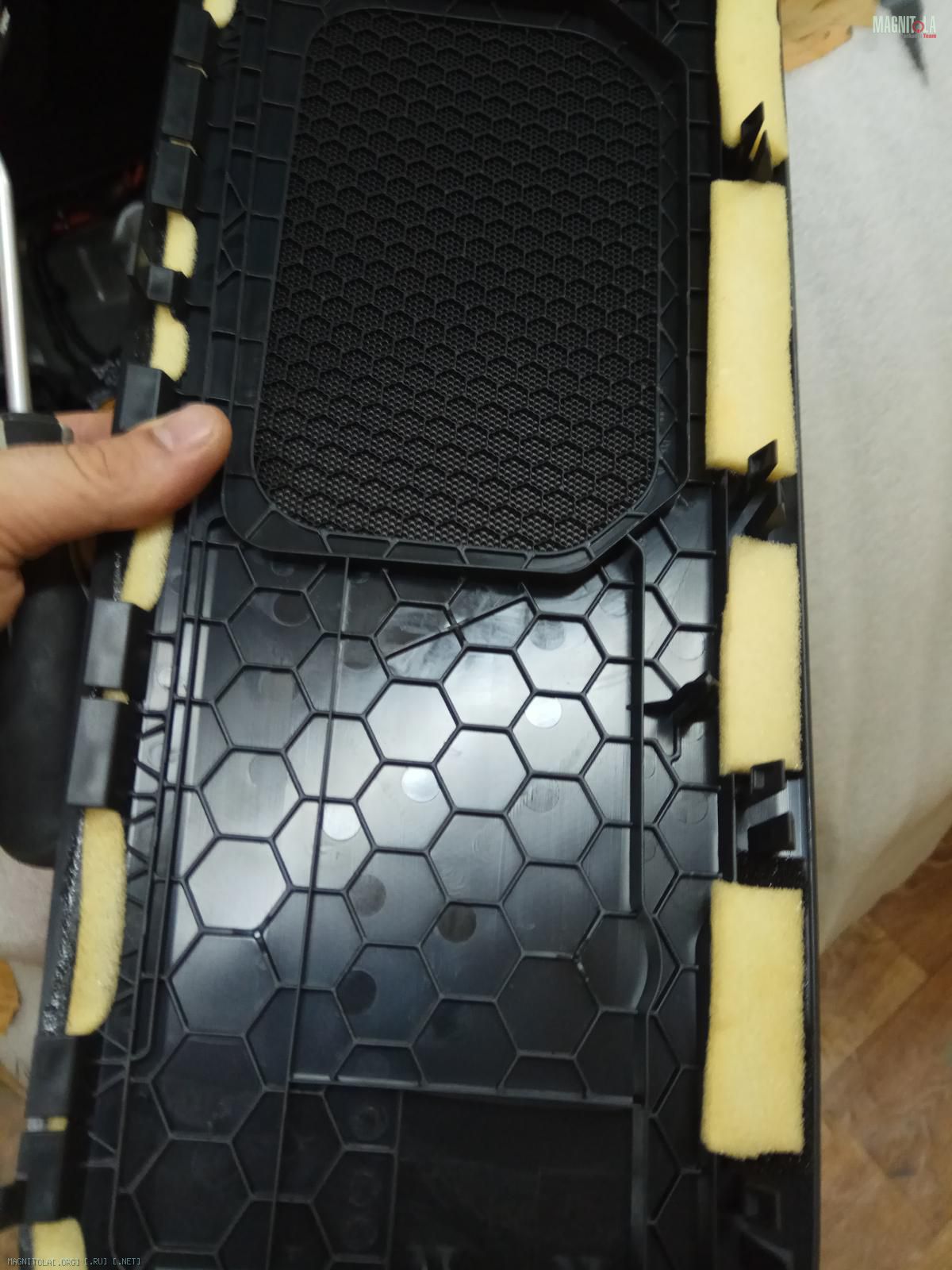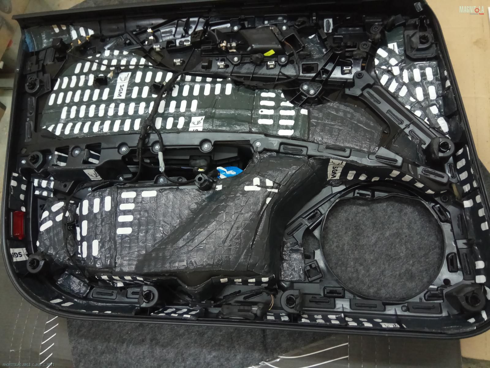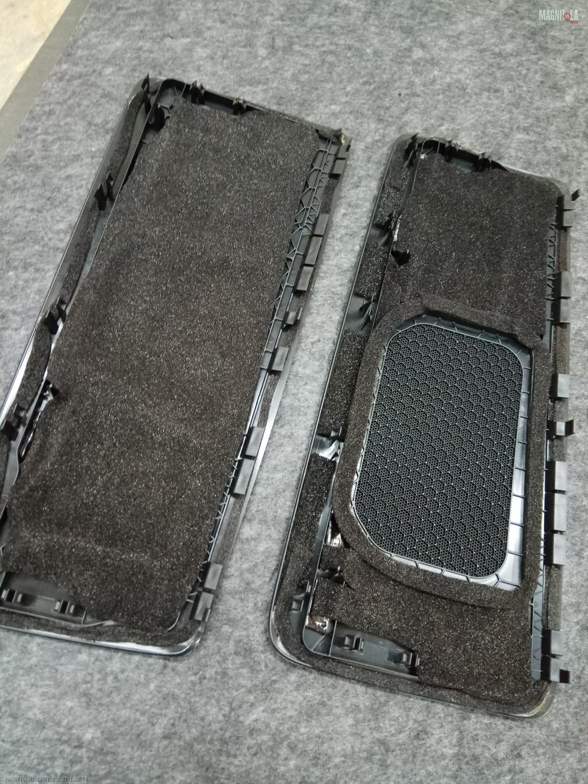 Проклеиваются сетки динамиков и декоративный пластик двери...