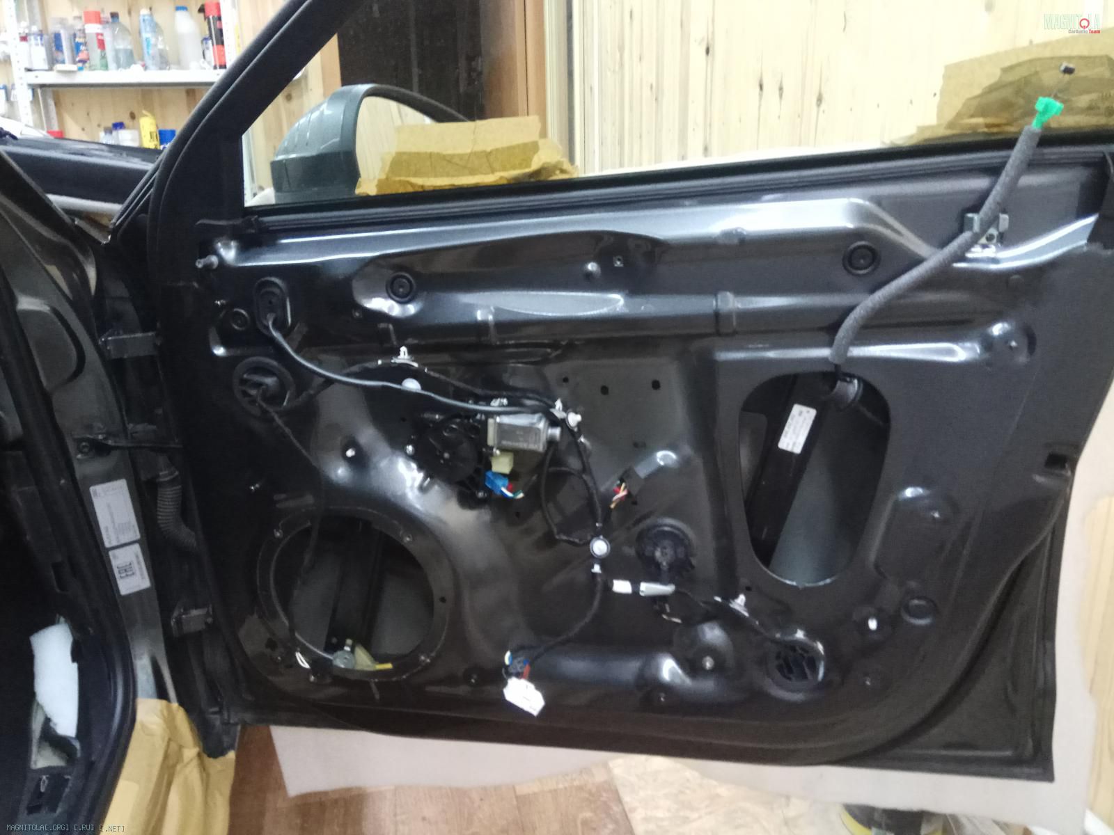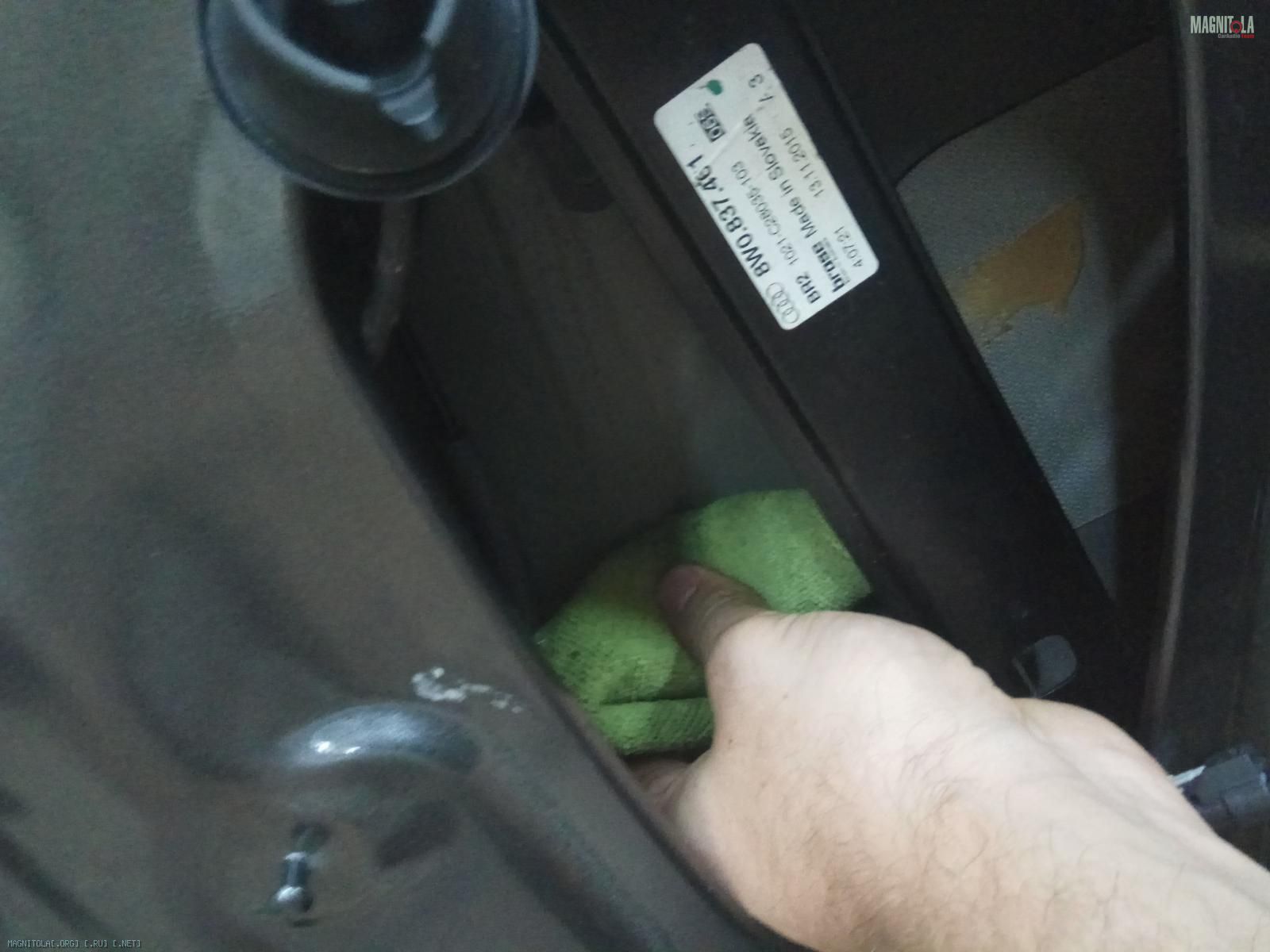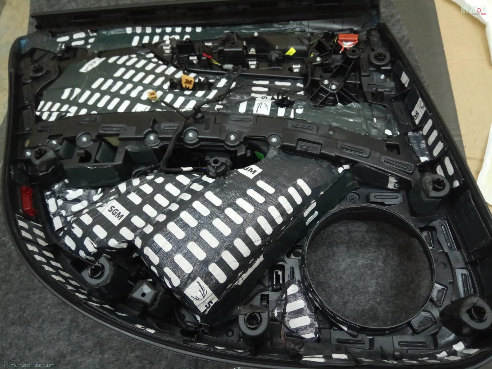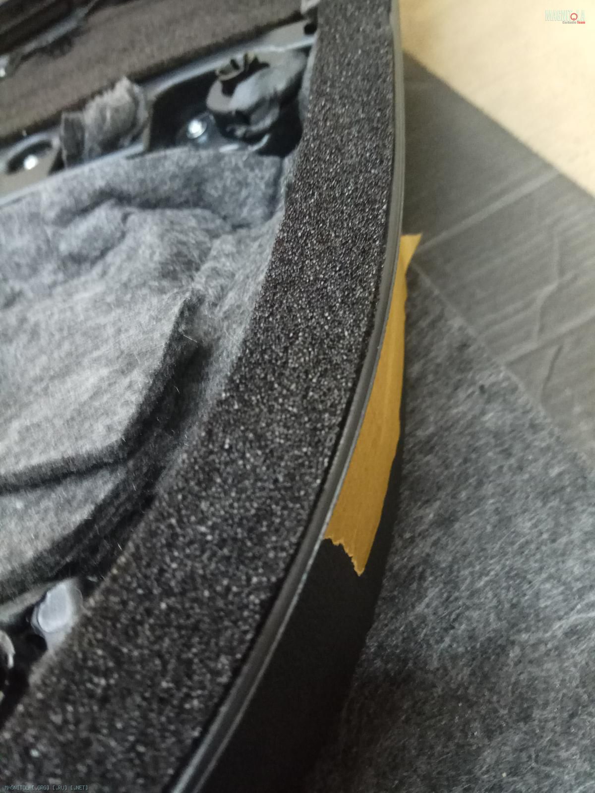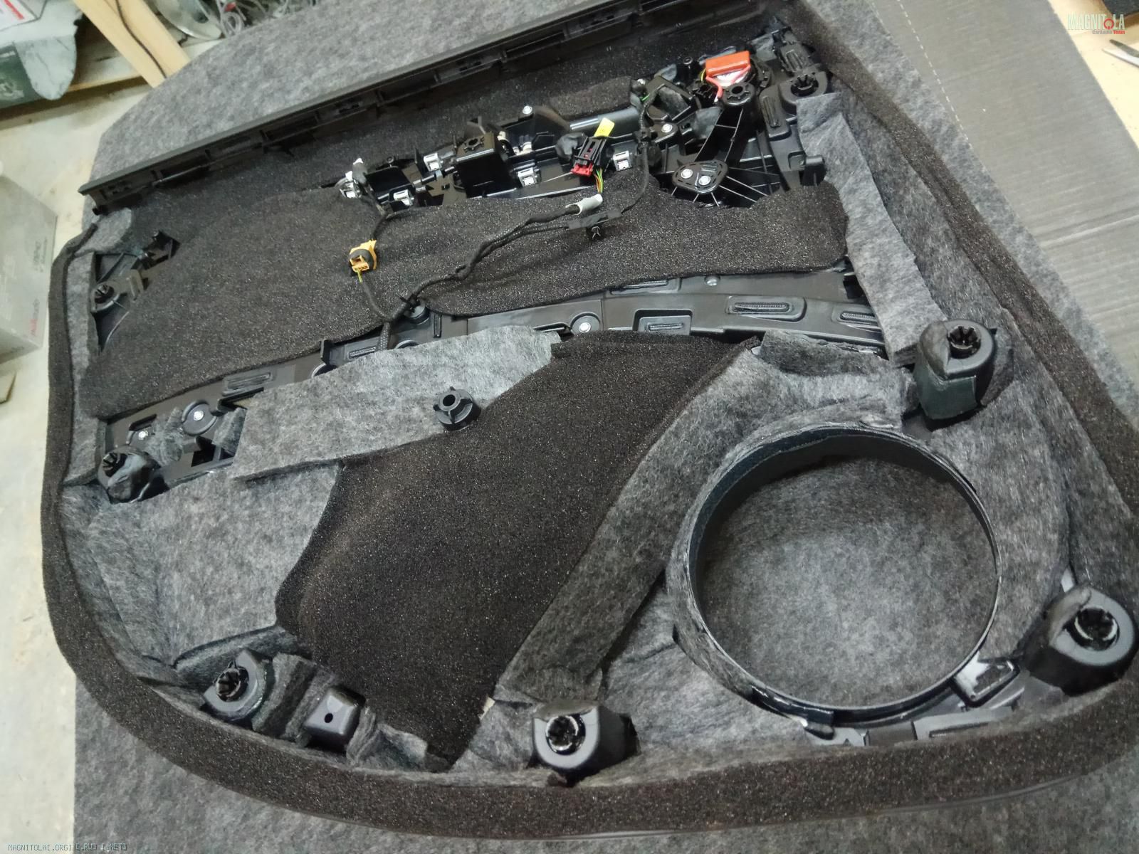 Проклеиваются сетки динамиков и декоративный пластик двери...