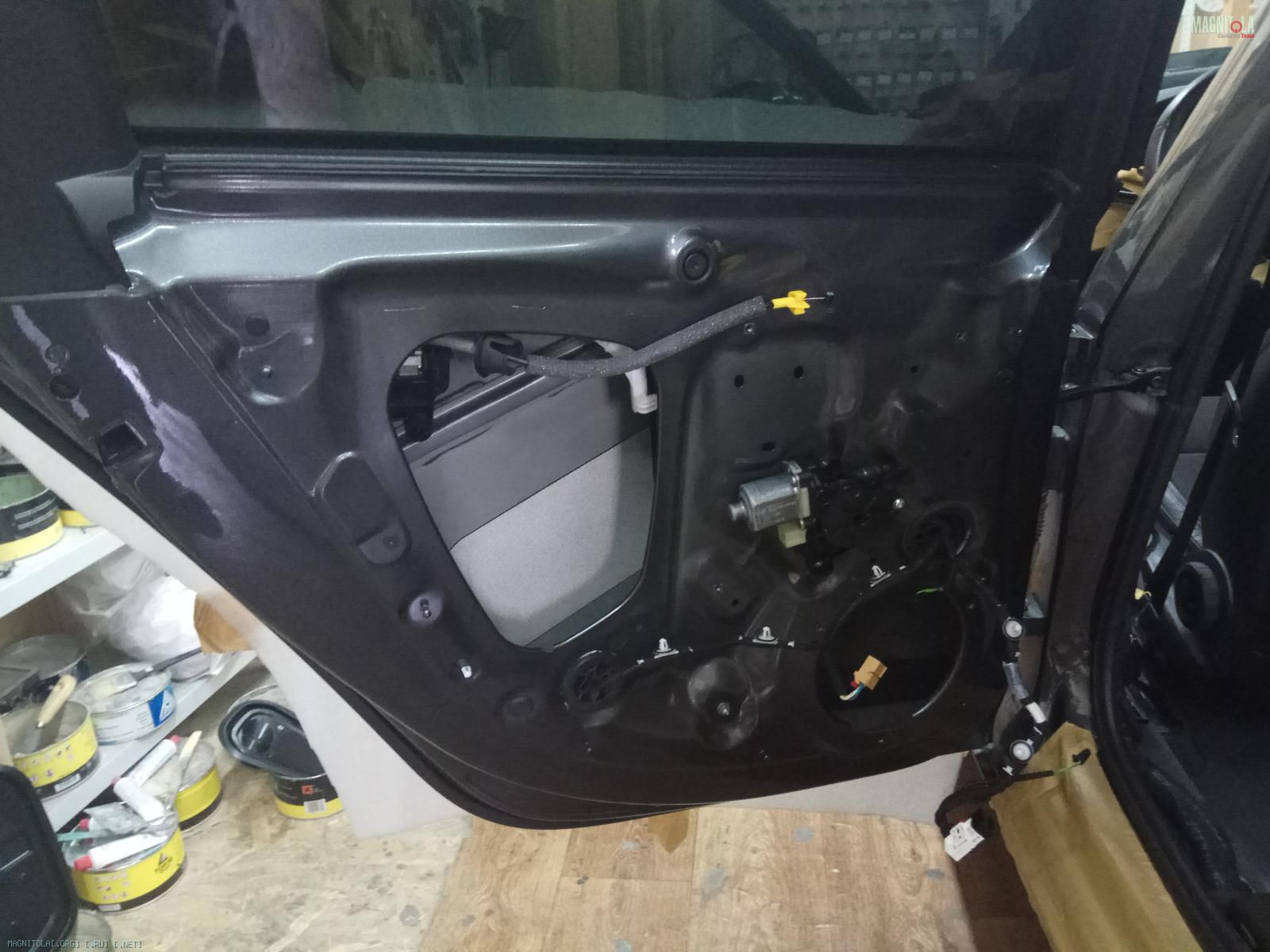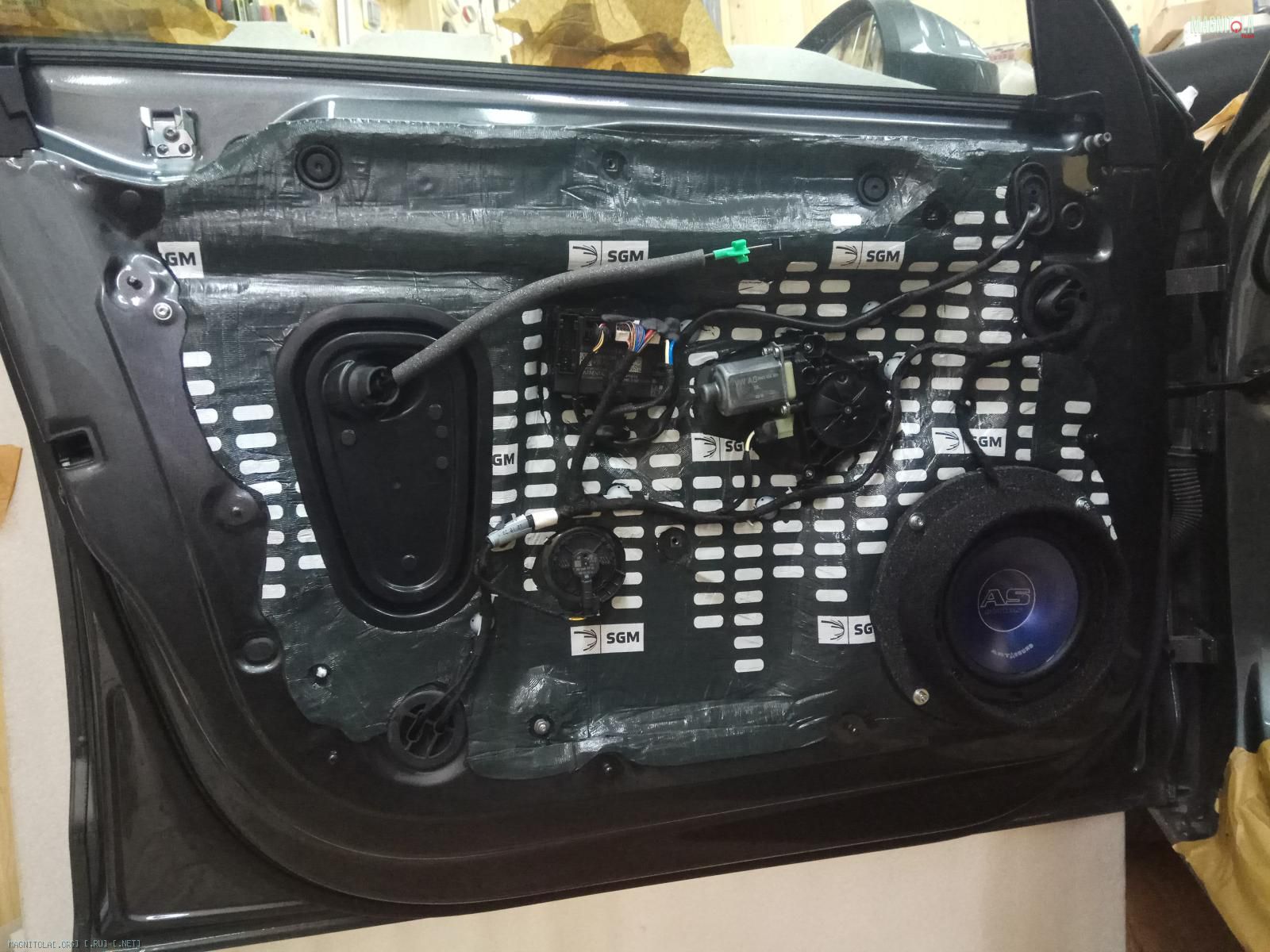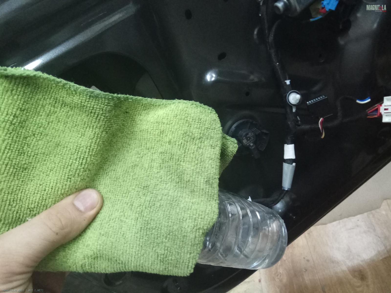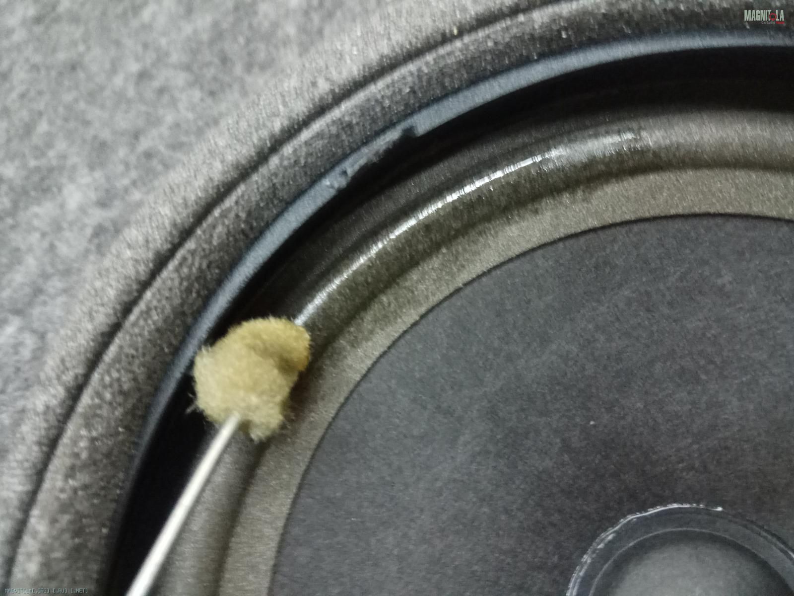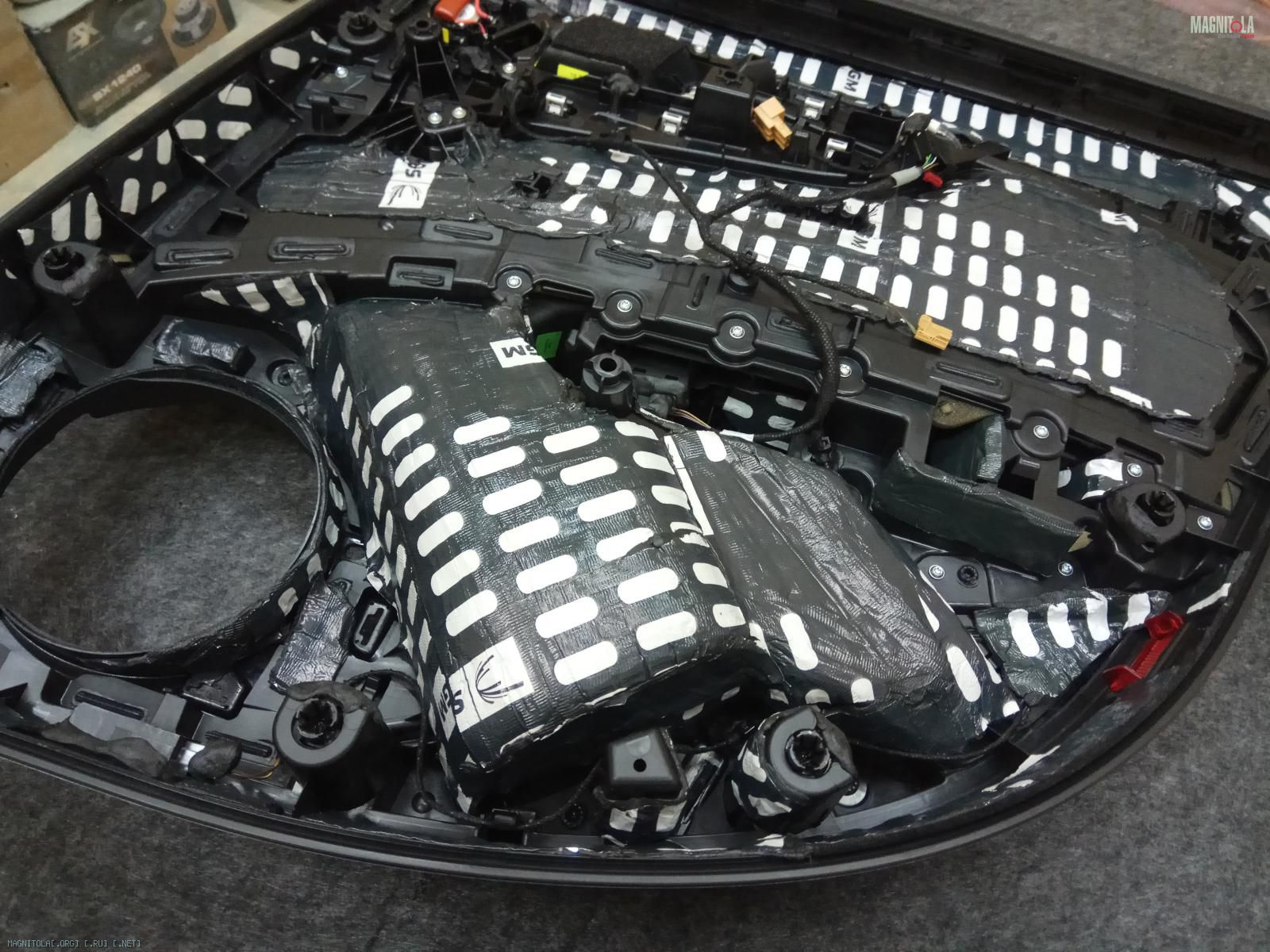 Проклеиваются сетки динамиков и декоративный пластик двери...