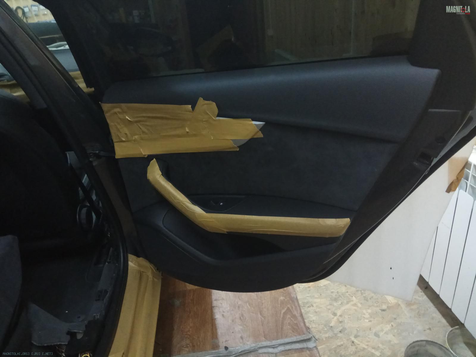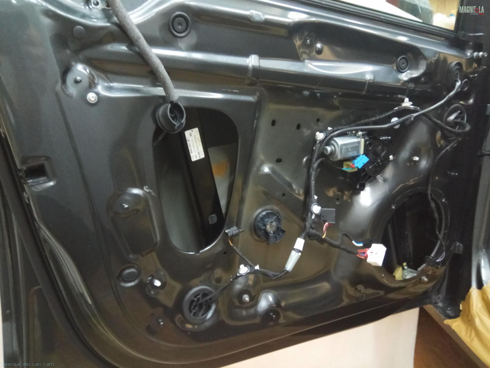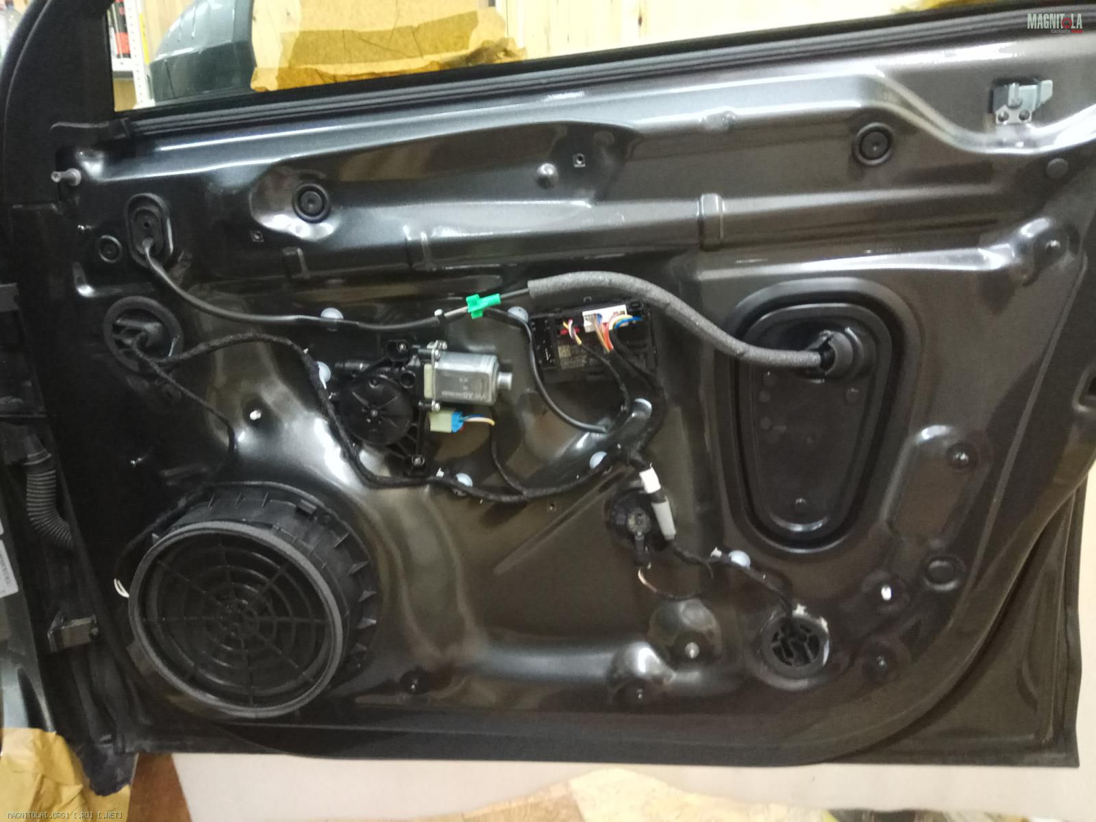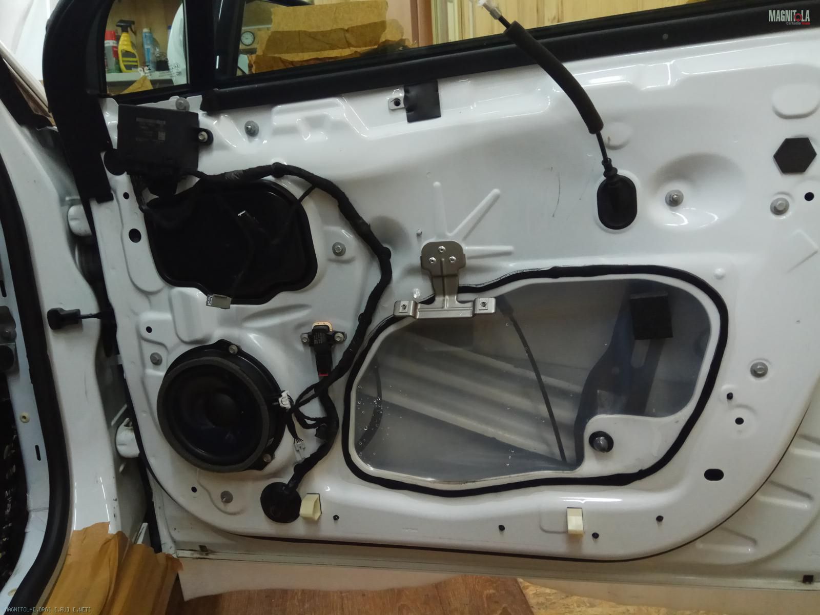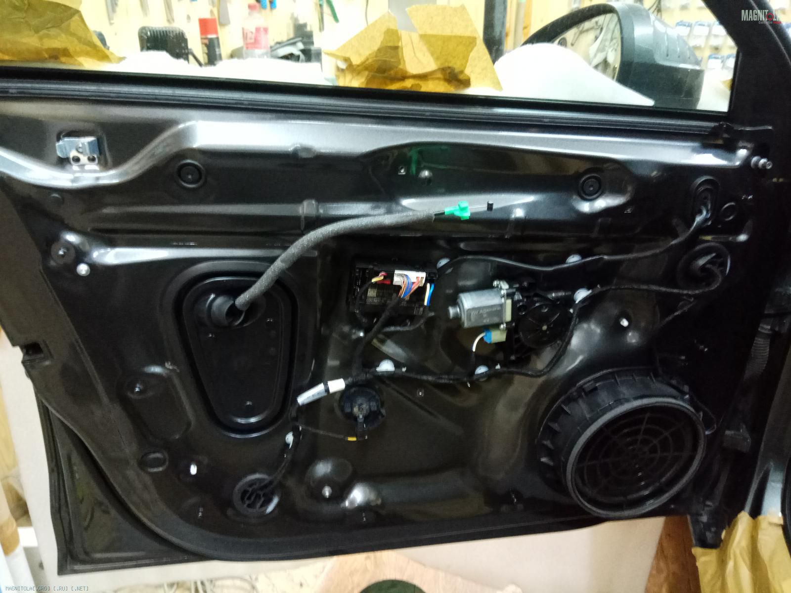 Проклеиваются сетки динамиков и декоративный пластик двери...
