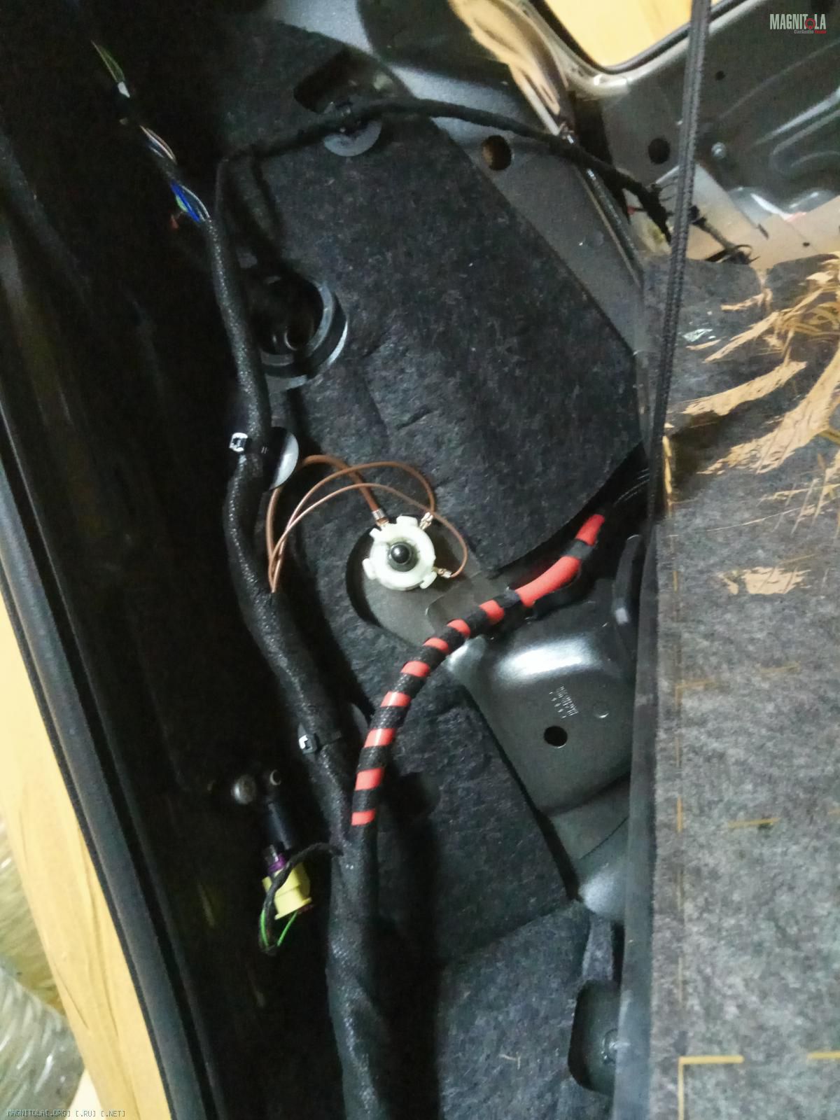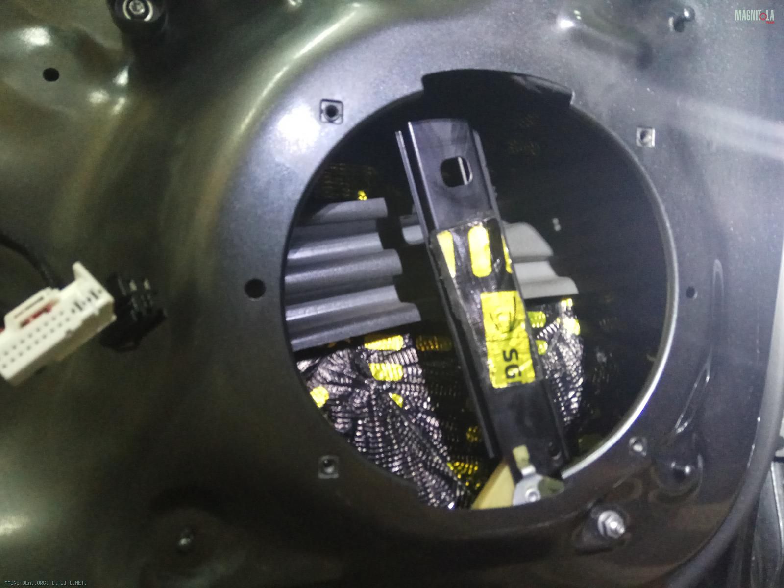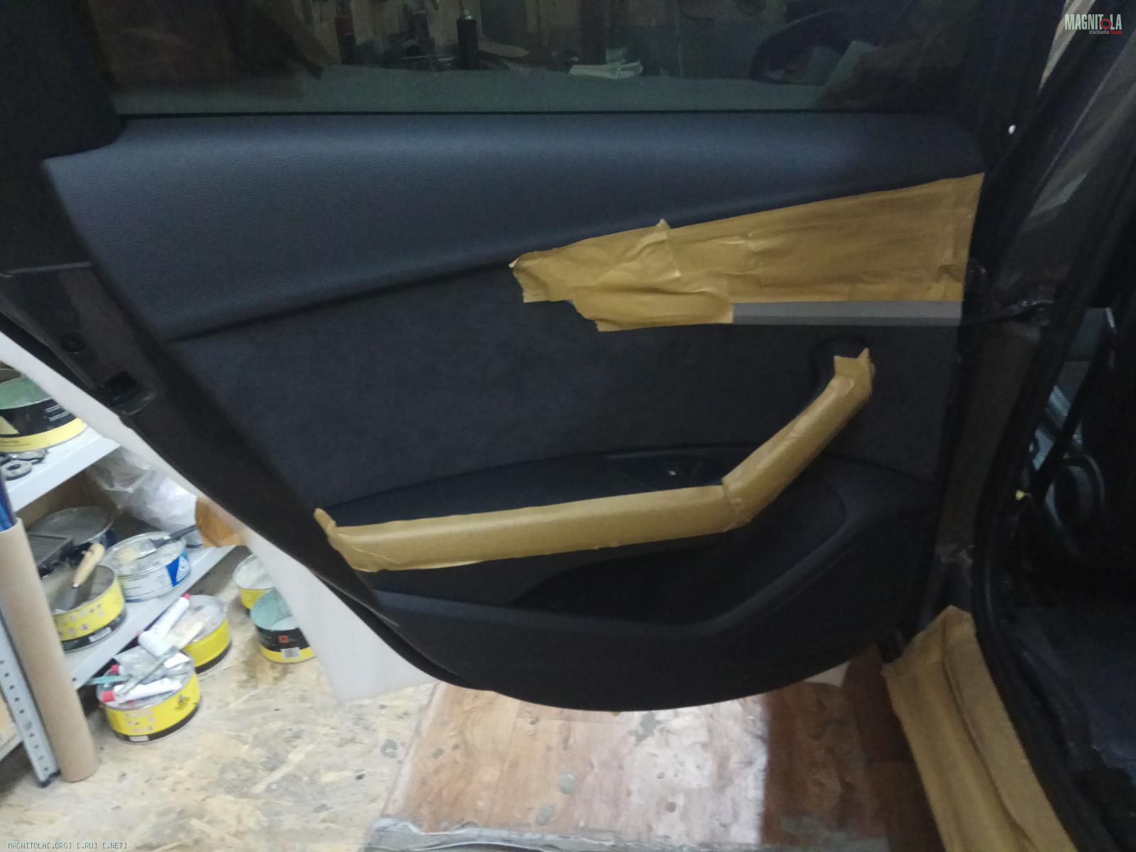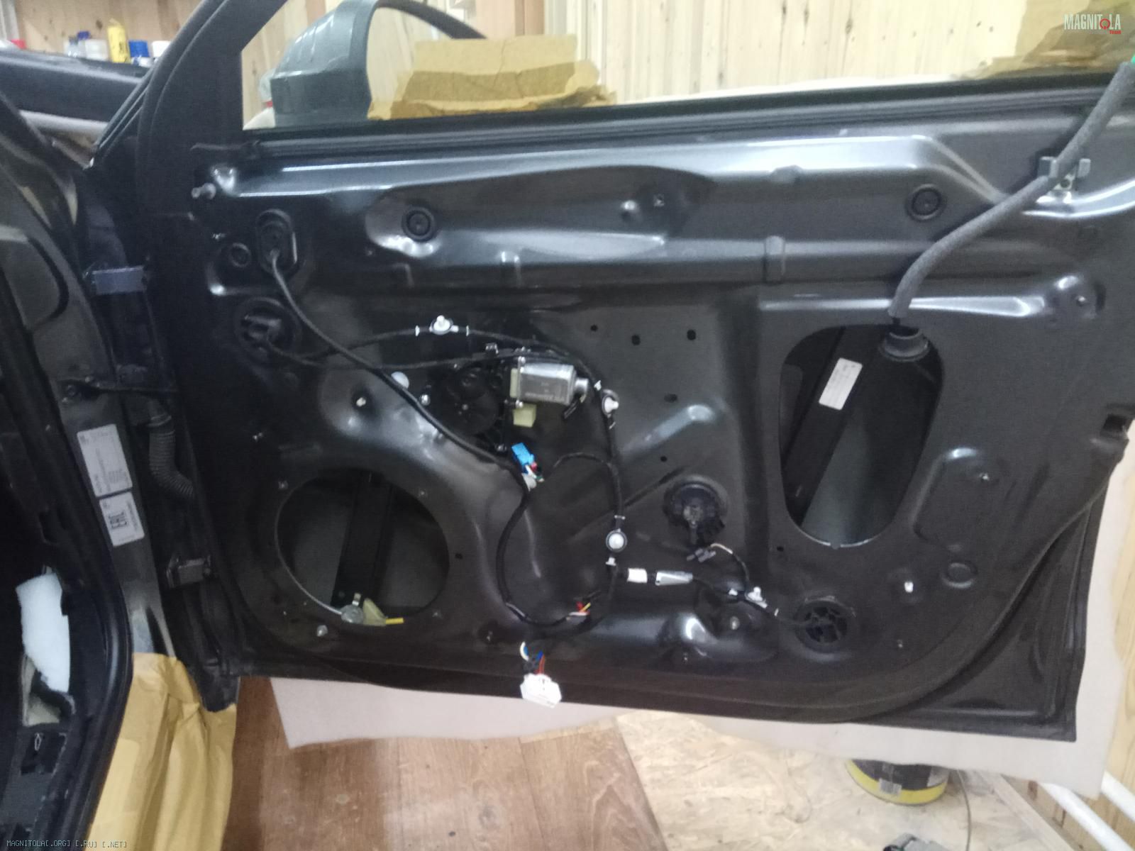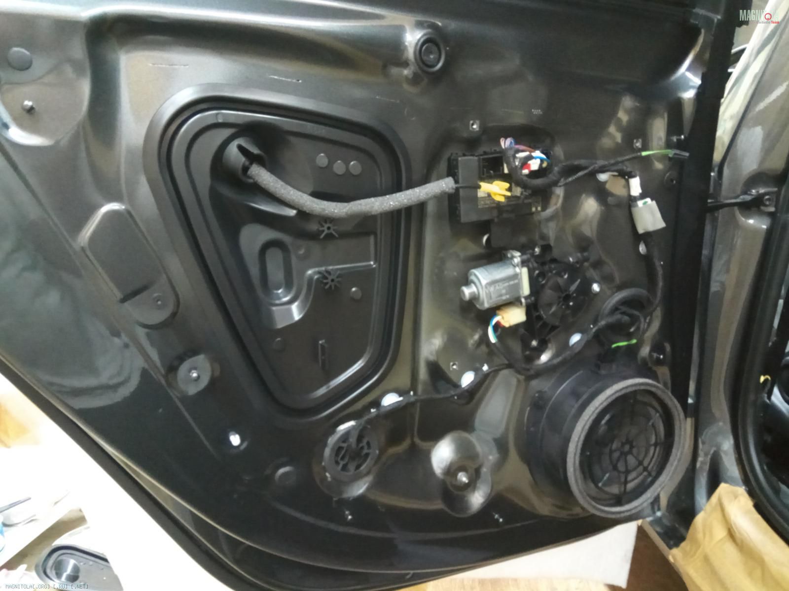 Проклеиваются сетки динамиков и декоративный пластик двери...
