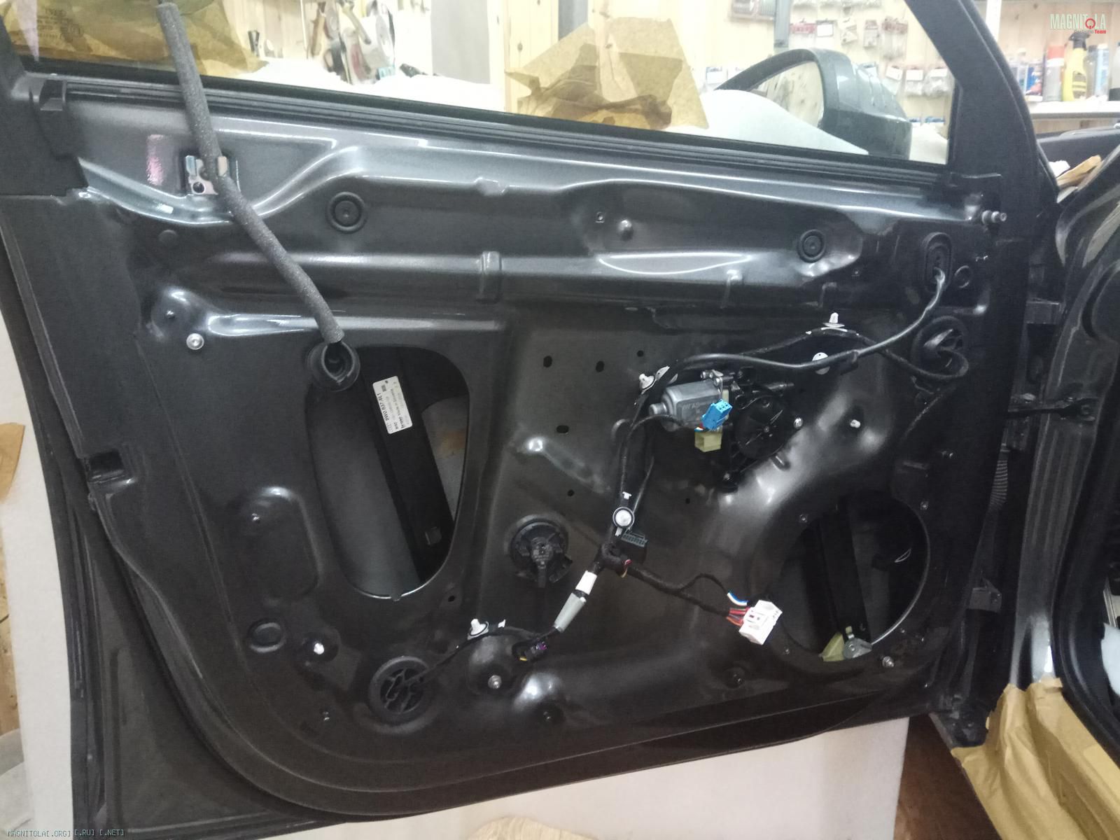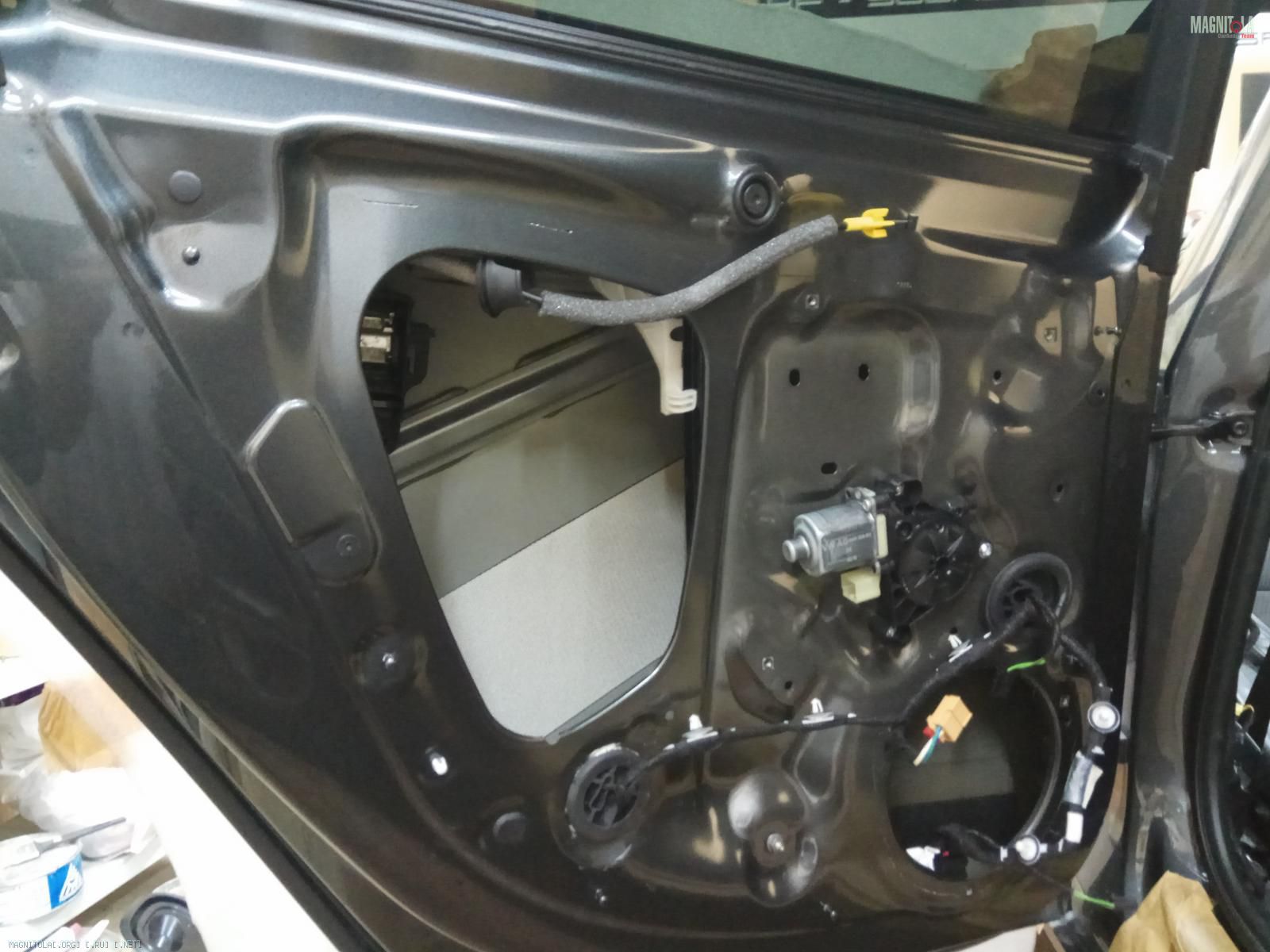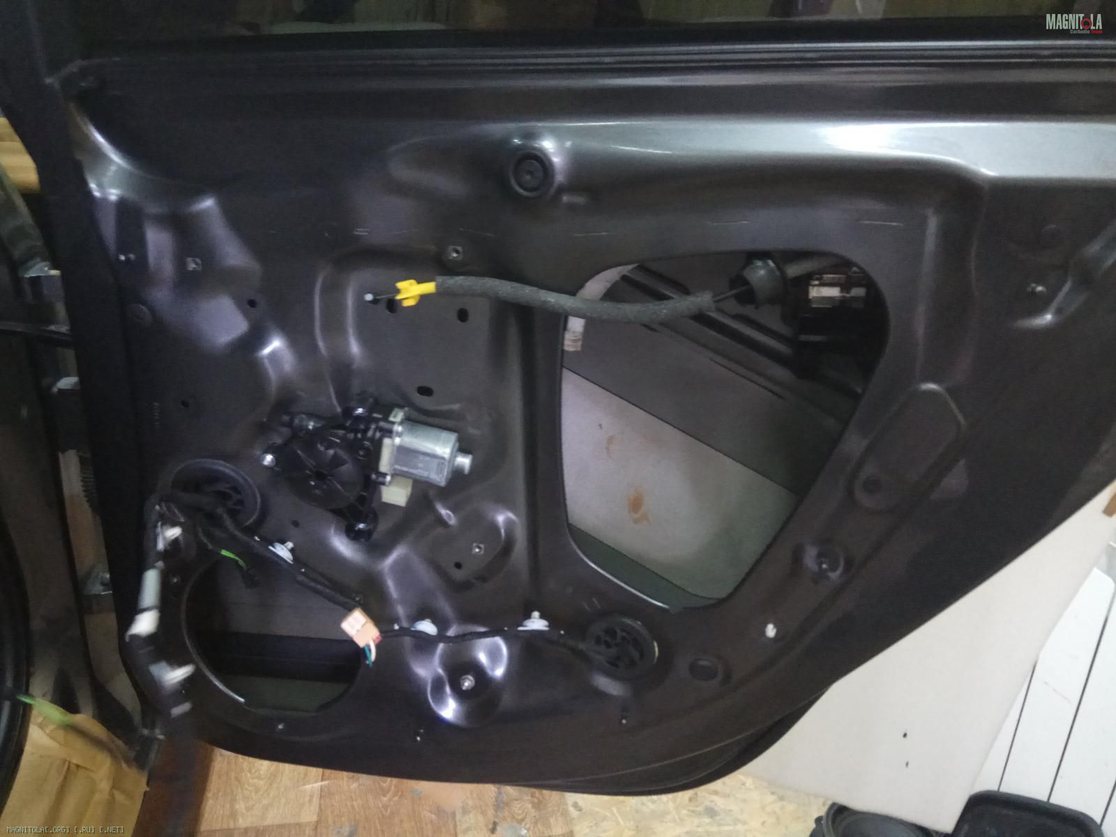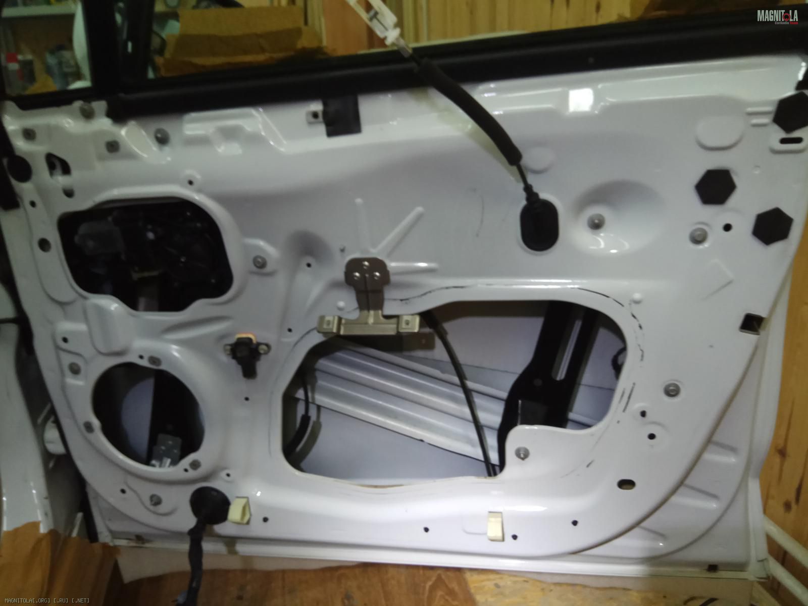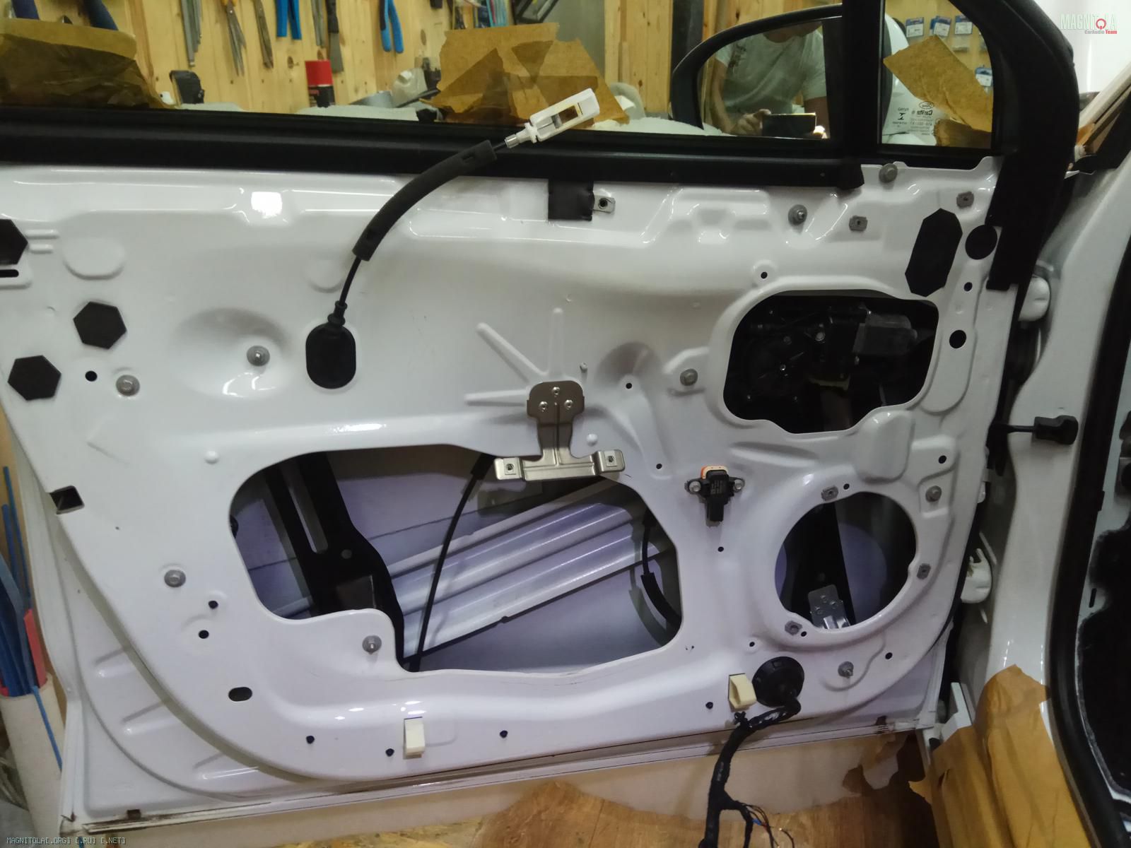 Проклеиваются сетки динамиков и декоративный пластик двери...