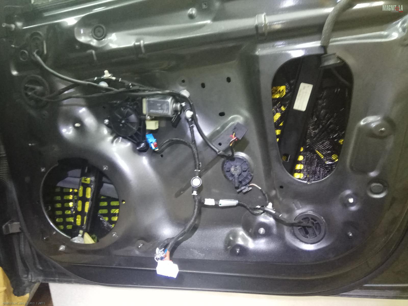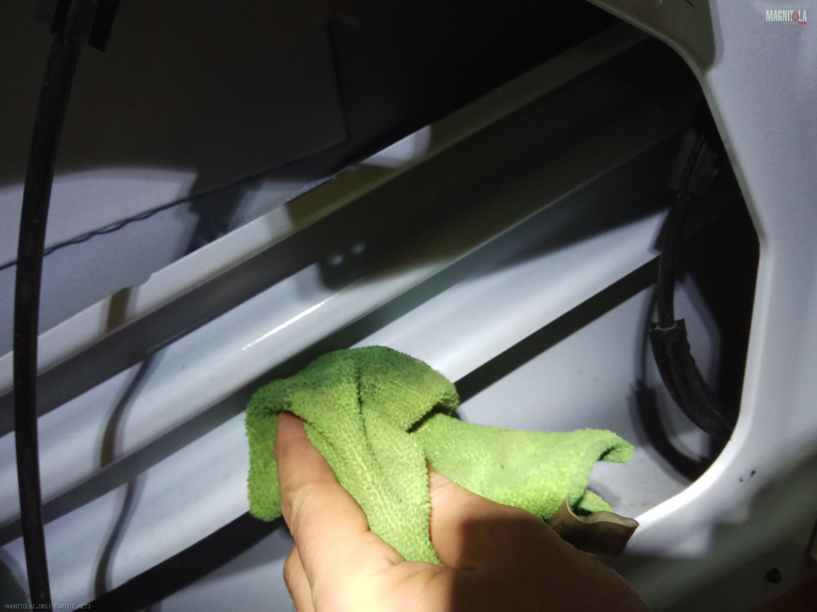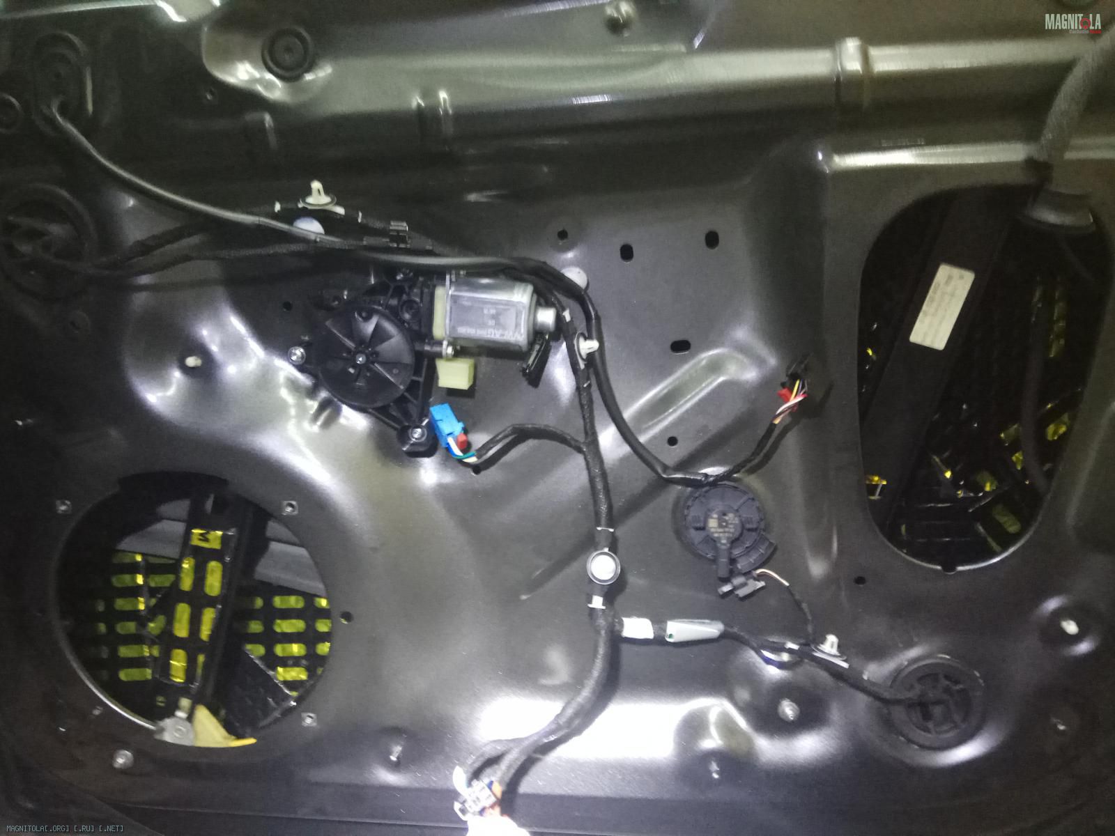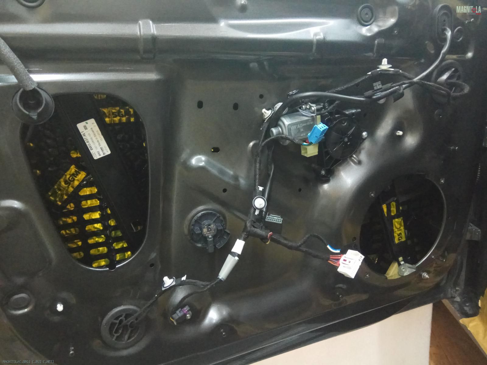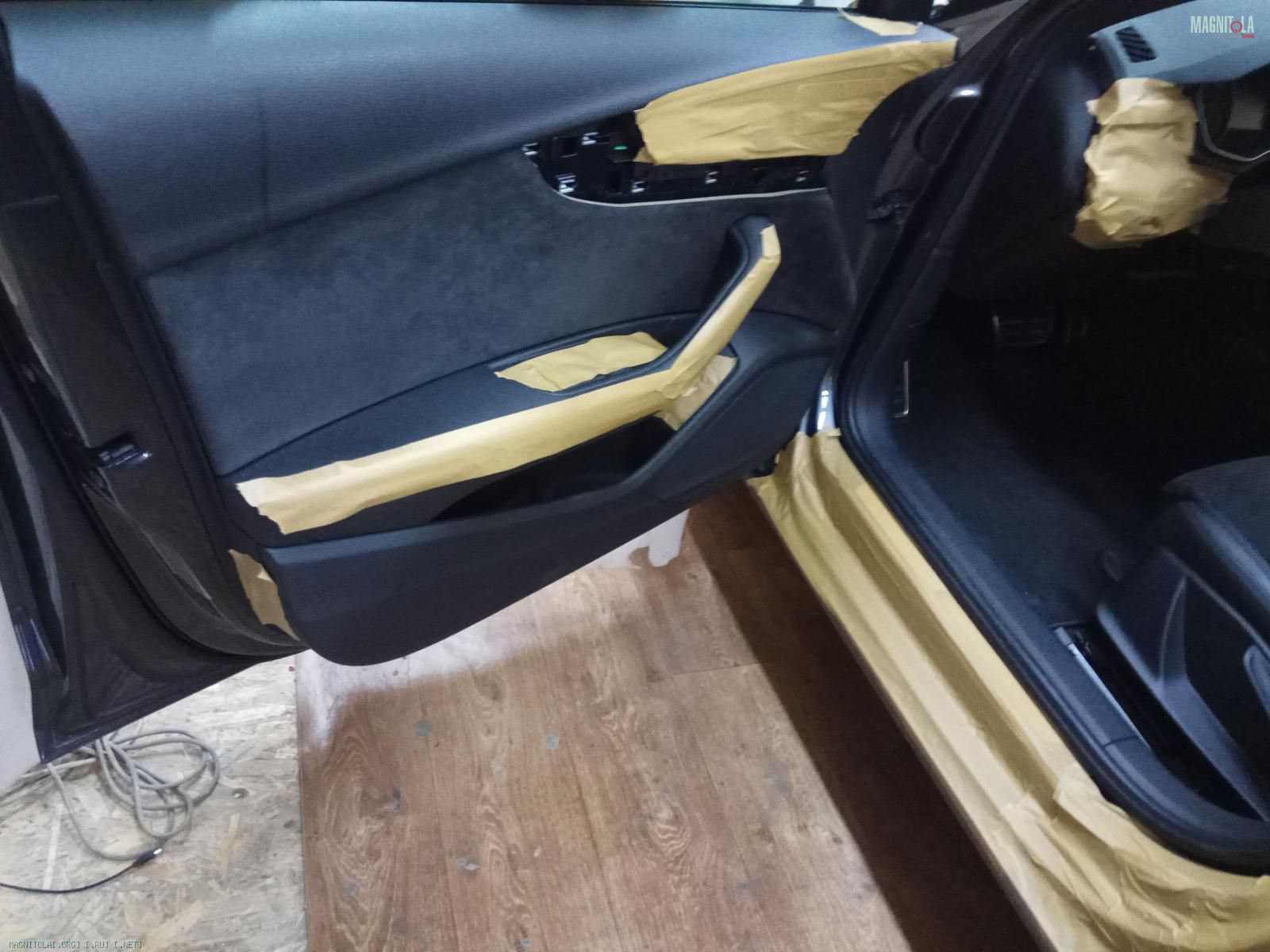 Проклеиваются сетки динамиков и декоративный пластик двери...