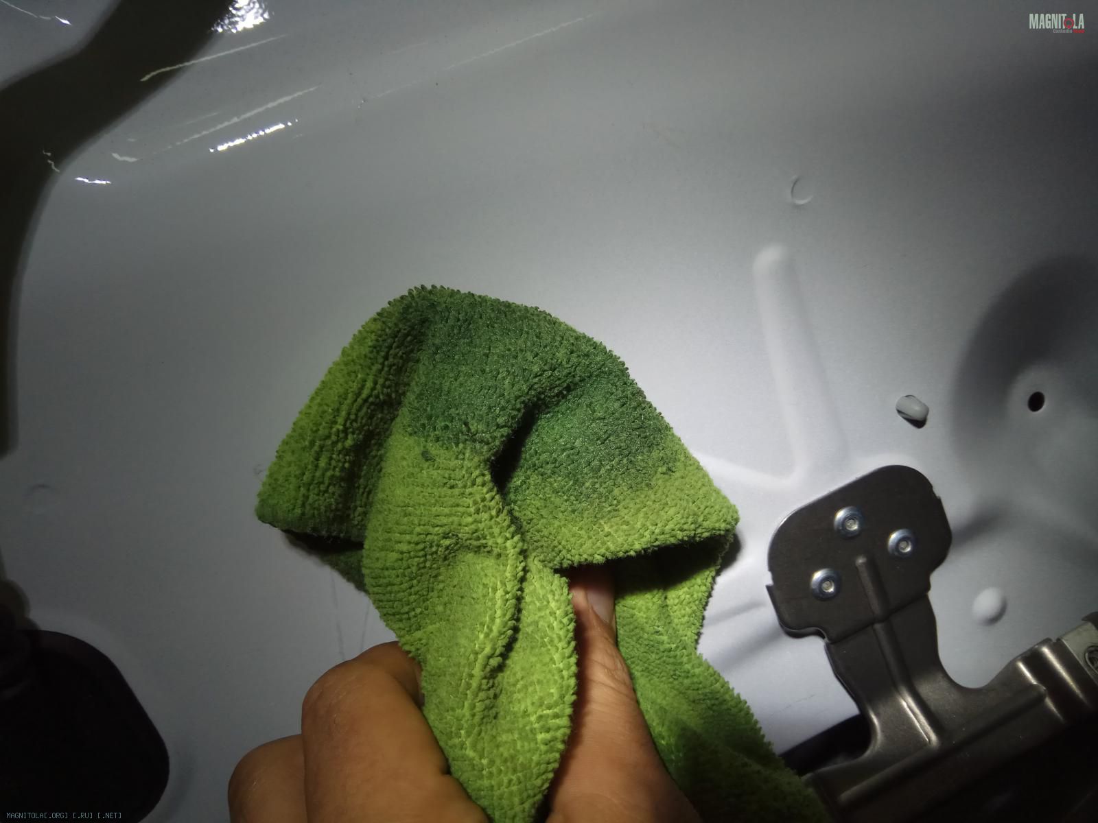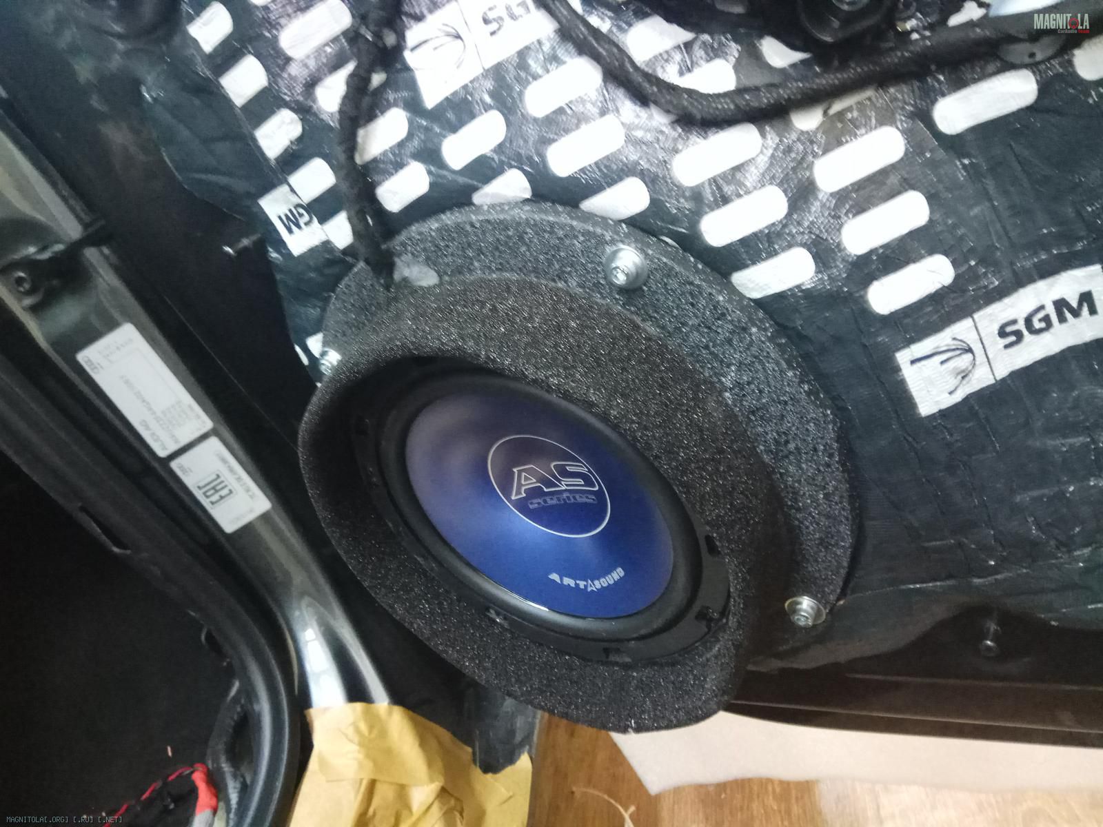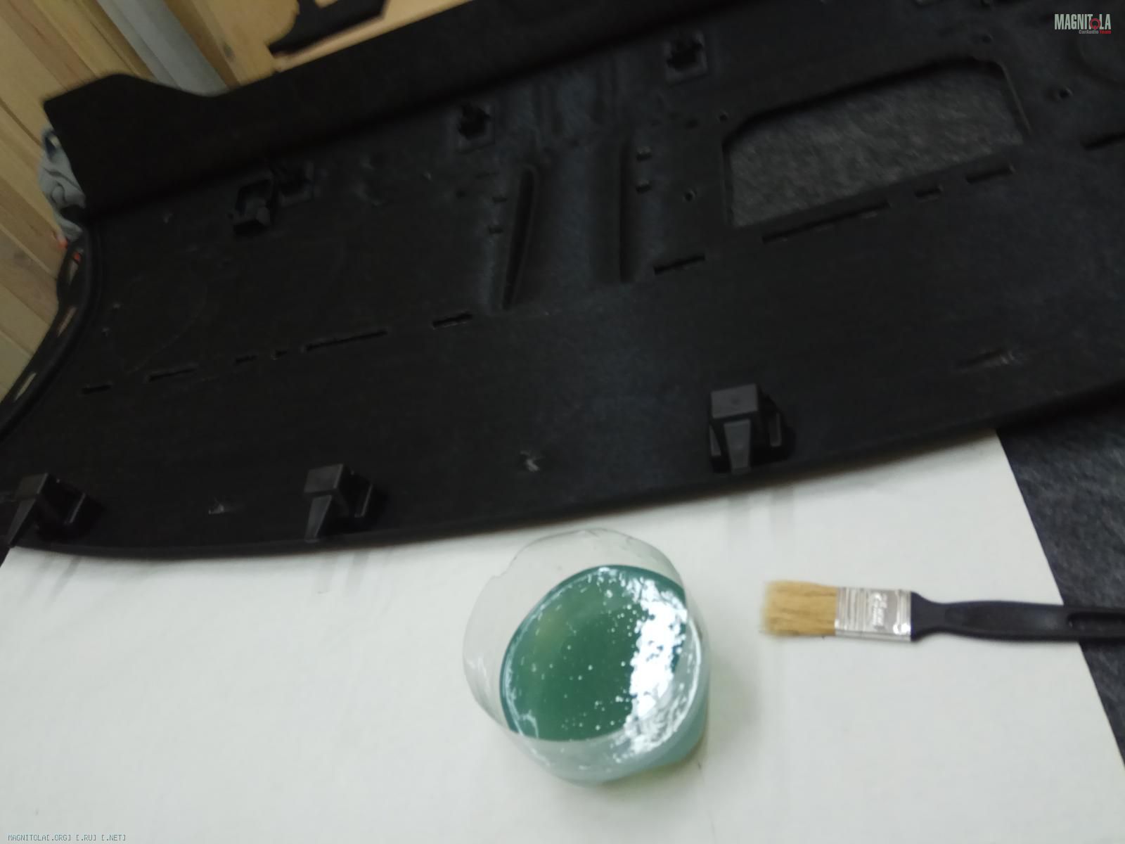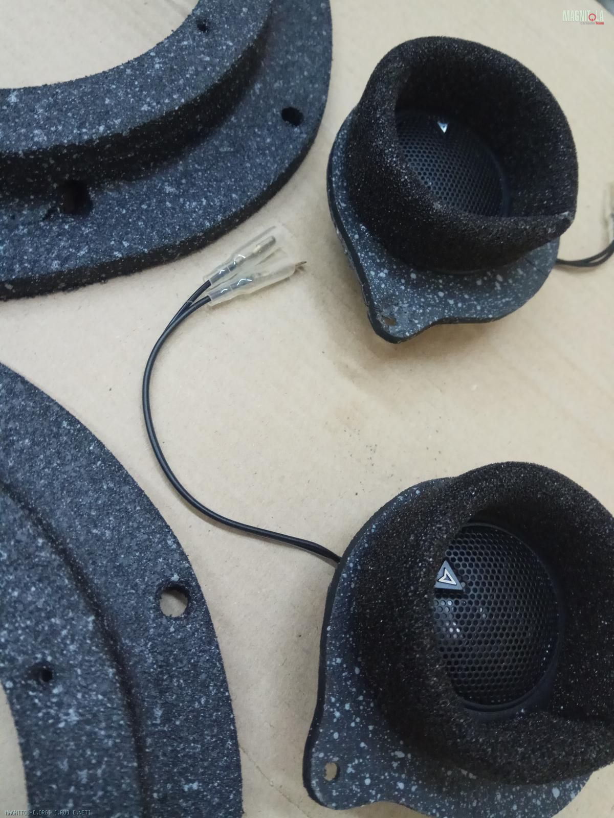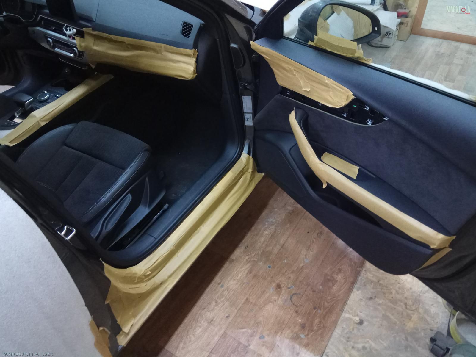 Проклеиваются сетки динамиков и декоративный пластик двери...