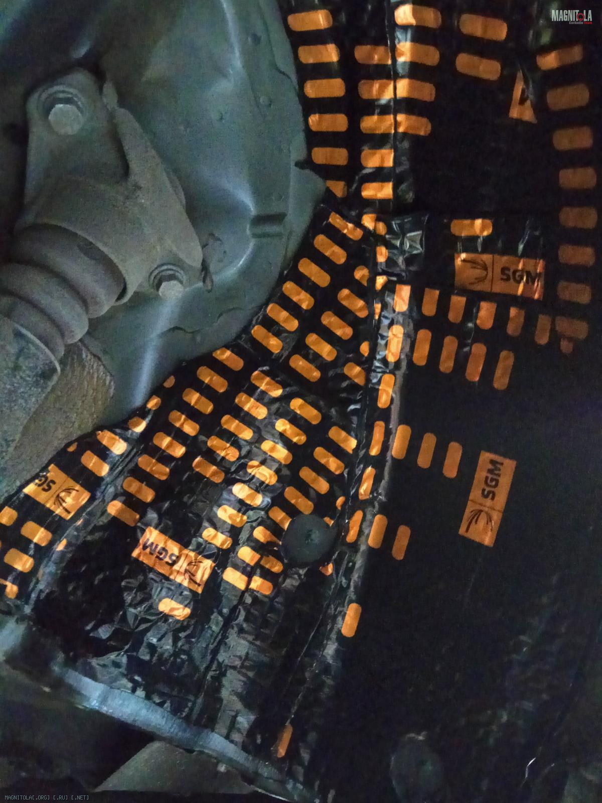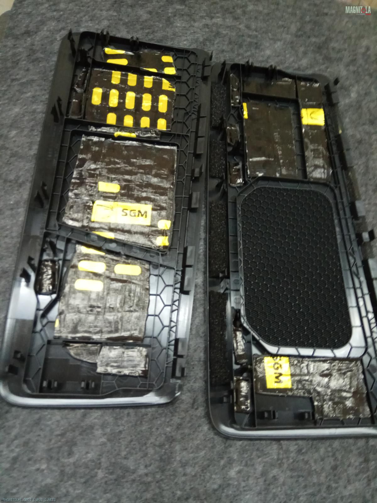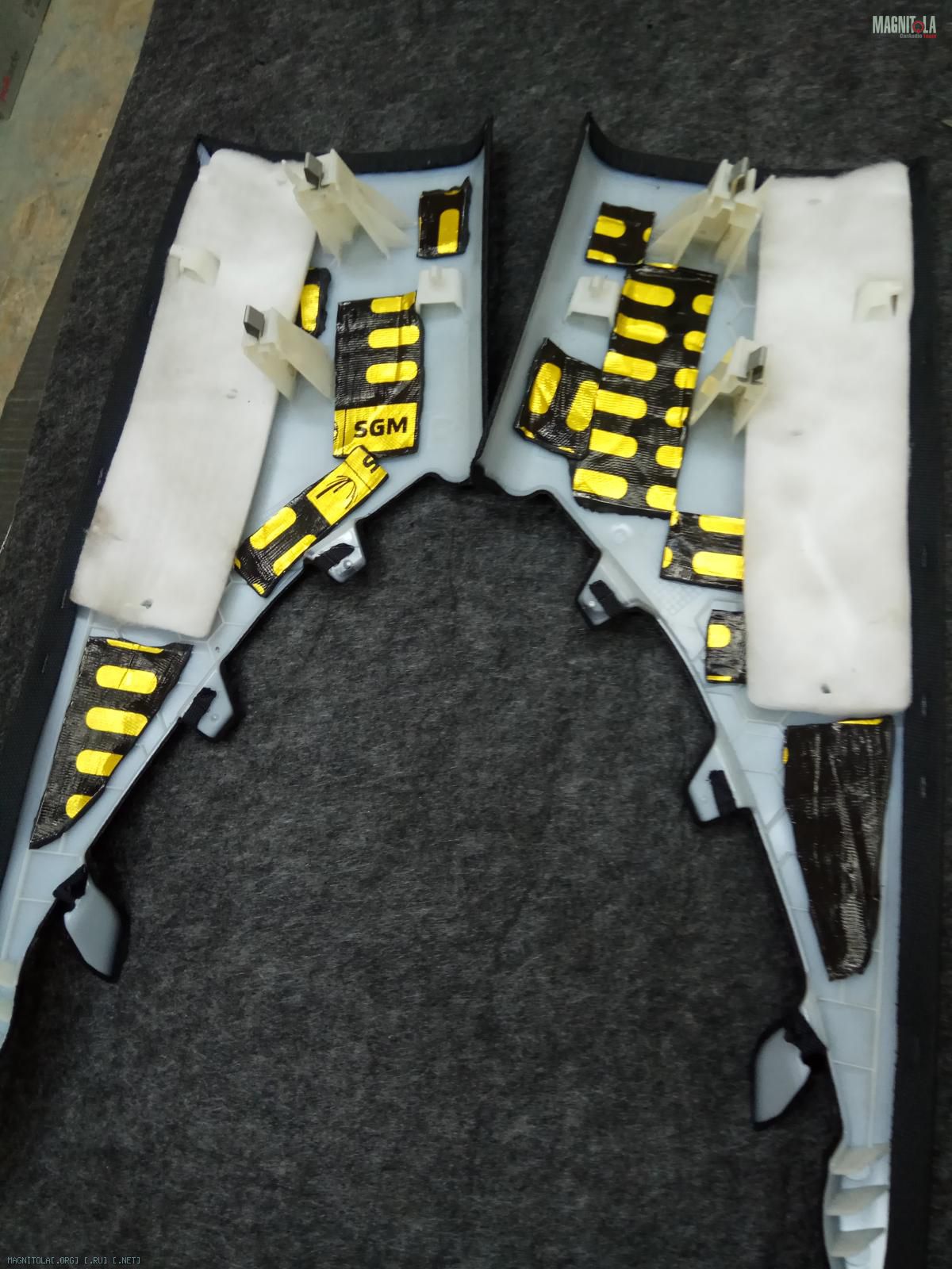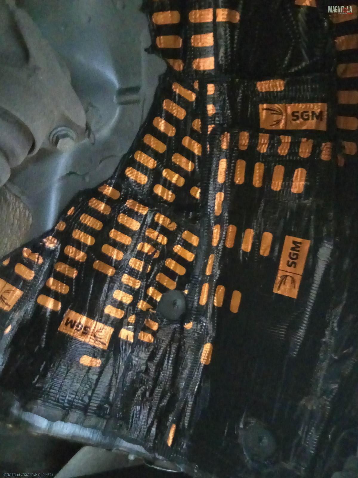 Наносится вибра 4мм, Войлок 10мм, битопласт 5мм, уплотнительная лента по периметру карты...
