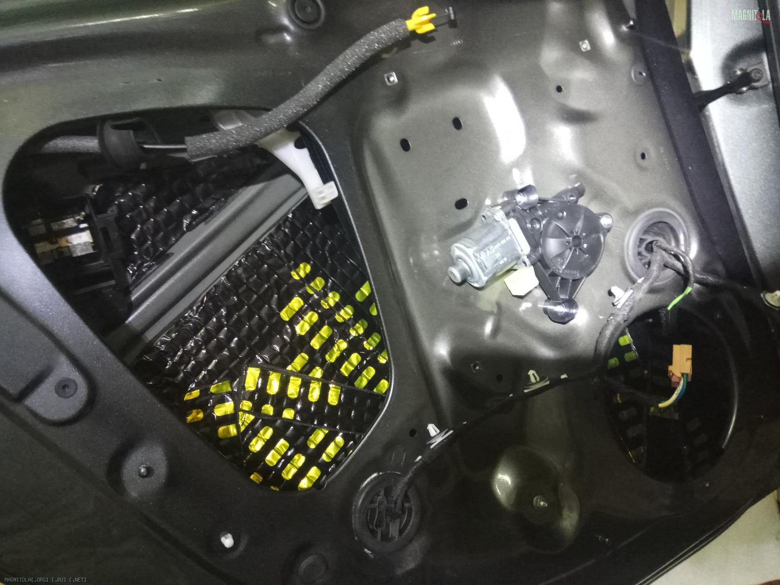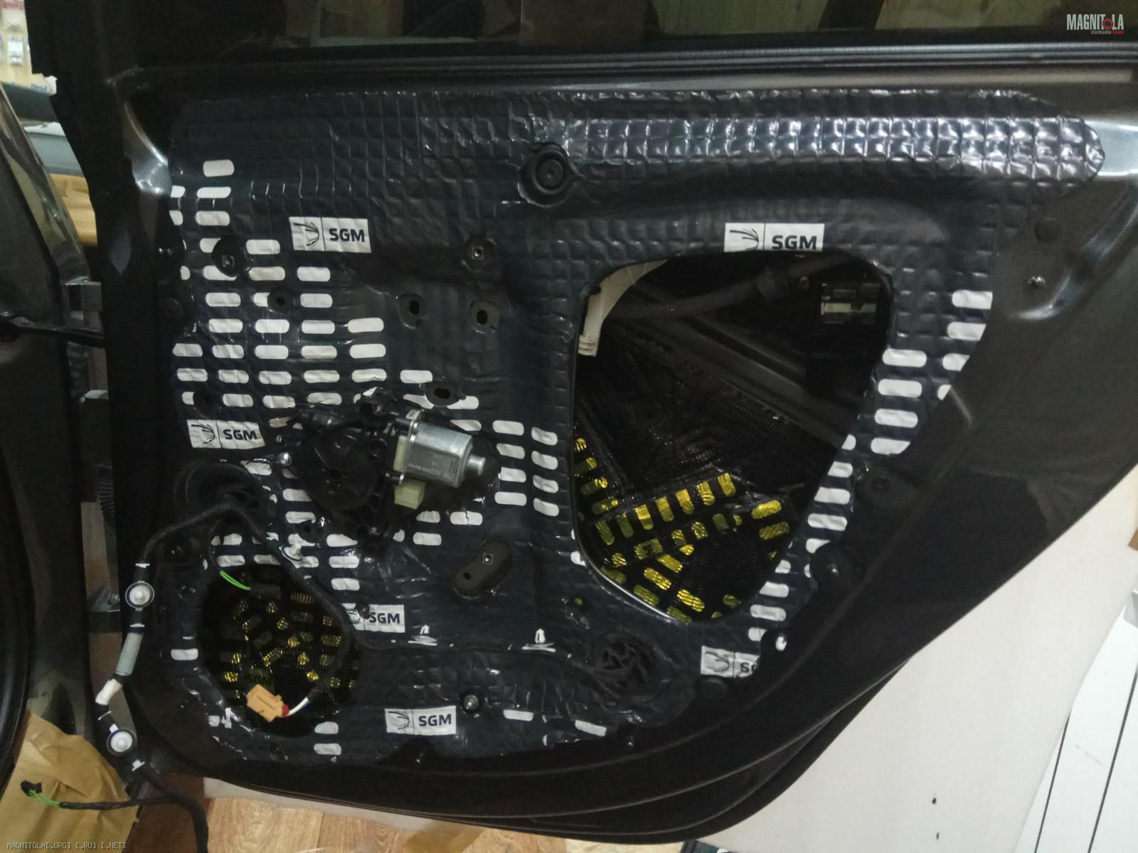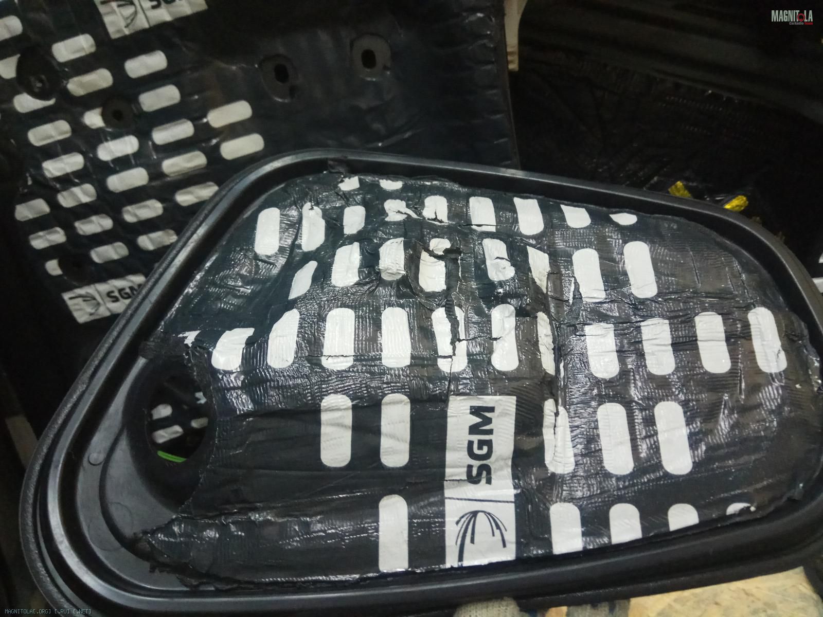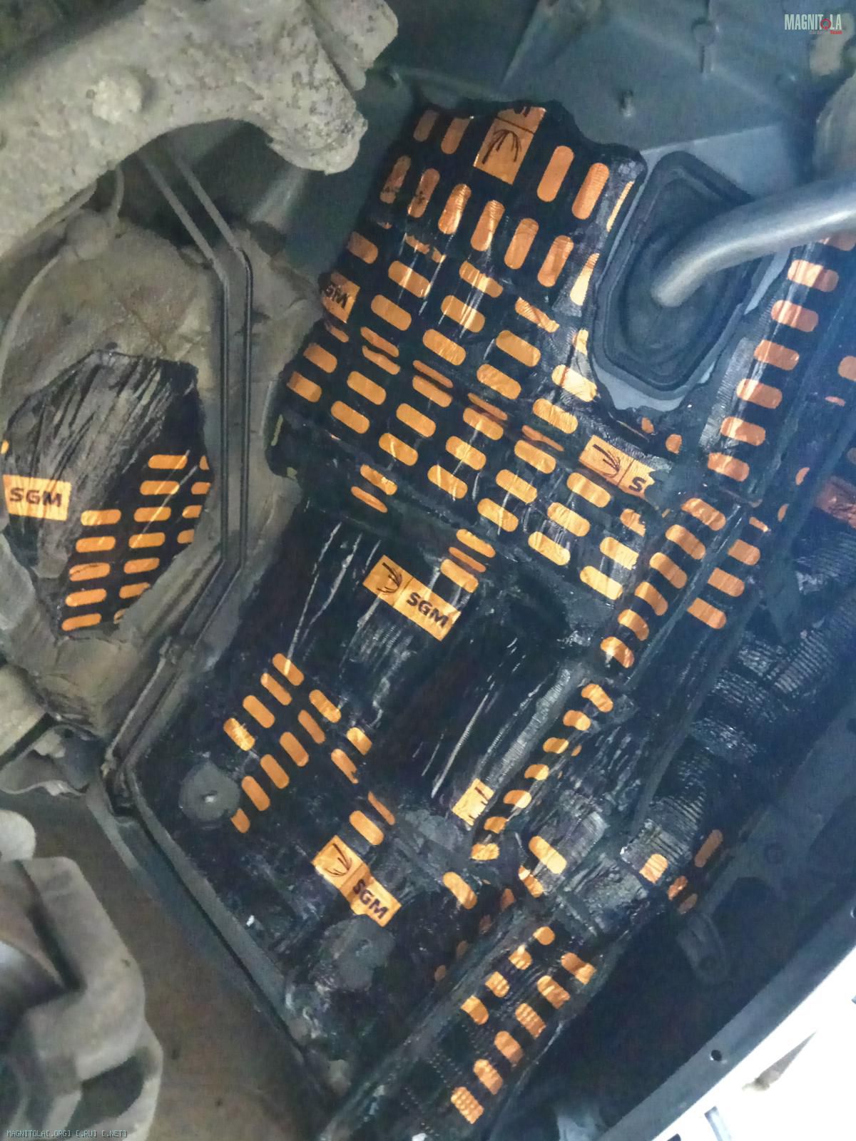 Наносится вибра 4мм, Войлок 10мм, битопласт 5мм, уплотнительная лента по периметру карты...