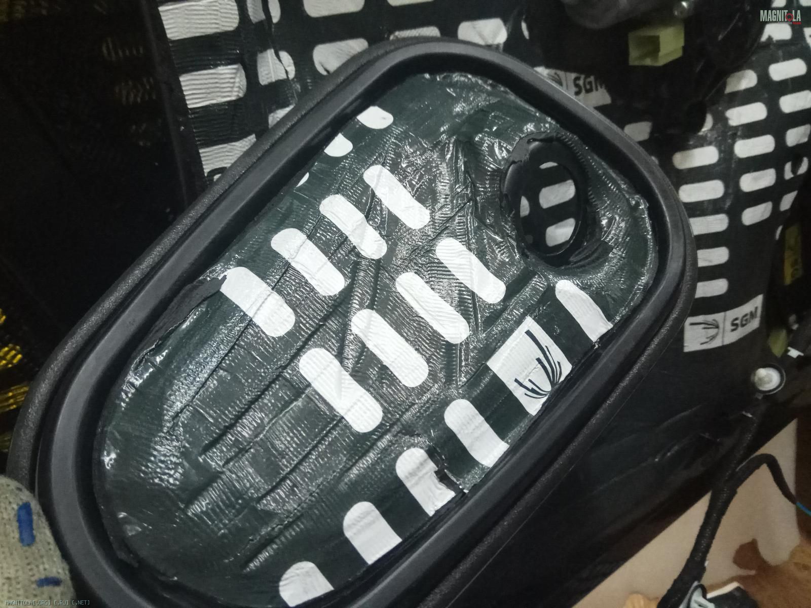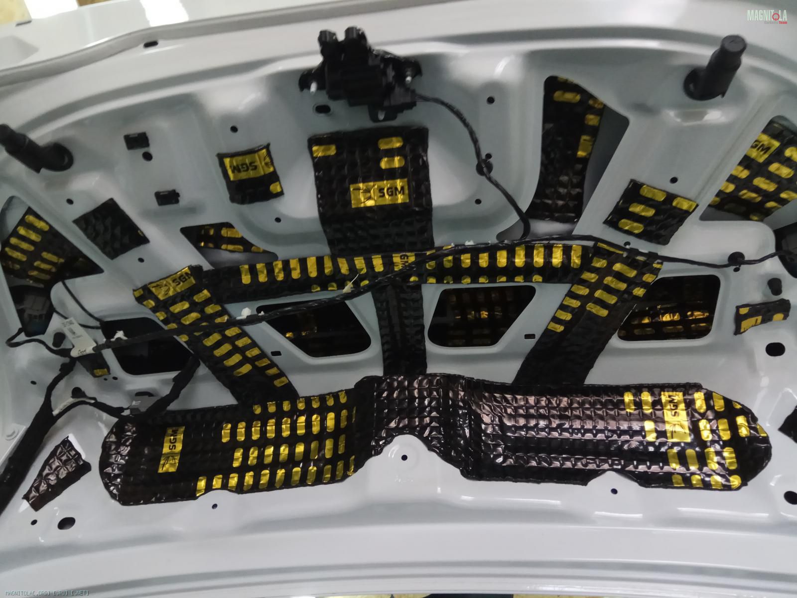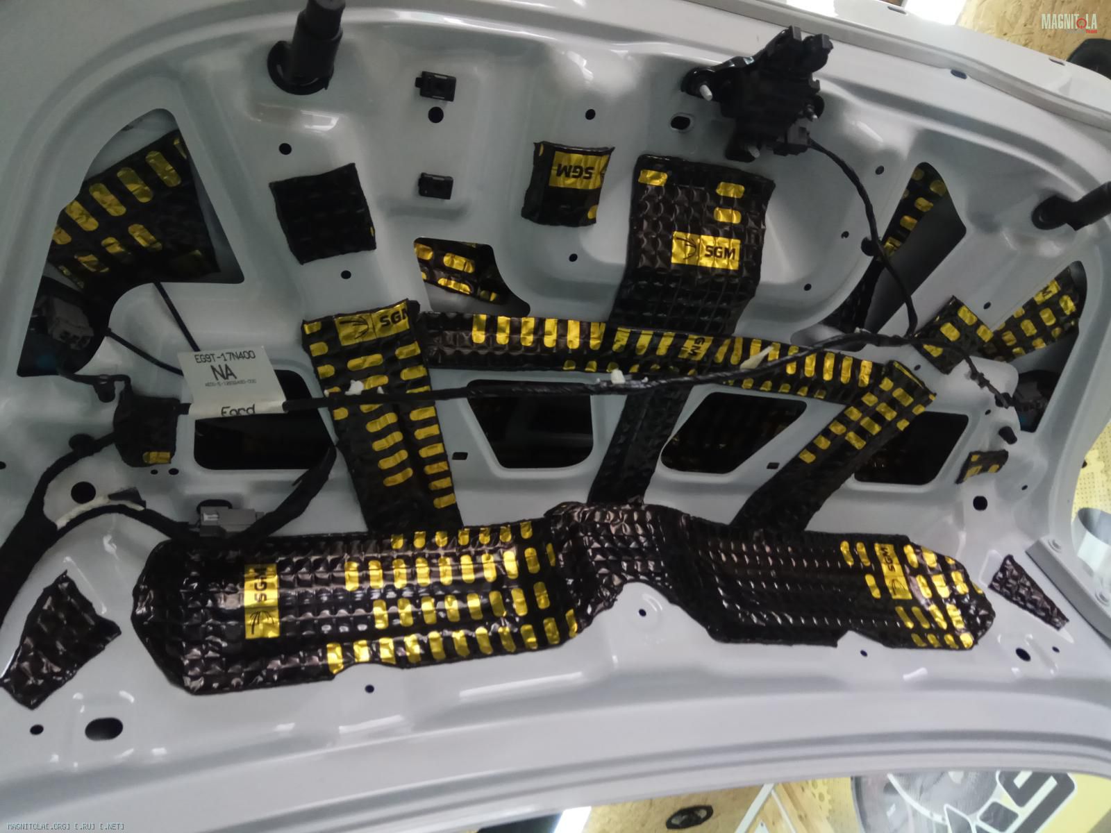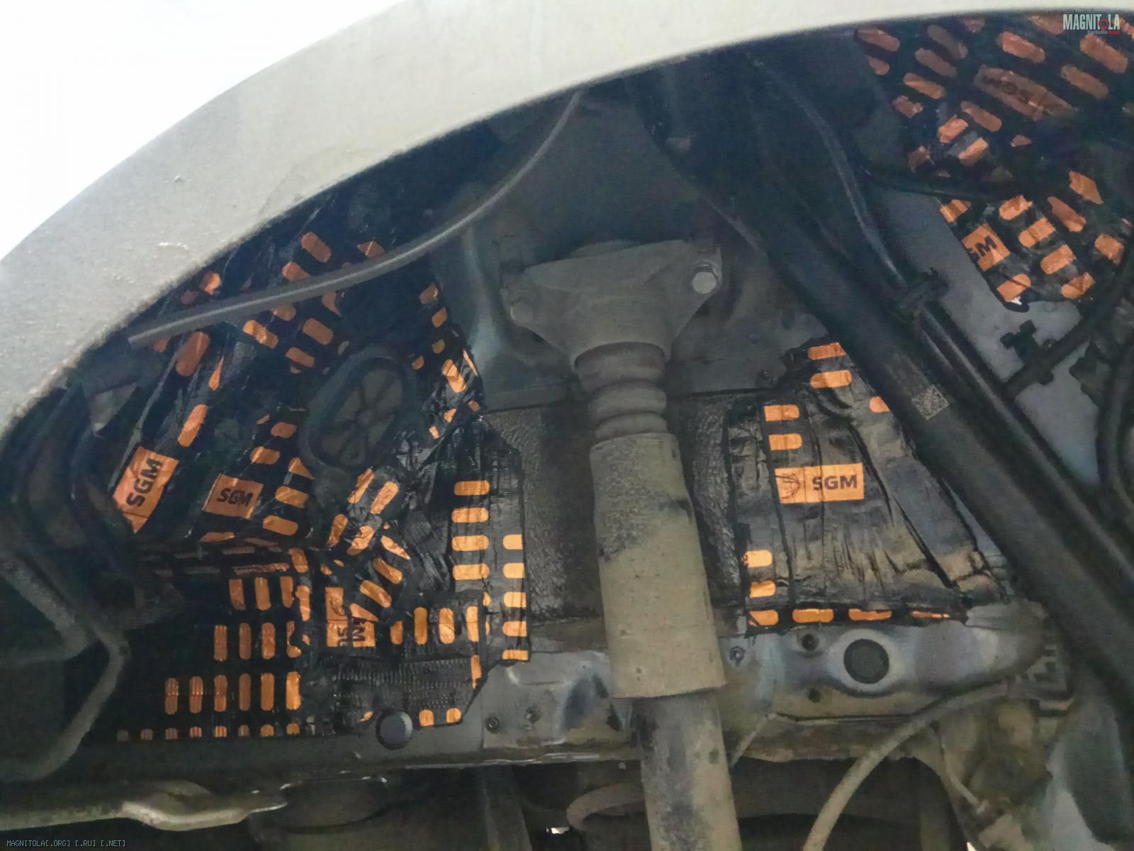Наносится вибра 4мм, Войлок 10мм, битопласт 5мм, уплотнительная лента по периметру карты...