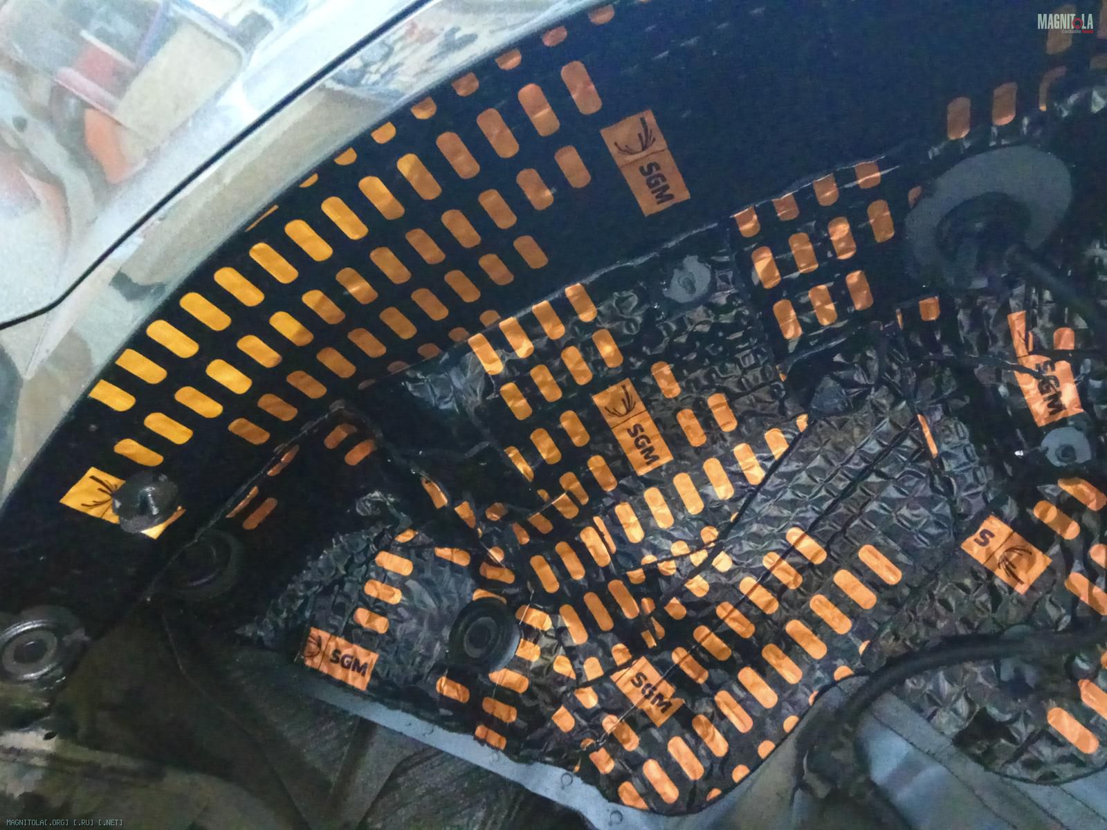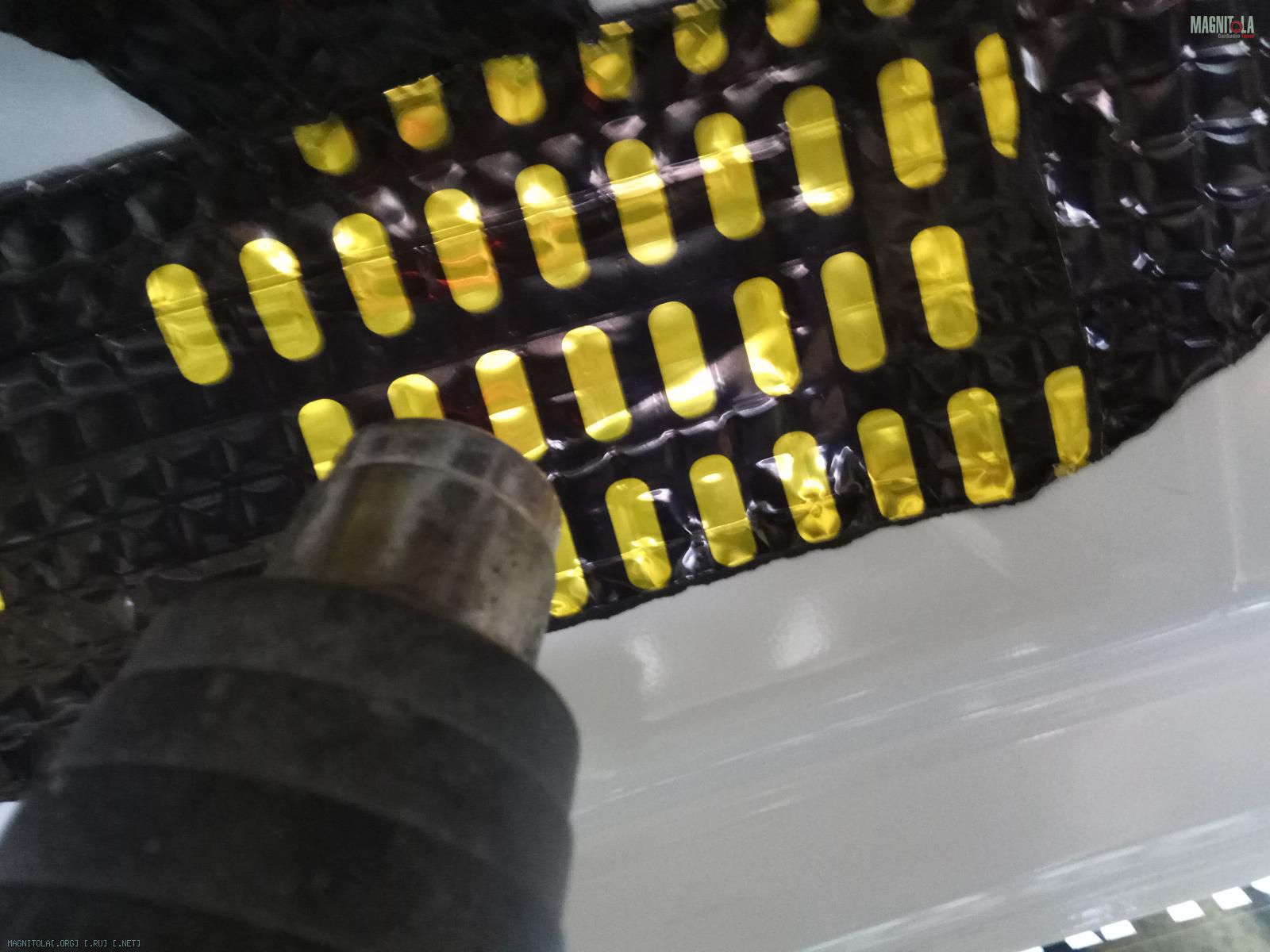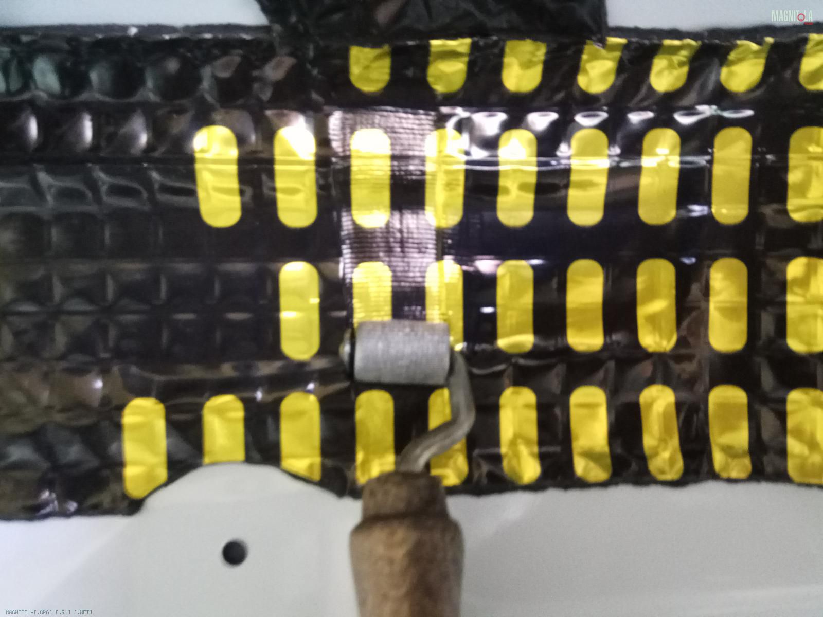 На метал полки наносим два слоя 4мм вибры, греем, прикатываем...