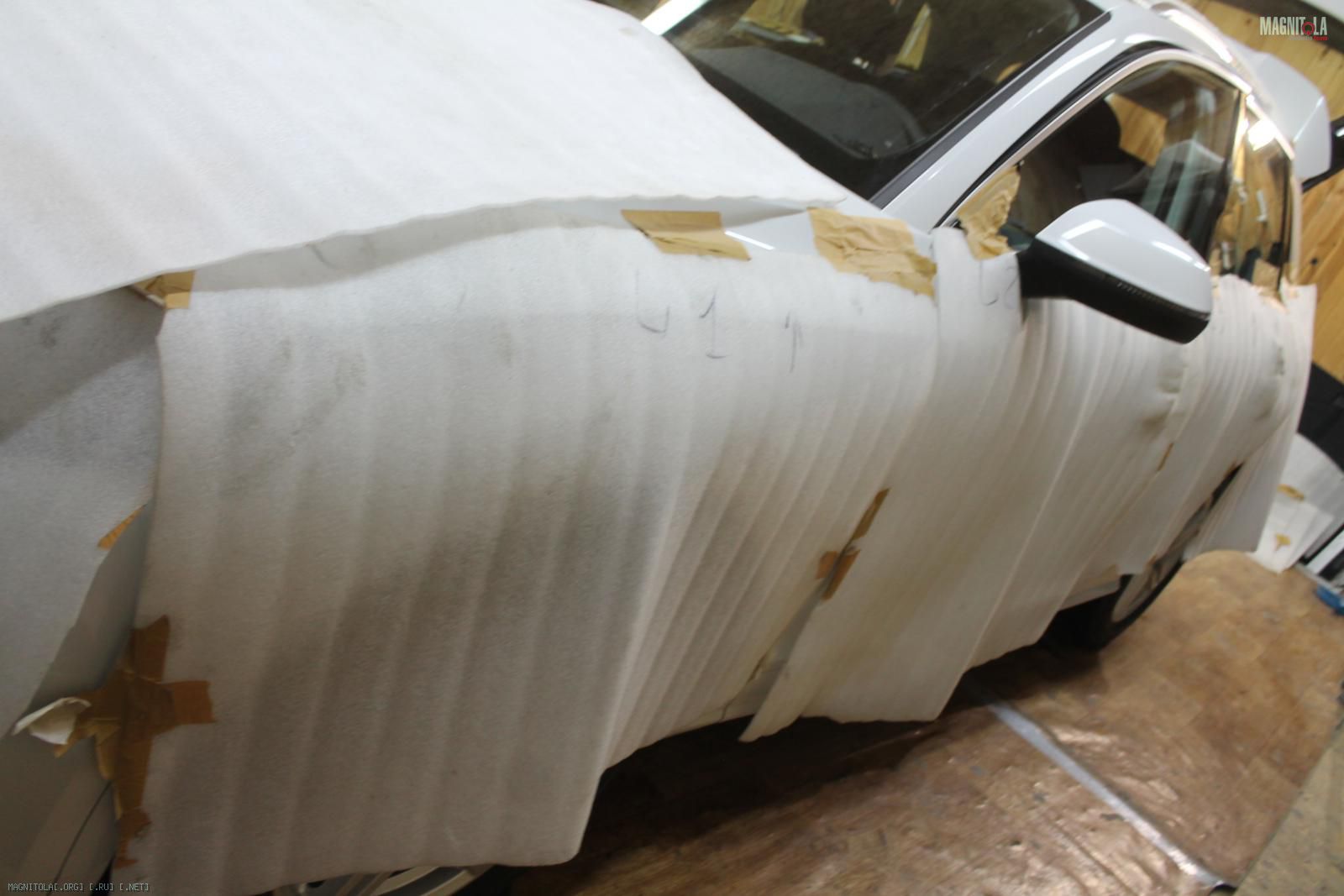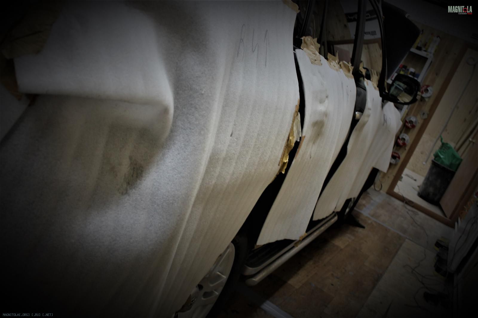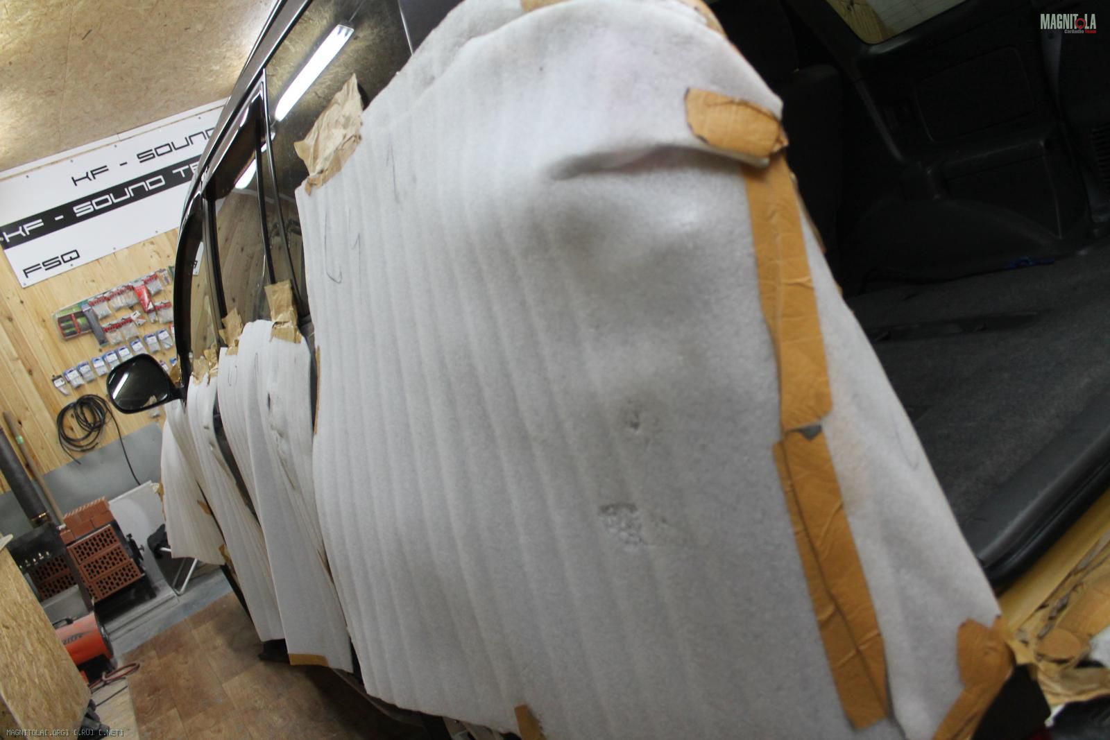 На штатный короб наносим жесткую вибру сгм броня 5мм, затем вибру 4мм.