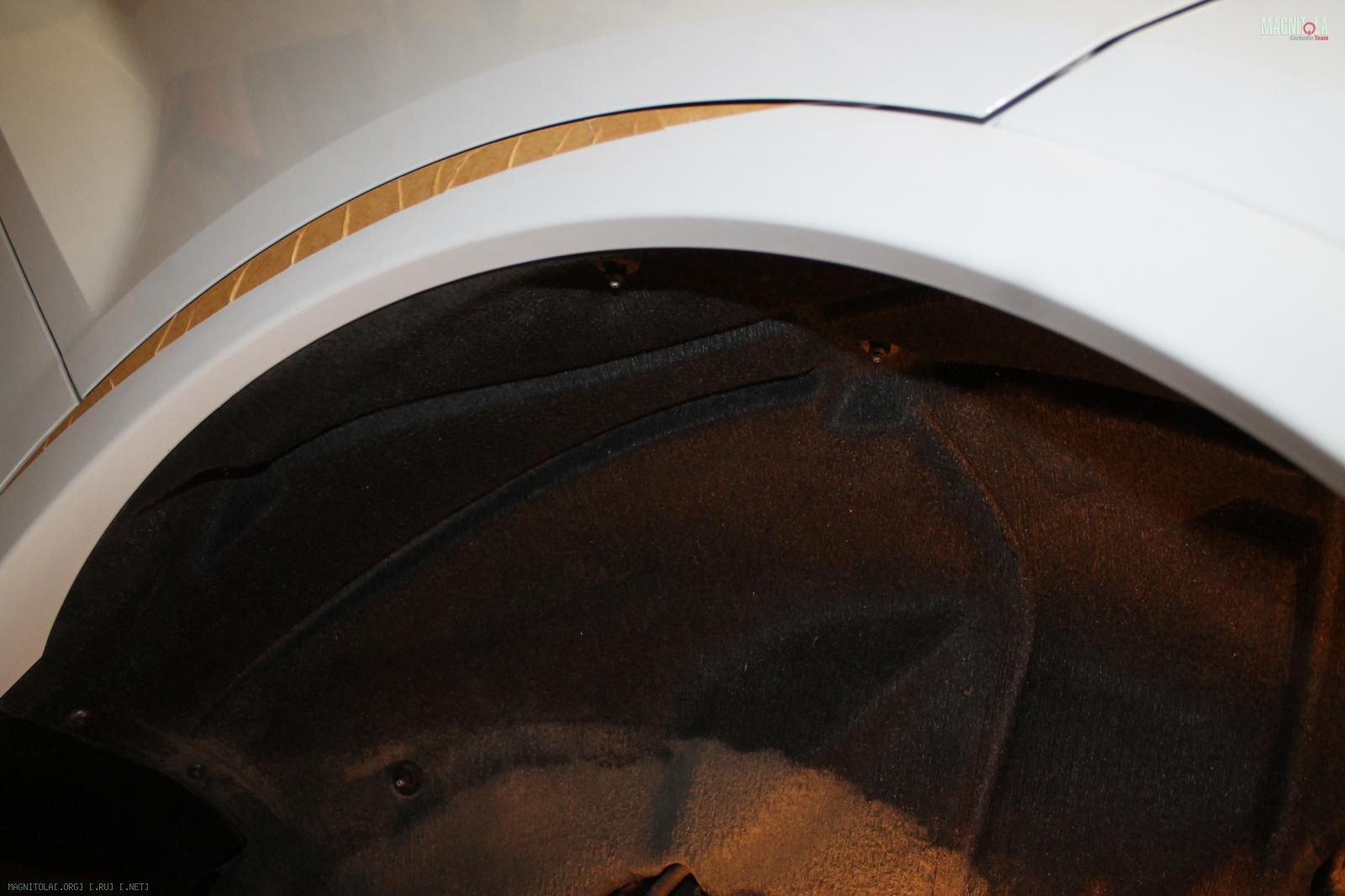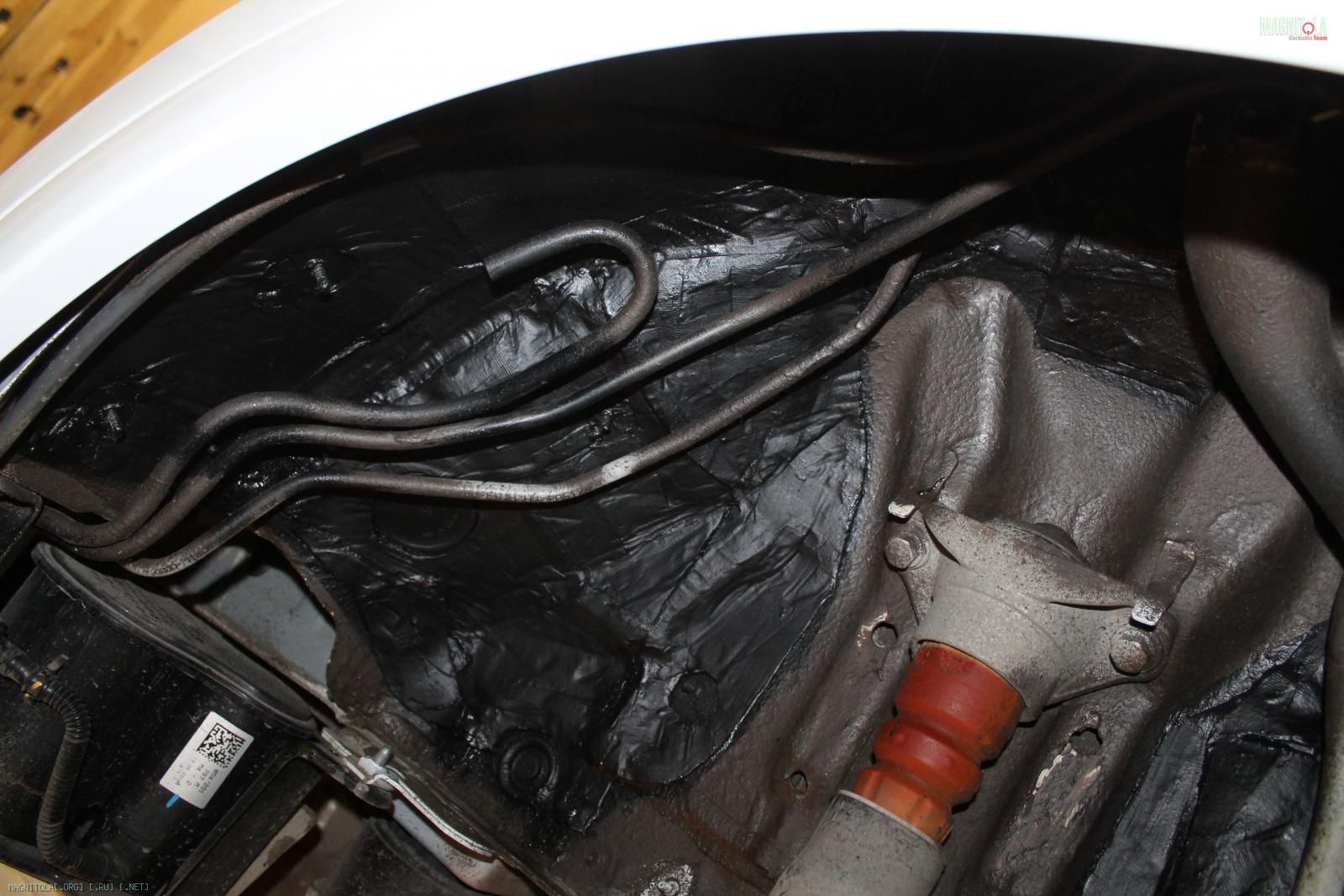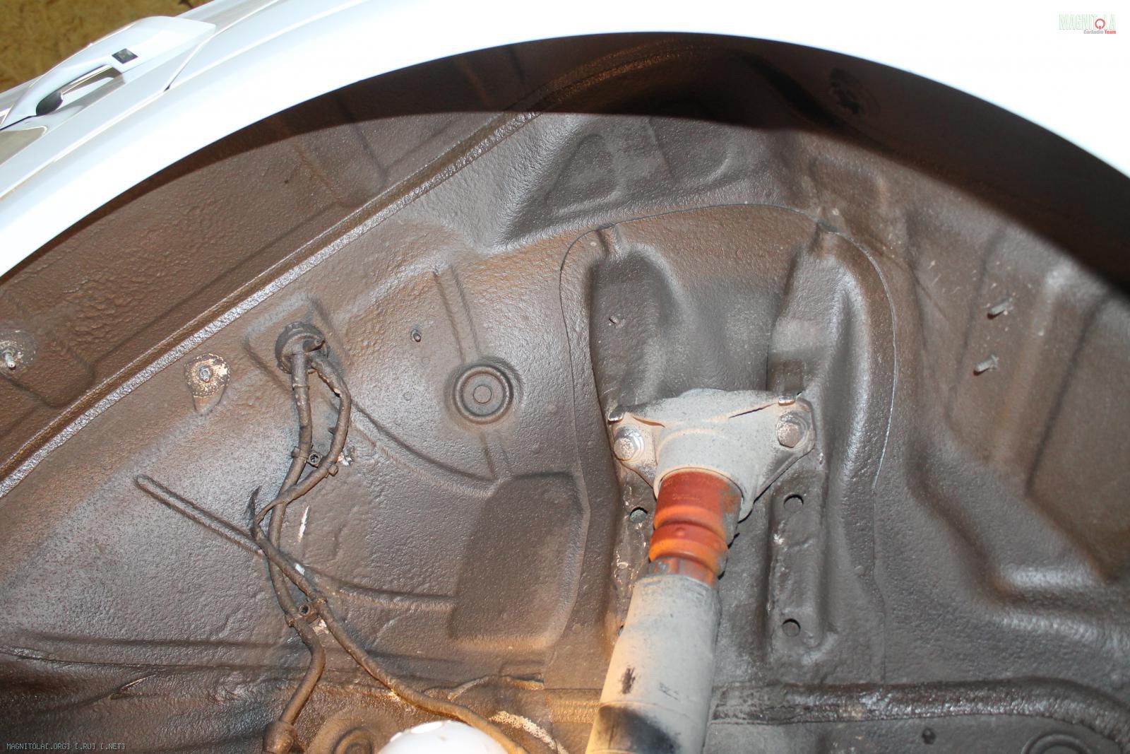 Стоковый войлок на задних арках... Левая сторона имеет большую площадь покрытия, правая -кусок размером 10-15см-экономия...