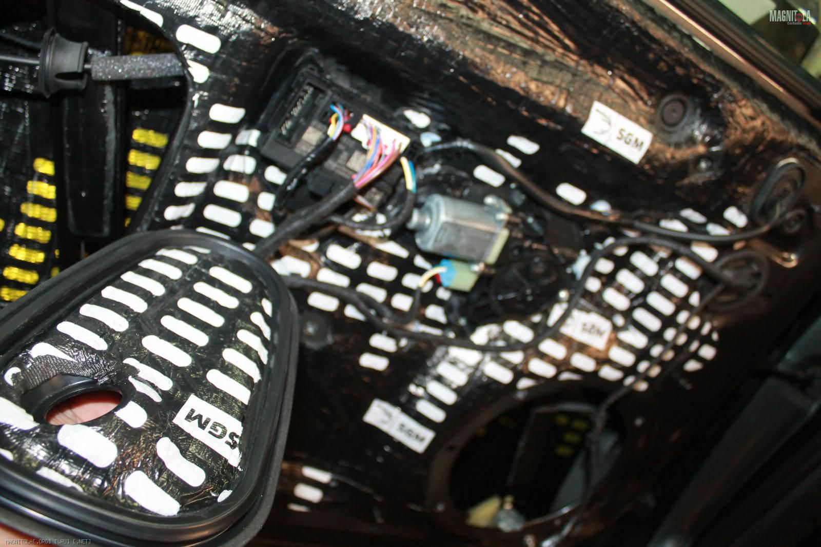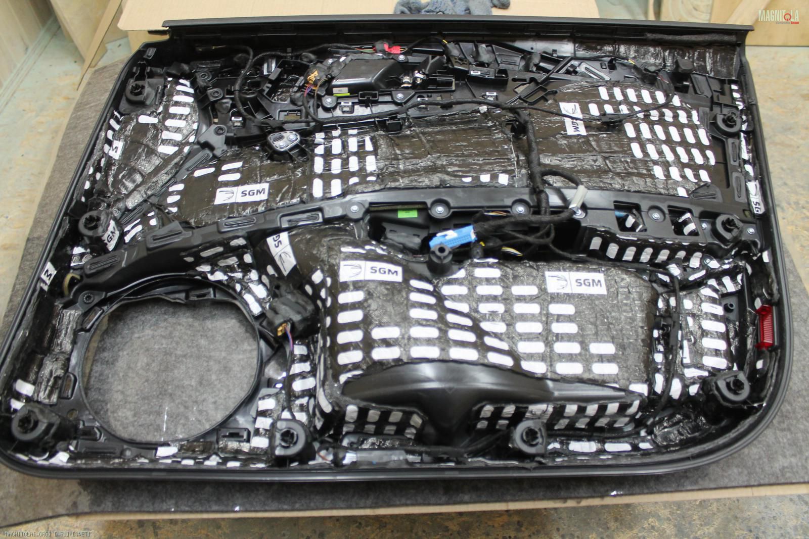 Наносим вибру 4мм, войлок, битопласт, уплотнительную ленту по периметру карты.