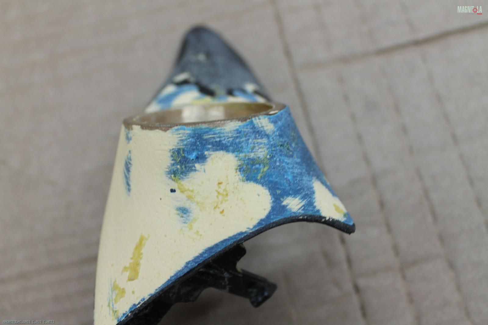 Снимаем кожу, очищаем от клея, устанавливаем кольцо для сетки, сращиваем с корпусом, вышкуриваем.